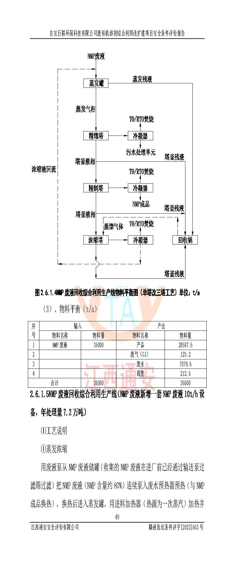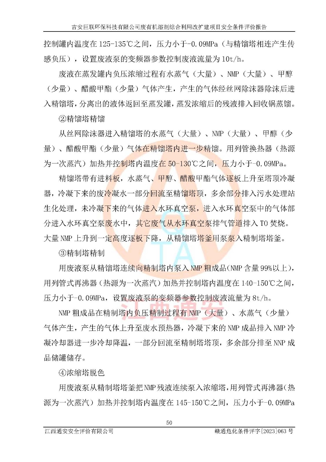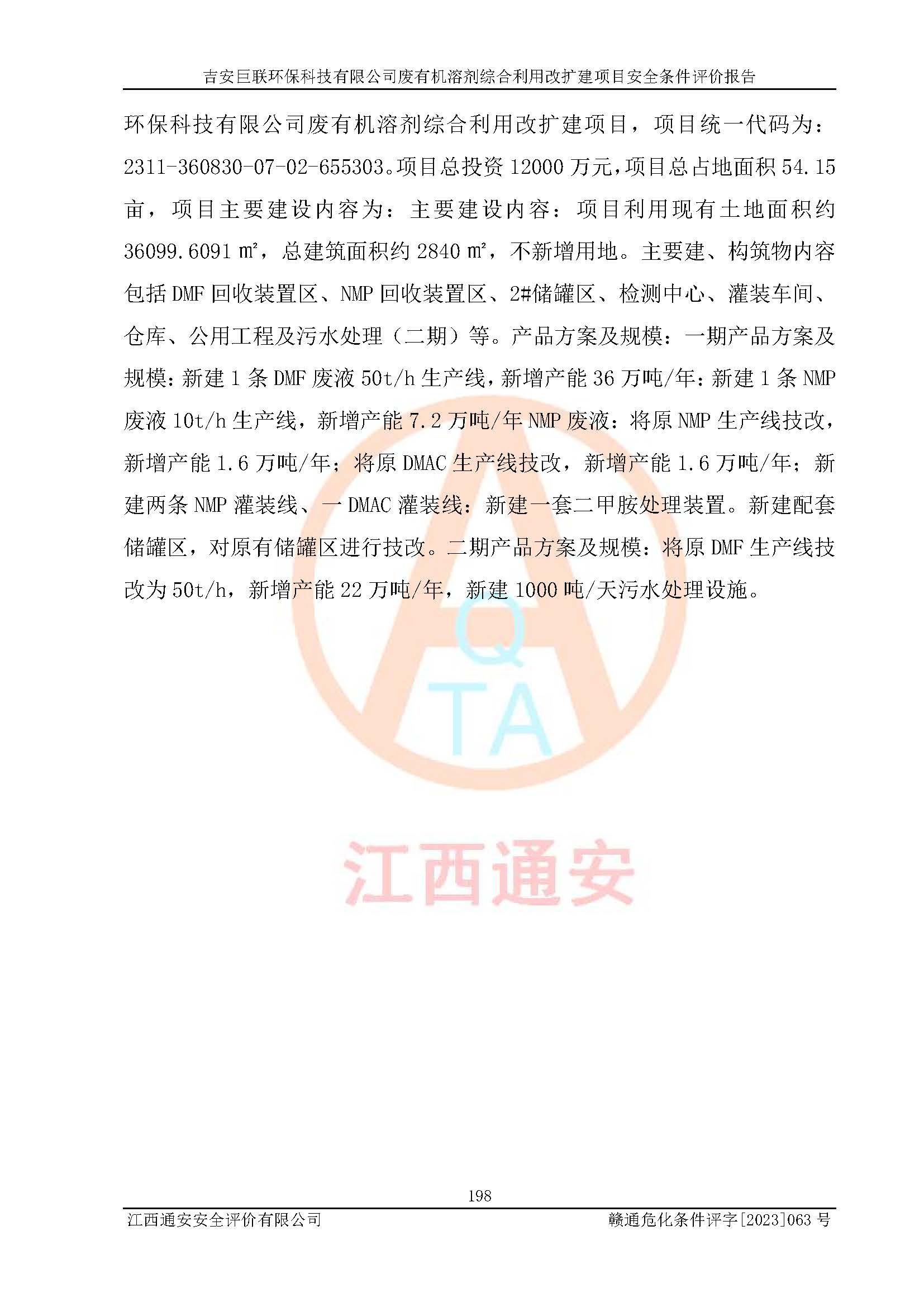 項(xiàng)目簡(jiǎn)介 | 吉安巨聯(lián)**科技有限公司成立于2017年9月,并取得永新縣市場(chǎng)監(jiān)督管理局頒發(fā)的《營(yíng)業(yè)執(zhí)照》,營(yíng)業(yè)執(zhí)照統(tǒng)一社會(huì)信用代碼:91360830MA369Q6F9X。公司注冊(cè)住所:江西省吉安市永新縣工業(yè)開(kāi)發(fā)區(qū)。法定**人:尹東峰。注冊(cè)資本貳仟萬(wàn)元整。企業(yè)性質(zhì)為有限責(zé)任公司(自然人投資或控股)。營(yíng)業(yè)執(zhí)照許可經(jīng)營(yíng)范圍:許可項(xiàng)目:危險(xiǎn)廢物經(jīng)營(yíng)(依法須經(jīng)批準(zhǔn)的項(xiàng)目,經(jīng)相關(guān)部門批準(zhǔn)后方可開(kāi)展經(jīng)營(yíng)活動(dòng))一般項(xiàng)目:污水處理及其再生利用,大氣污染治理,環(huán)境保護(hù)**設(shè)備制造,固體廢物治理,資源再生利用技術(shù)研發(fā),水環(huán)境污染防治服務(wù)(除許可業(yè)務(wù)外,可自主依法經(jīng)營(yíng)法律法規(guī)非禁止或限制的項(xiàng)目)。 吉安巨聯(lián)**科技有限公司2023年11月03日取得永新縣工業(yè)和信息化局頒發(fā)的《江西省工業(yè)企業(yè)技術(shù)改造項(xiàng)目備案通知書(shū)》,備案項(xiàng)目名稱為:吉安巨聯(lián)**科技有限公司廢有機(jī)溶劑綜合利用改擴(kuò)建項(xiàng)目。項(xiàng)目統(tǒng)一代碼為:2311-360830-07-02-655303。項(xiàng)目總投資12000萬(wàn)元,項(xiàng)目總占地面積54.15畝,項(xiàng)目主要建設(shè)內(nèi)容為:主要建設(shè)內(nèi)容:項(xiàng)目利用現(xiàn)有土地面積約36099.6091㎡,總建筑面積約2840㎡,不新增用地。主要建、構(gòu)筑物內(nèi)容包括DMF回收裝置區(qū)、NMP回收裝置區(qū)、2#儲(chǔ)罐區(qū)、檢測(cè)中心、灌裝車間、倉(cāng)庫(kù)、公用工程及污水處理(二期)等。產(chǎn)品方案及規(guī)模:一期產(chǎn)品方案及規(guī)模:新建1條DMF廢液50t/h生產(chǎn)線,新增產(chǎn)能36萬(wàn)噸/年:新建1條NMP廢液10t/h生產(chǎn)線,新增產(chǎn)能7.2萬(wàn)噸/年NMP廢液:將原NMP生產(chǎn)線技改,新增產(chǎn)能1.6萬(wàn)噸/年;將原DMAC生產(chǎn)線技改,新增產(chǎn)能1.6萬(wàn)噸/年;新建兩條NMP灌裝線、一DMAC灌裝線:新建一套二甲胺處理裝置。新建配套儲(chǔ)罐區(qū),對(duì)原有儲(chǔ)罐區(qū)進(jìn)行技改。二期產(chǎn)品方案及規(guī)模:將原DMF生產(chǎn)線技改為50t/h,新增產(chǎn)能22萬(wàn)噸/年,新建1000噸/天污水處理設(shè)施。 | |||