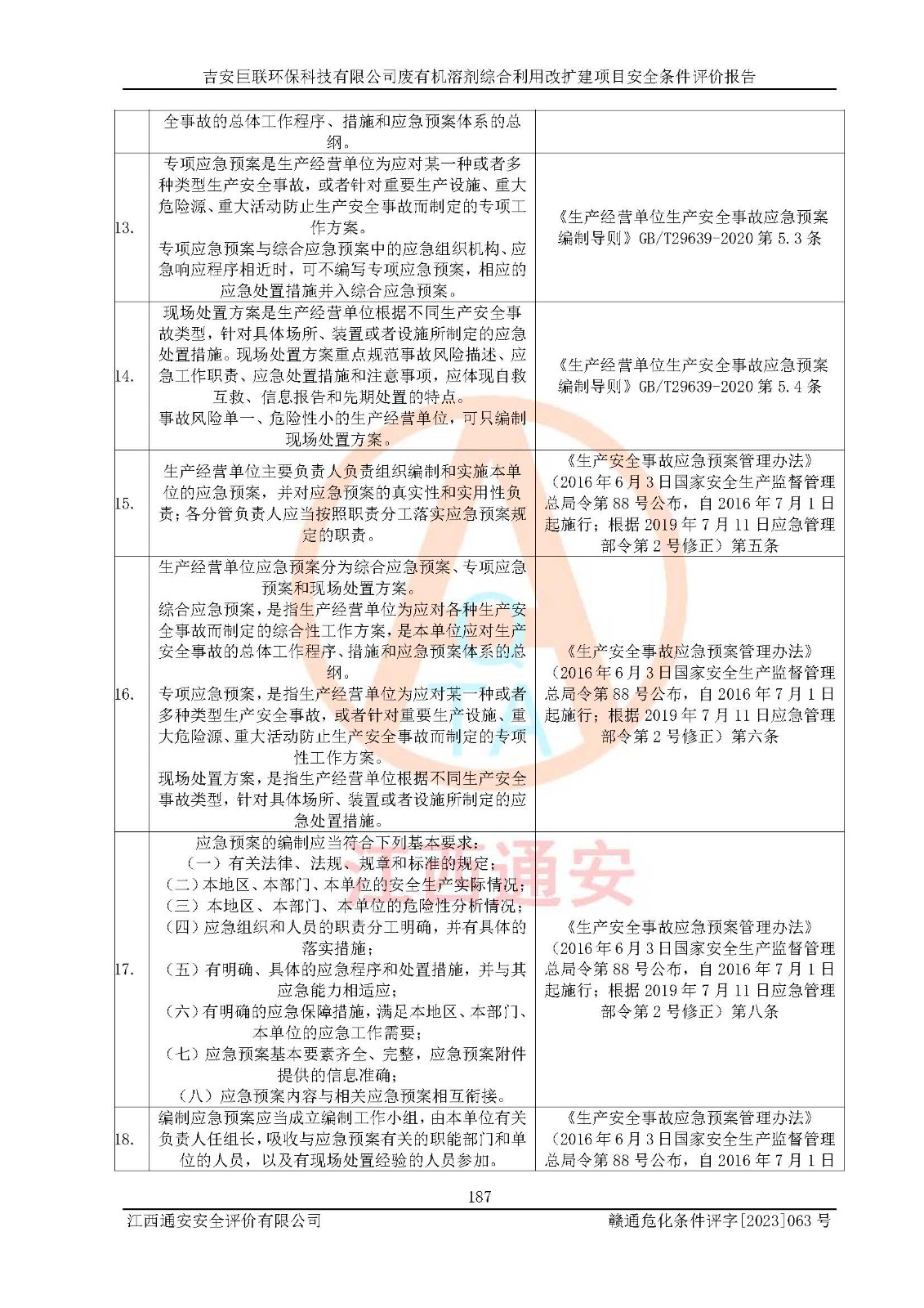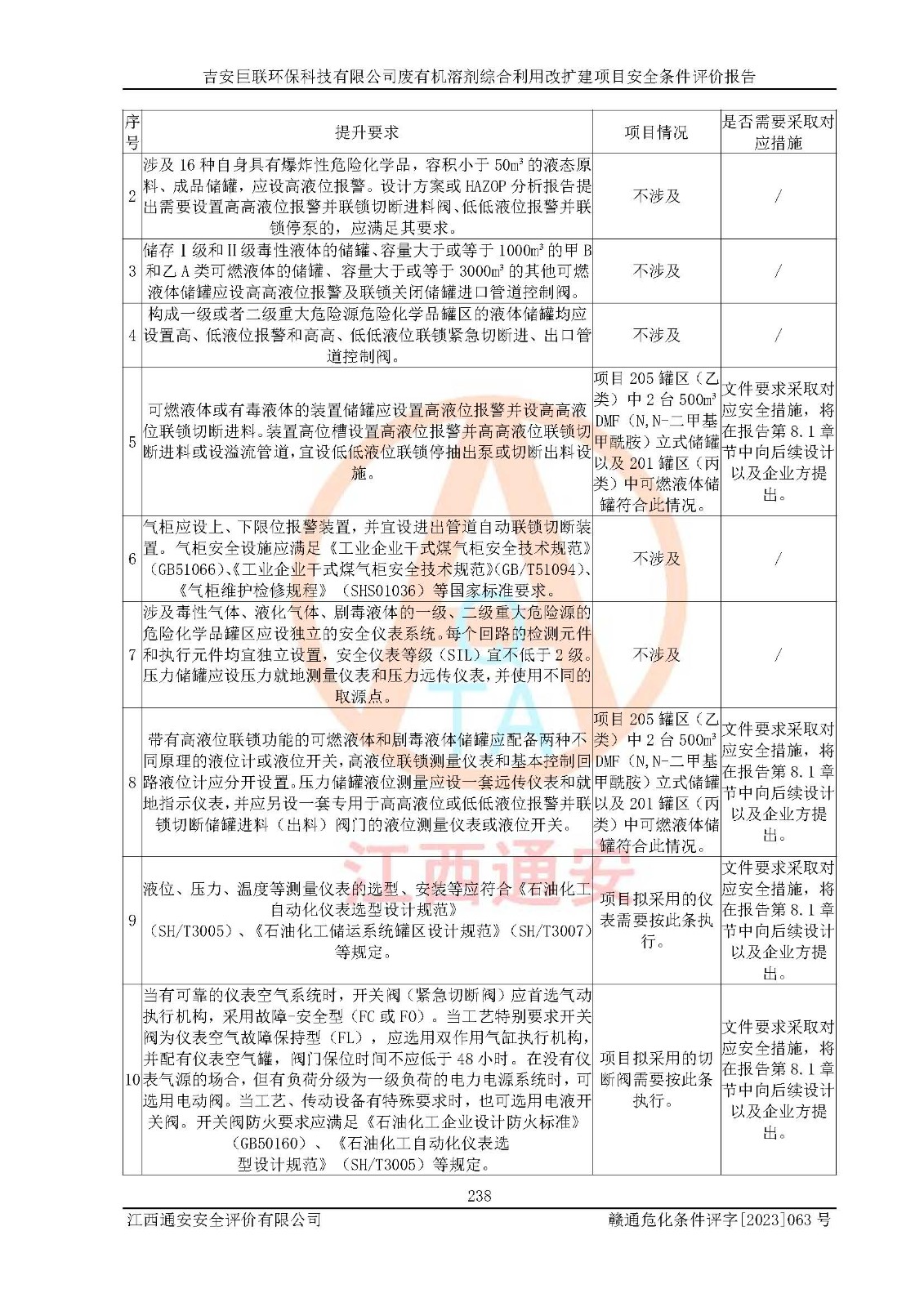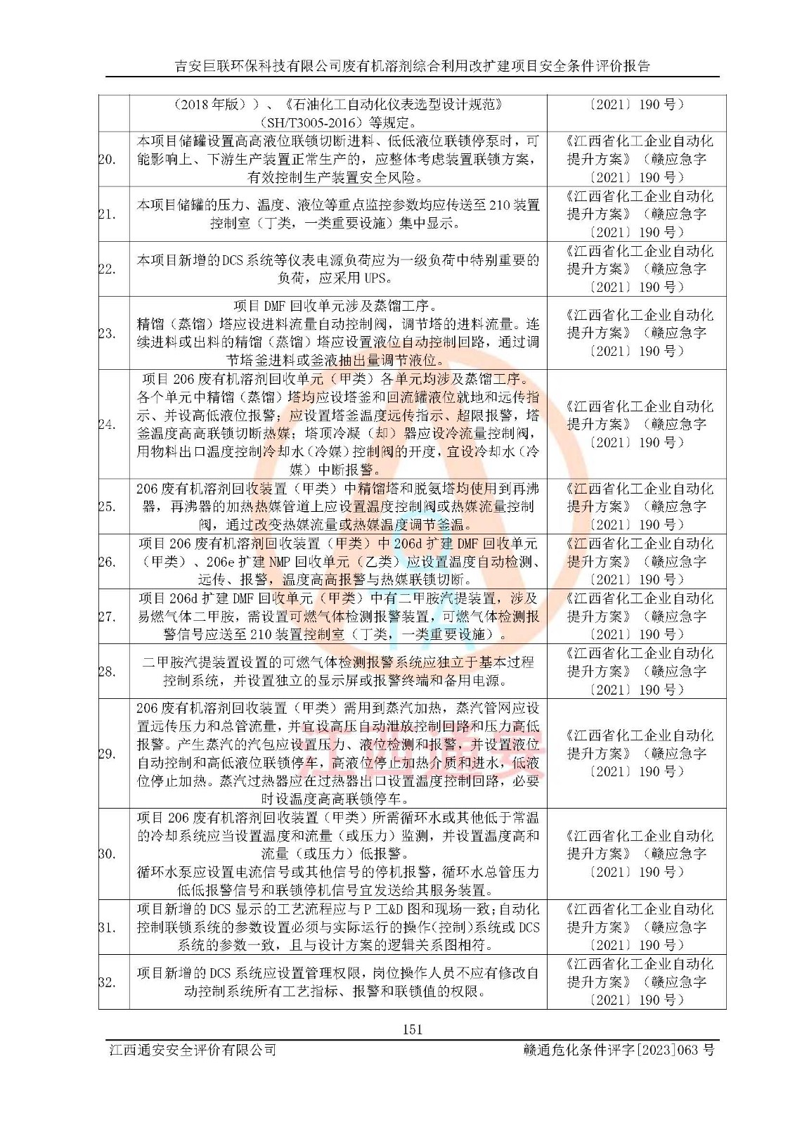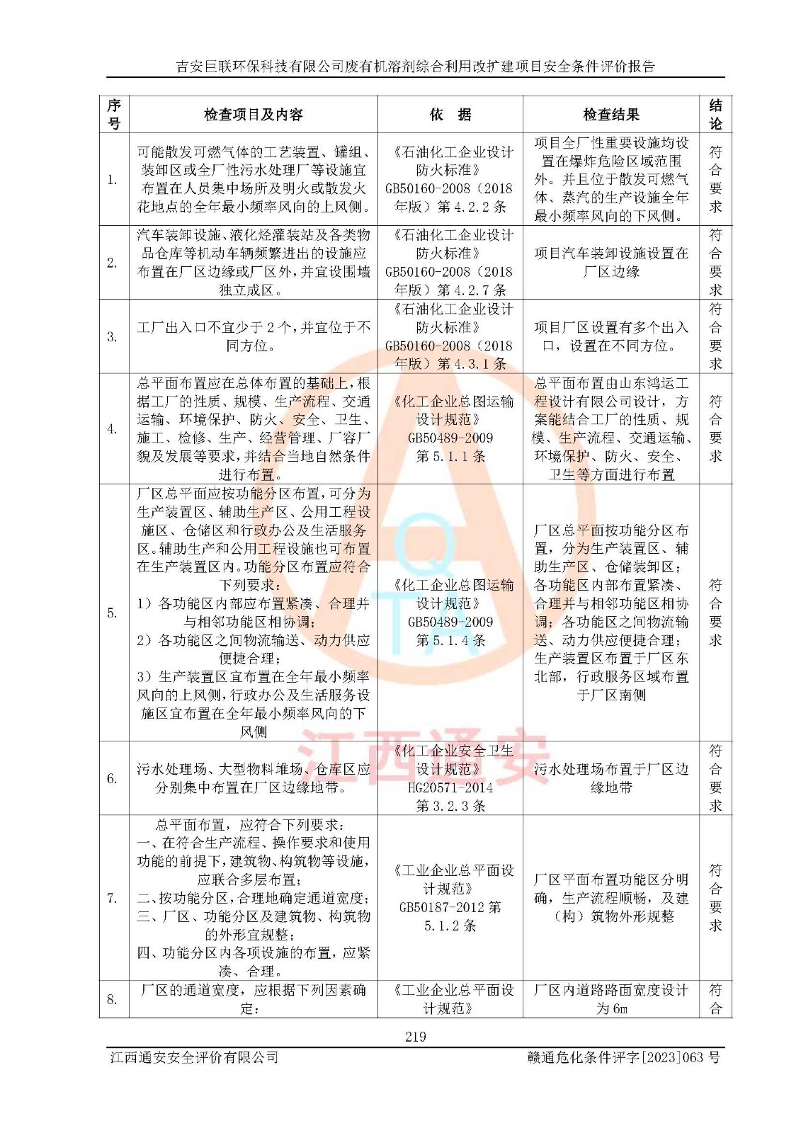 評(píng)價(jià)結(jié)論 | 本評(píng)價(jià)認(rèn)為,吉安巨聯(lián)**科技有限公司廢有機(jī)溶劑綜合利用改擴(kuò)建項(xiàng)目在以后的初步設(shè)計(jì)、施工圖設(shè)計(jì)和建設(shè)施工、安裝調(diào)試及生產(chǎn)運(yùn)行中,如能嚴(yán)格執(zhí)行**有關(guān)安全生產(chǎn)法律、法規(guī)和有關(guān)標(biāo)準(zhǔn)、規(guī)范,認(rèn)真采納本報(bào)告書(shū)第8章提出的安全對(duì)策措施及建議,真正做到安全設(shè)施與主體工程同時(shí)設(shè)計(jì)、同時(shí)施工、同時(shí)投入生產(chǎn)和使用的“三同時(shí)”,工程的危險(xiǎn)、有害因素可得到**控制,風(fēng)險(xiǎn)在可接受范圍內(nèi),具有**的本質(zhì)安全水平。該建設(shè)項(xiàng)目從安全方面分析可行。 | |||
