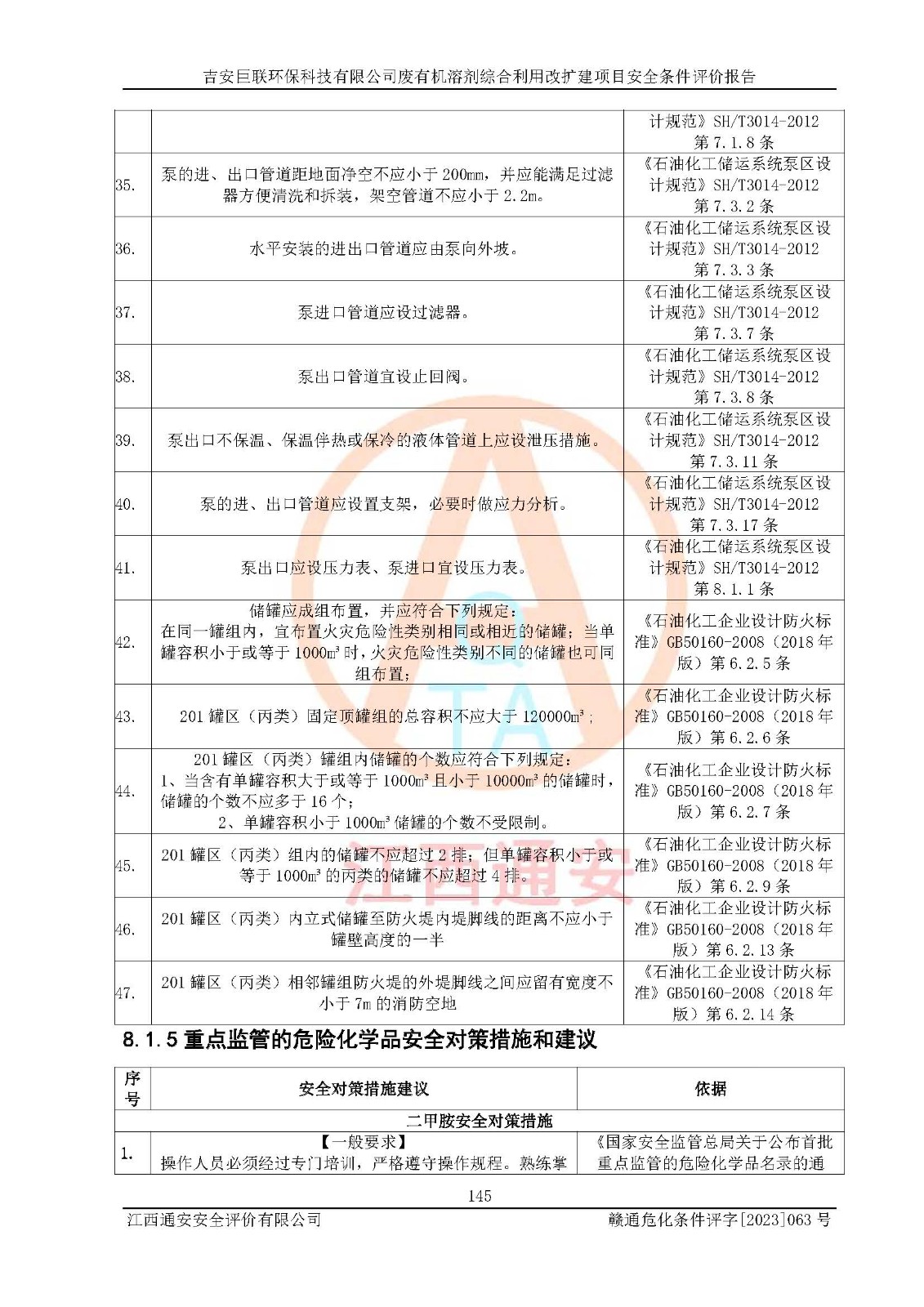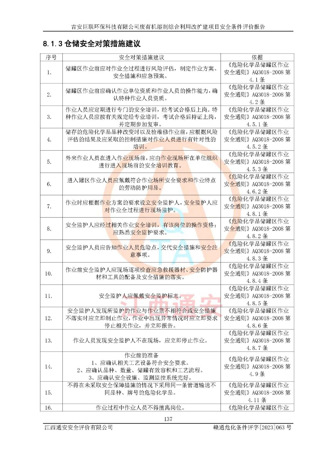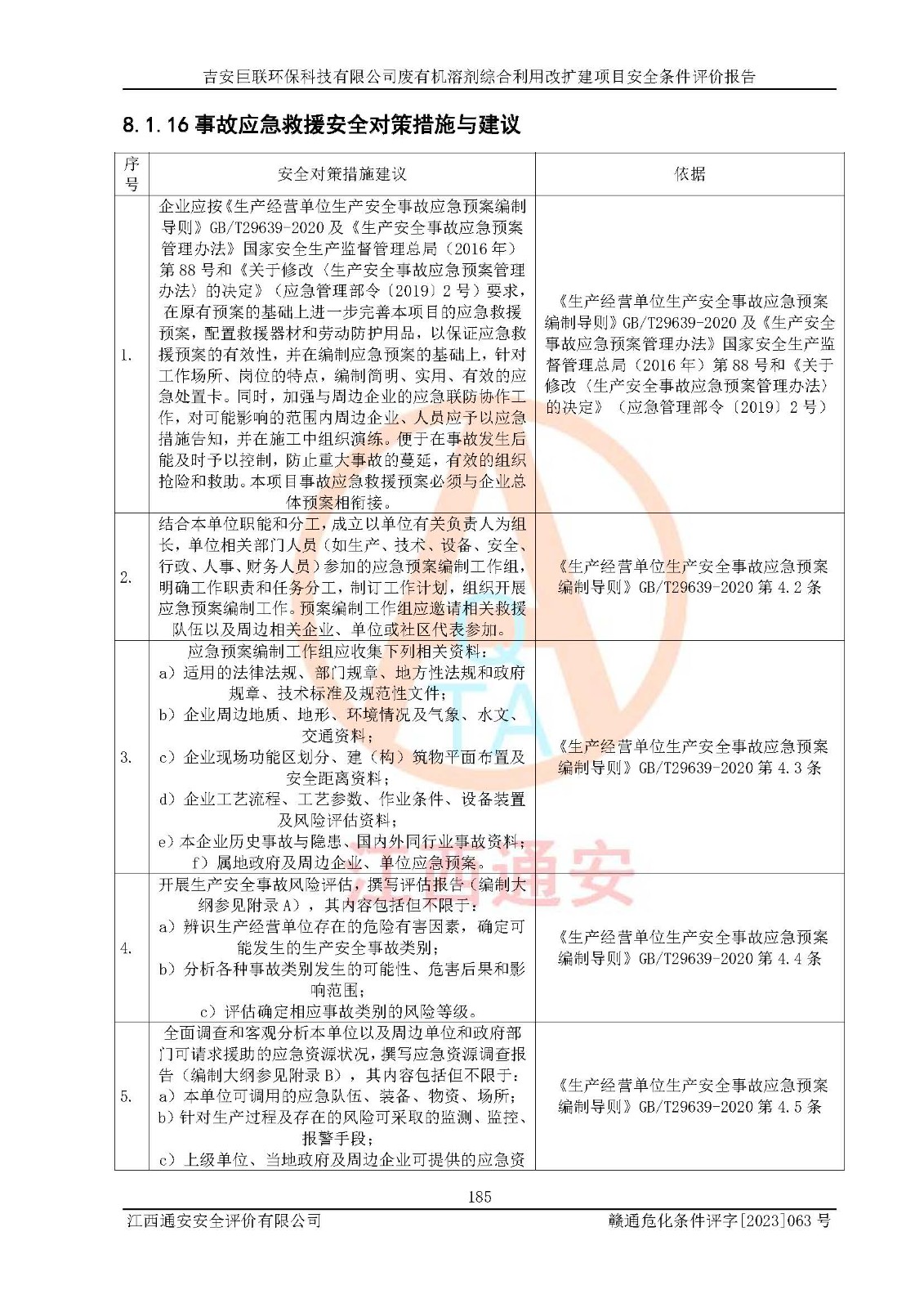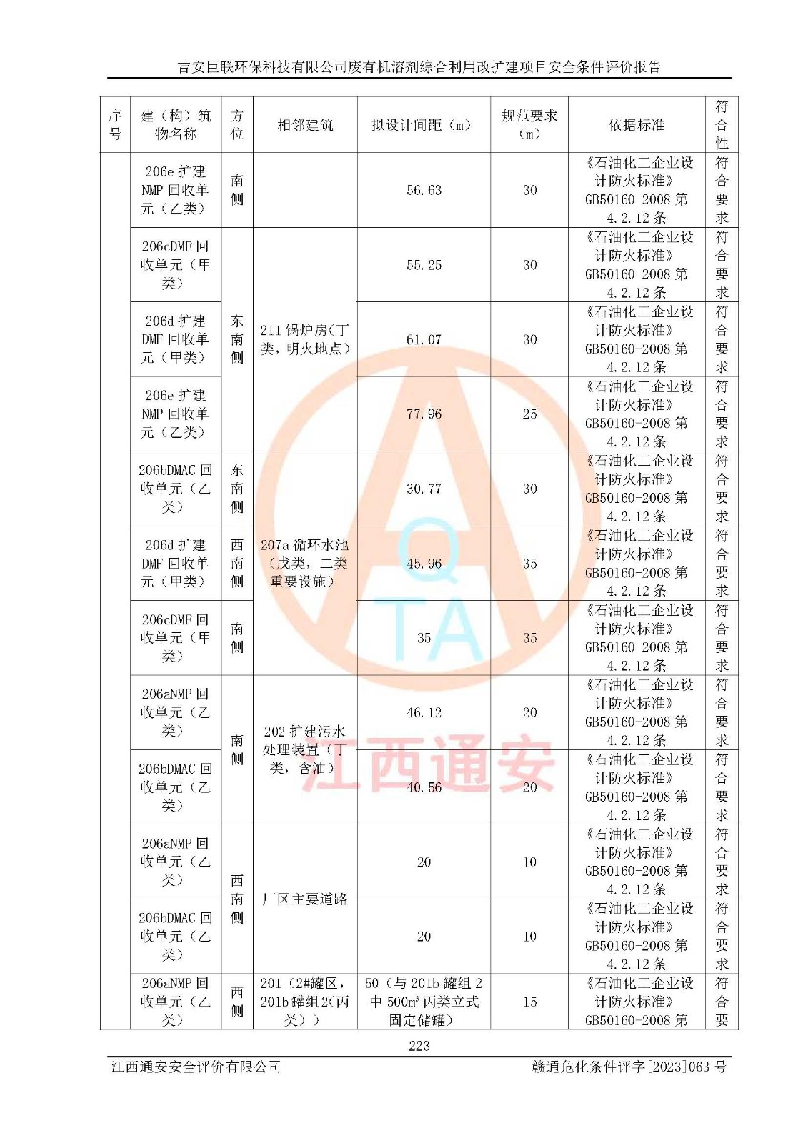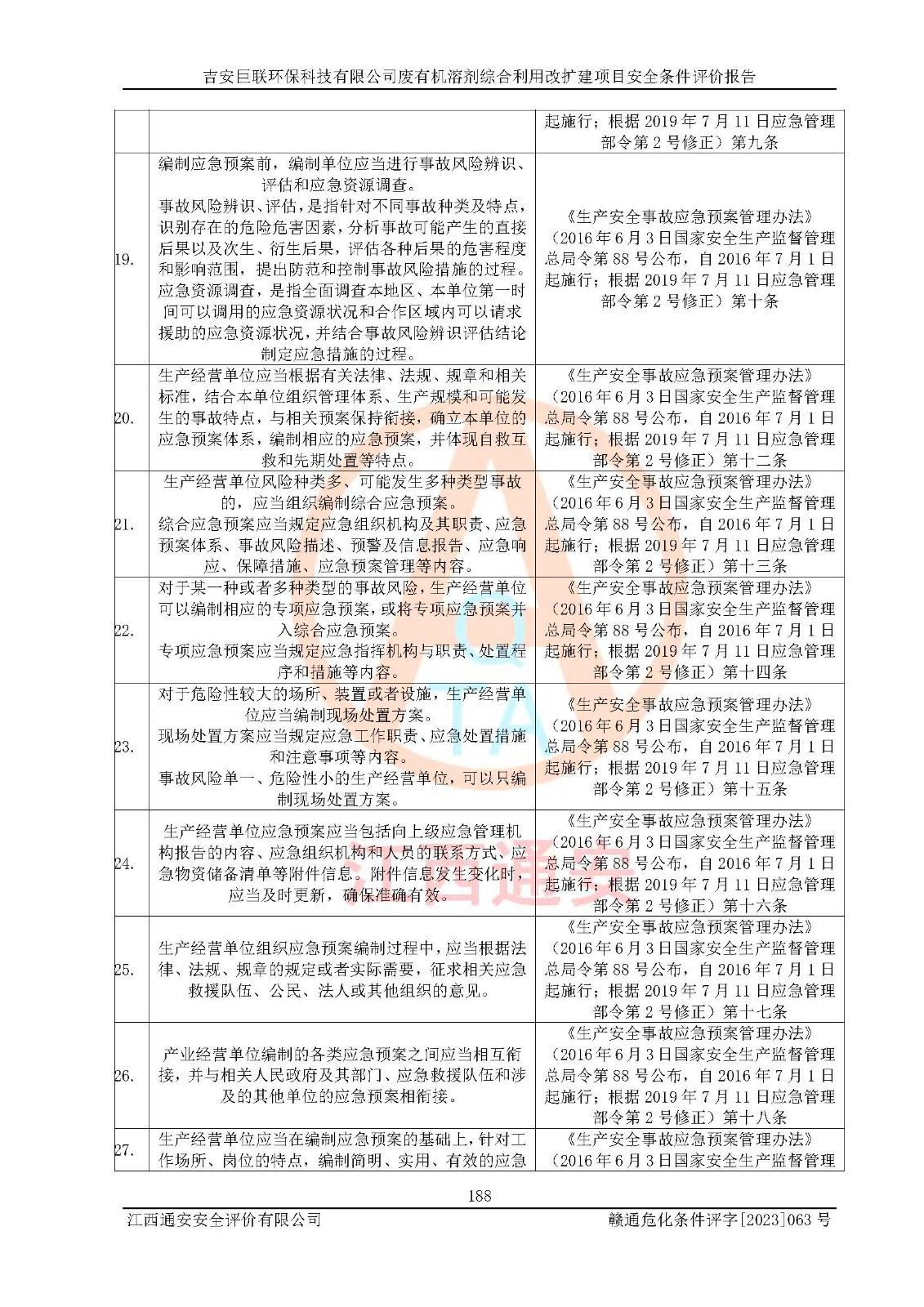 評(píng)價(jià)結(jié)論 | 本評(píng)價(jià)認(rèn)為,吉安巨聯(lián)**科技有限公司廢有機(jī)溶劑綜合利用改擴(kuò)建項(xiàng)目在以后的初步設(shè)計(jì)、施工圖設(shè)計(jì)和建設(shè)施工、安裝調(diào)試及生產(chǎn)運(yùn)行中,如能嚴(yán)格執(zhí)行**有關(guān)安全生產(chǎn)法律、法規(guī)和有關(guān)標(biāo)準(zhǔn)、規(guī)范,認(rèn)真采納本報(bào)告書(shū)第8章提出的安全對(duì)策措施及建議,真正做到安全設(shè)施與主體工程同時(shí)設(shè)計(jì)、同時(shí)施工、同時(shí)投入生產(chǎn)和使用的“三同時(shí)”,工程的危險(xiǎn)、有害因素可得到**控制,風(fēng)險(xiǎn)在可接受范圍內(nèi),具有**的本質(zhì)安全水平。該建設(shè)項(xiàng)目從安全方面分析可行。 | |||