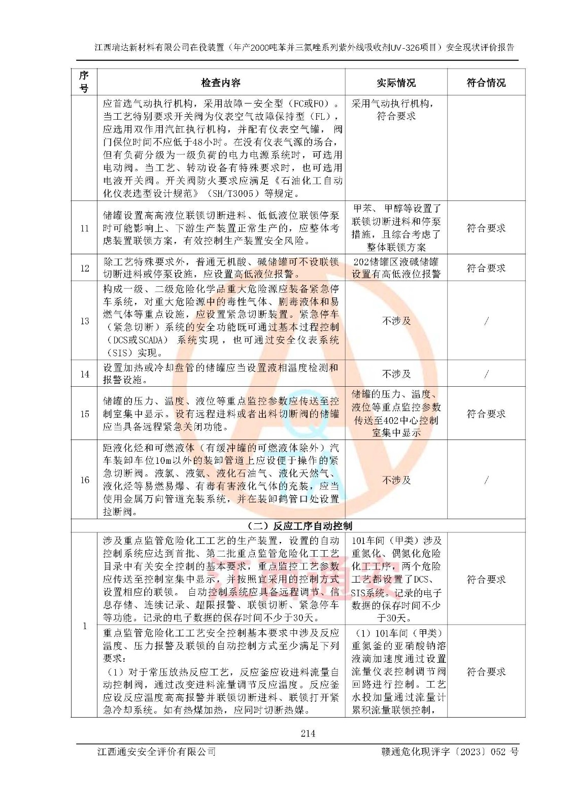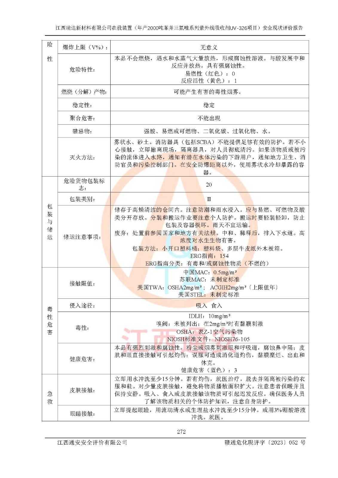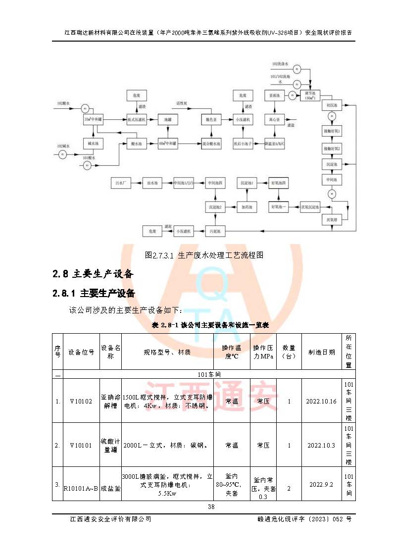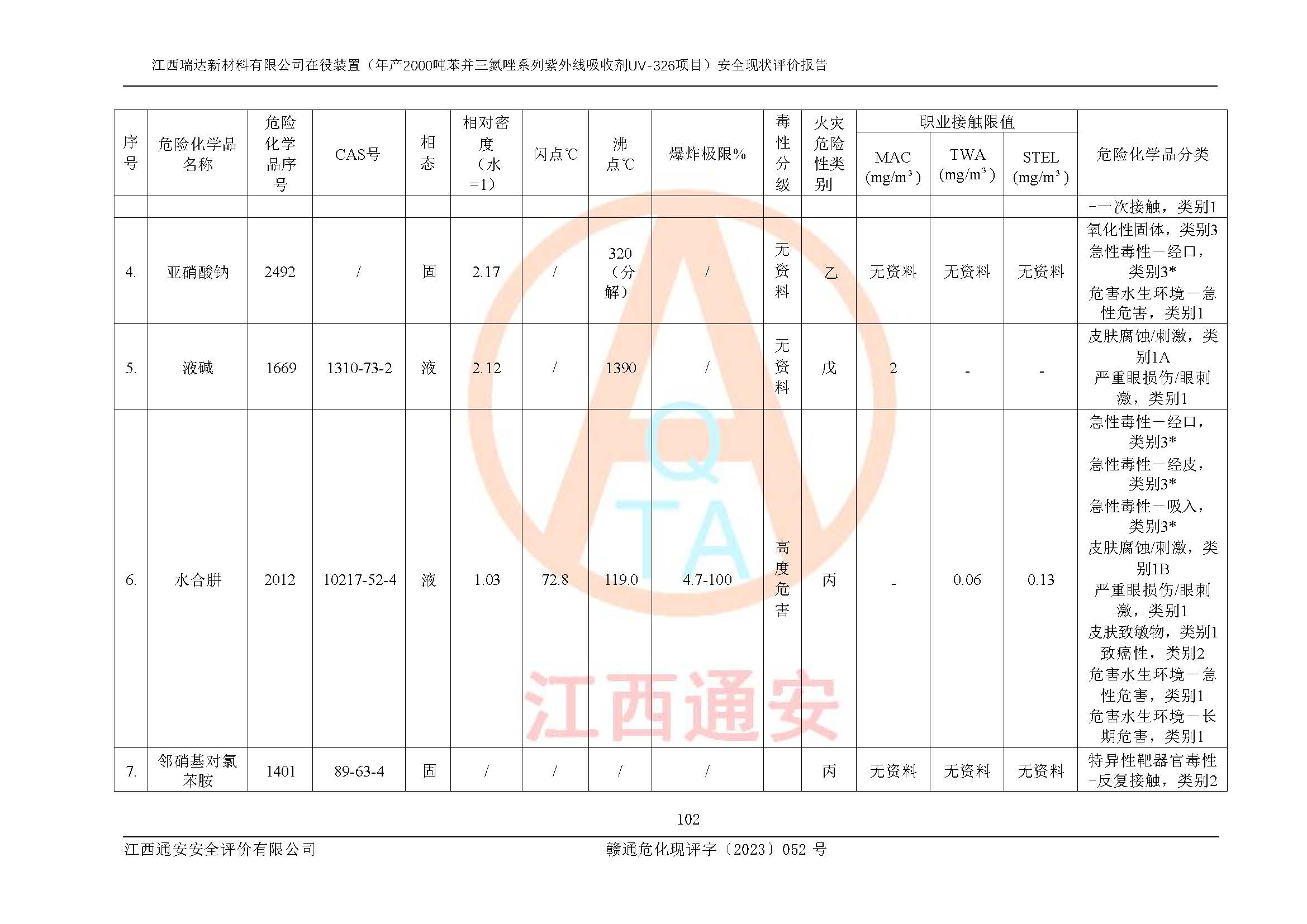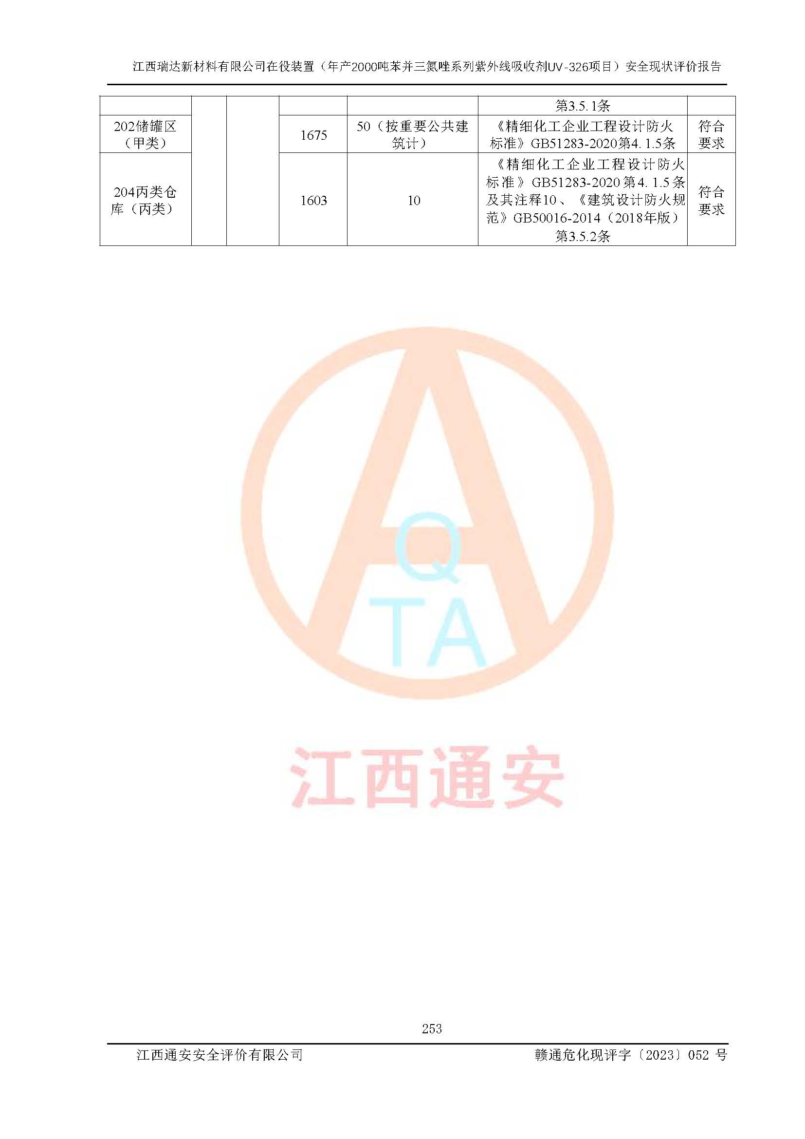 評價報告名稱 | 江西瑞達新材料有限公司年產(chǎn)2000噸苯并三氮唑系列紫外線吸收劑UV-326生產(chǎn)裝置技術(shù)改造項目安全驗收評價 | |||