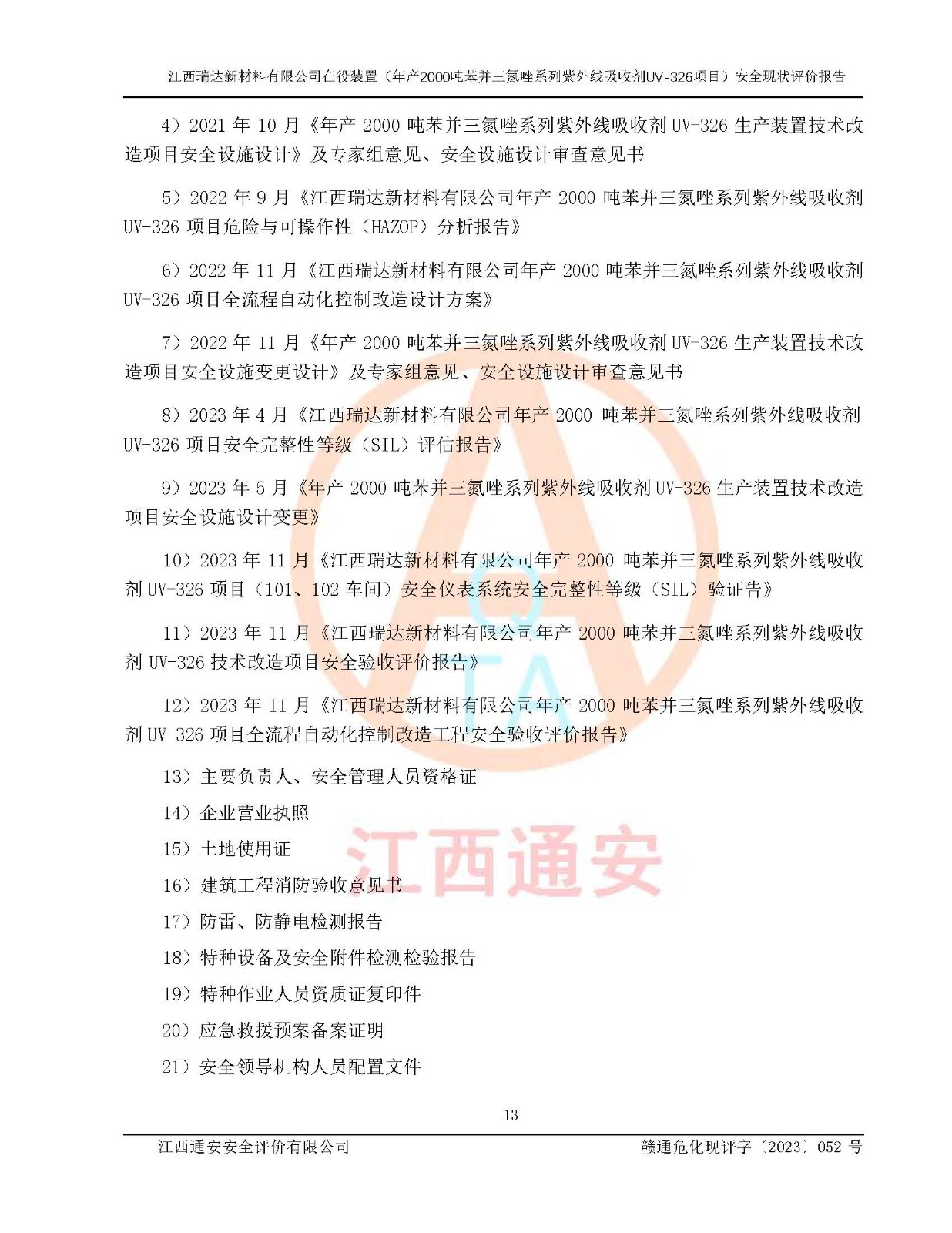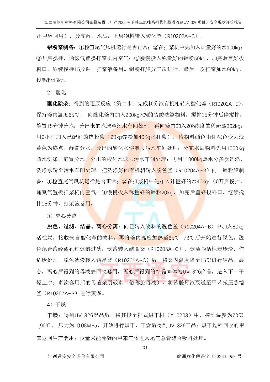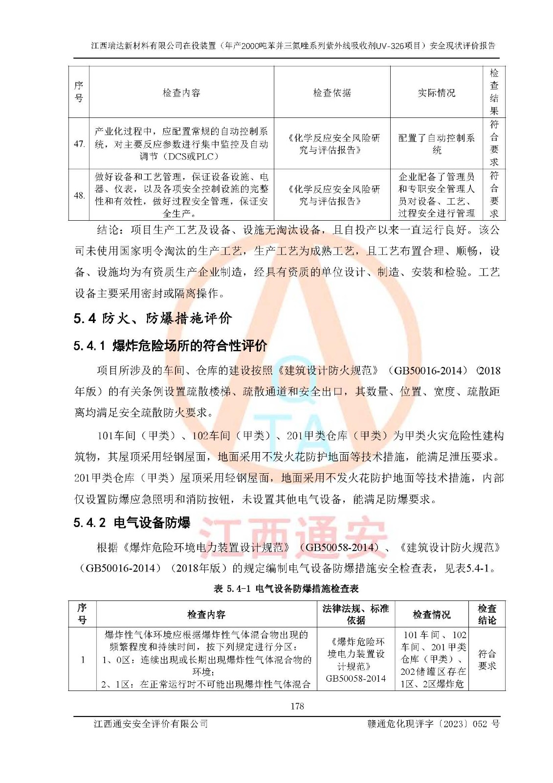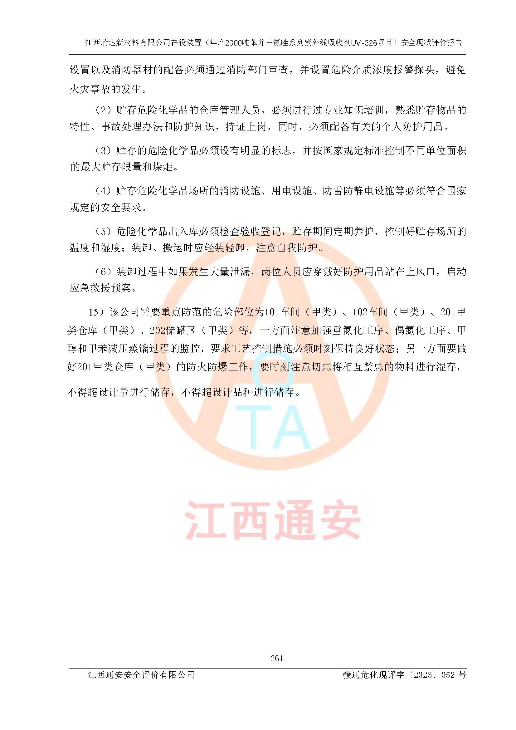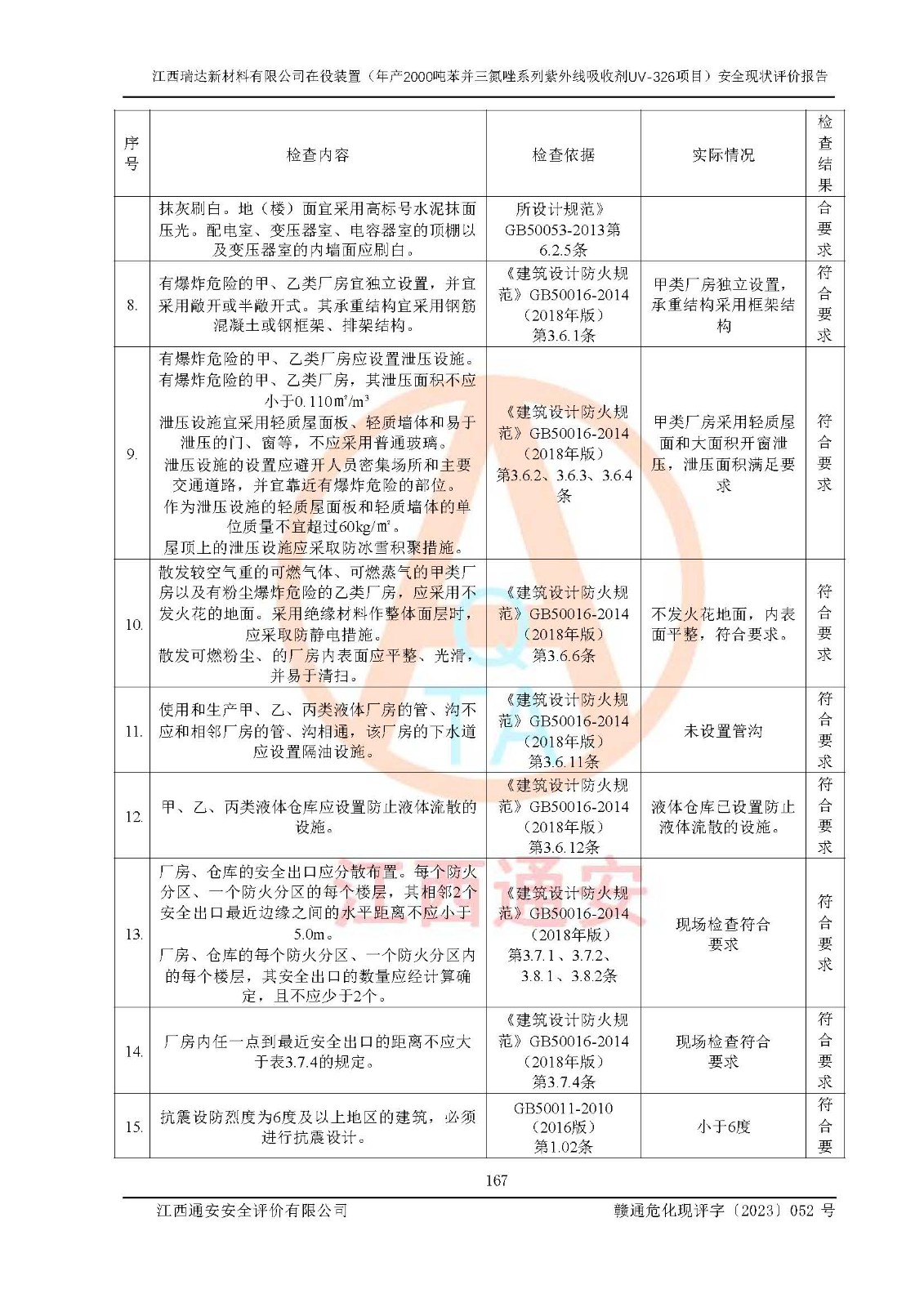評價報告名稱 | 江西瑞達新材料有限公司年產(chǎn)2000噸苯并三氮唑系列紫外線吸收劑UV-326生產(chǎn)裝置技術(shù)改造項目安全驗收評價 | |||