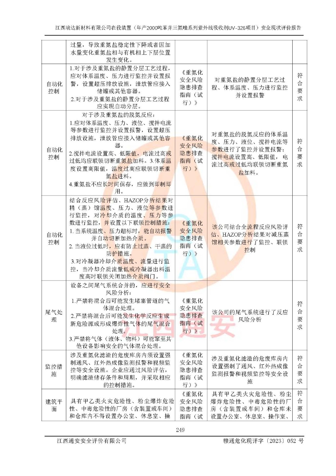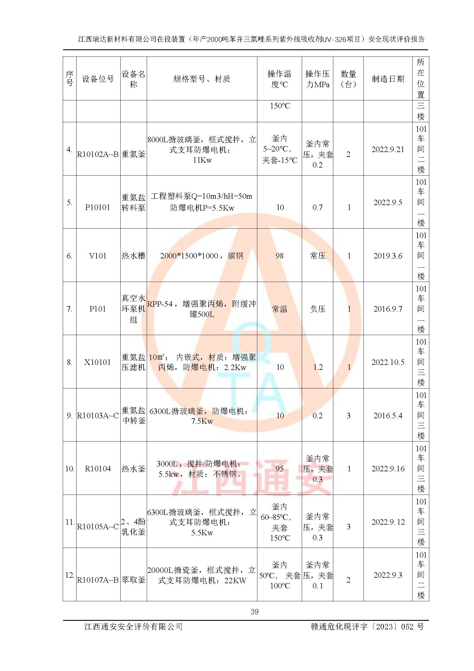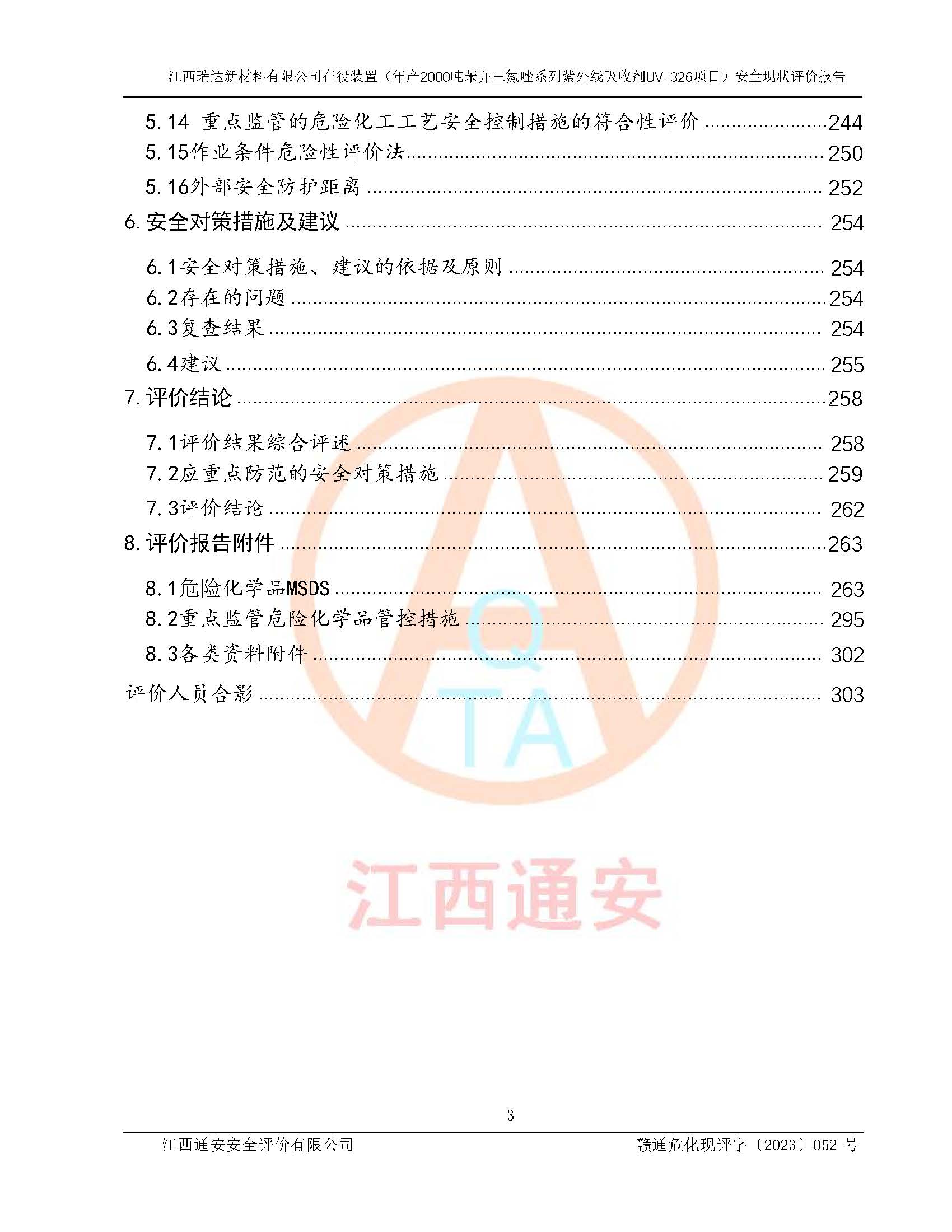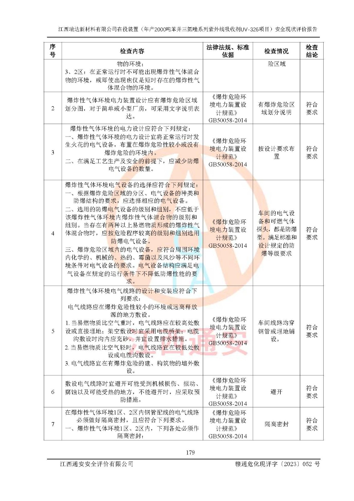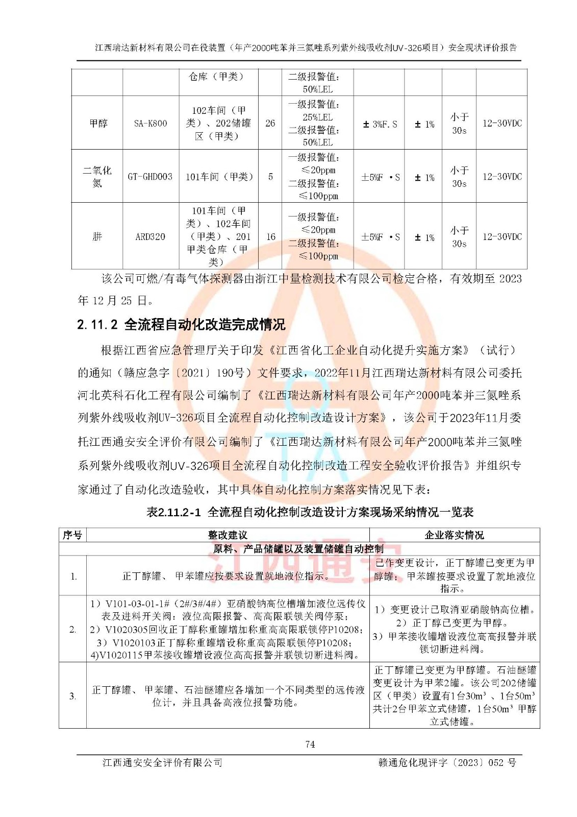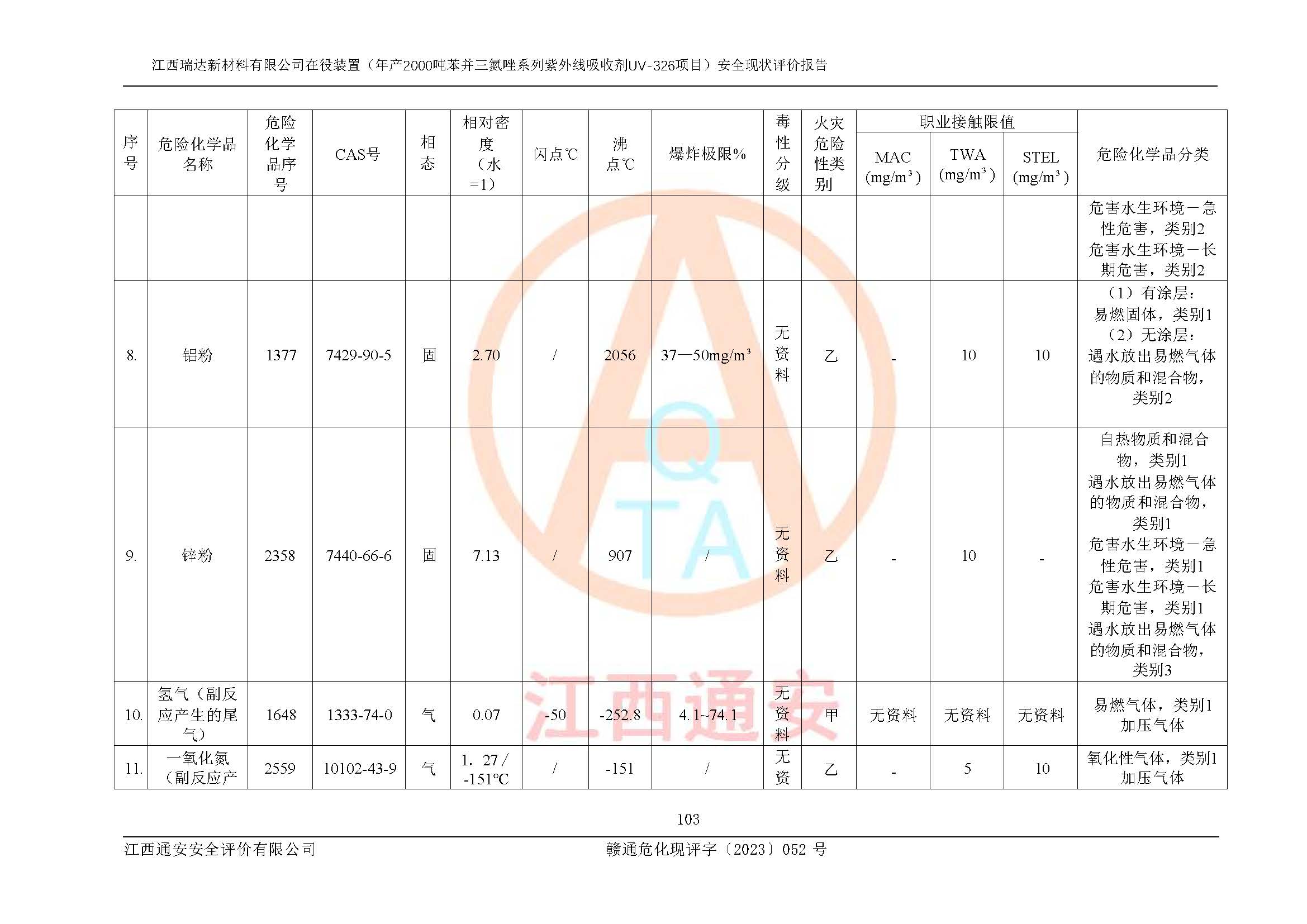 評價報告名稱 | 江西瑞達新材料有限公司年產(chǎn)2000噸苯并三氮唑系列紫外線吸收劑UV-326生產(chǎn)裝置技術(shù)改造項目安全驗收評價 | |||