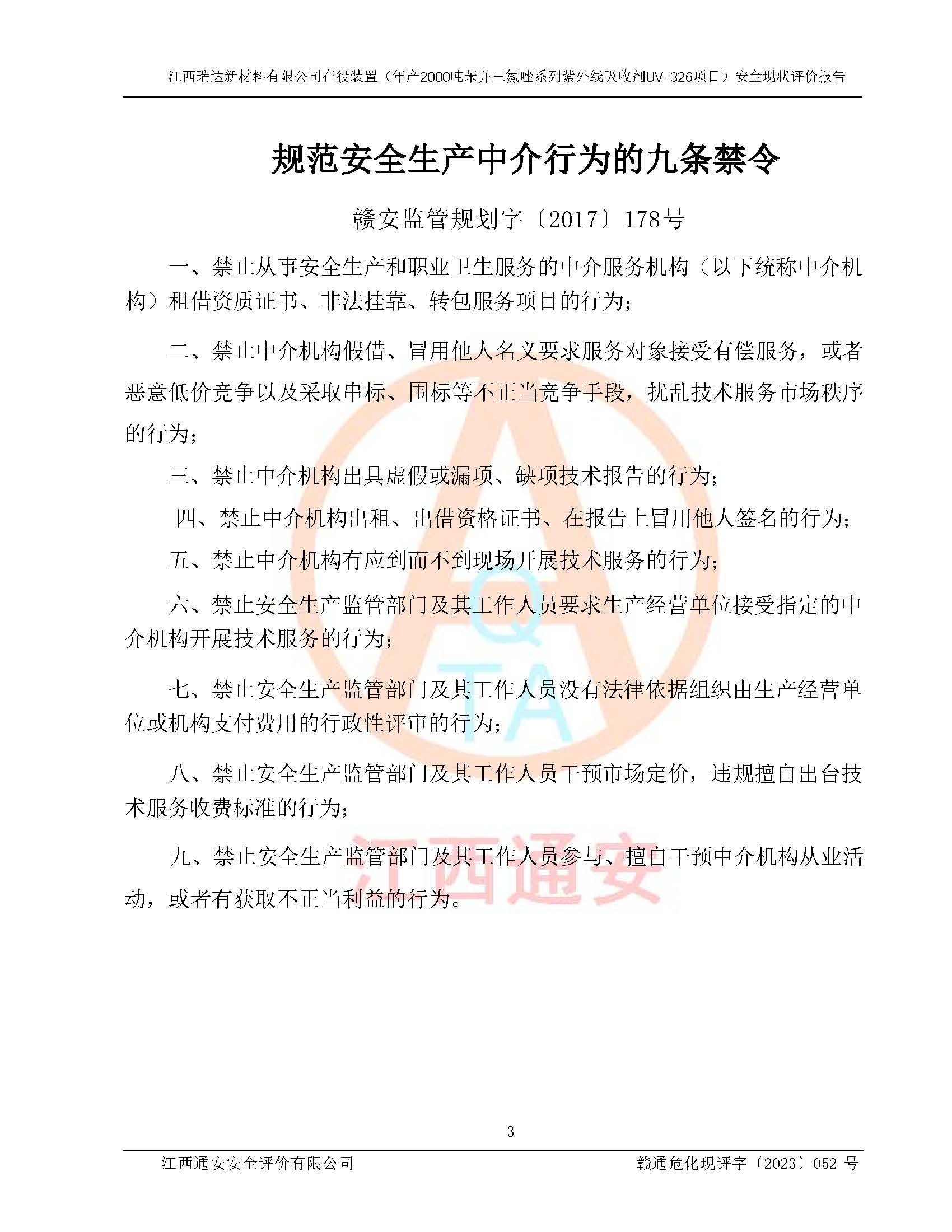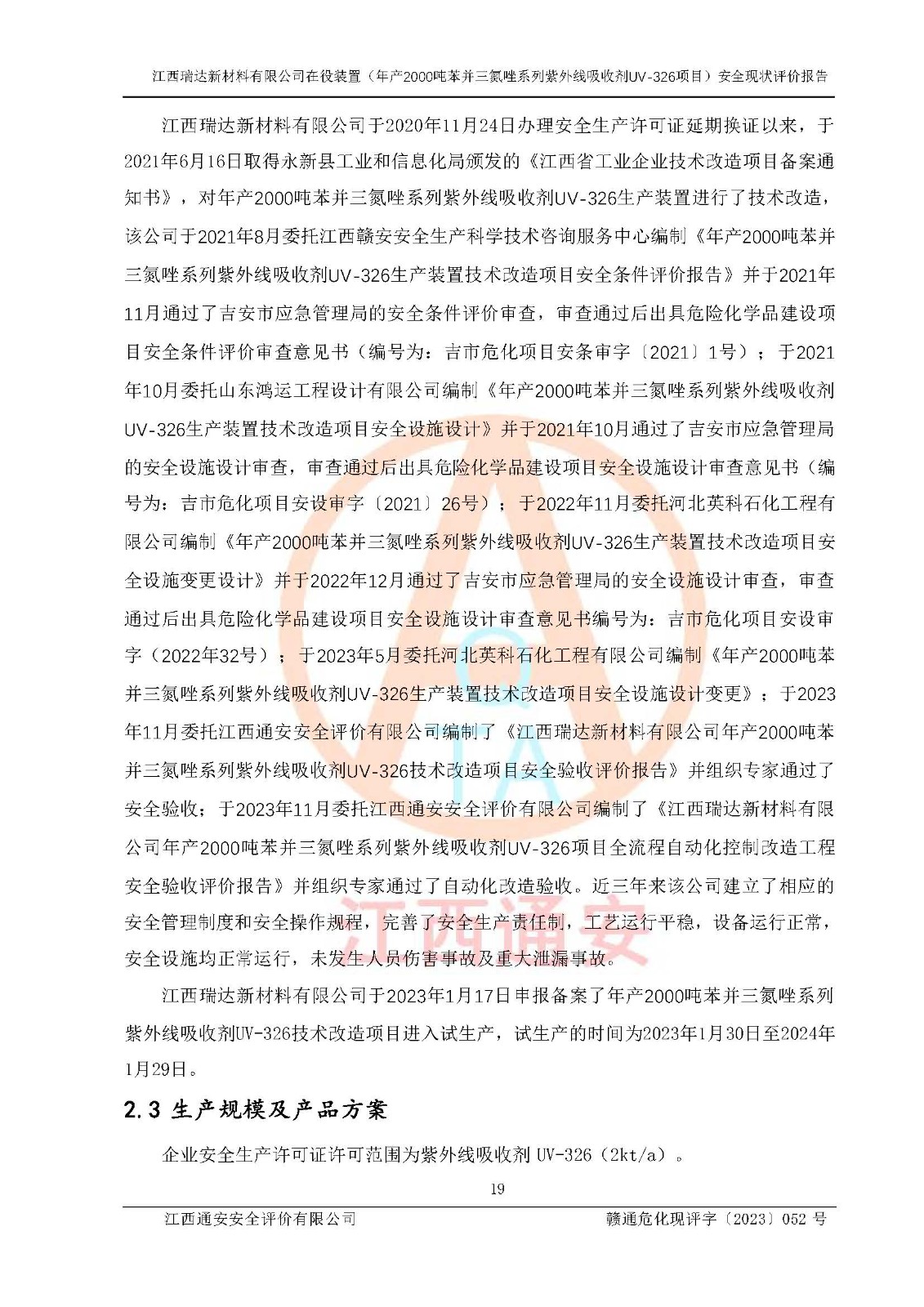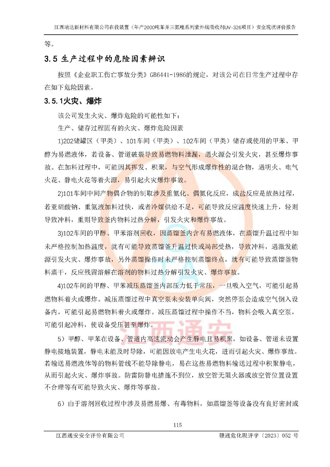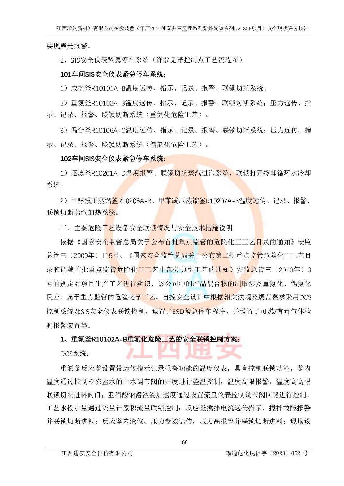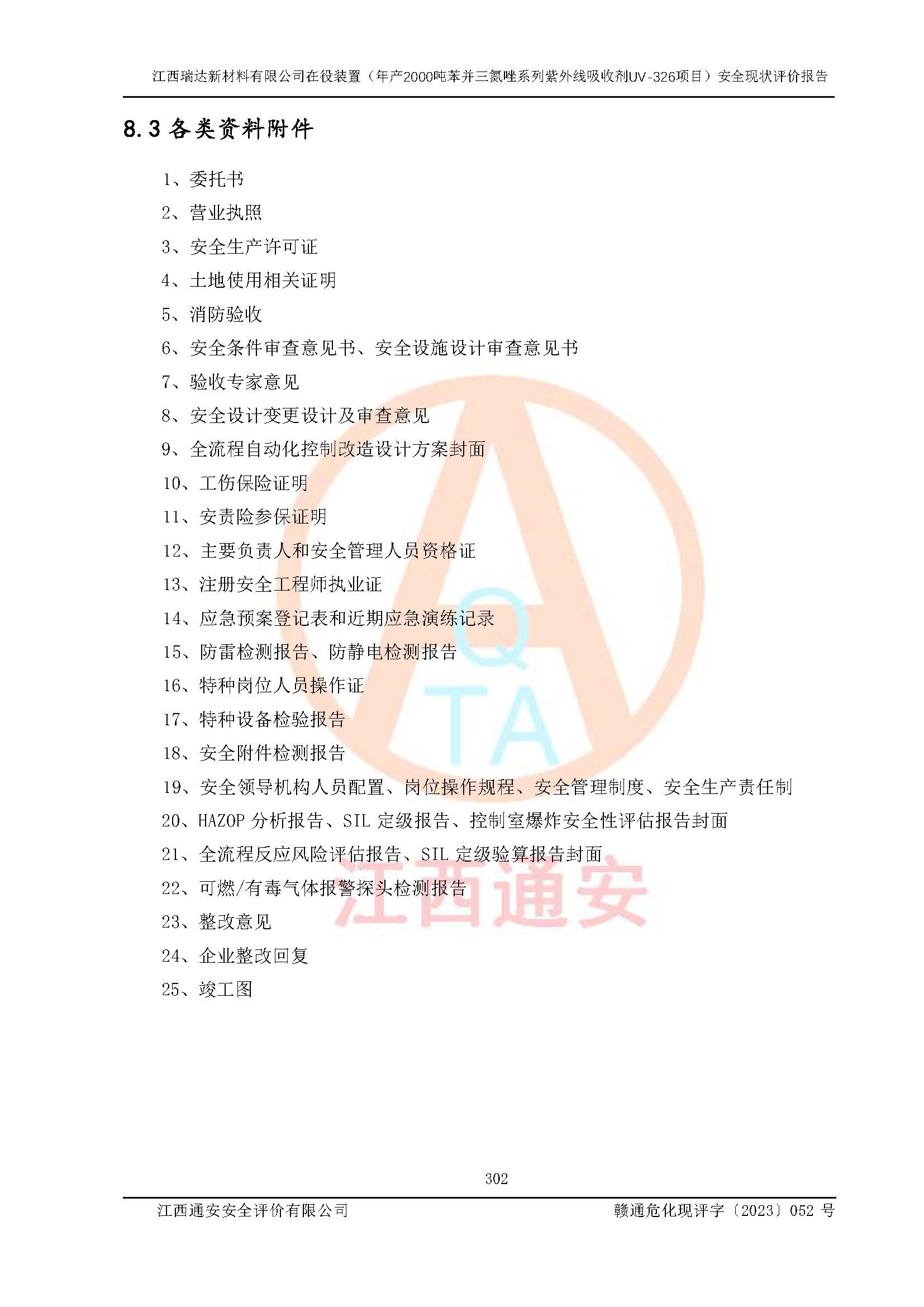 評價報告名稱 | 江西瑞達新材料有限公司年產(chǎn)2000噸苯并三氮唑系列紫外線吸收劑UV-326生產(chǎn)裝置技術(shù)改造項目安全驗收評價 | |||