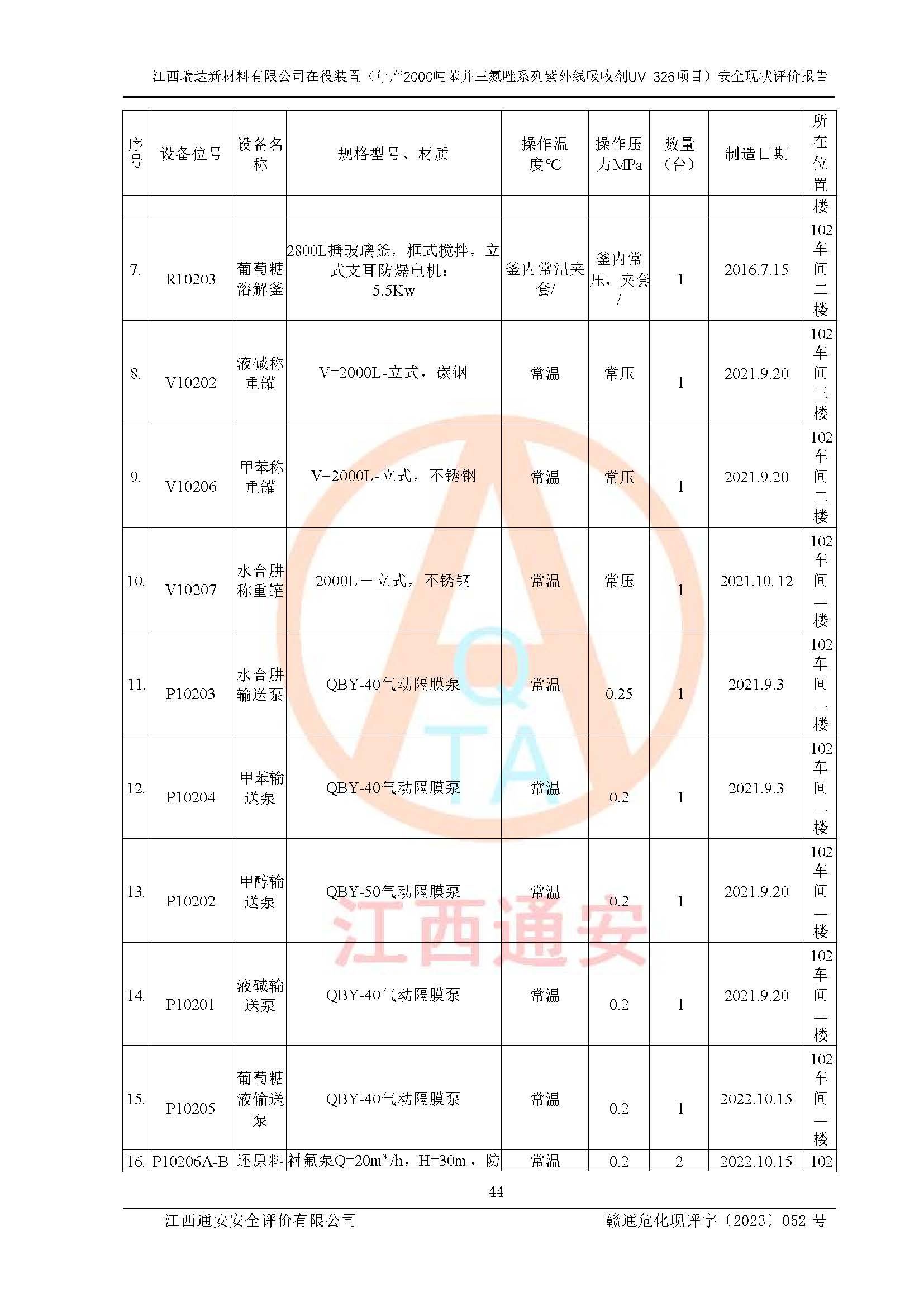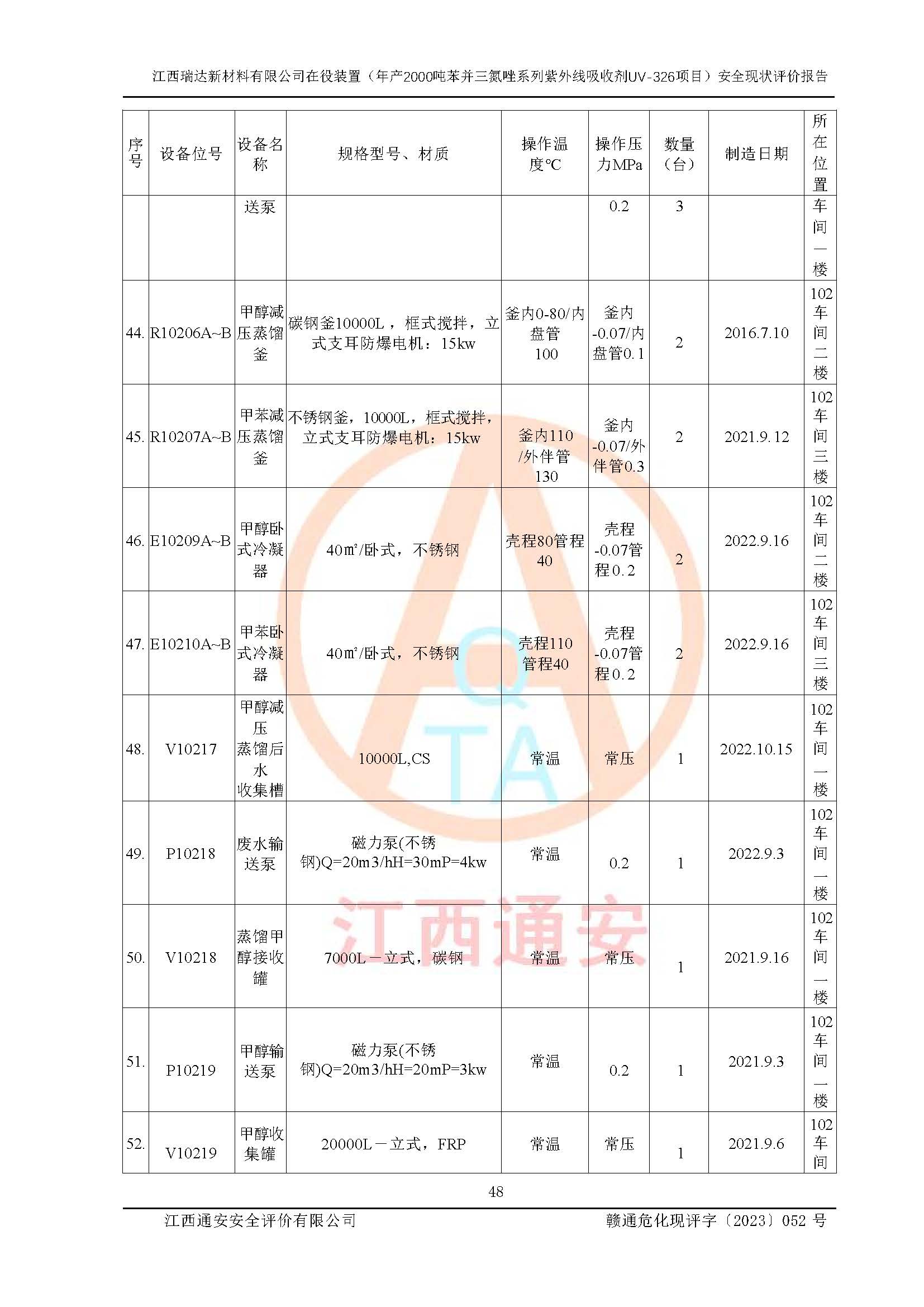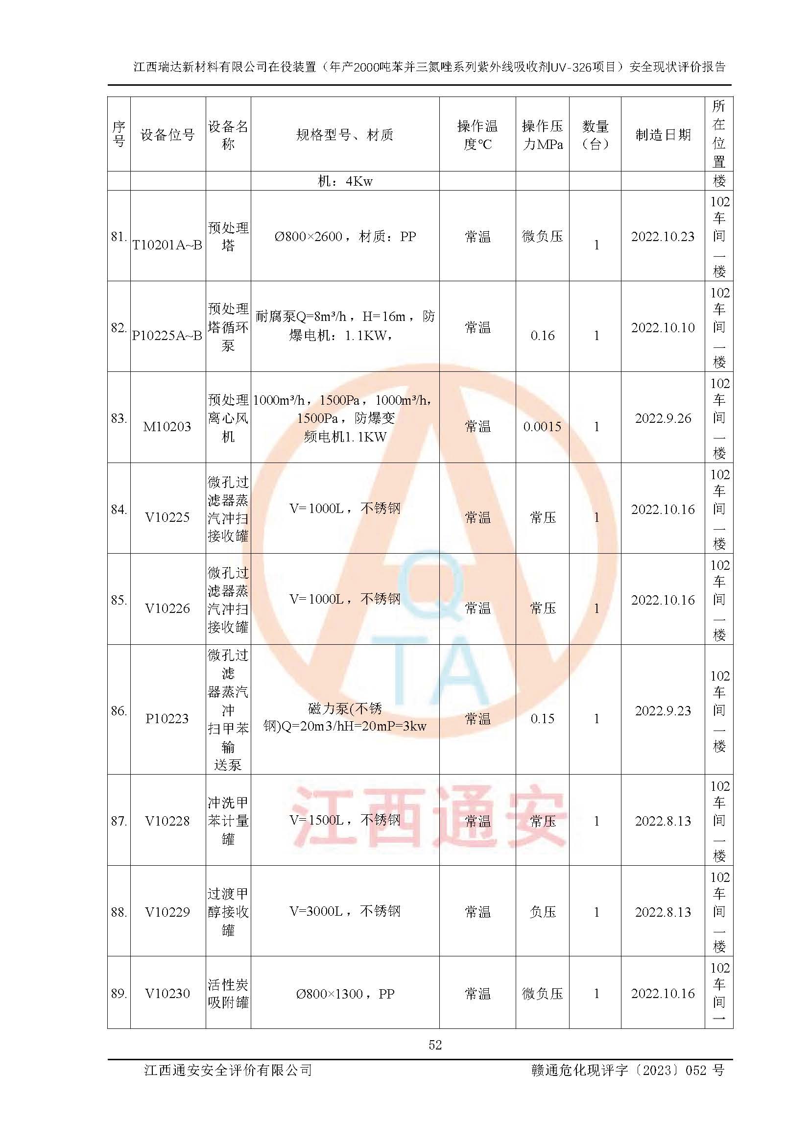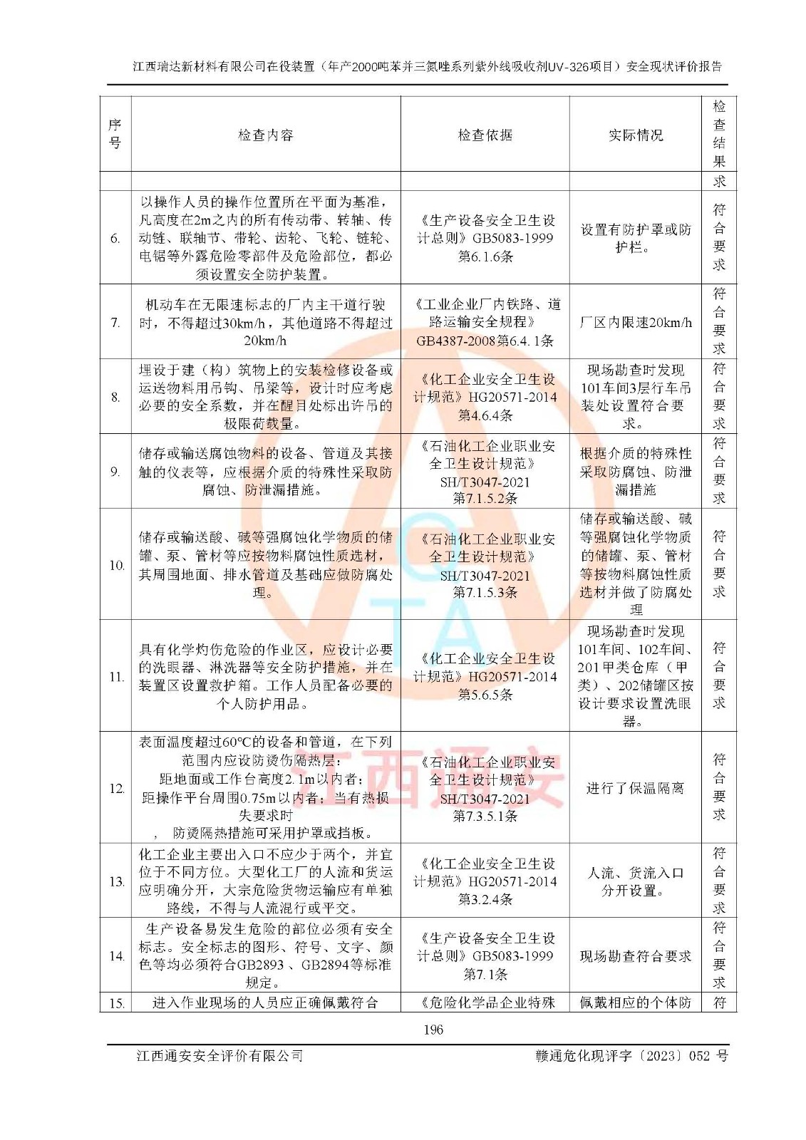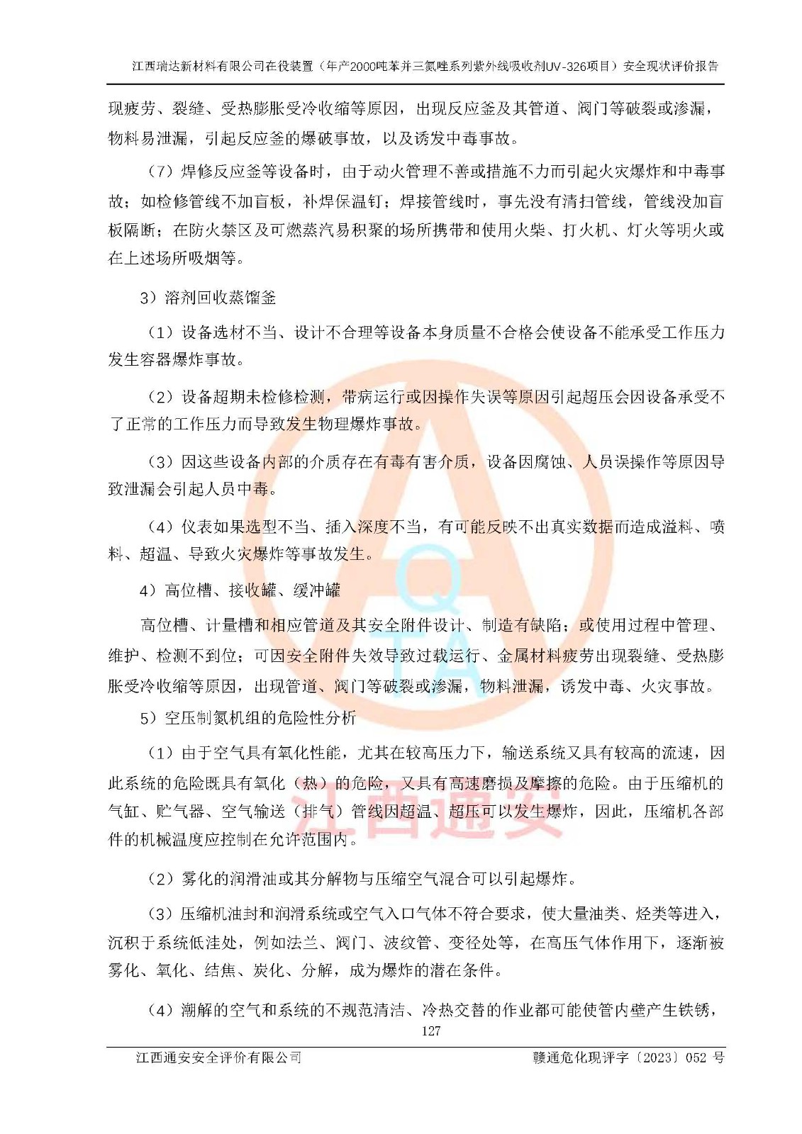 評價報告名稱 | 江西瑞達新材料有限公司年產(chǎn)2000噸苯并三氮唑系列紫外線吸收劑UV-326生產(chǎn)裝置技術(shù)改造項目安全驗收評價 | |||