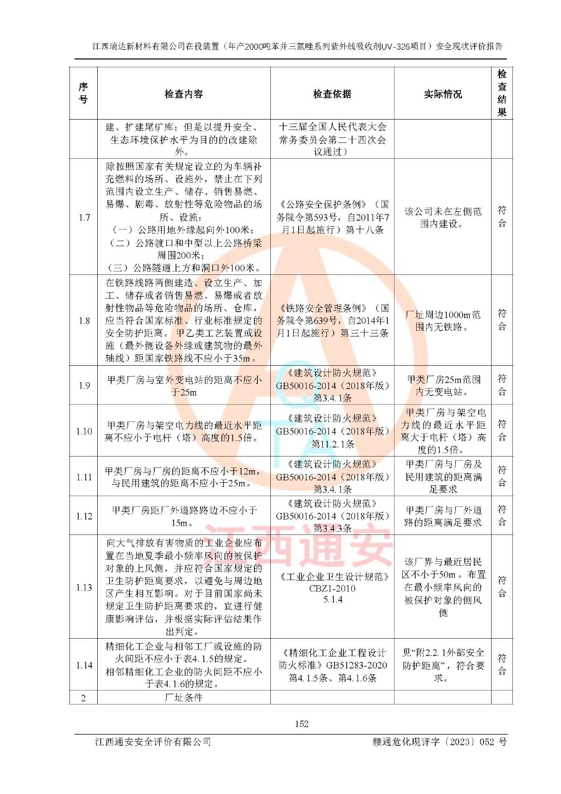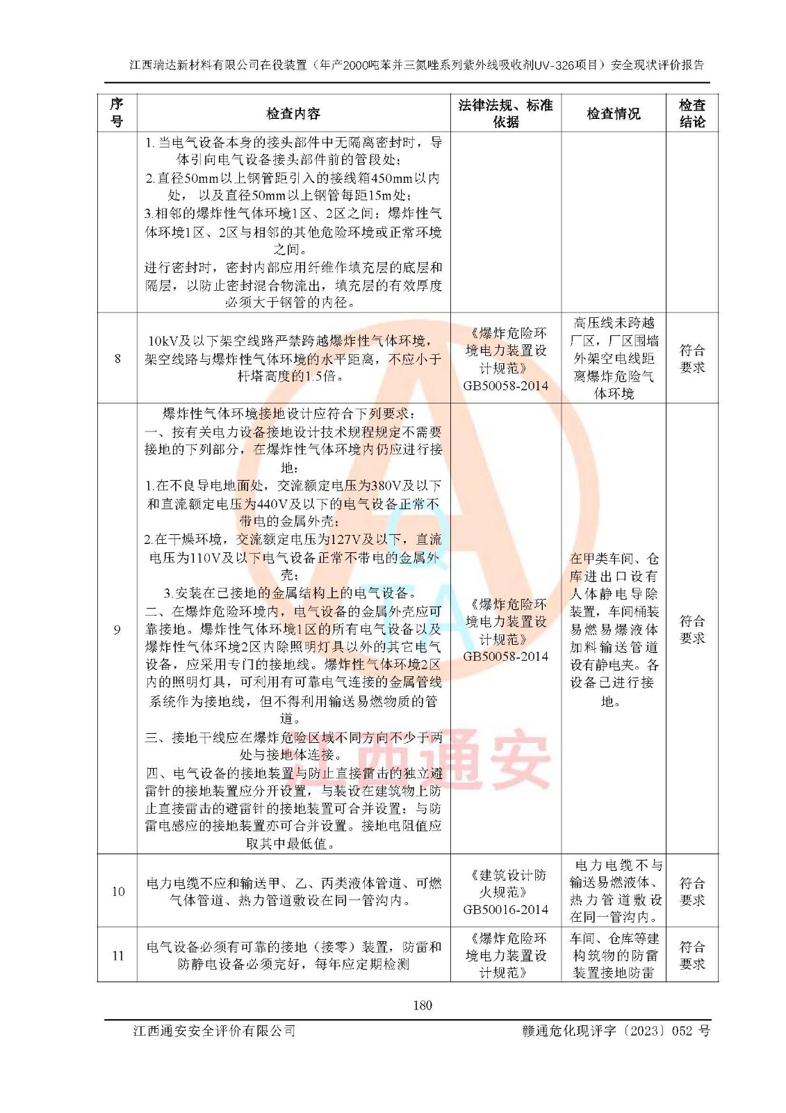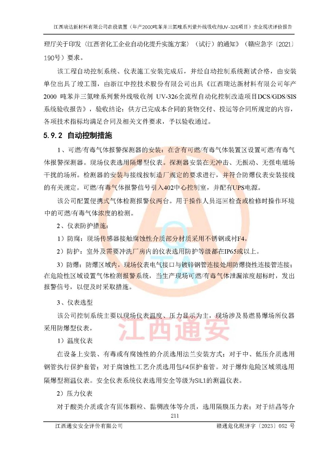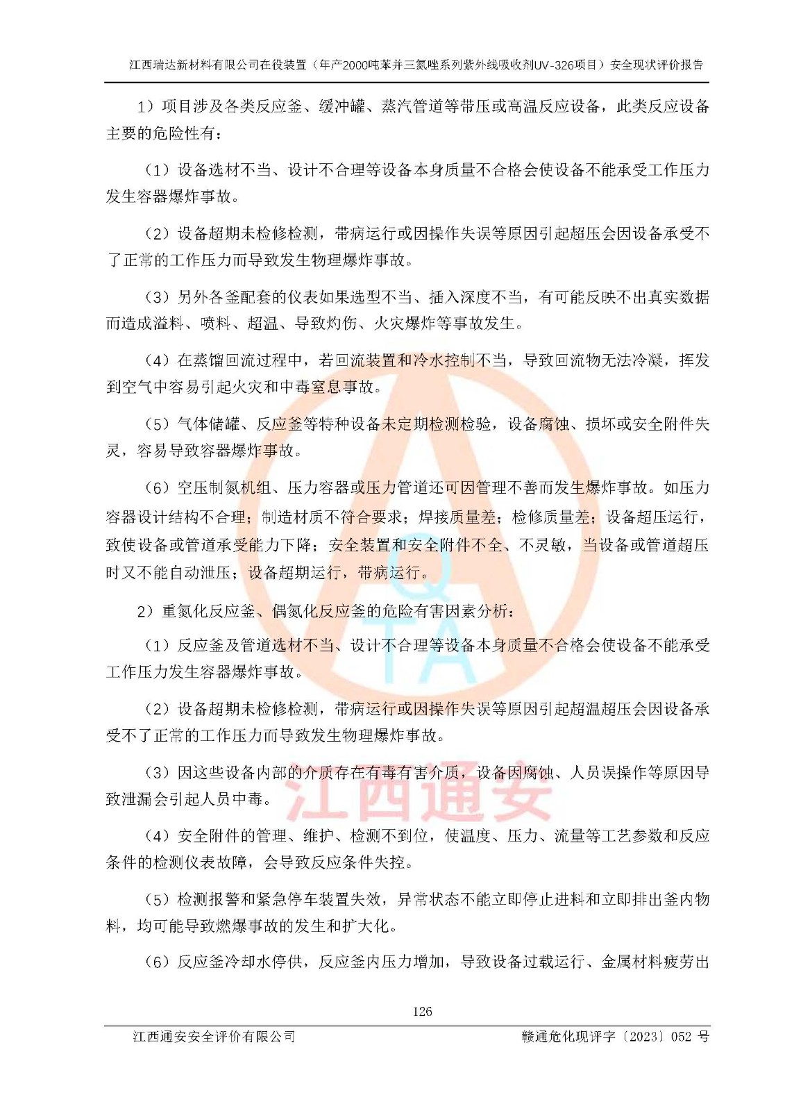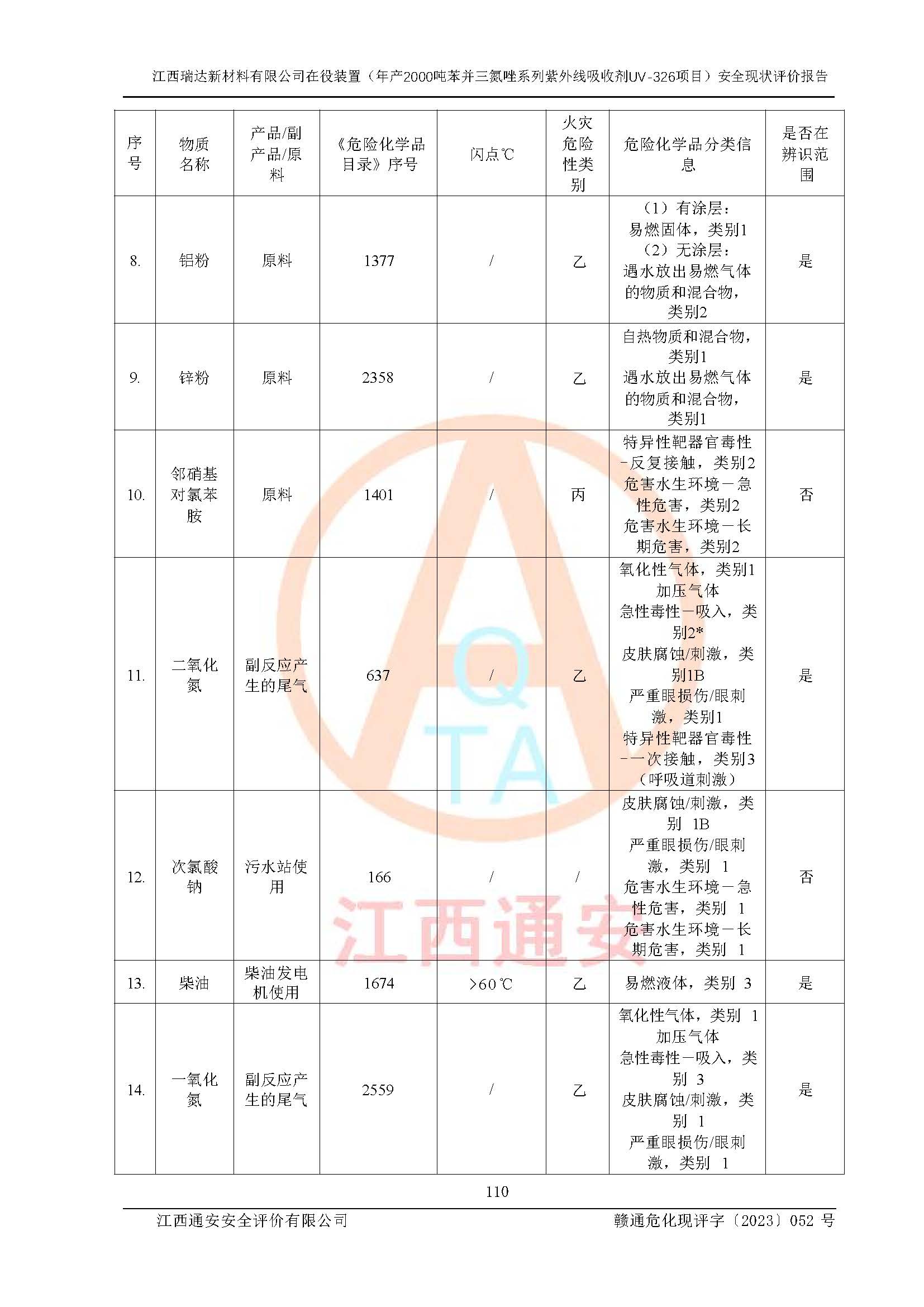 評價報告名稱 | 江西瑞達新材料有限公司年產(chǎn)2000噸苯并三氮唑系列紫外線吸收劑UV-326生產(chǎn)裝置技術(shù)改造項目安全驗收評價 | |||