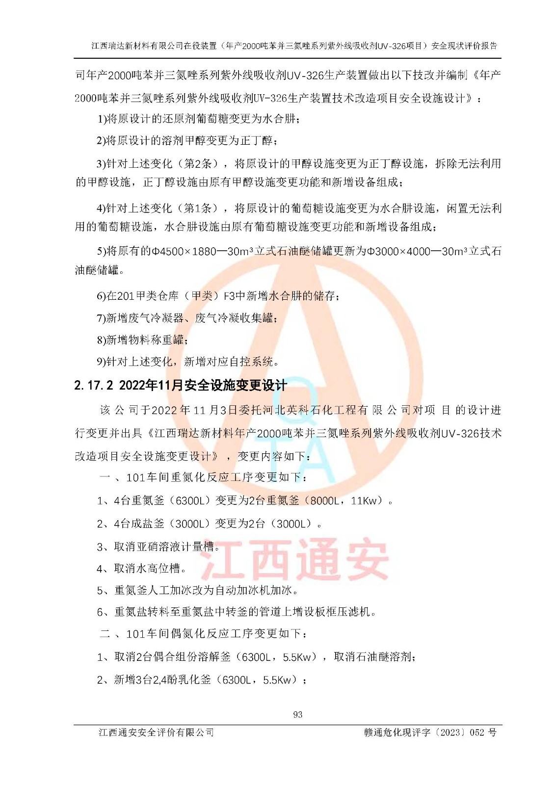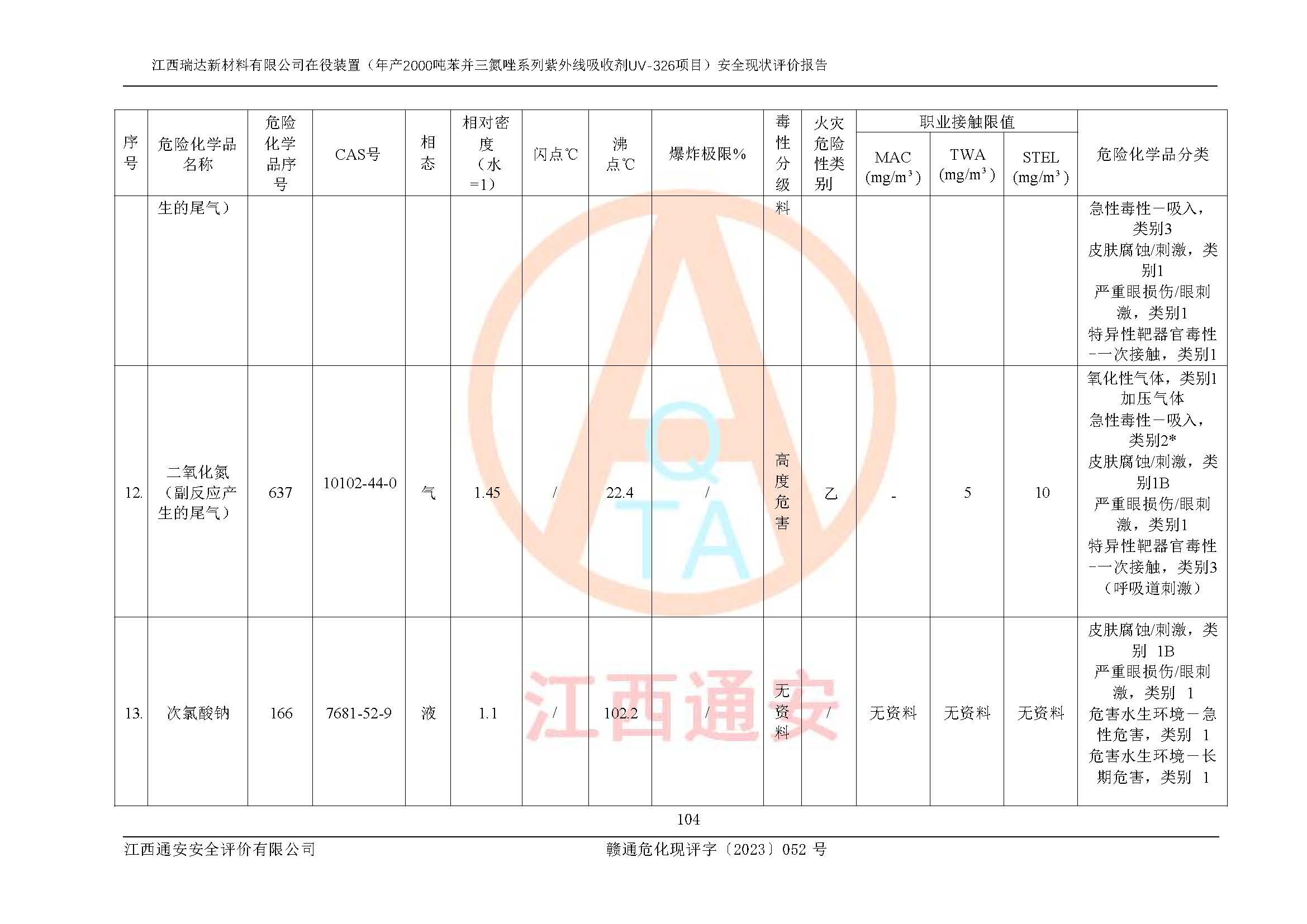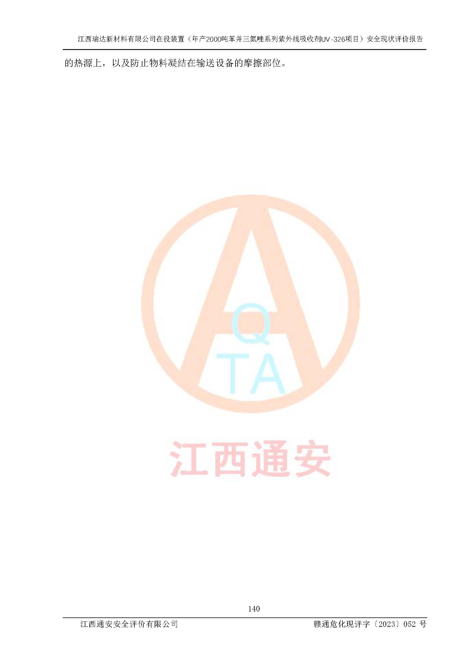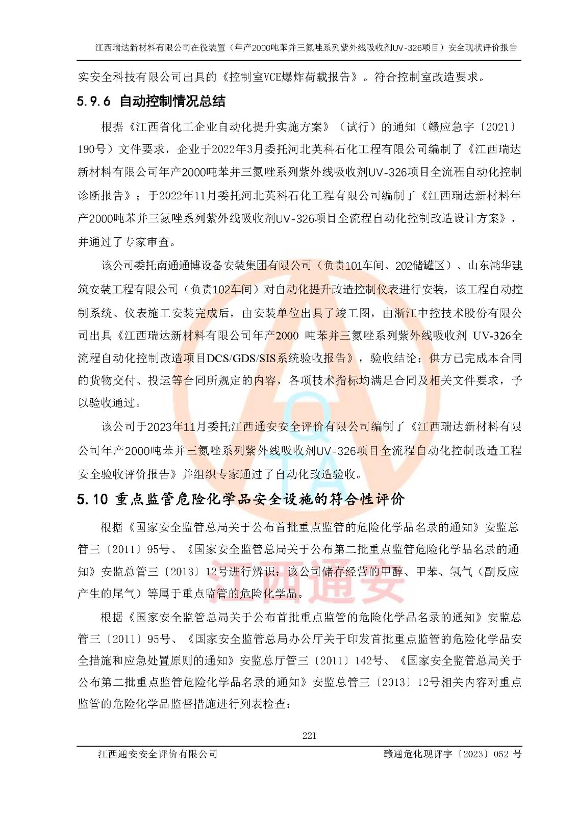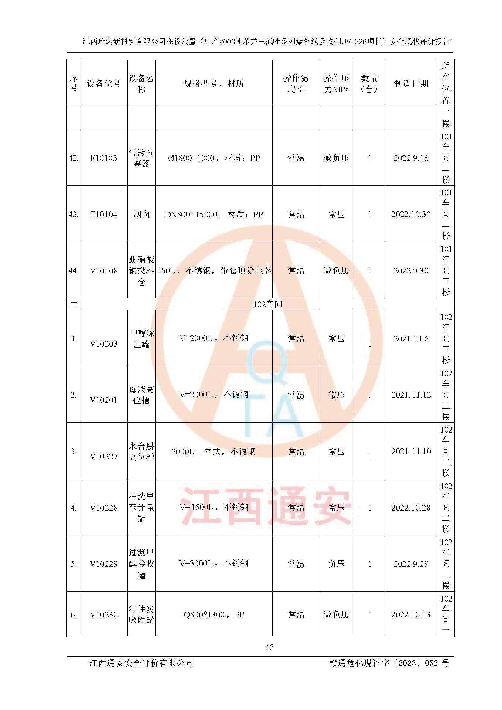 評價報告名稱 | 江西瑞達新材料有限公司年產(chǎn)2000噸苯并三氮唑系列紫外線吸收劑UV-326生產(chǎn)裝置技術(shù)改造項目安全驗收評價 | |||