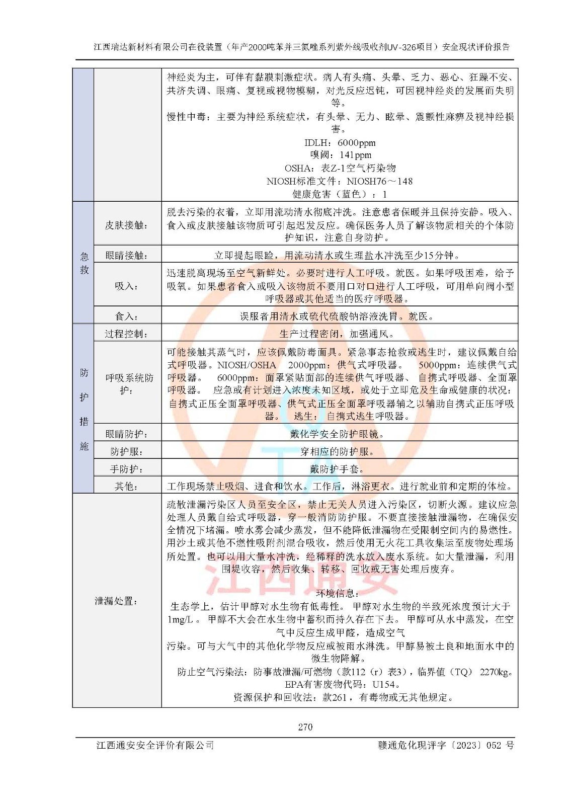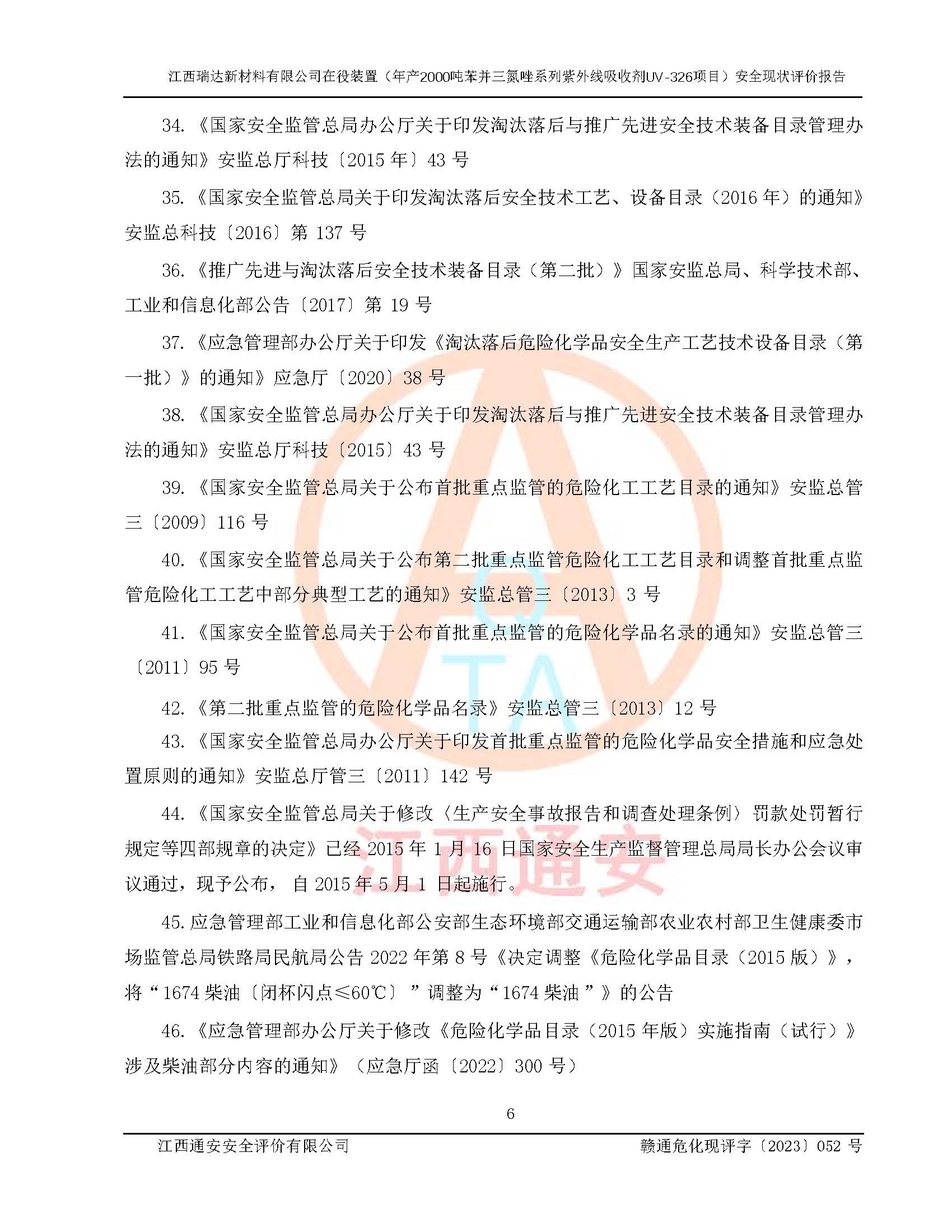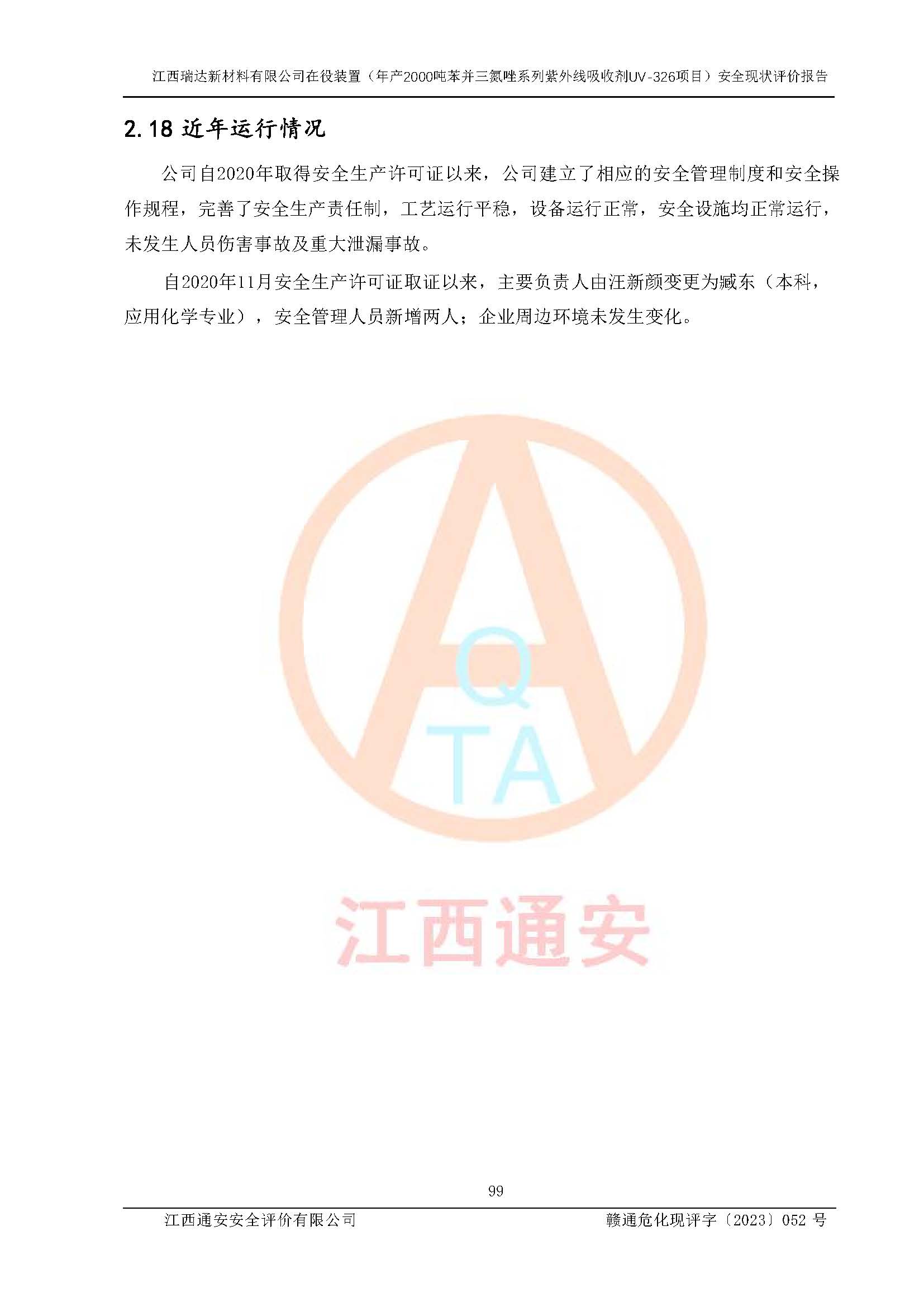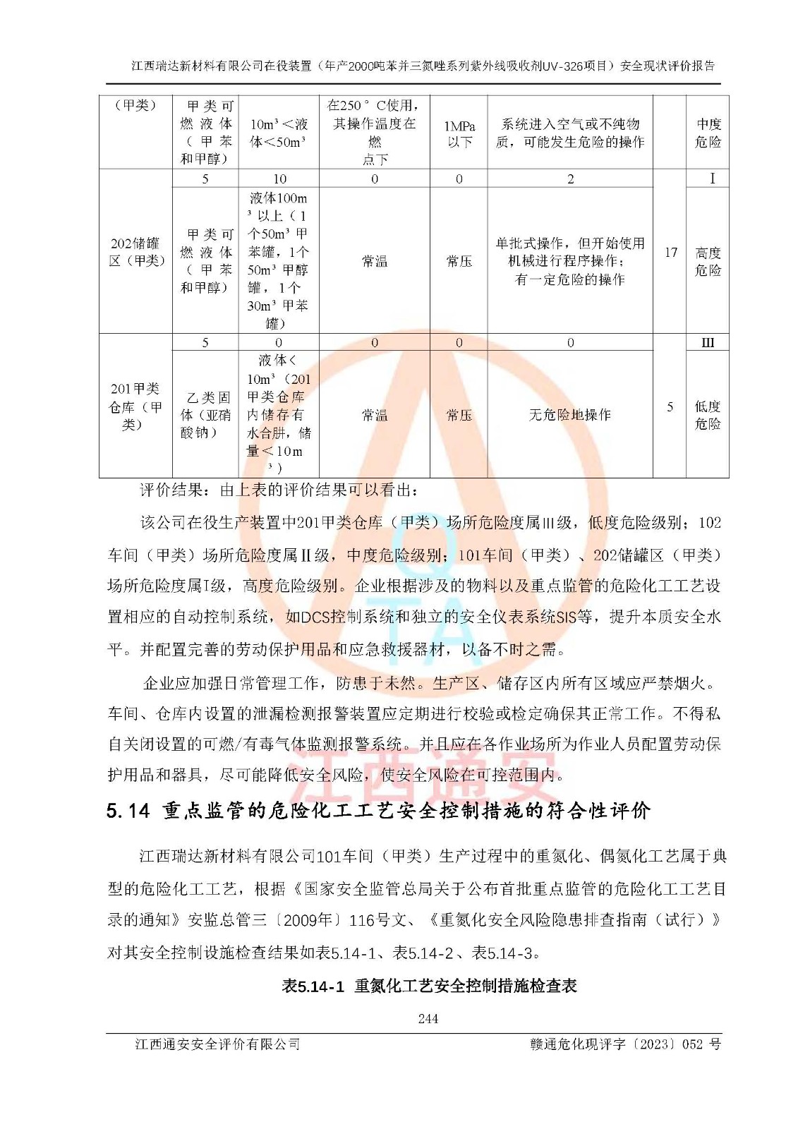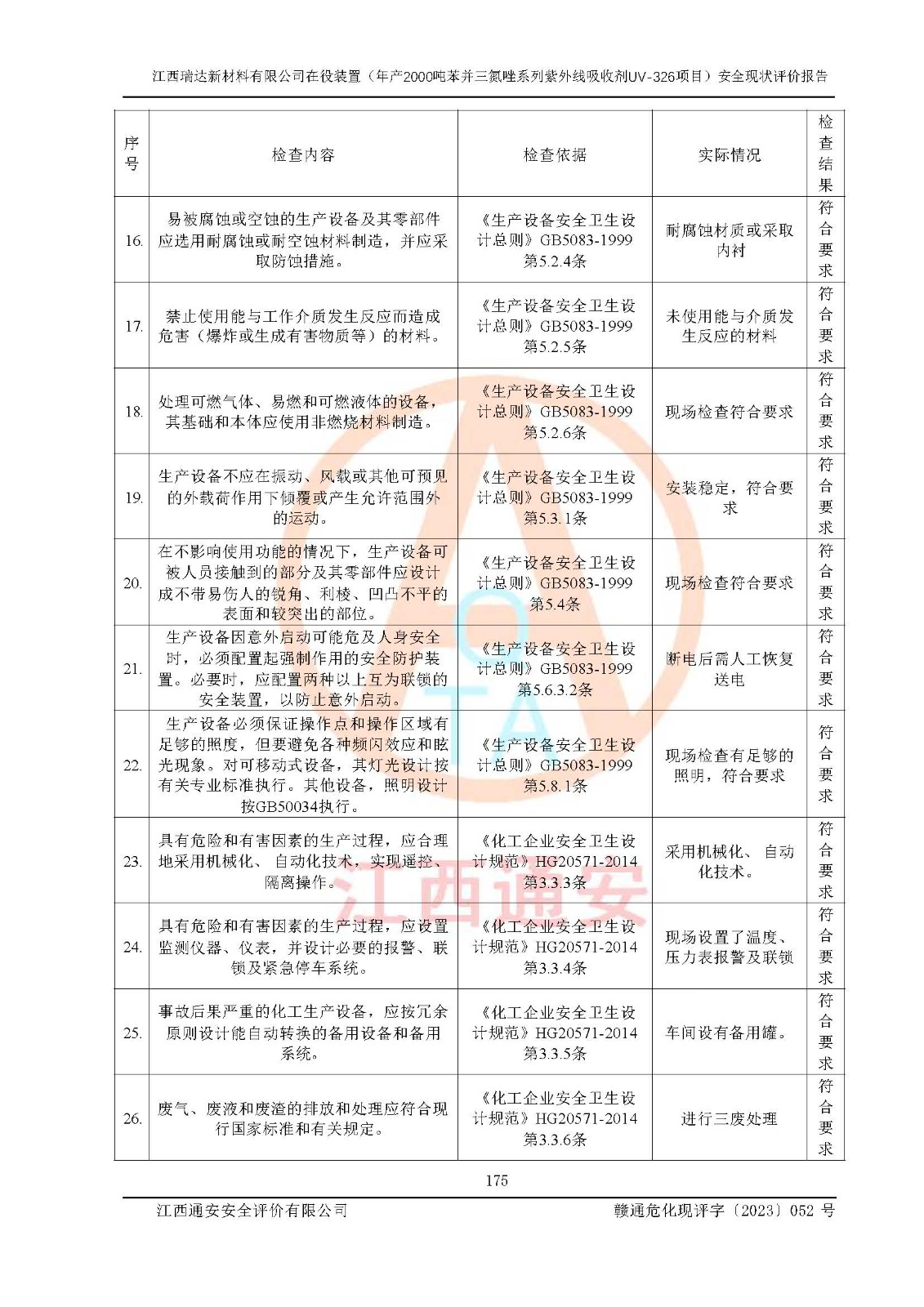 評價報告名稱 | 江西瑞達新材料有限公司年產(chǎn)2000噸苯并三氮唑系列紫外線吸收劑UV-326生產(chǎn)裝置技術(shù)改造項目安全驗收評價 | |||