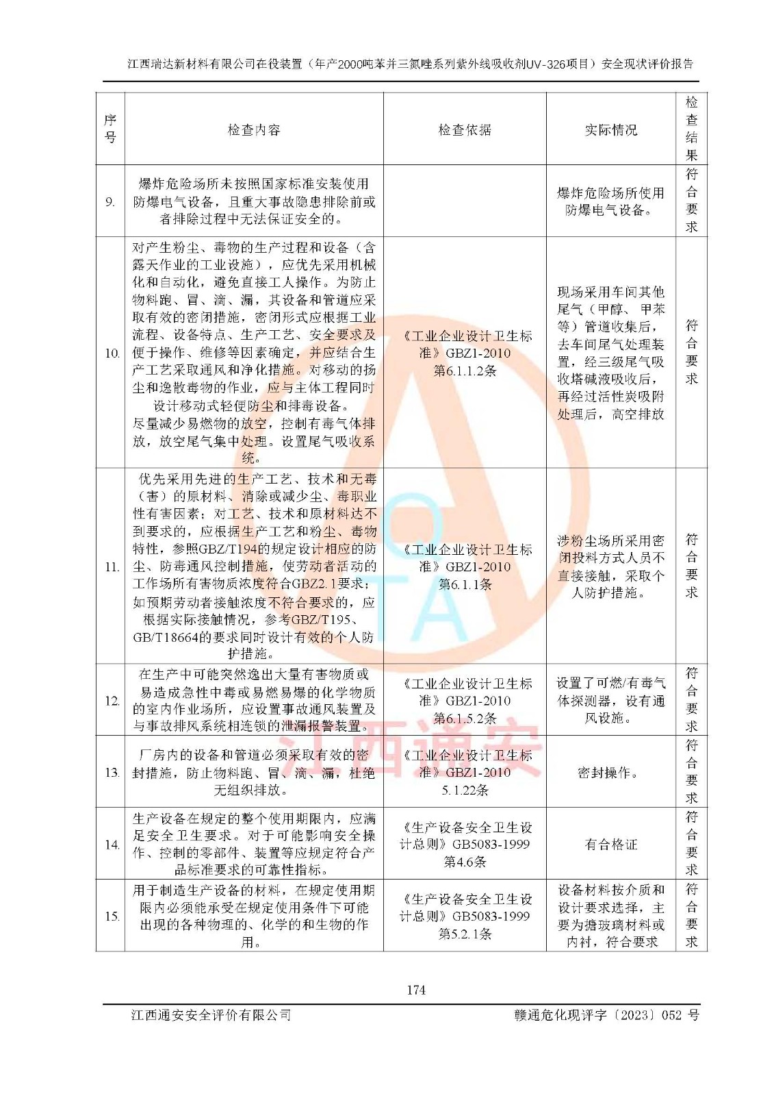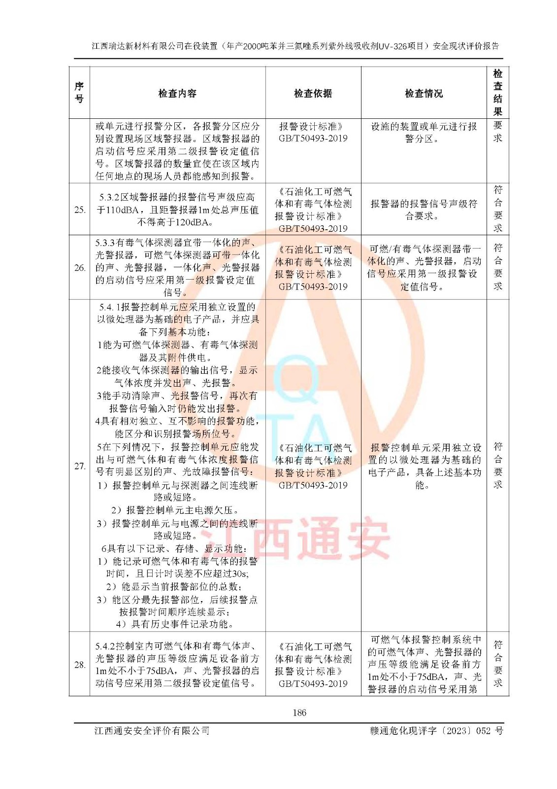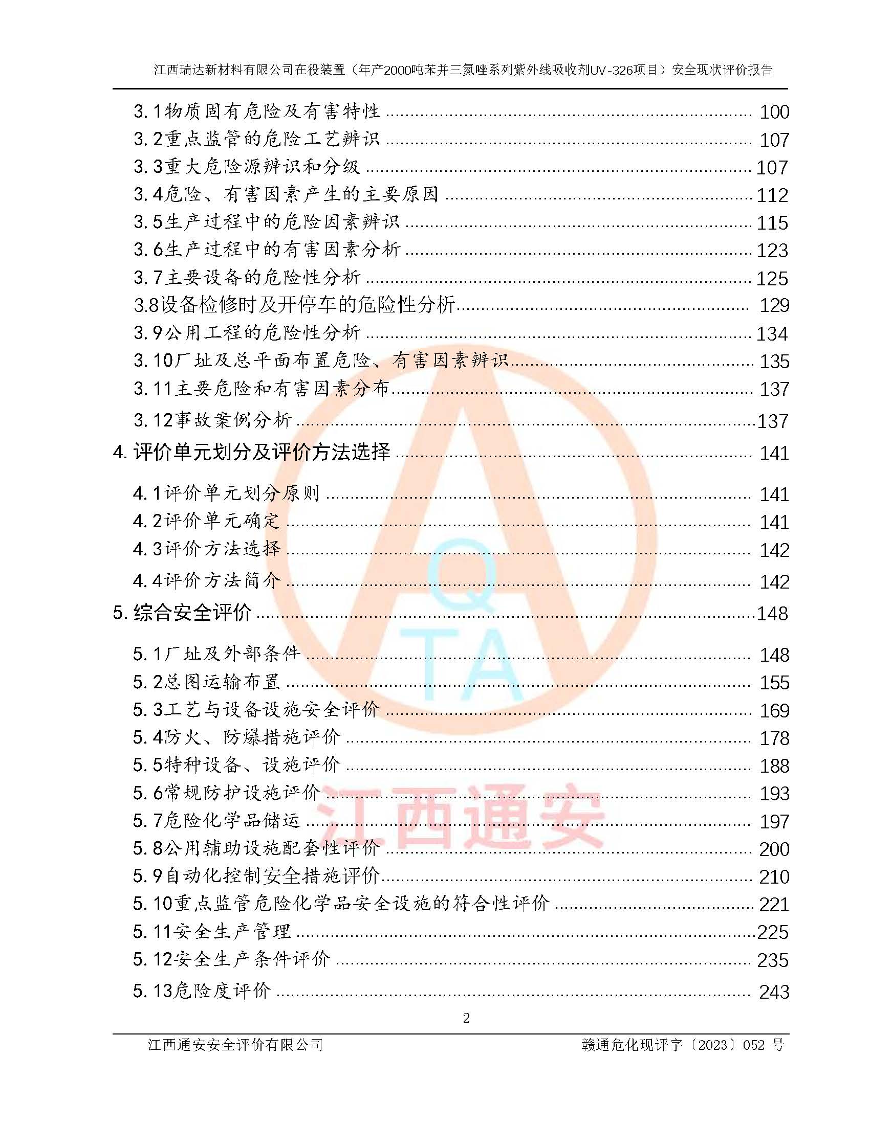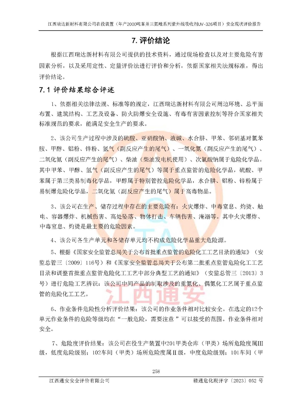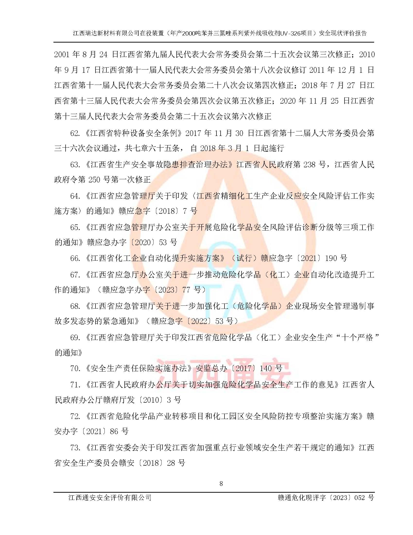 評價報告名稱 | 江西瑞達新材料有限公司年產(chǎn)2000噸苯并三氮唑系列紫外線吸收劑UV-326生產(chǎn)裝置技術(shù)改造項目安全驗收評價 | |||
