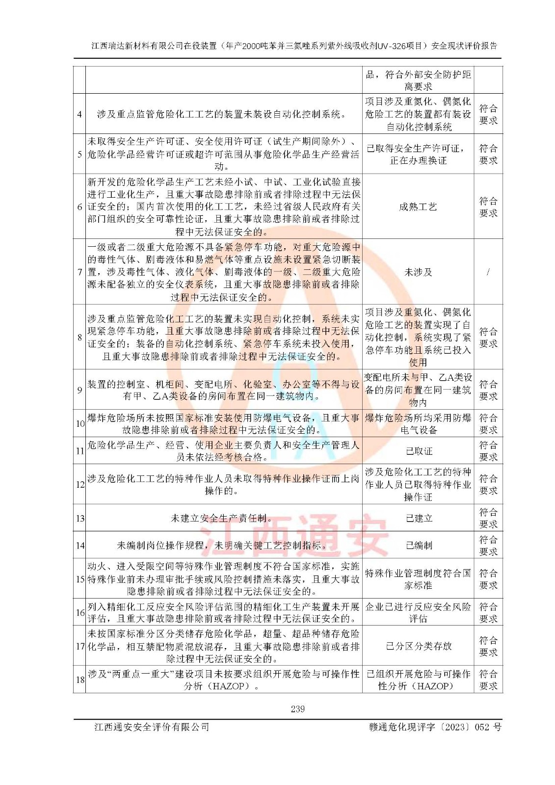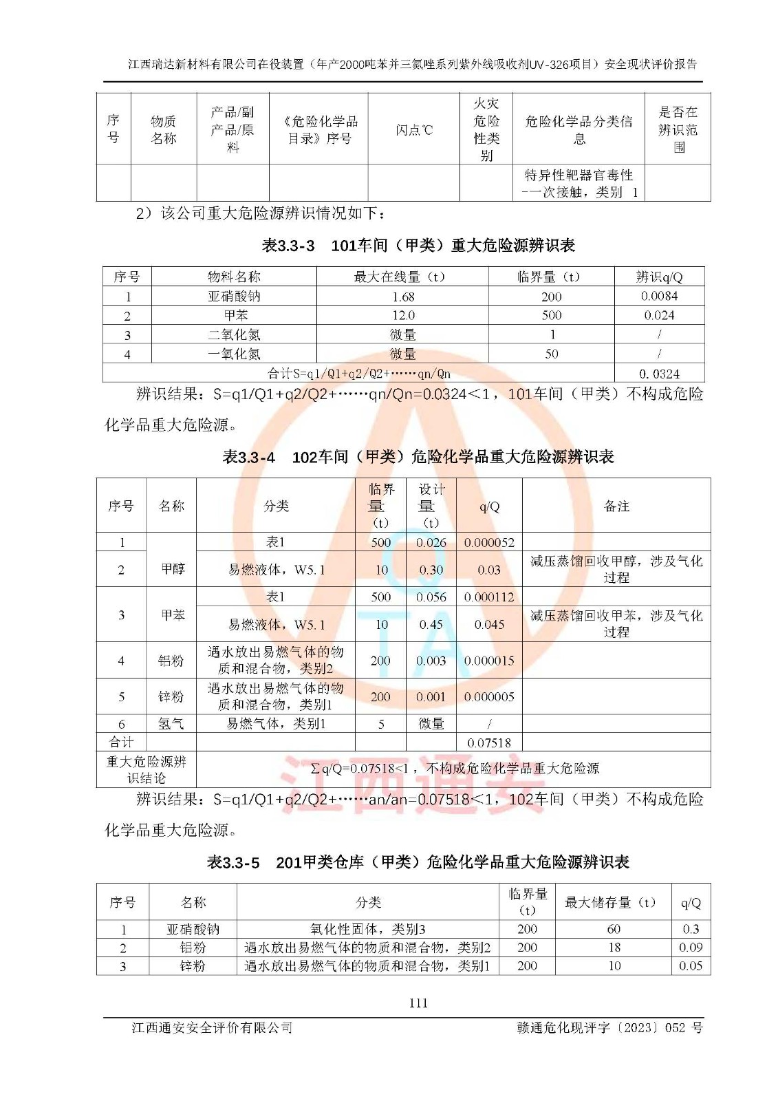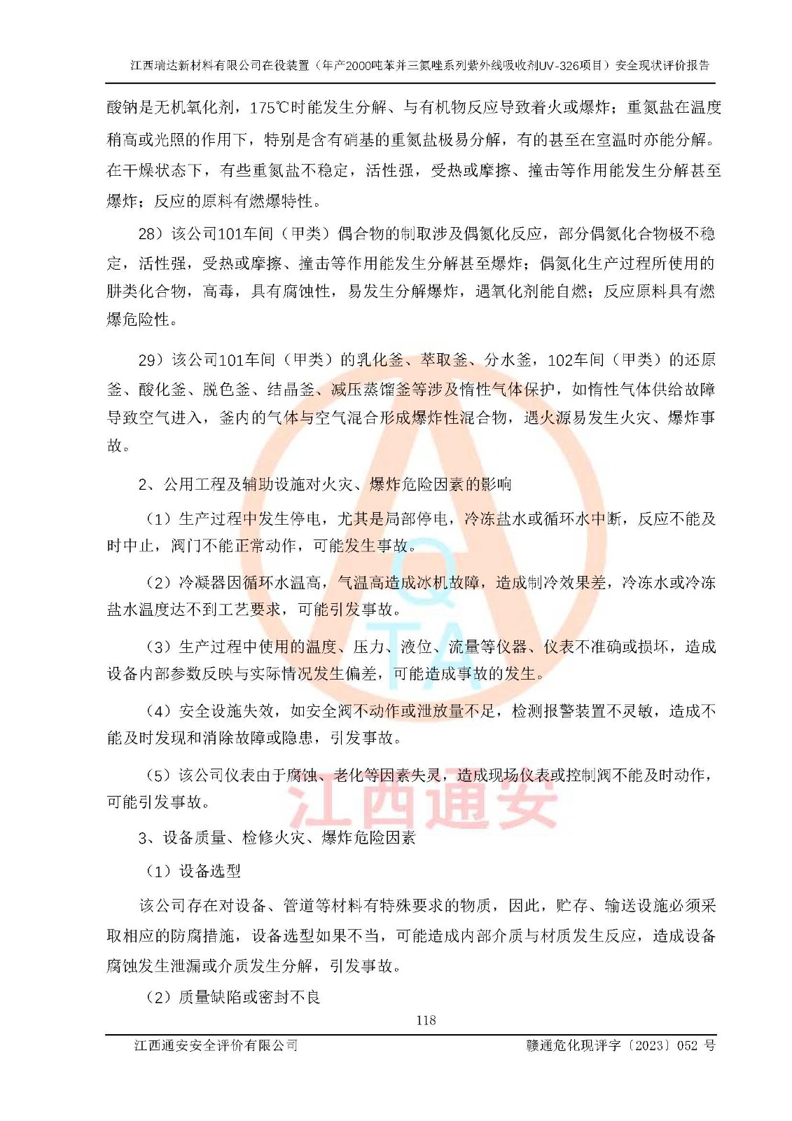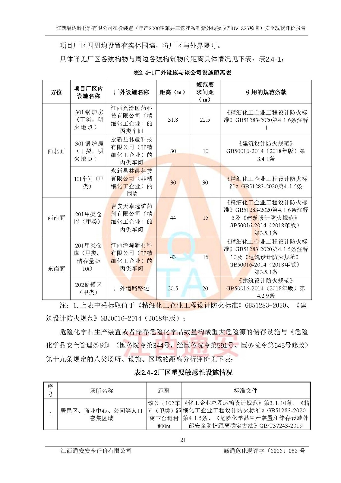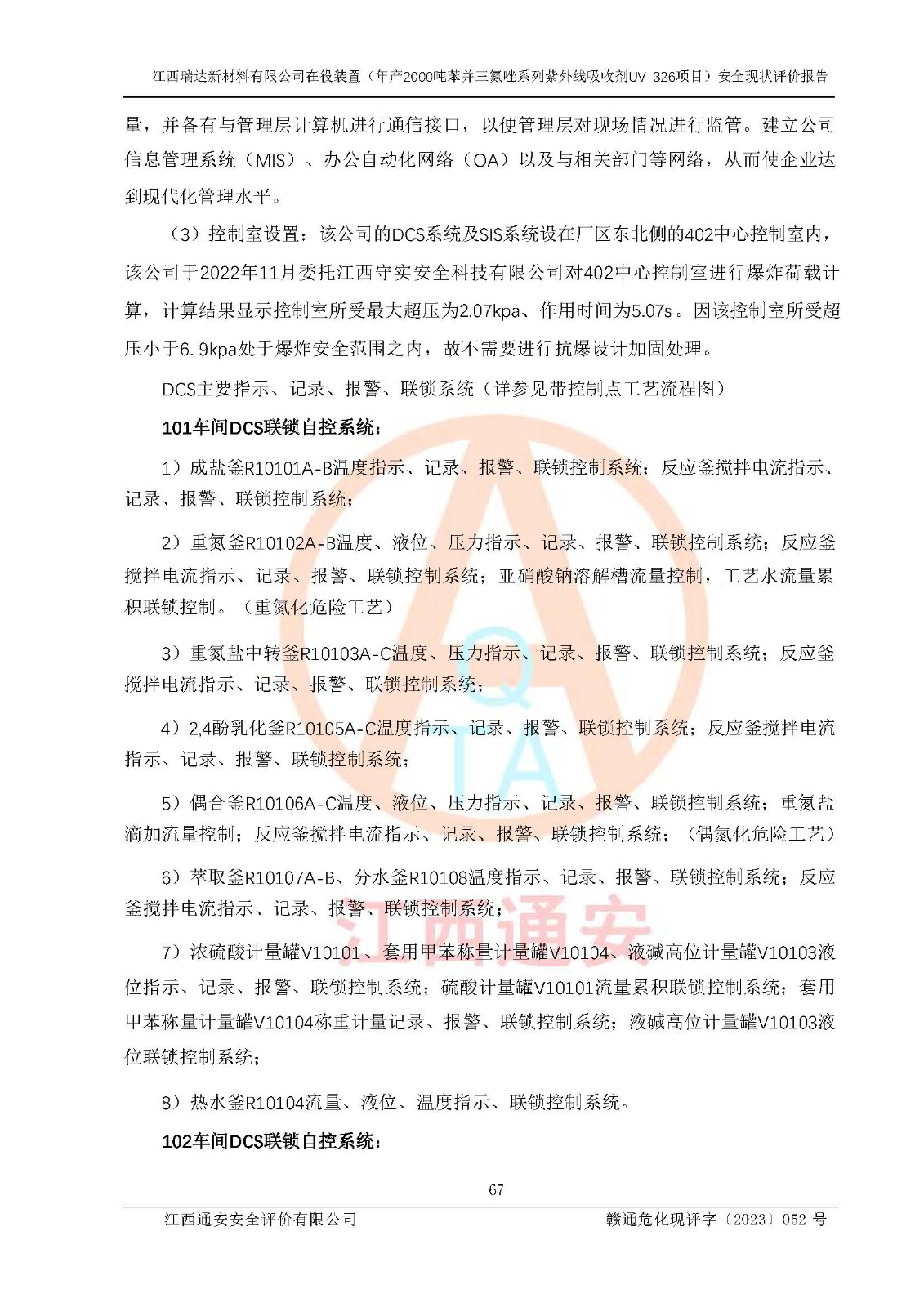 評價報告名稱 | 江西瑞達新材料有限公司年產(chǎn)2000噸苯并三氮唑系列紫外線吸收劑UV-326生產(chǎn)裝置技術(shù)改造項目安全驗收評價 | |||