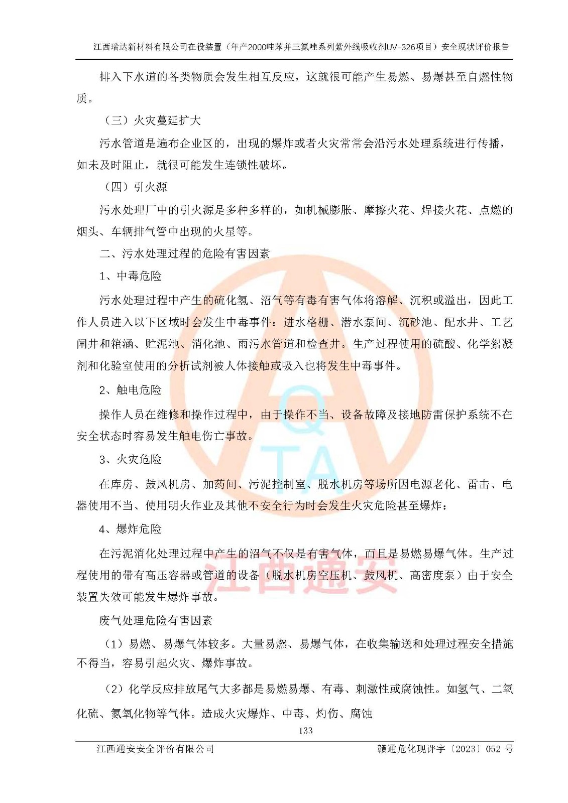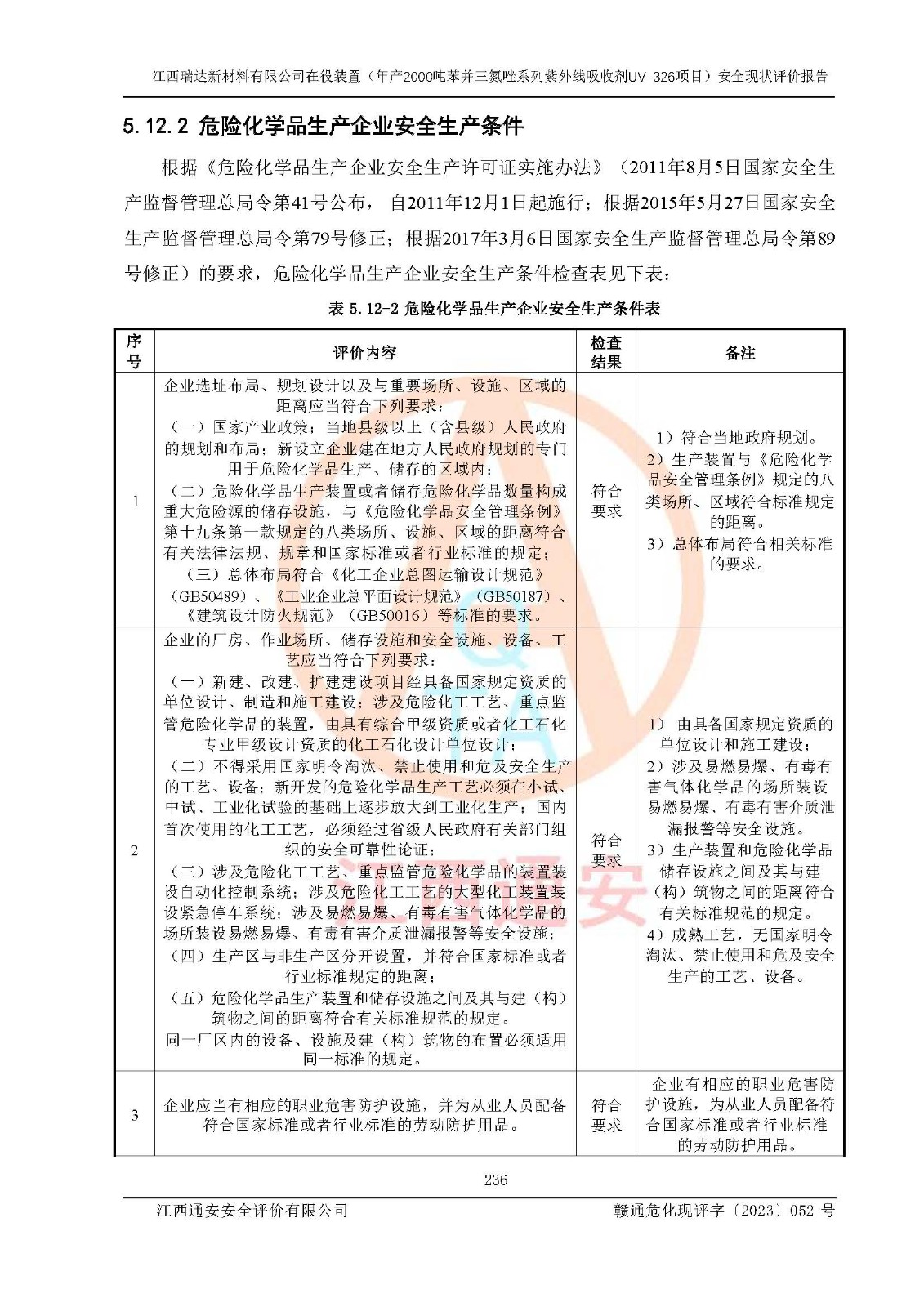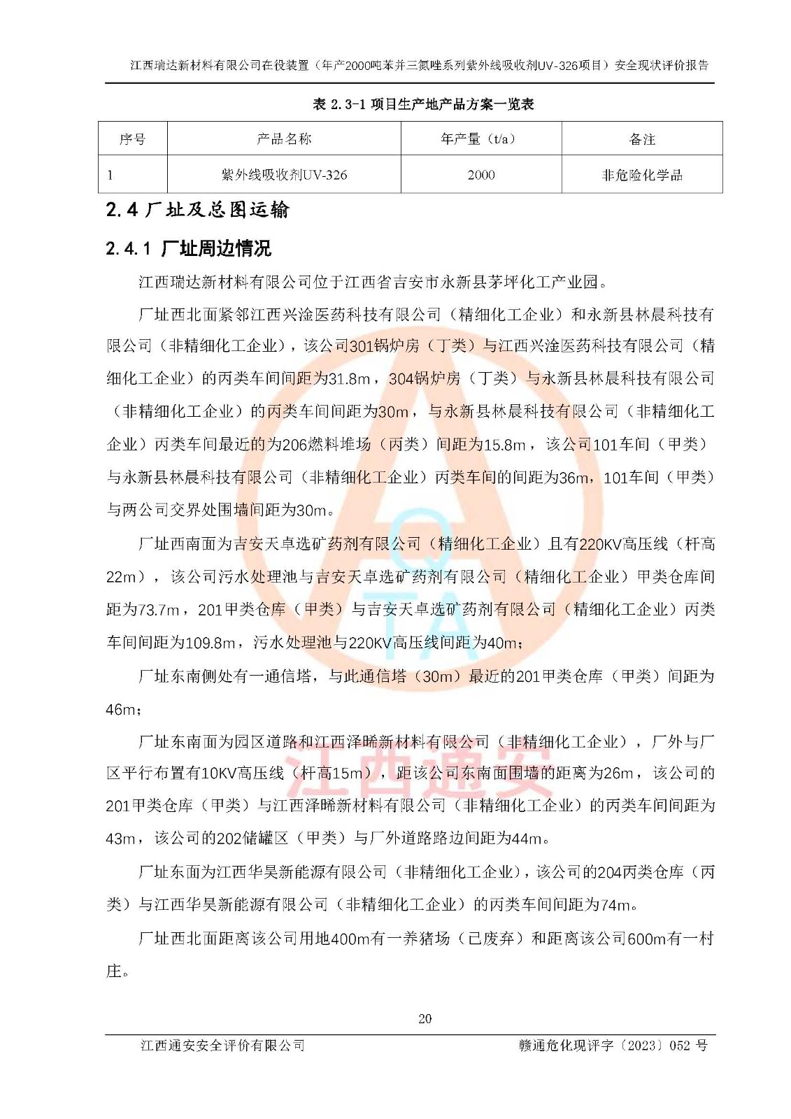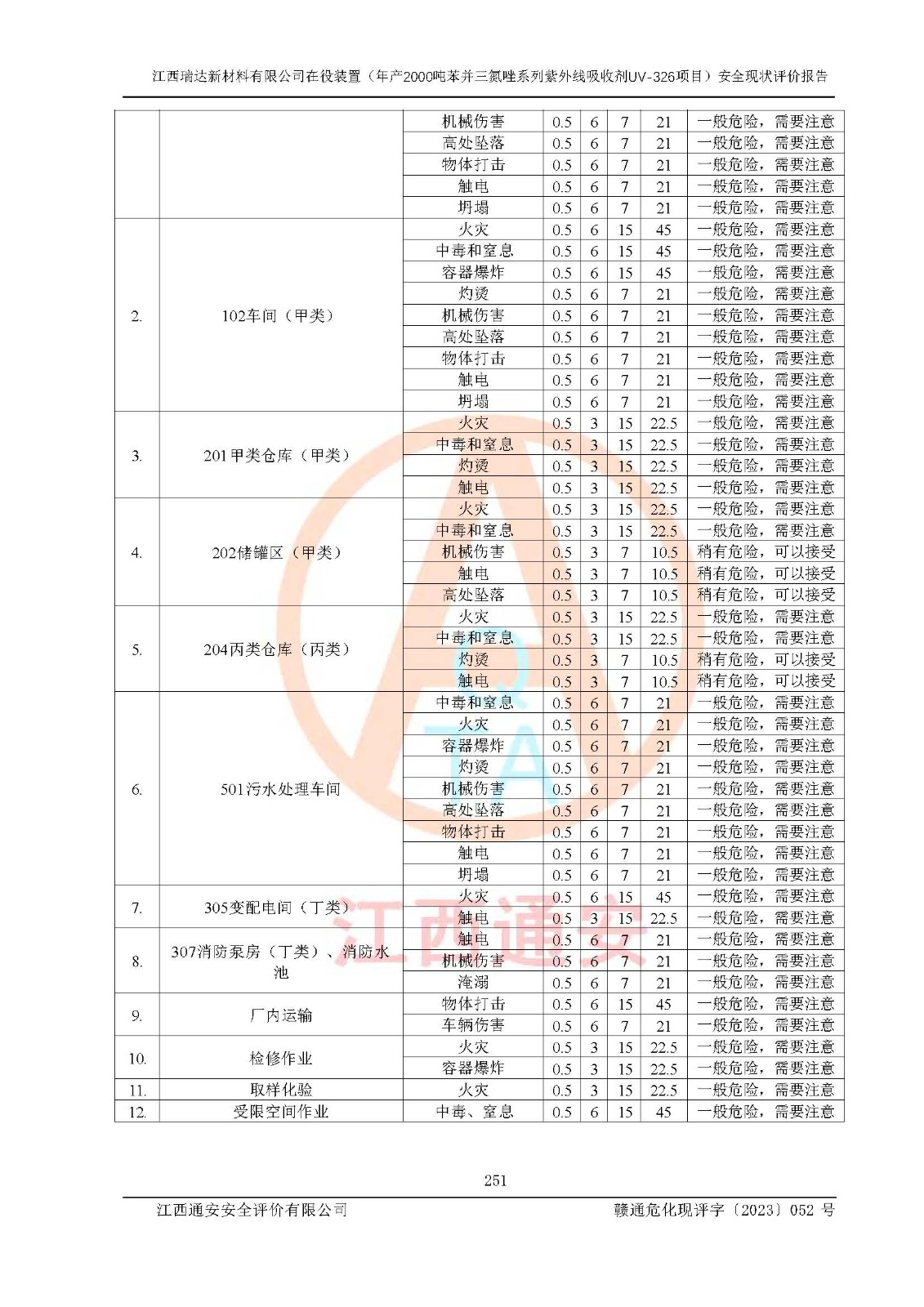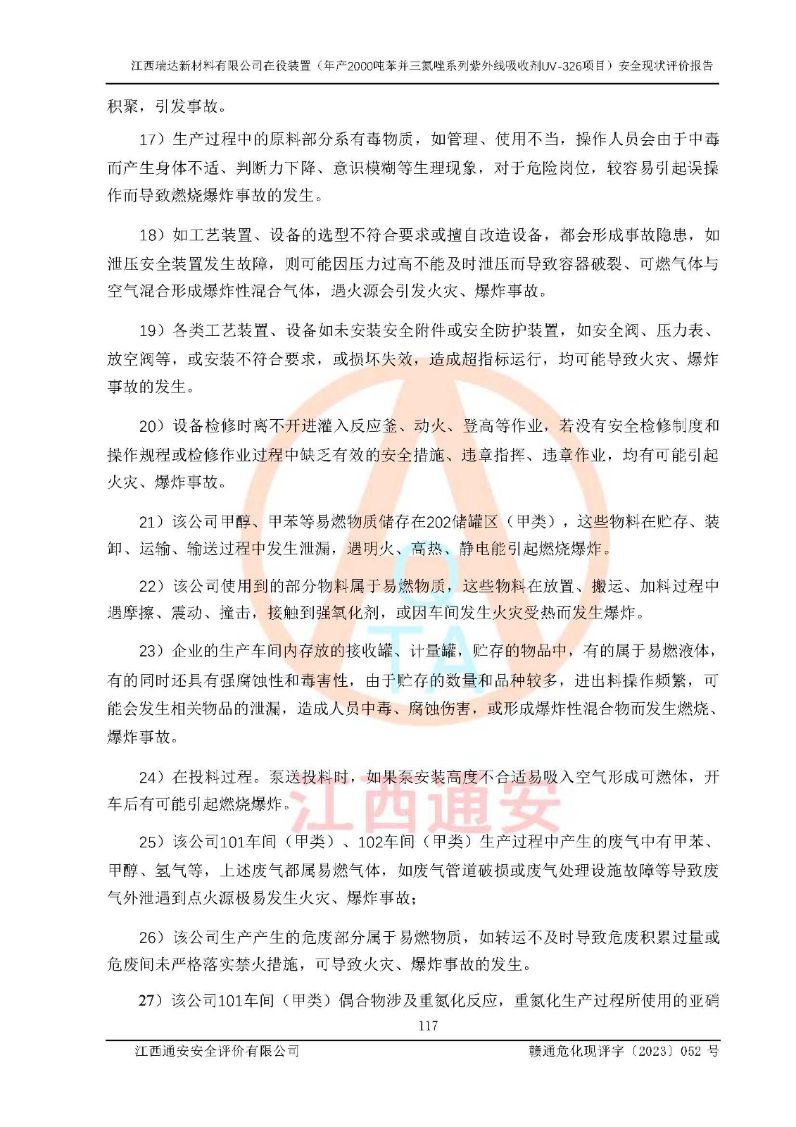 評價報告名稱 | 江西瑞達新材料有限公司年產(chǎn)2000噸苯并三氮唑系列紫外線吸收劑UV-326生產(chǎn)裝置技術(shù)改造項目安全驗收評價 | |||