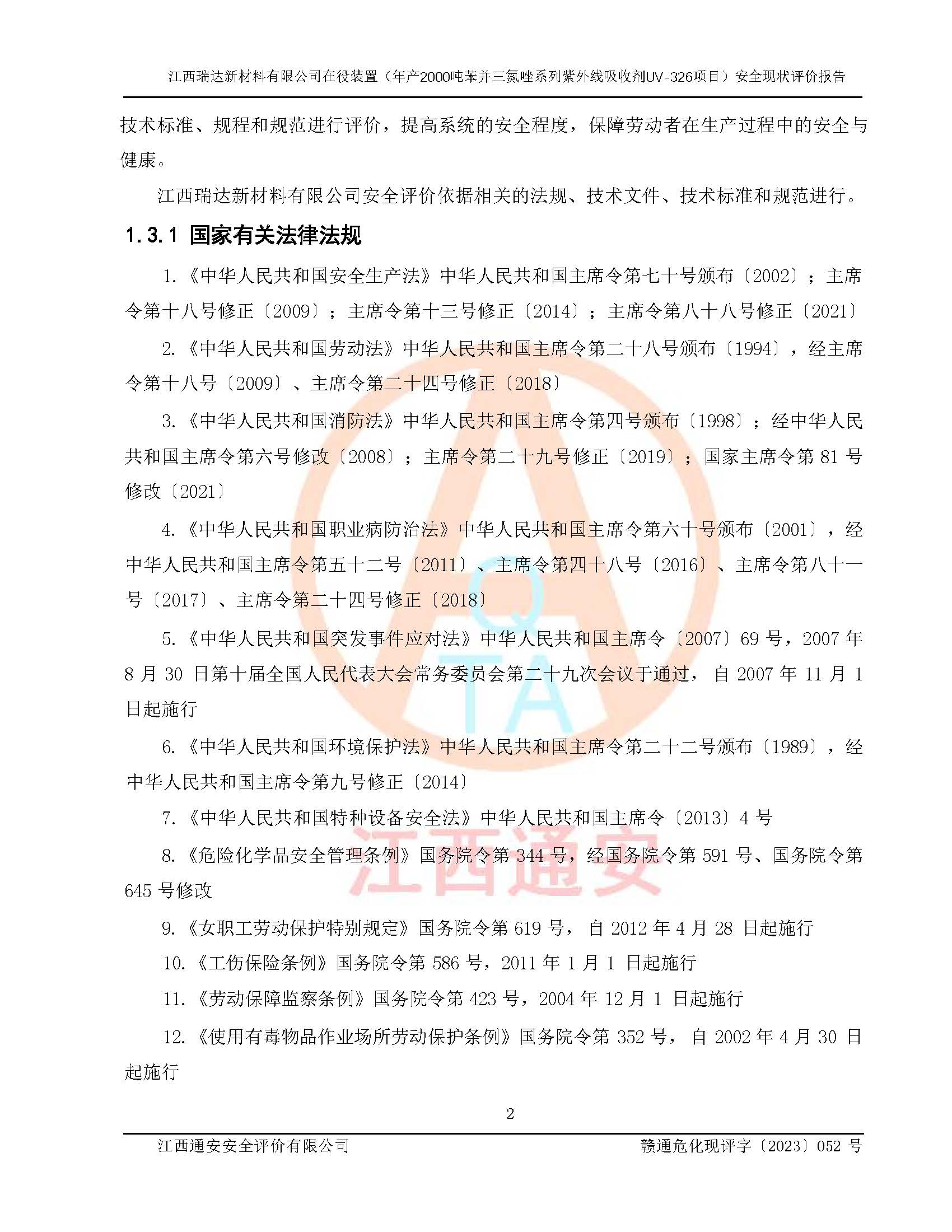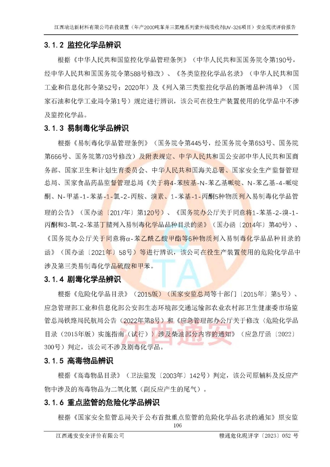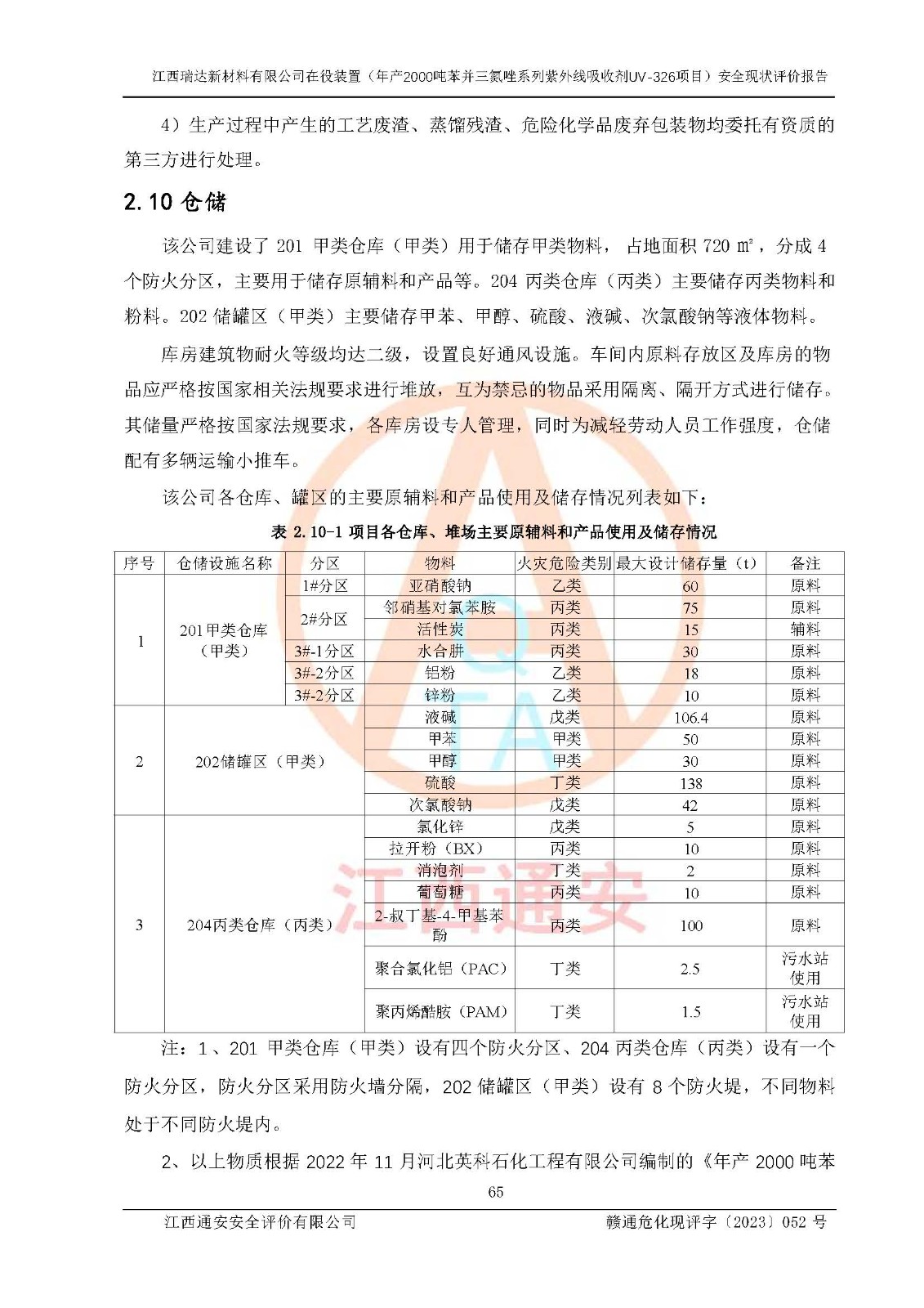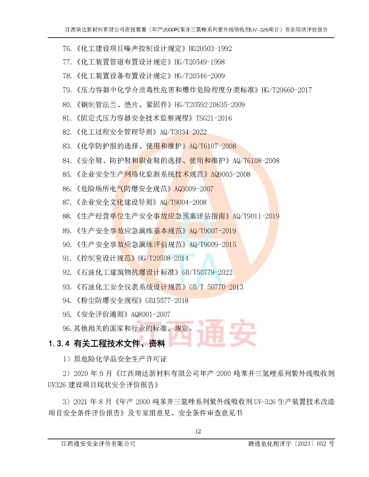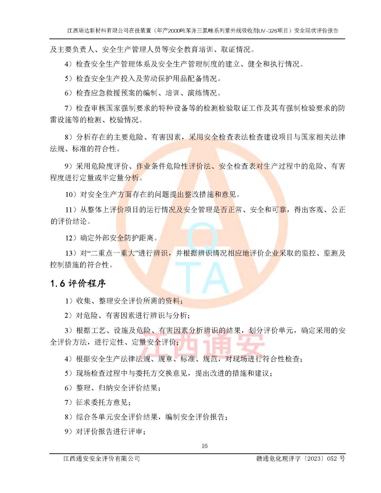 評價報告名稱 | 江西瑞達新材料有限公司年產(chǎn)2000噸苯并三氮唑系列紫外線吸收劑UV-326生產(chǎn)裝置技術(shù)改造項目安全驗收評價 | |||