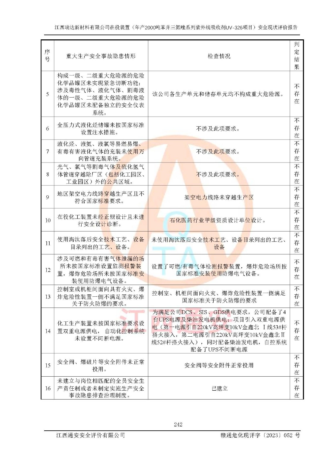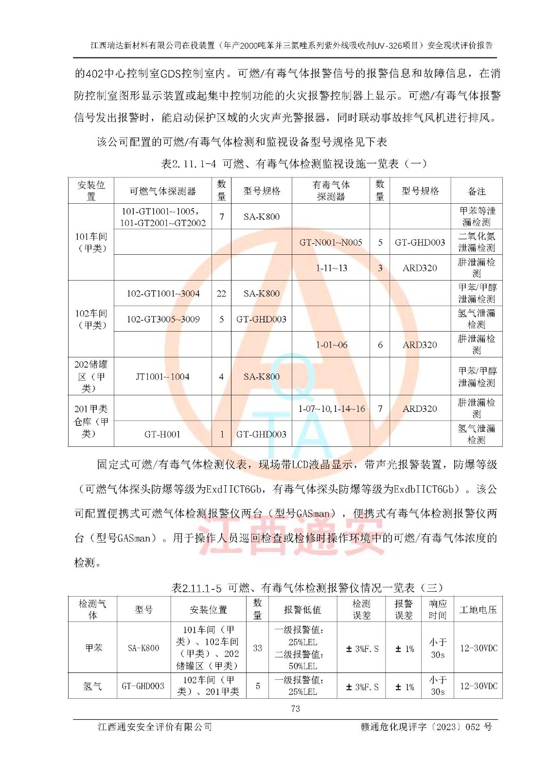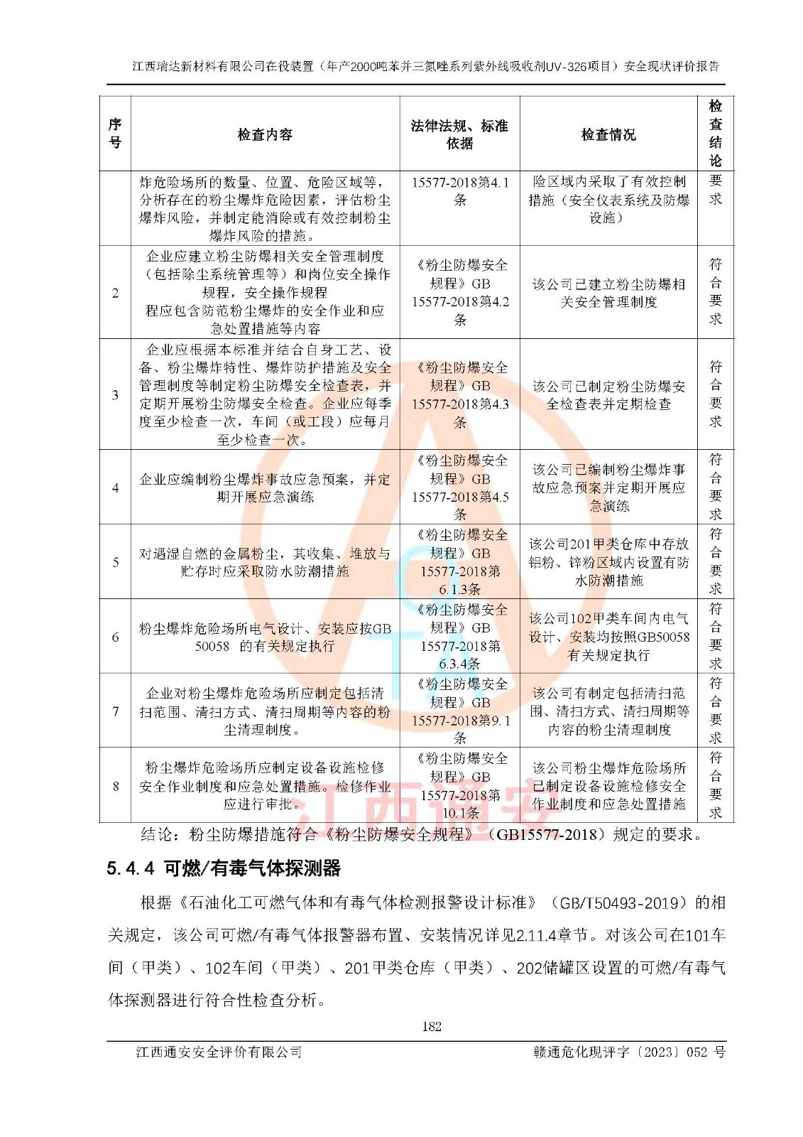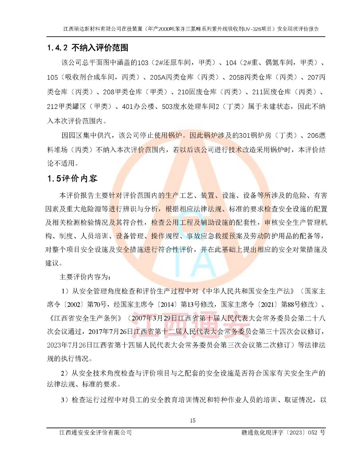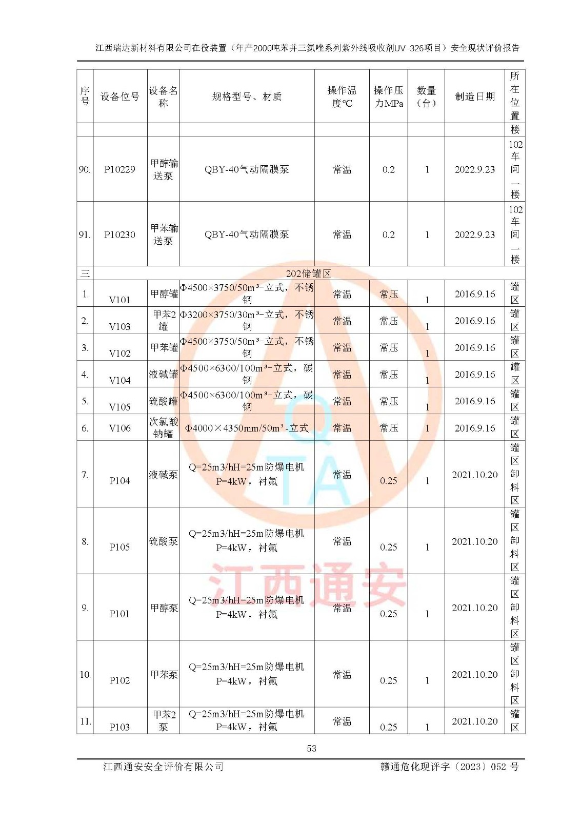 評價報告名稱 | 江西瑞達新材料有限公司年產(chǎn)2000噸苯并三氮唑系列紫外線吸收劑UV-326生產(chǎn)裝置技術(shù)改造項目安全驗收評價 | |||