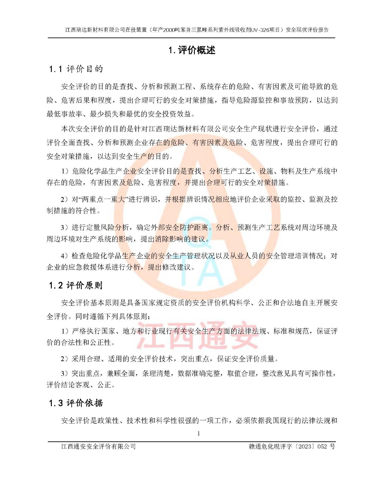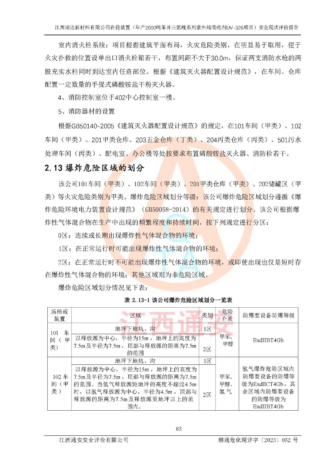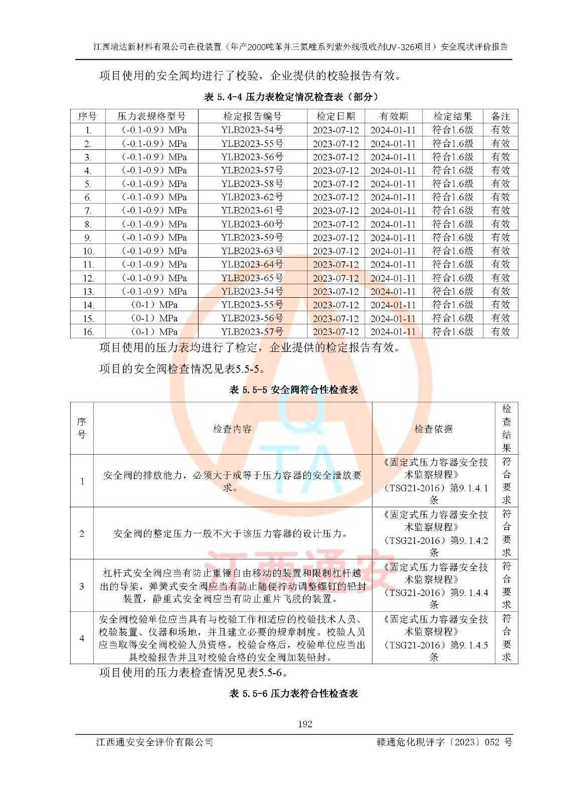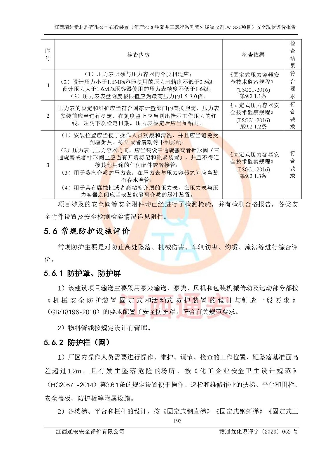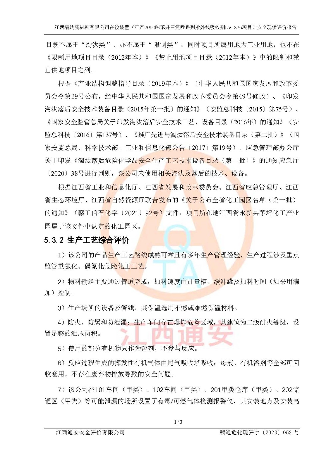 評價報告名稱 | 江西瑞達新材料有限公司年產(chǎn)2000噸苯并三氮唑系列紫外線吸收劑UV-326生產(chǎn)裝置技術(shù)改造項目安全驗收評價 | |||