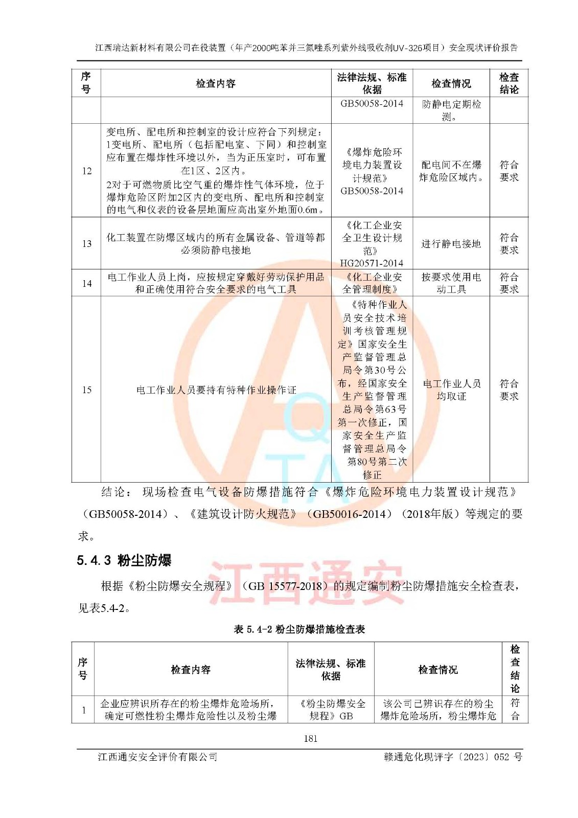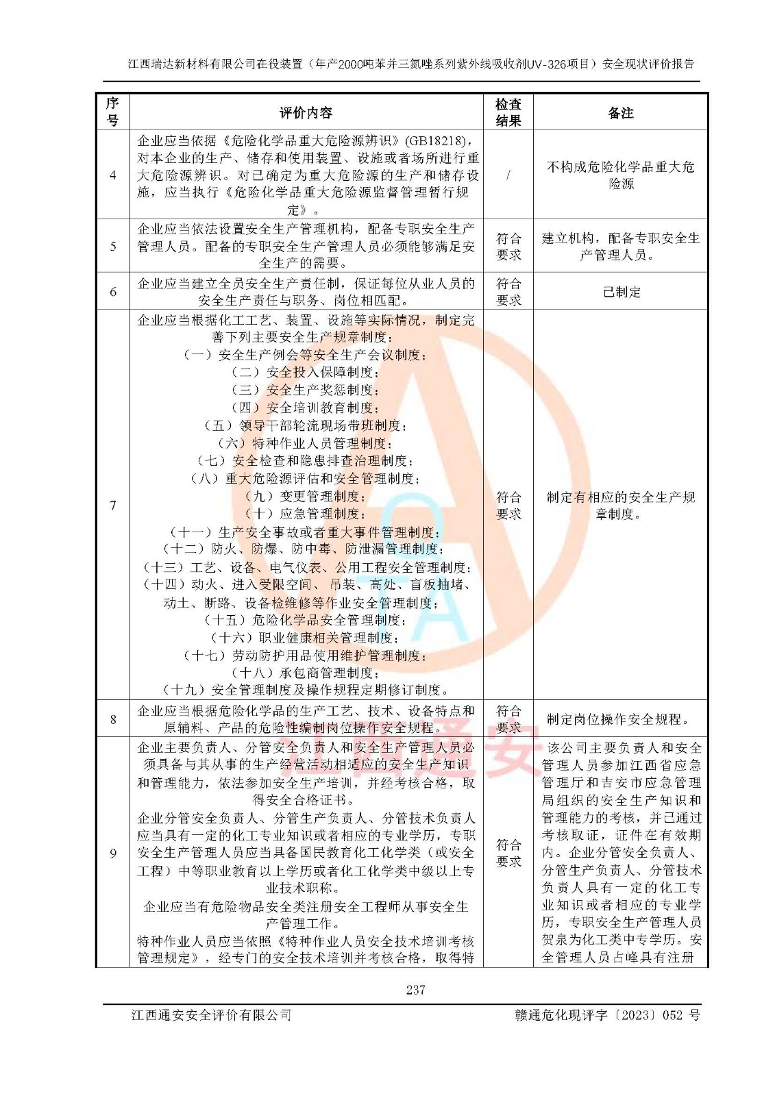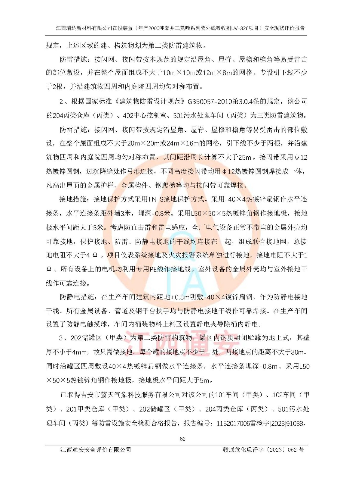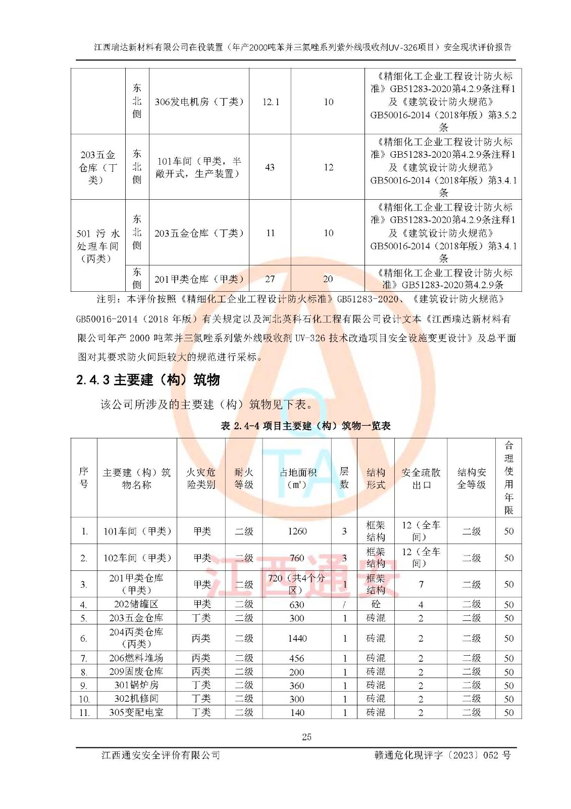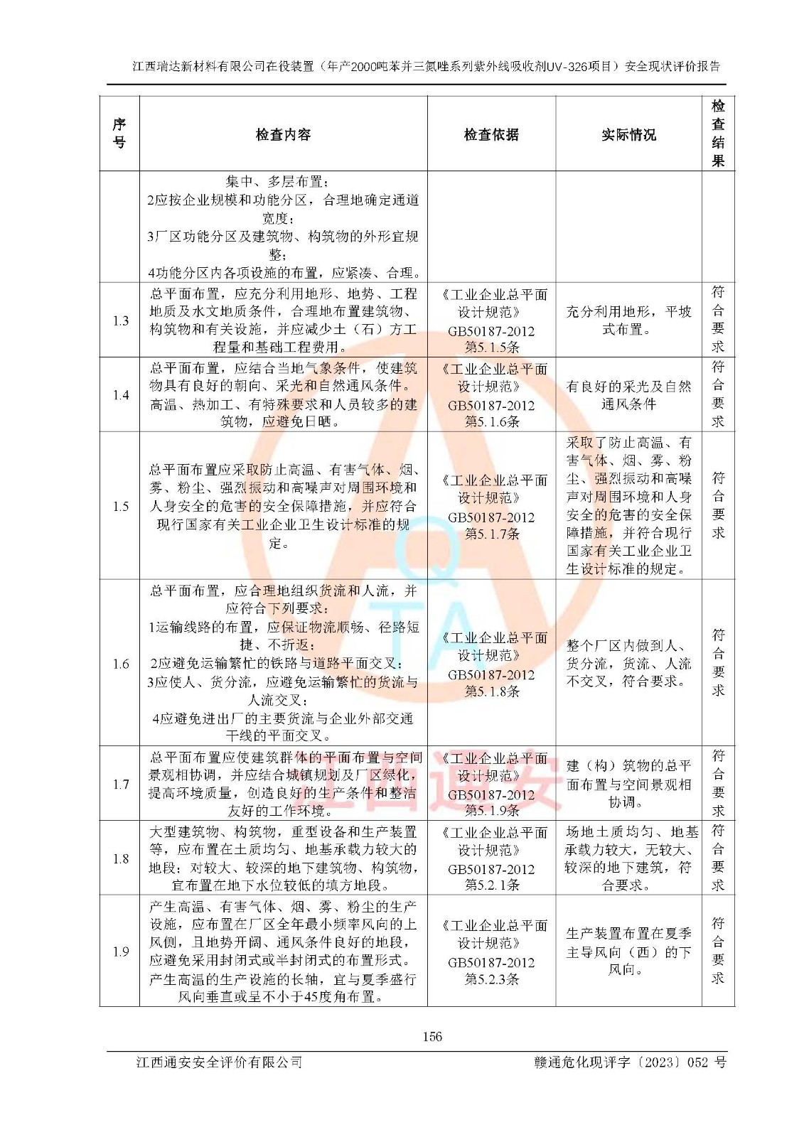 評價報告名稱 | 江西瑞達新材料有限公司年產(chǎn)2000噸苯并三氮唑系列紫外線吸收劑UV-326生產(chǎn)裝置技術(shù)改造項目安全驗收評價 | |||
