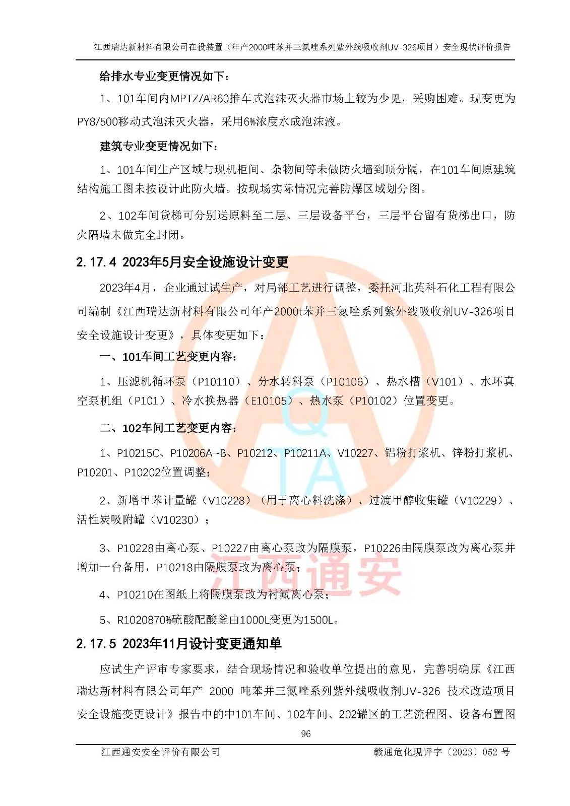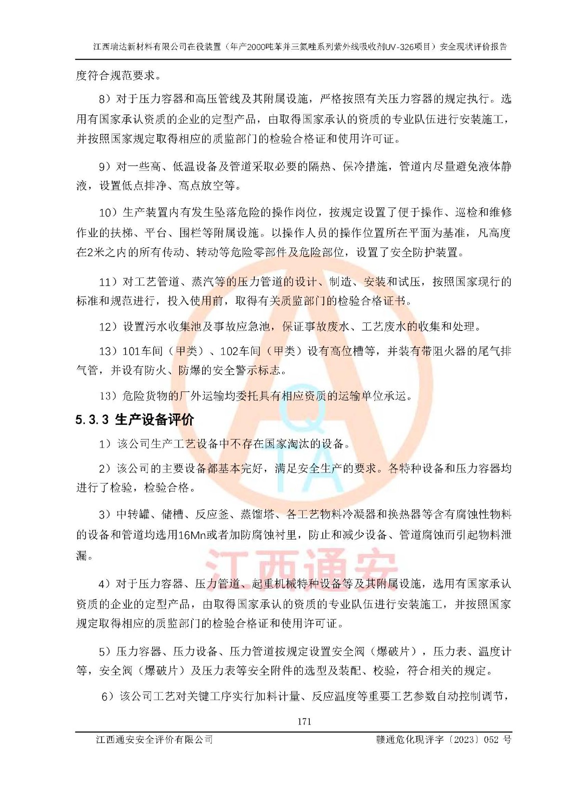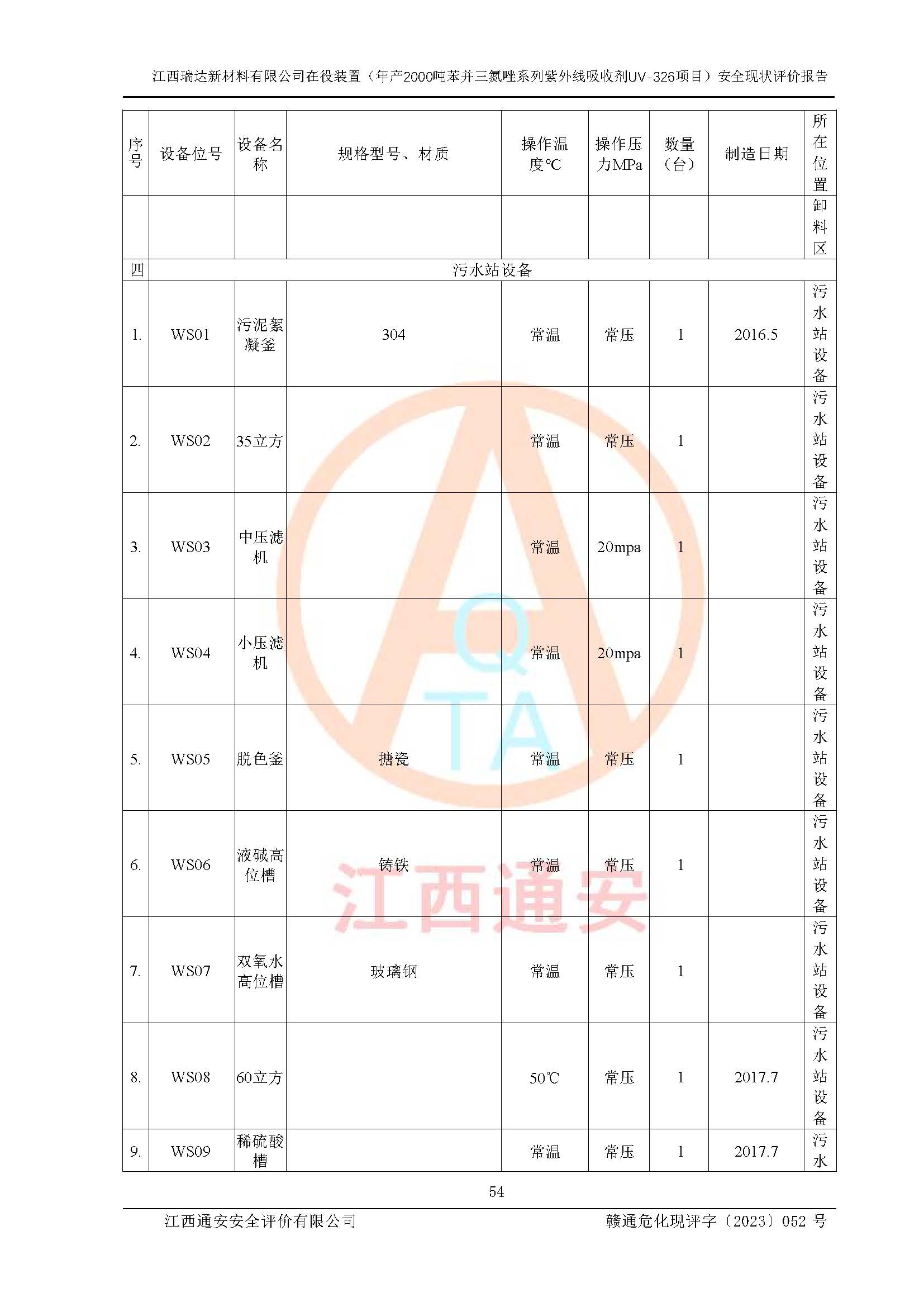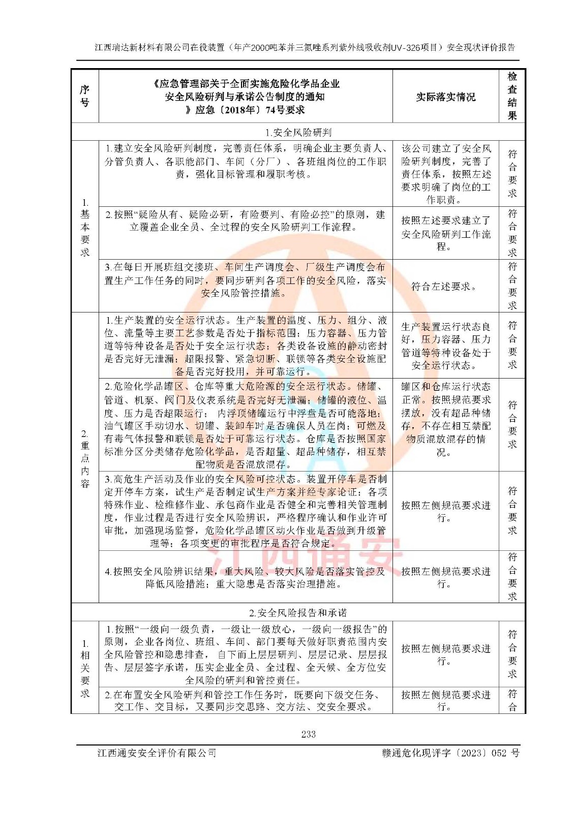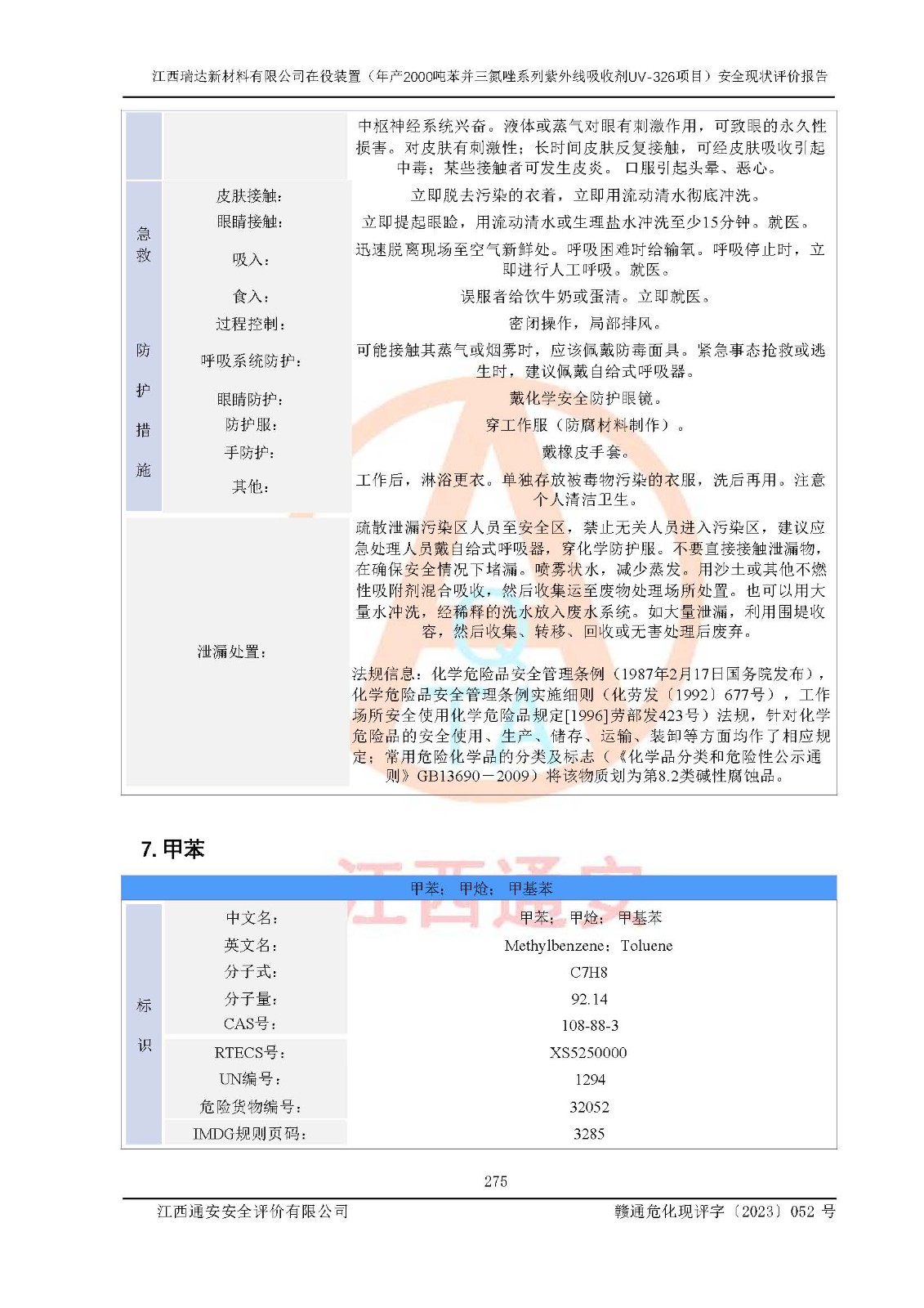 評價報告名稱 | 江西瑞達新材料有限公司年產(chǎn)2000噸苯并三氮唑系列紫外線吸收劑UV-326生產(chǎn)裝置技術(shù)改造項目安全驗收評價 | |||