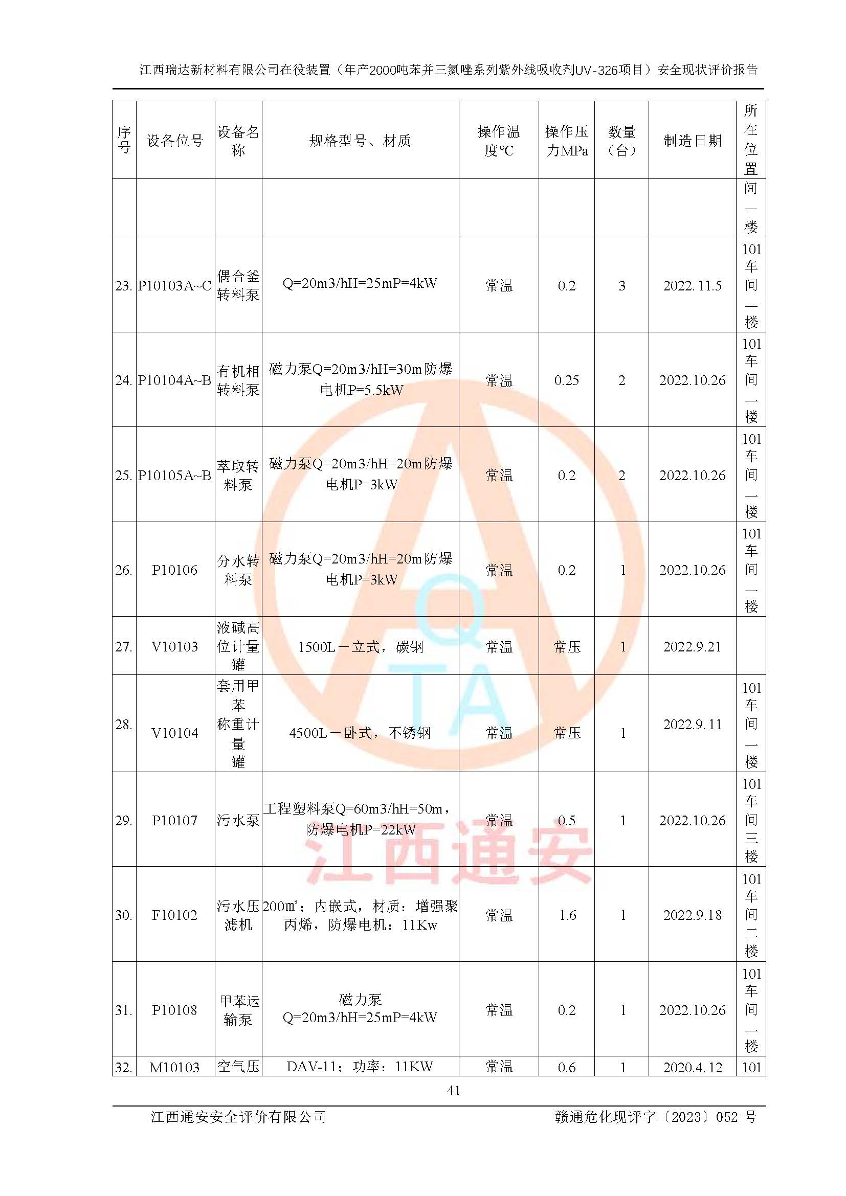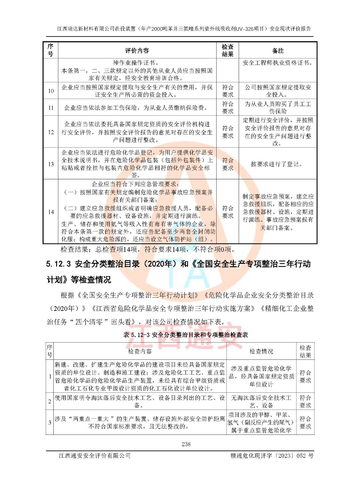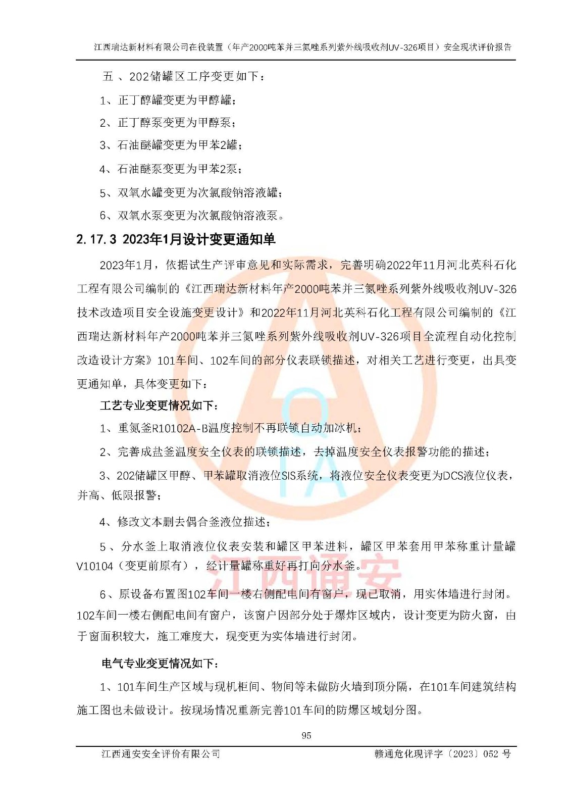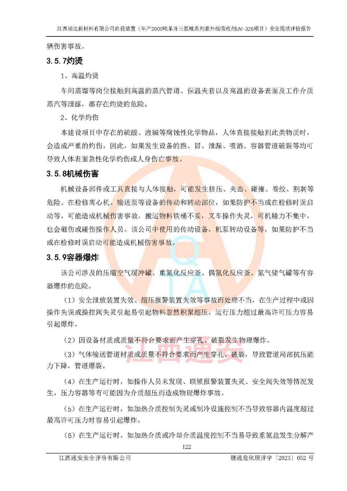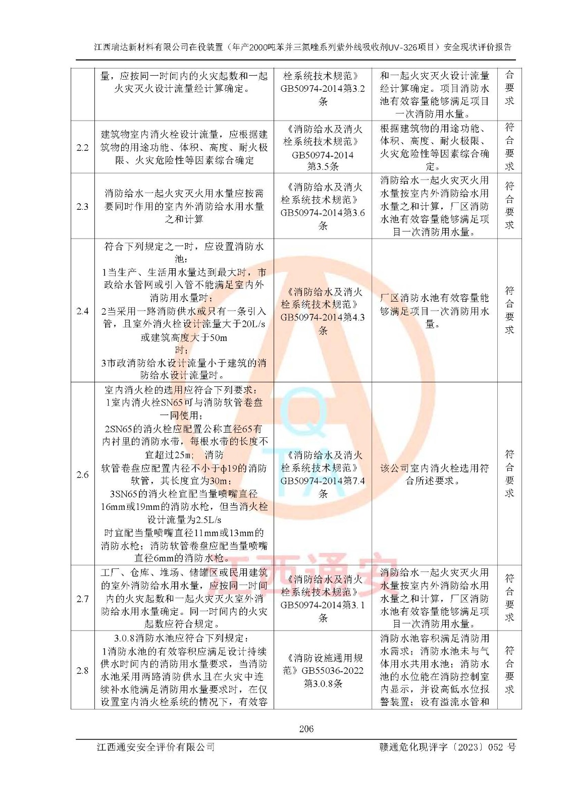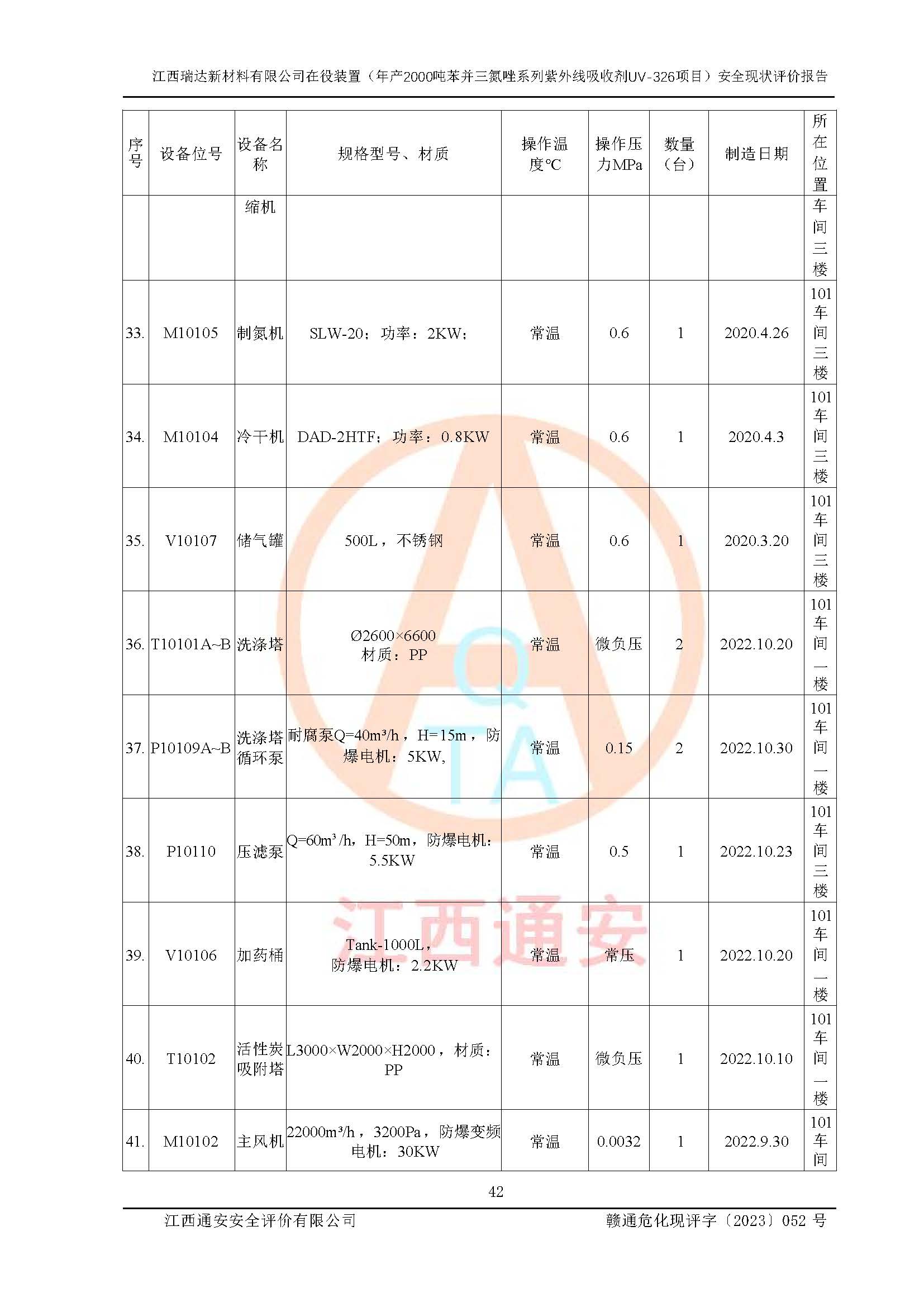 評價報告名稱 | 江西瑞達新材料有限公司年產(chǎn)2000噸苯并三氮唑系列紫外線吸收劑UV-326生產(chǎn)裝置技術(shù)改造項目安全驗收評價 | |||