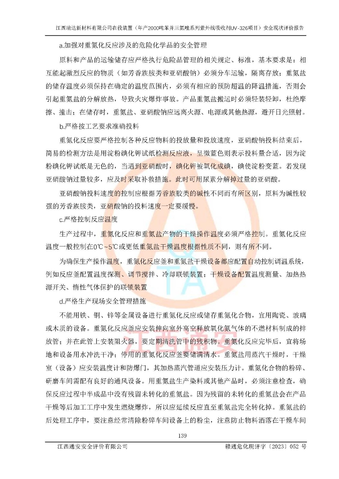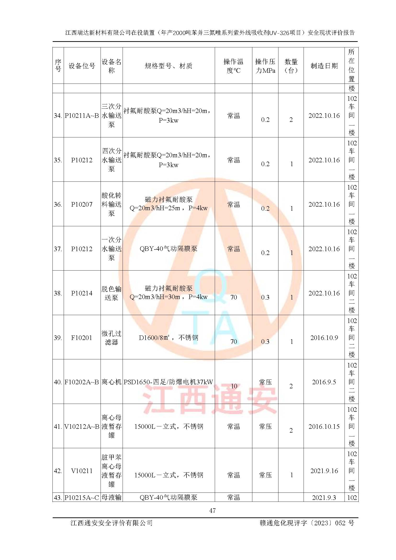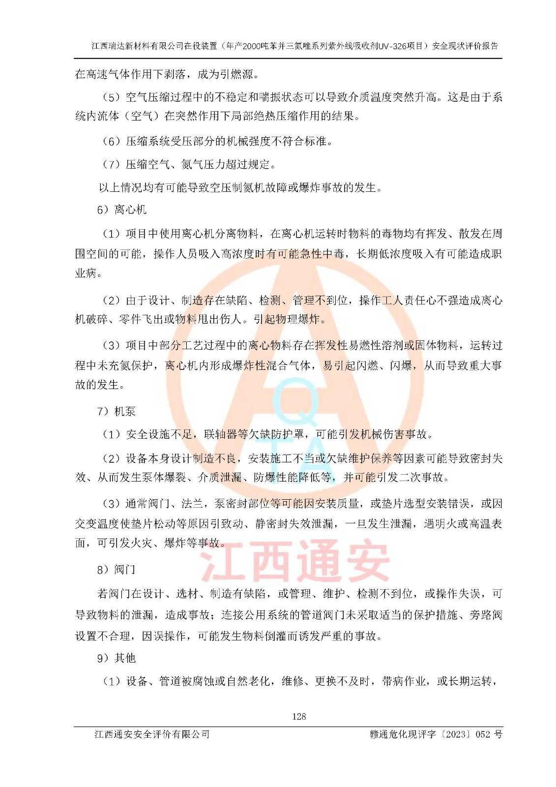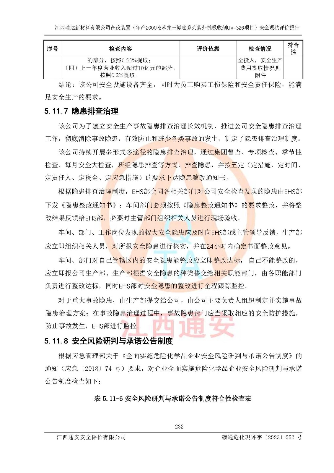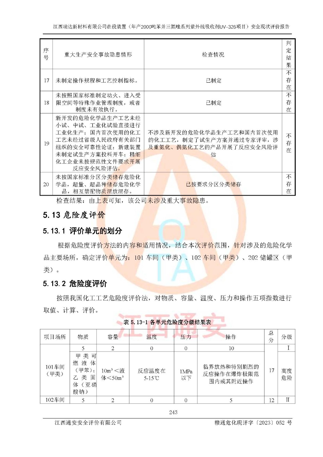 評價報告名稱 | 江西瑞達新材料有限公司年產(chǎn)2000噸苯并三氮唑系列紫外線吸收劑UV-326生產(chǎn)裝置技術(shù)改造項目安全驗收評價 | |||