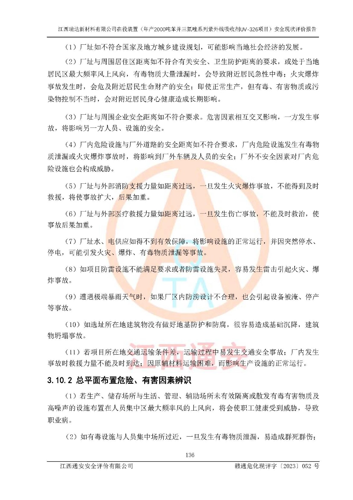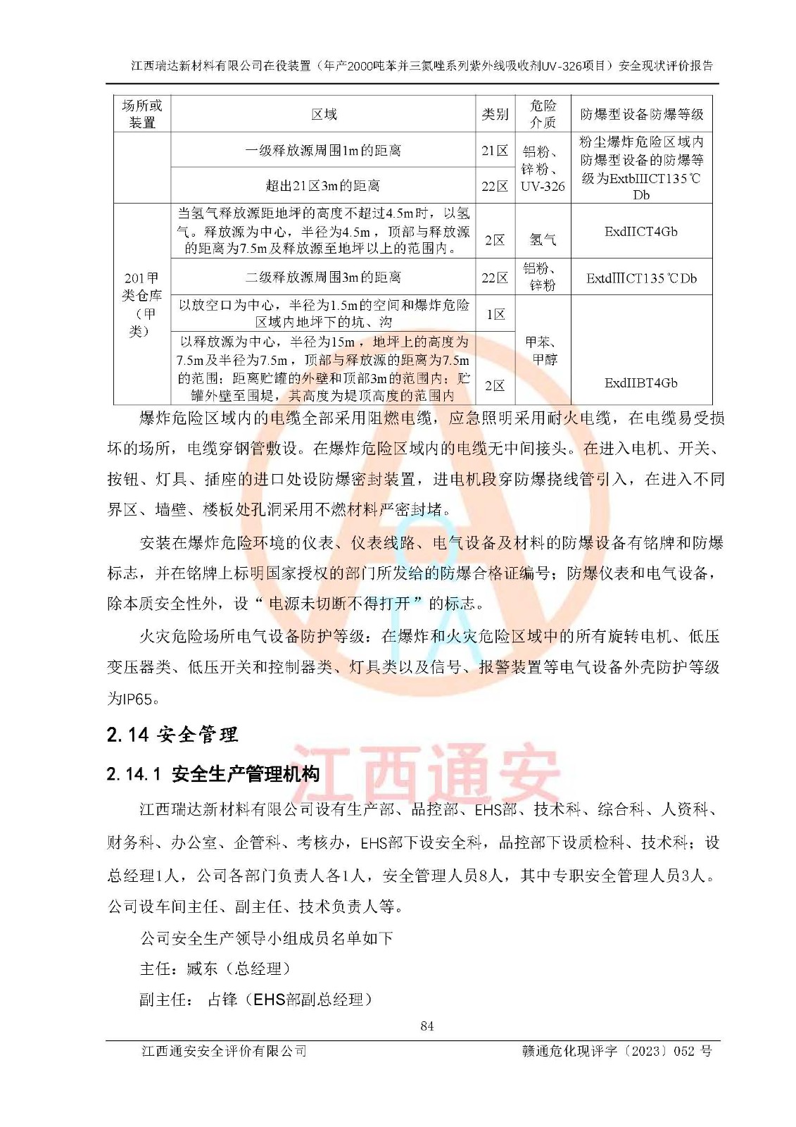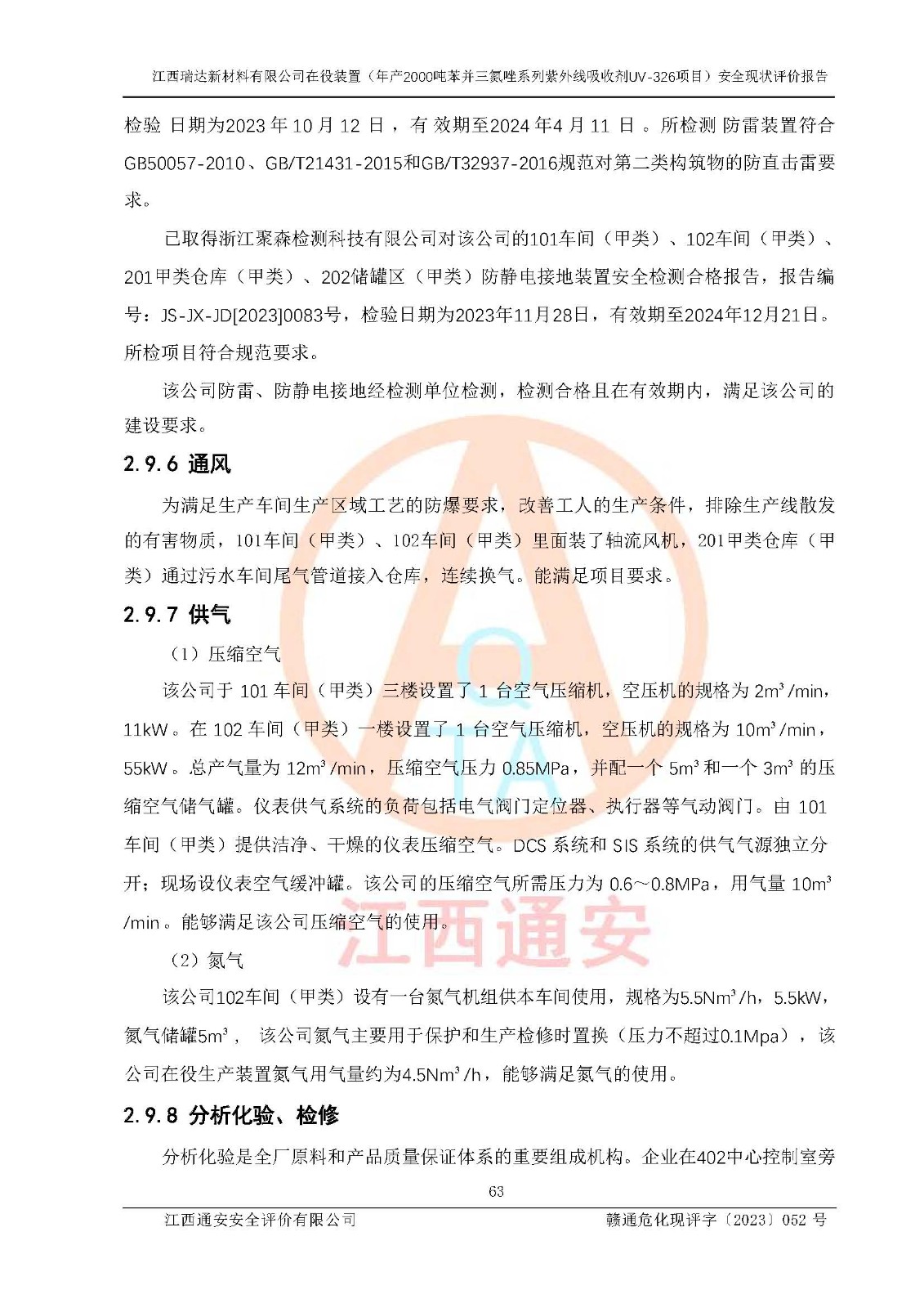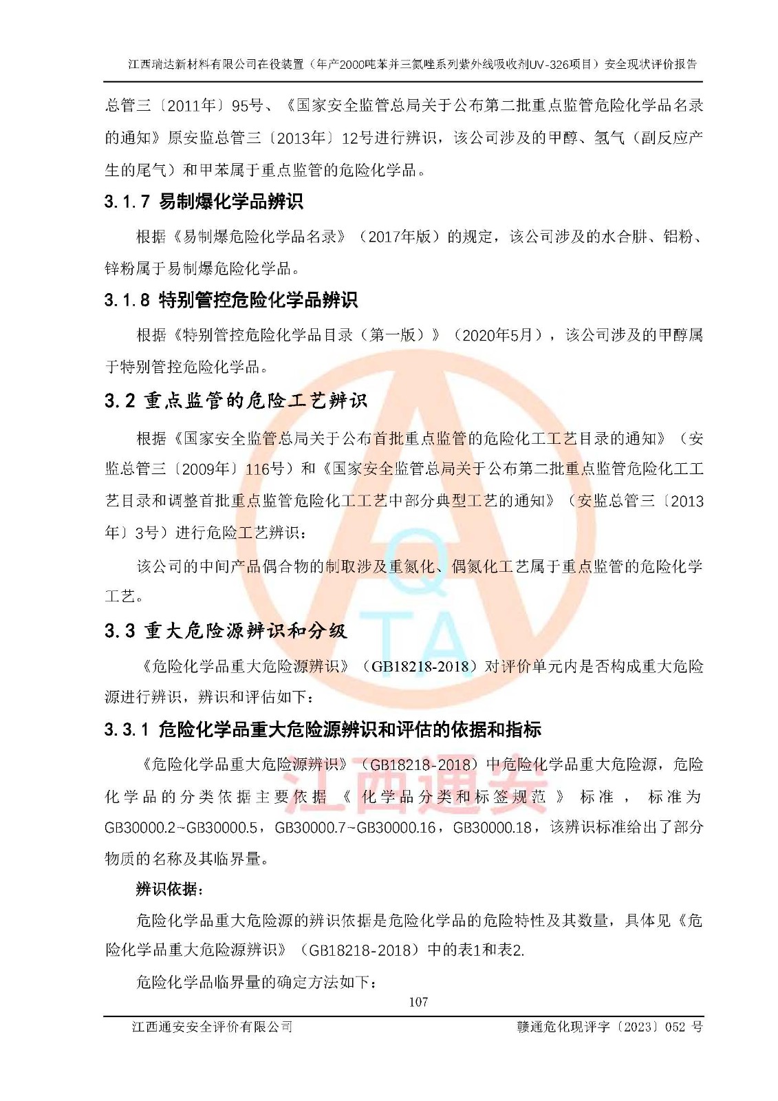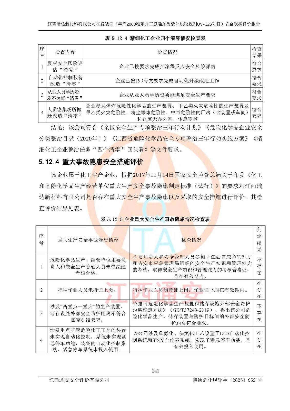 評價報告名稱 | 江西瑞達新材料有限公司年產(chǎn)2000噸苯并三氮唑系列紫外線吸收劑UV-326生產(chǎn)裝置技術(shù)改造項目安全驗收評價 | |||