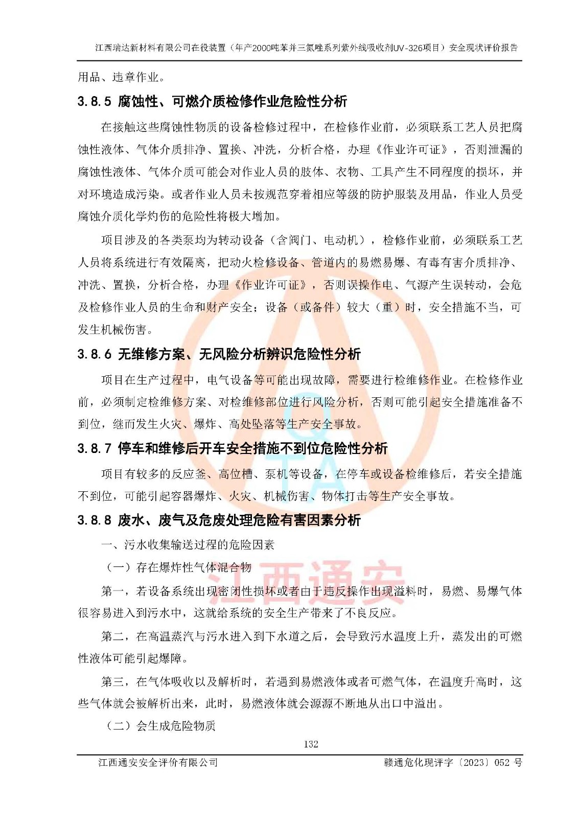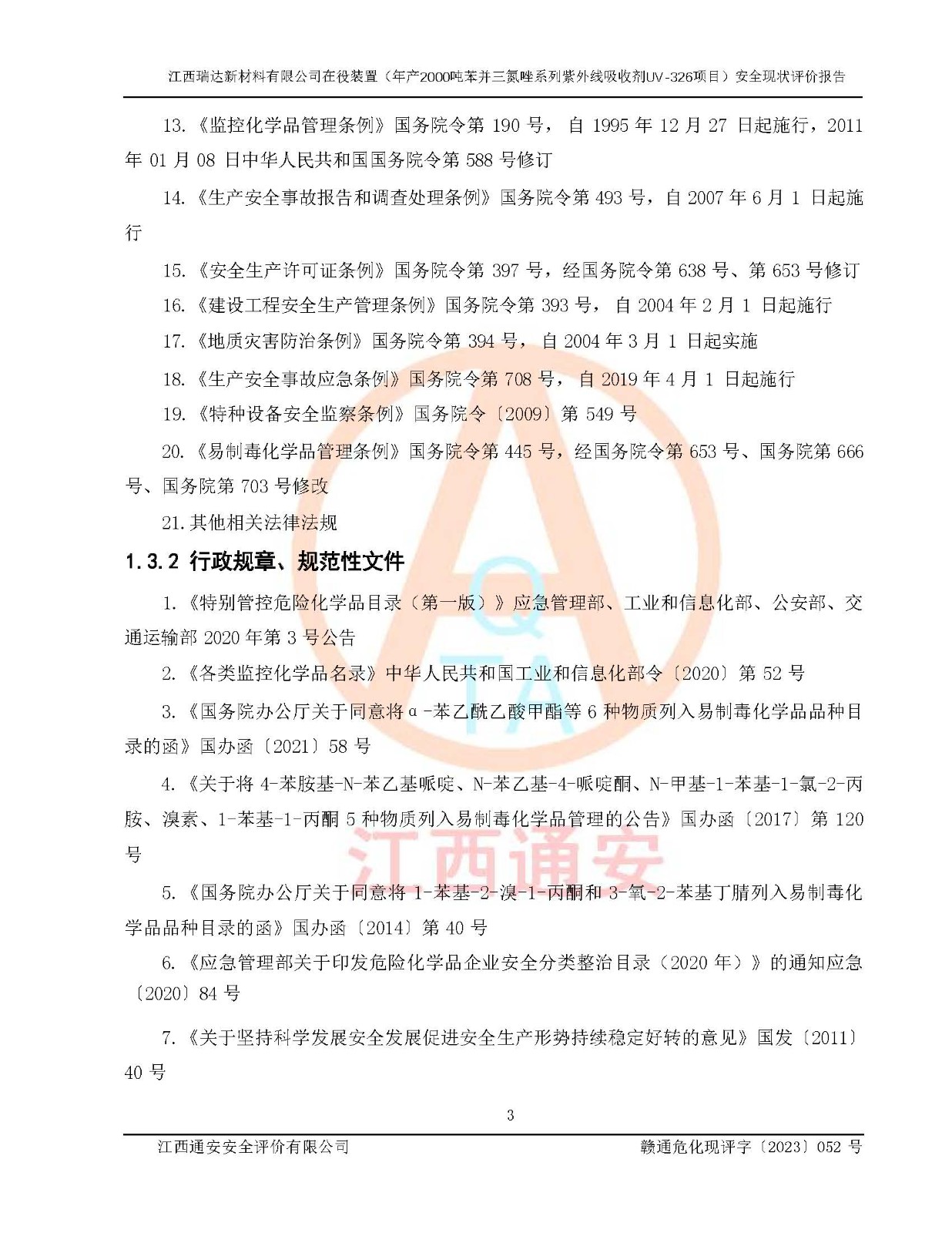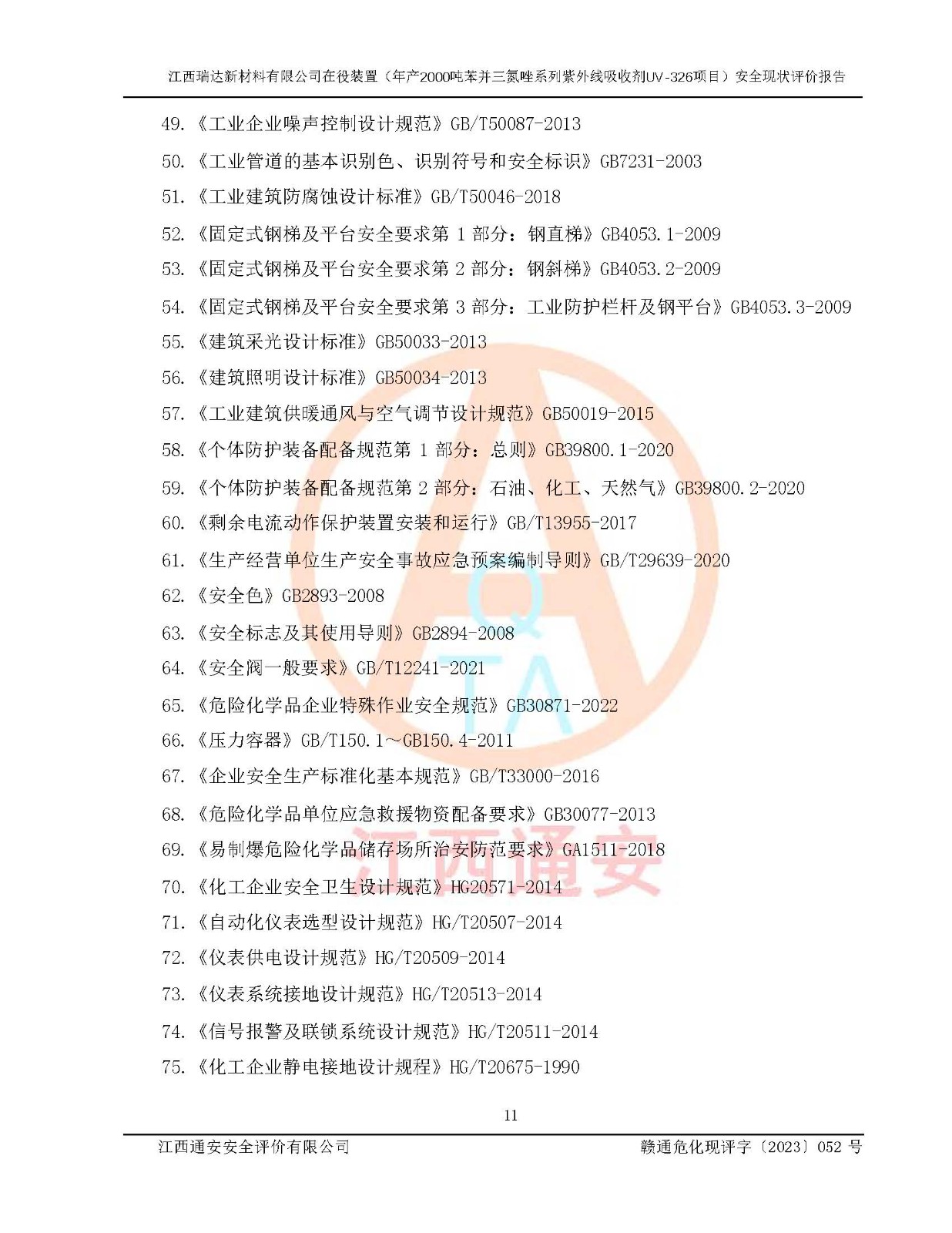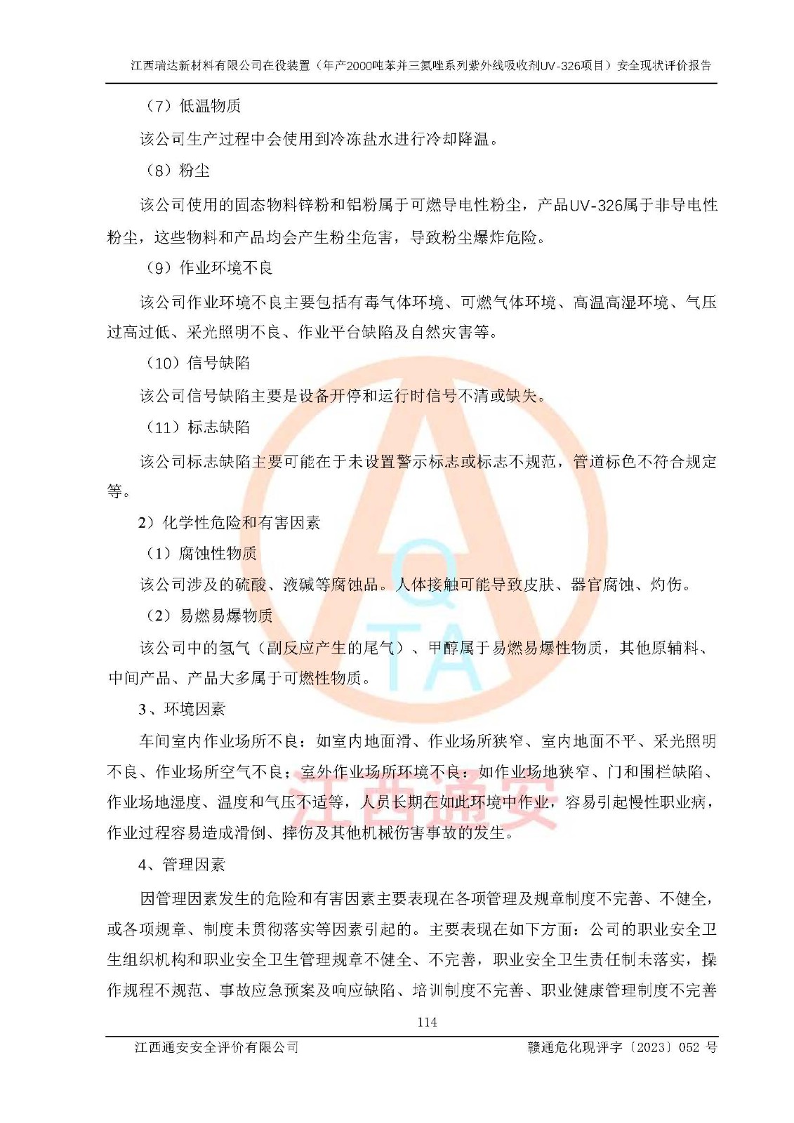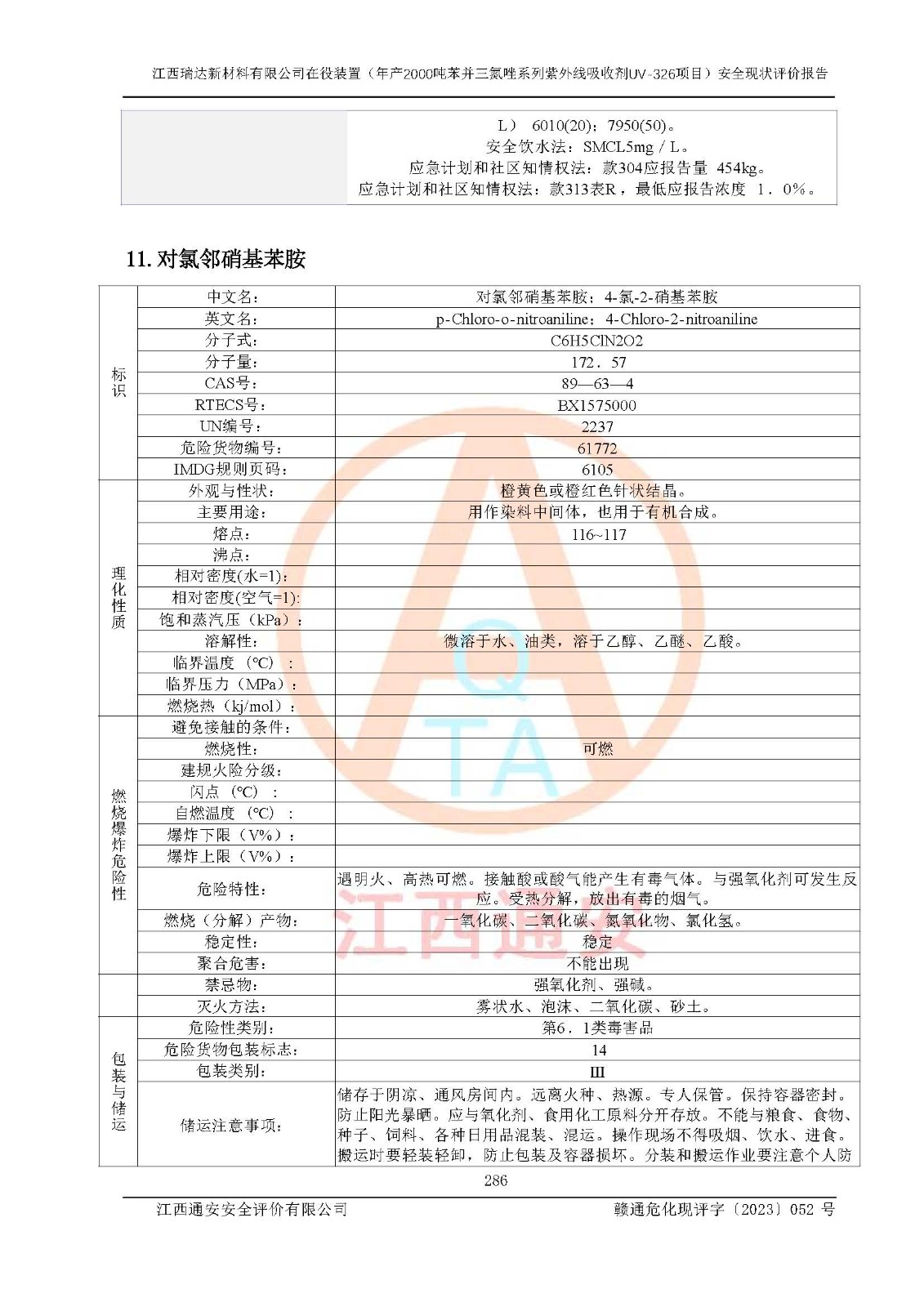 評價報告名稱 | 江西瑞達新材料有限公司年產(chǎn)2000噸苯并三氮唑系列紫外線吸收劑UV-326生產(chǎn)裝置技術(shù)改造項目安全驗收評價 | |||