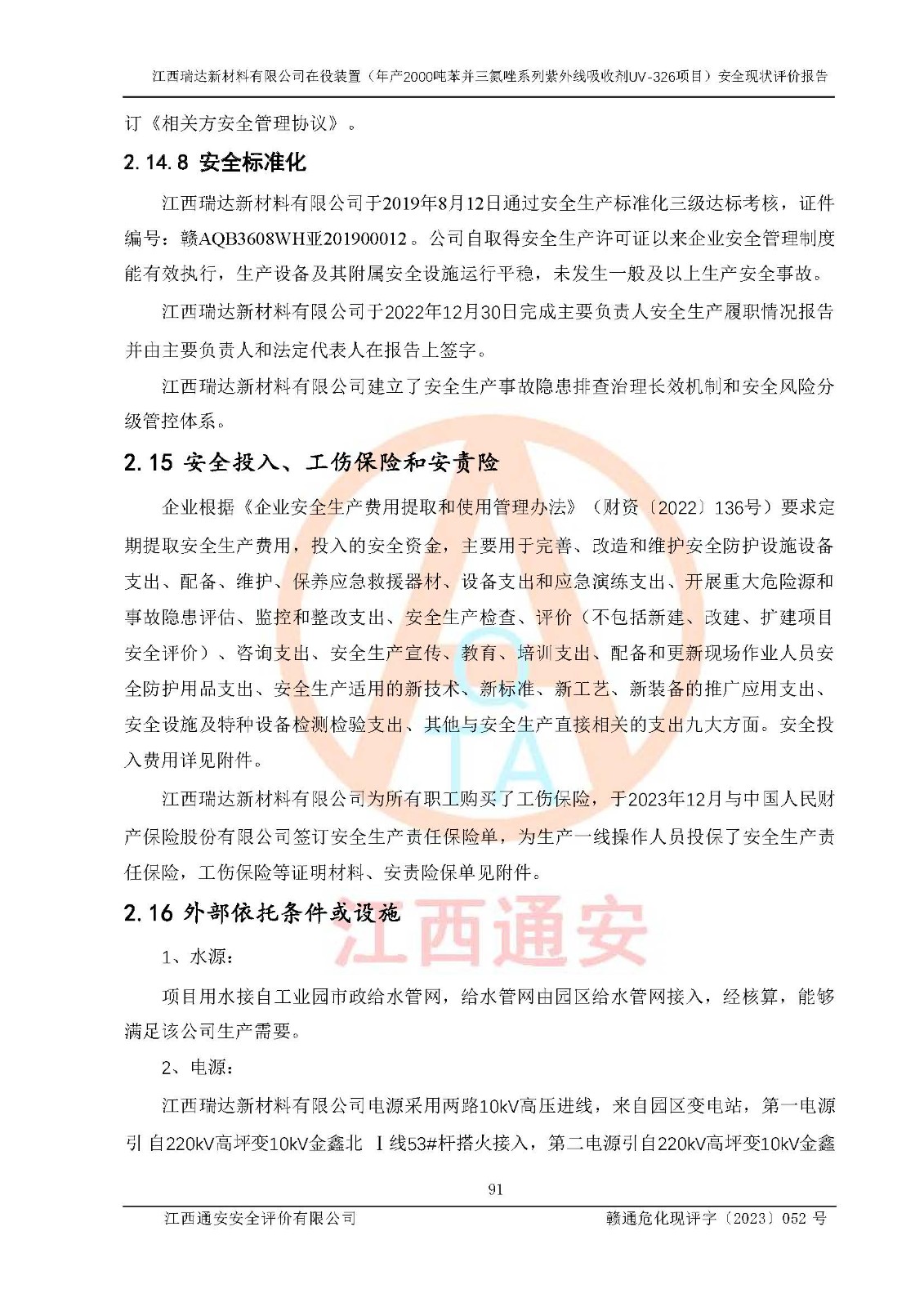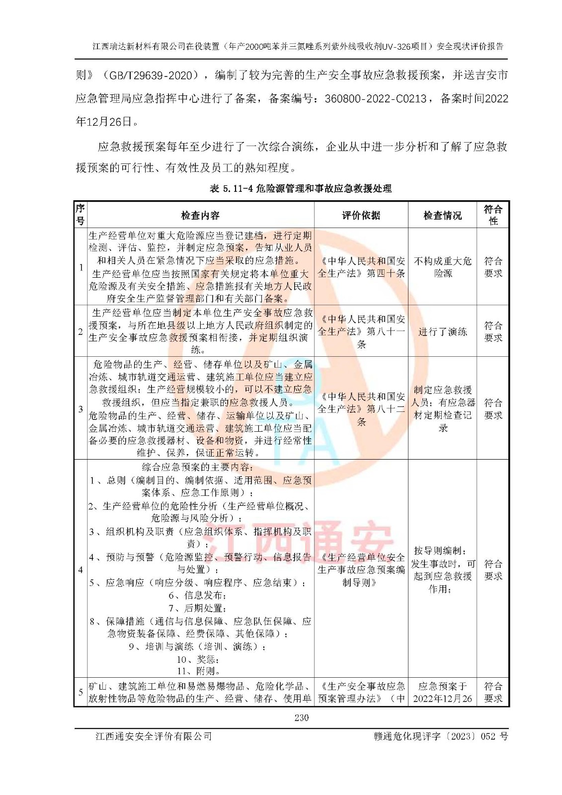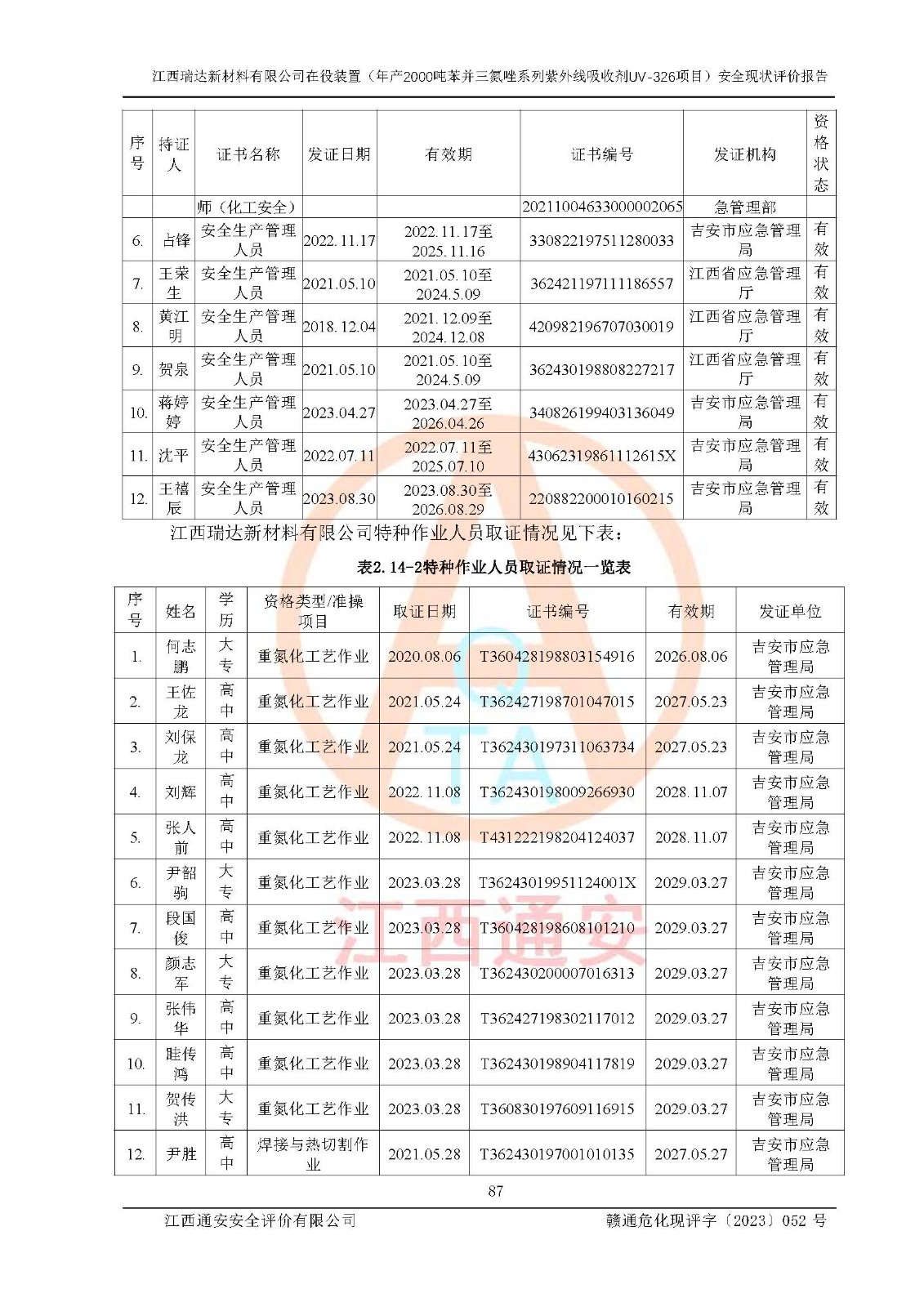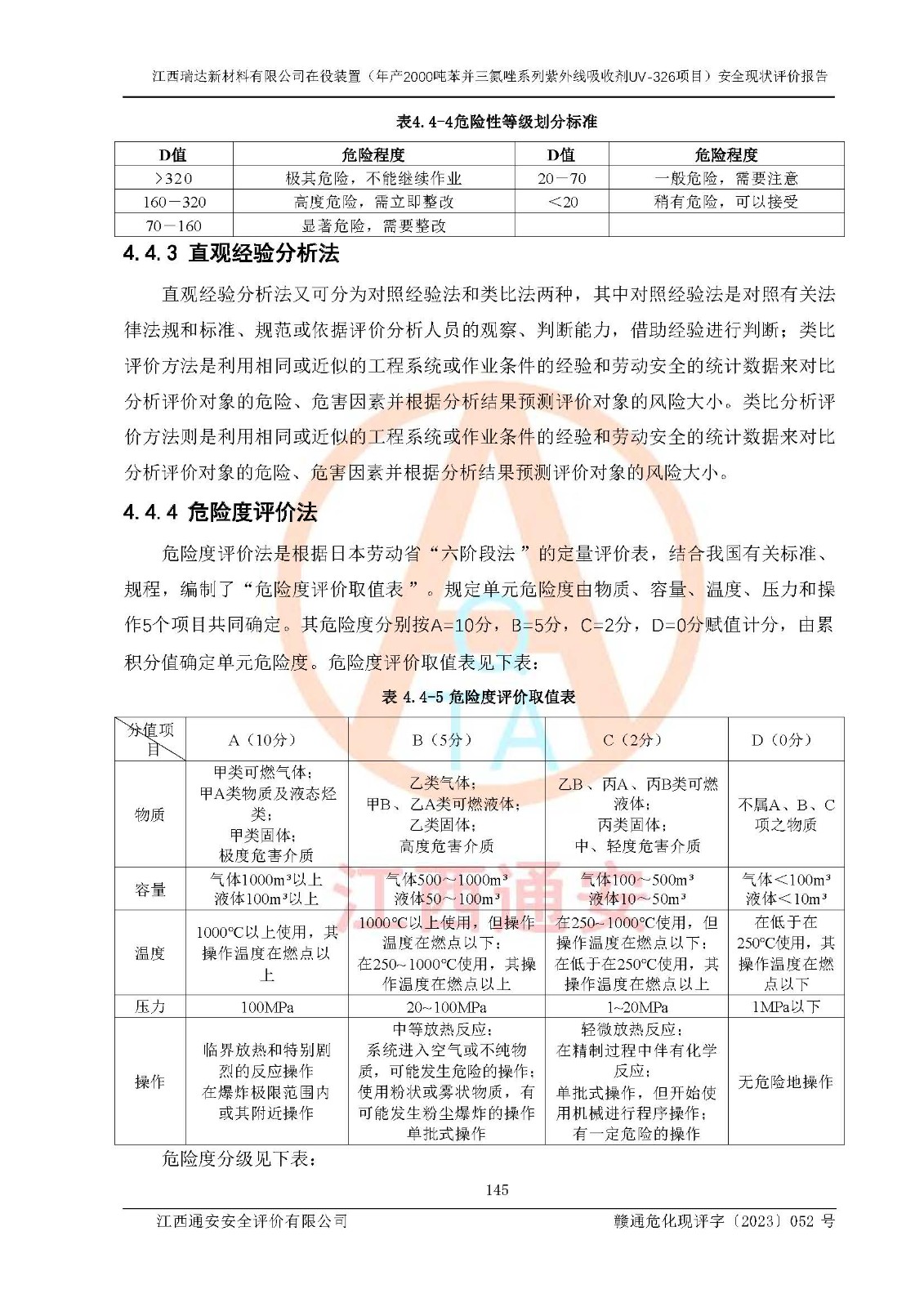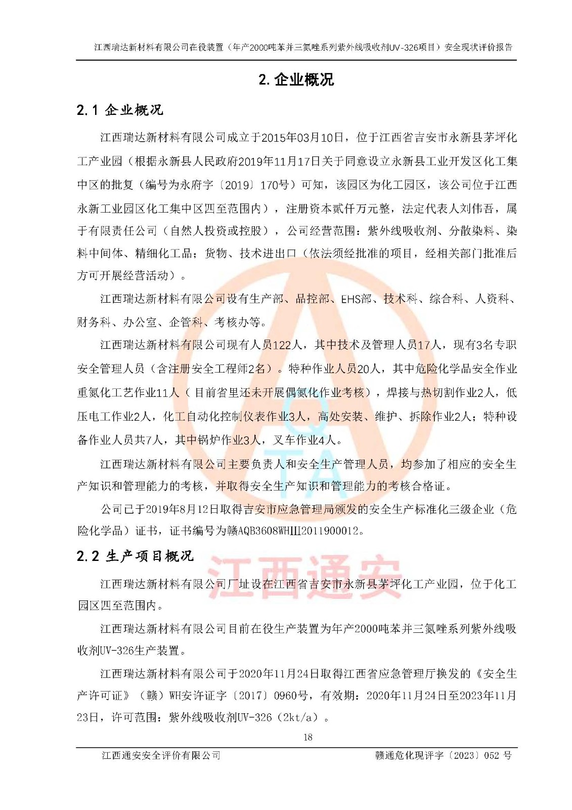 評價報告名稱 | 江西瑞達新材料有限公司年產(chǎn)2000噸苯并三氮唑系列紫外線吸收劑UV-326生產(chǎn)裝置技術(shù)改造項目安全驗收評價 | |||