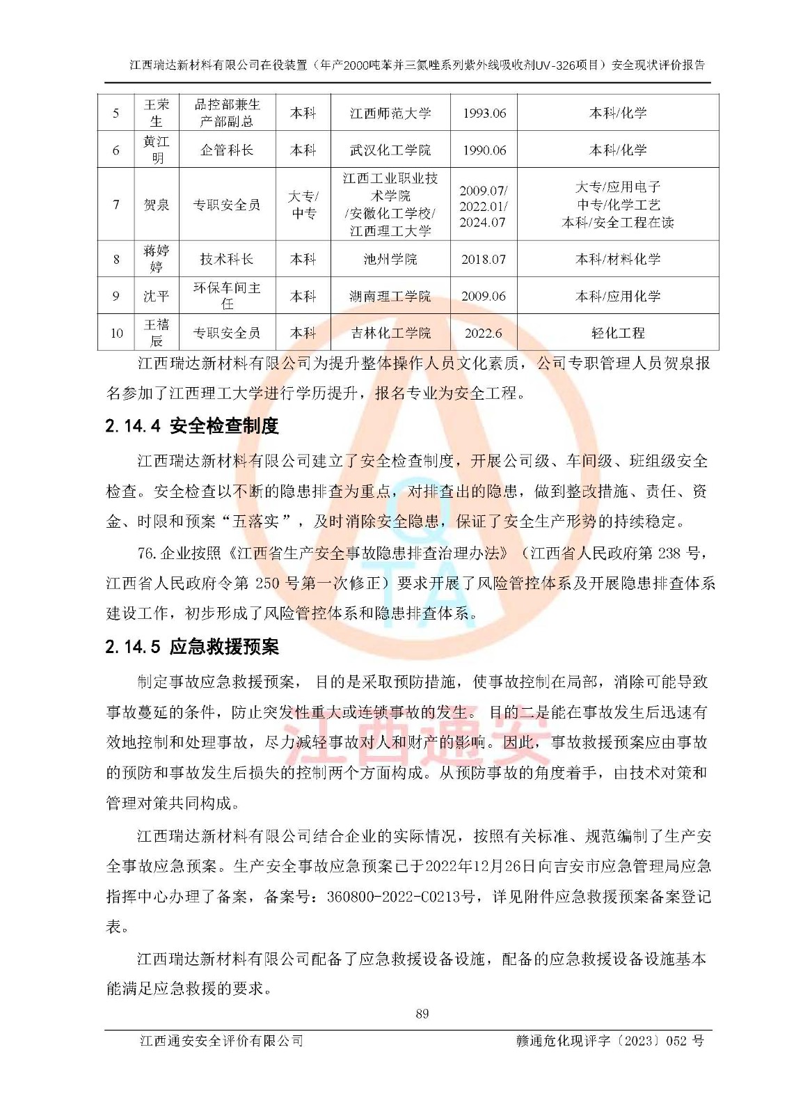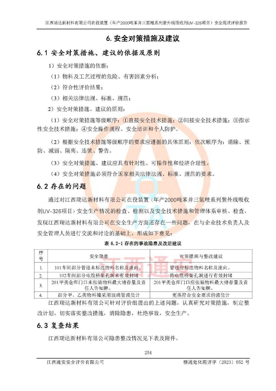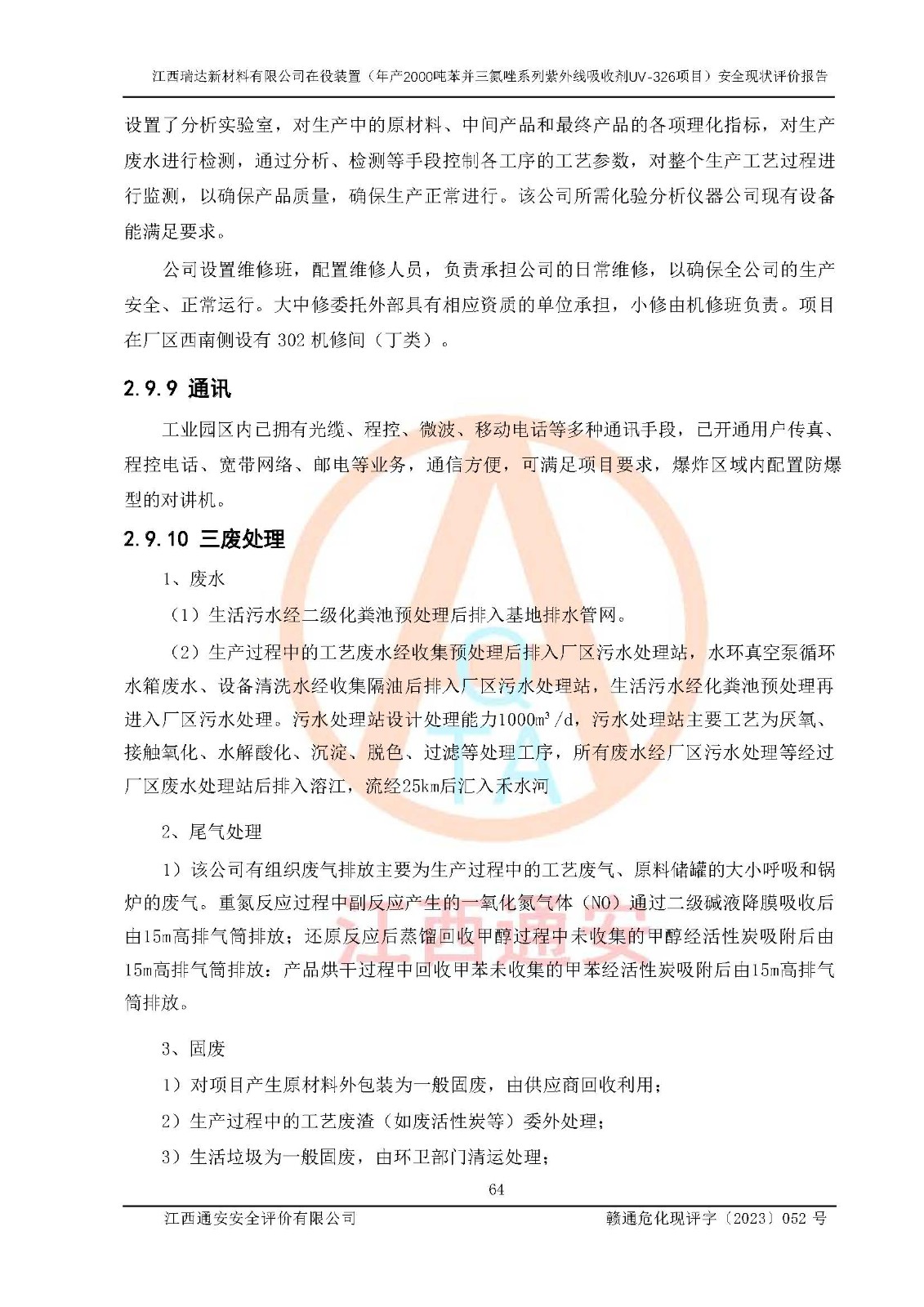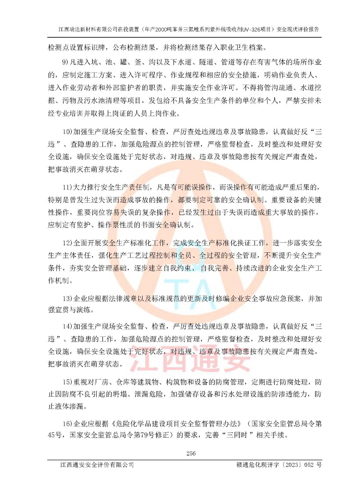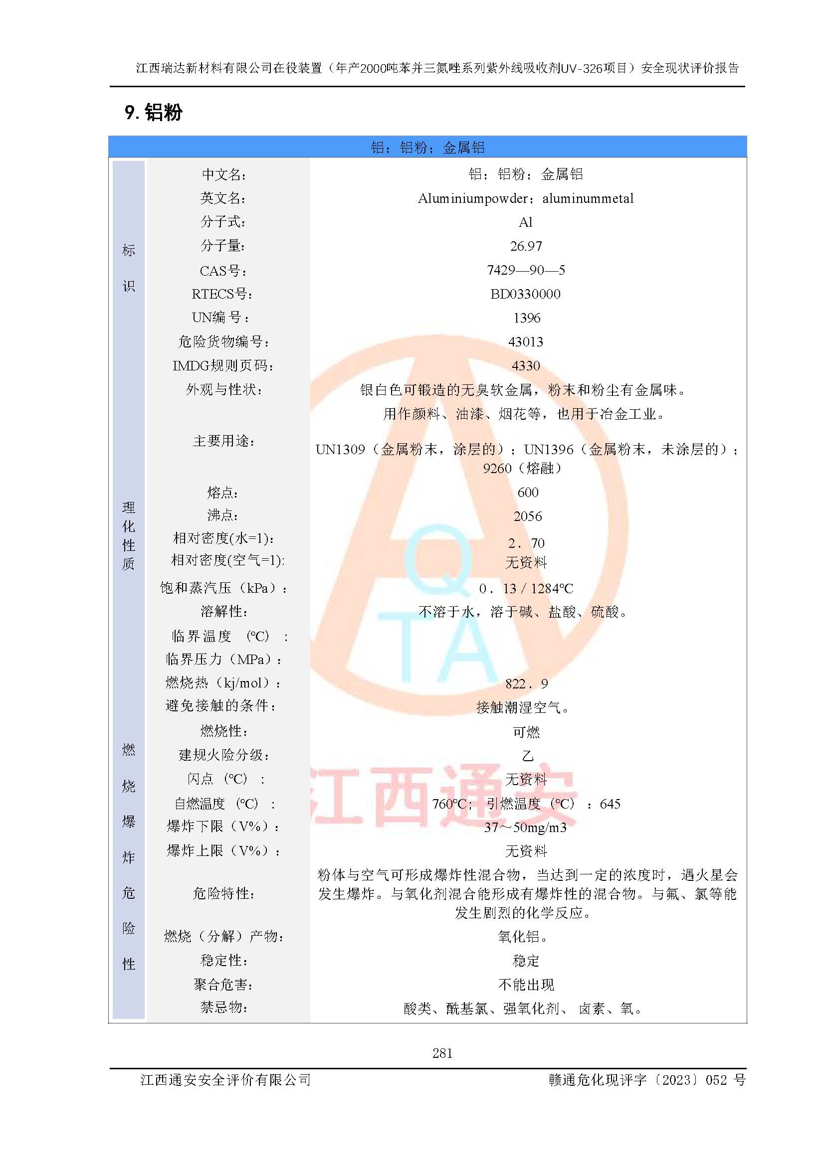 評價報告名稱 | 江西瑞達新材料有限公司年產(chǎn)2000噸苯并三氮唑系列紫外線吸收劑UV-326生產(chǎn)裝置技術(shù)改造項目安全驗收評價 | |||