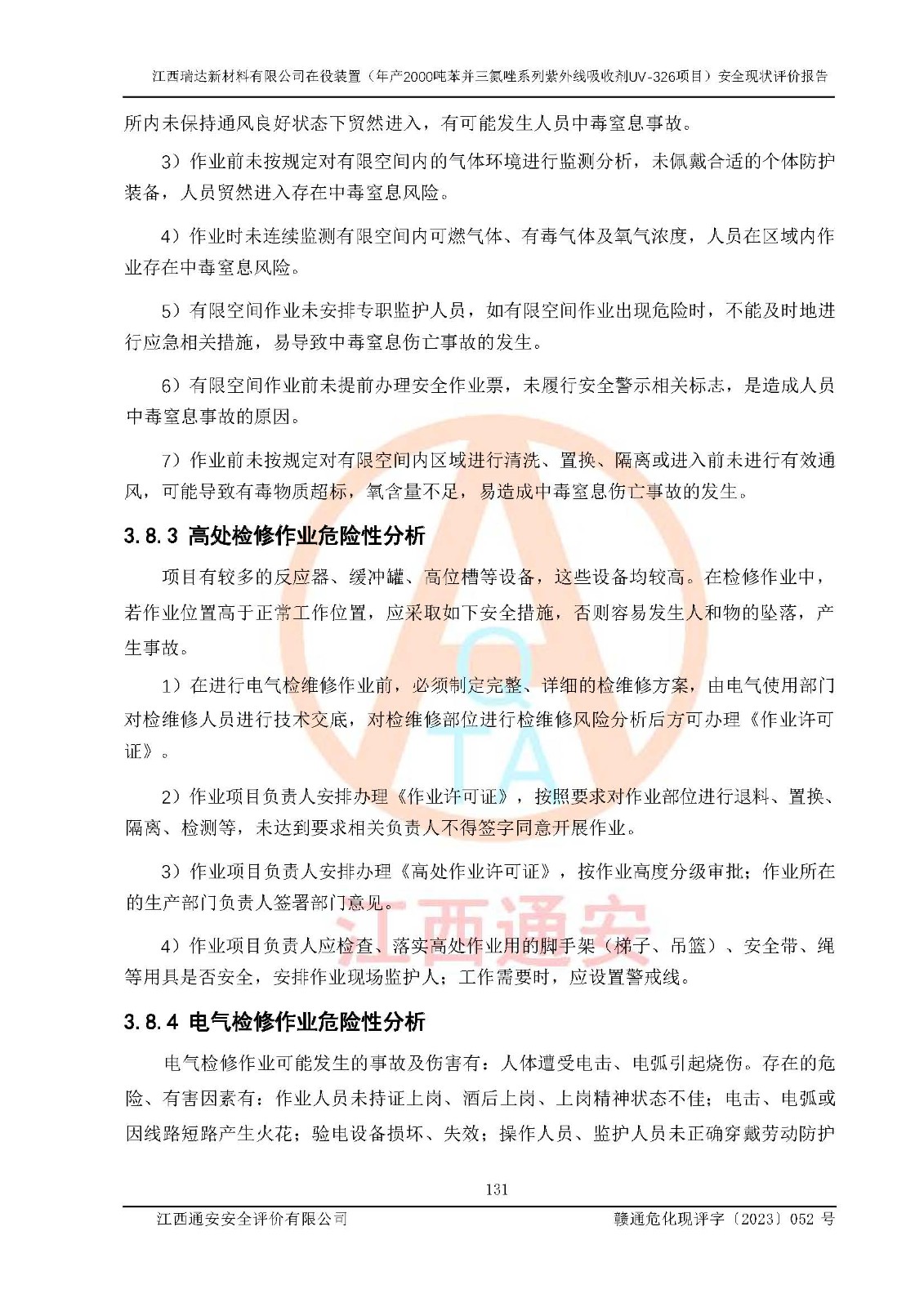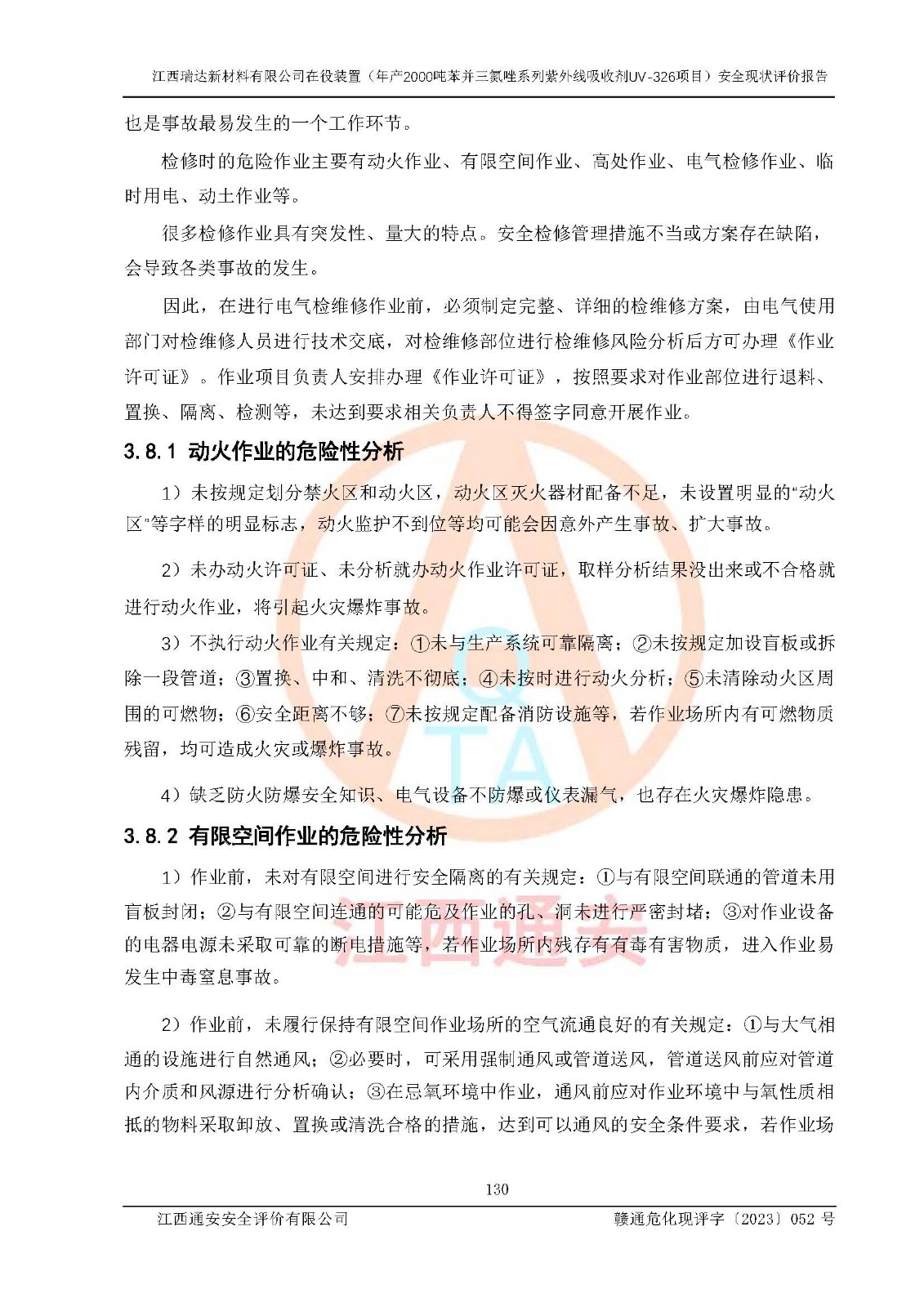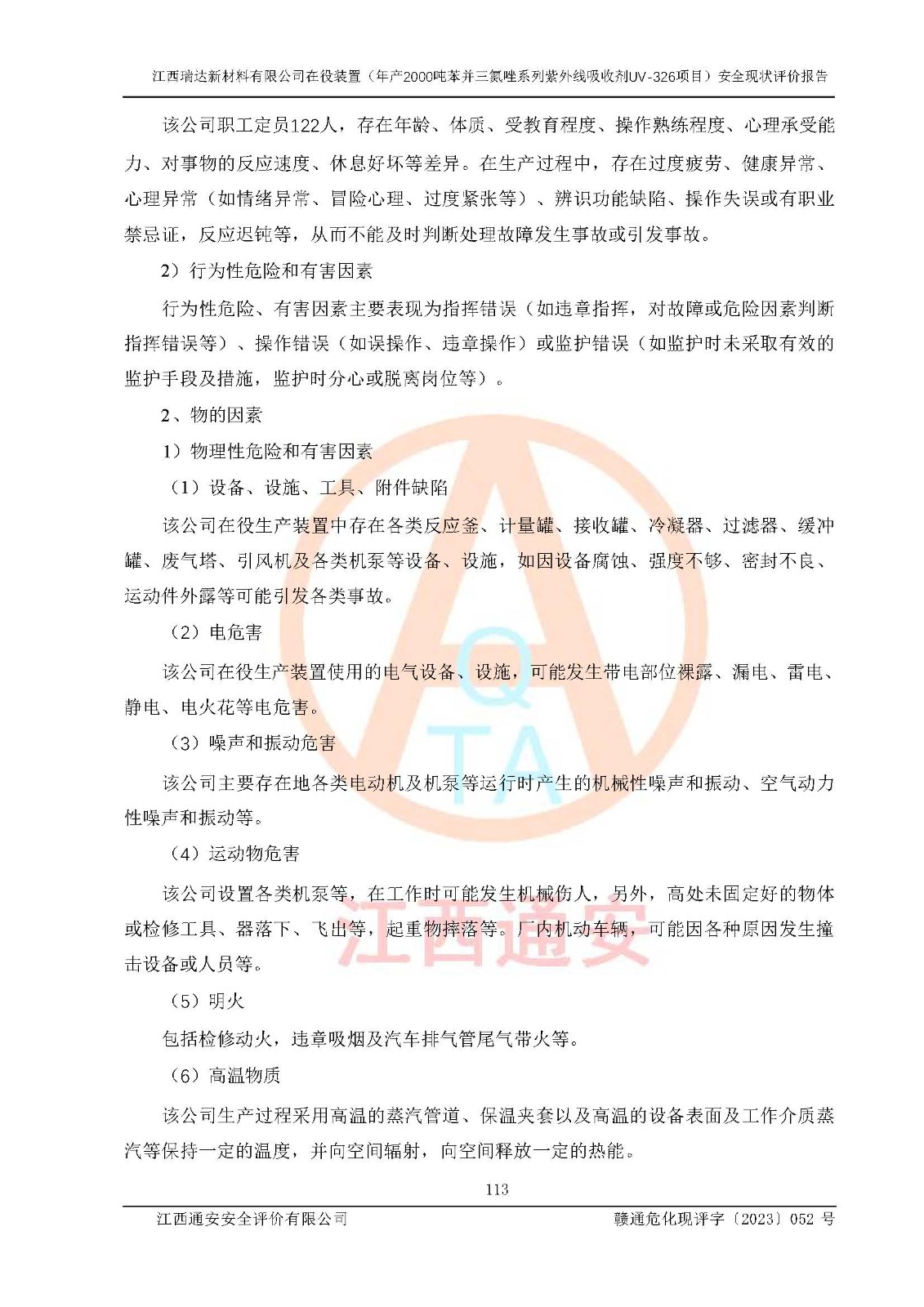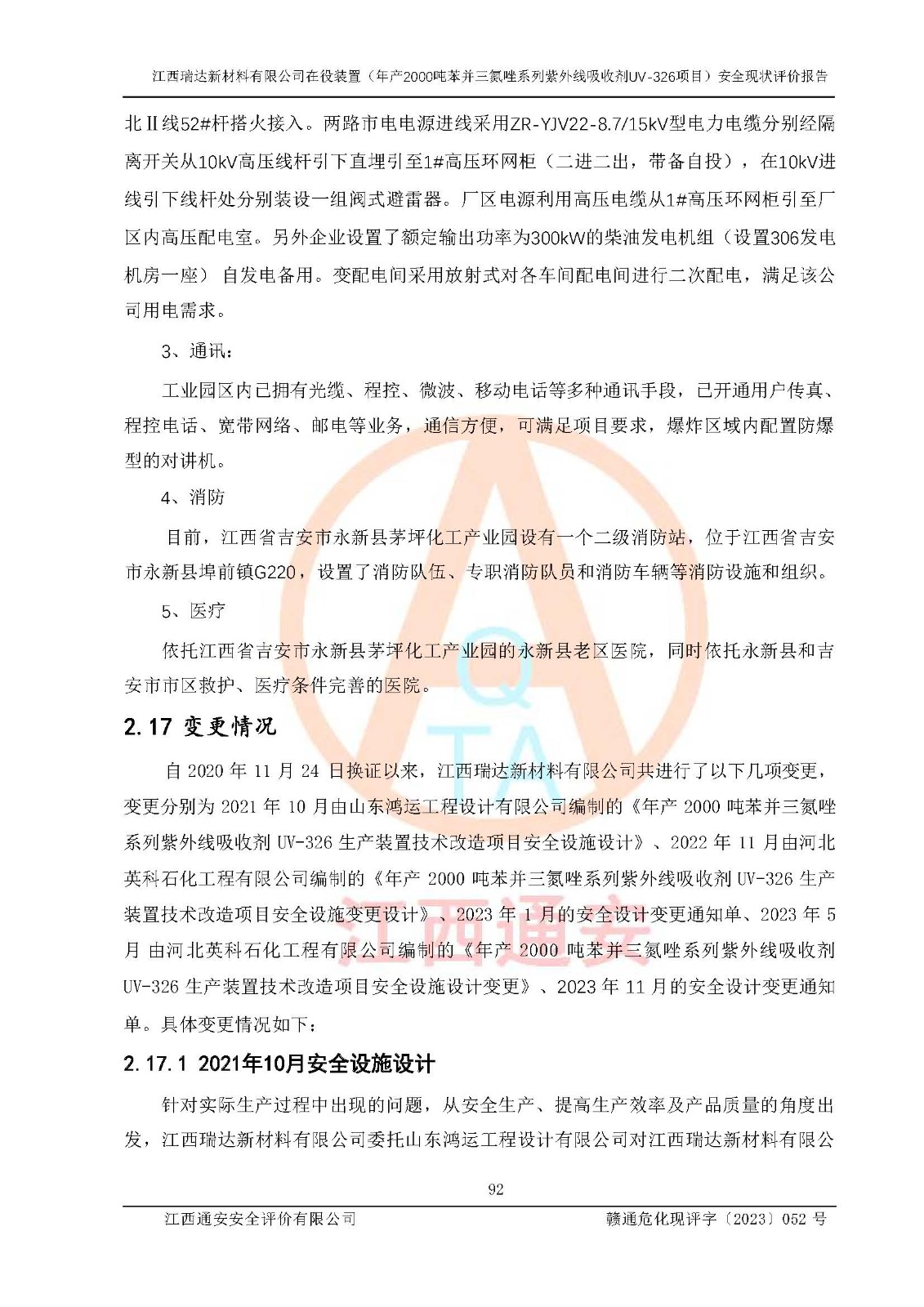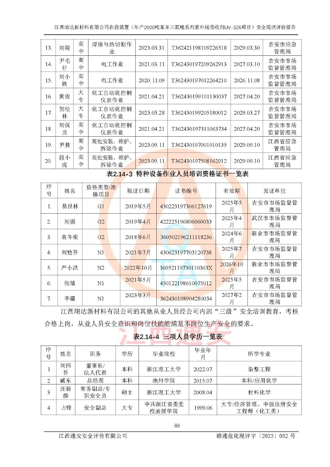 評價報告名稱 | 江西瑞達新材料有限公司年產(chǎn)2000噸苯并三氮唑系列紫外線吸收劑UV-326生產(chǎn)裝置技術(shù)改造項目安全驗收評價 | |||