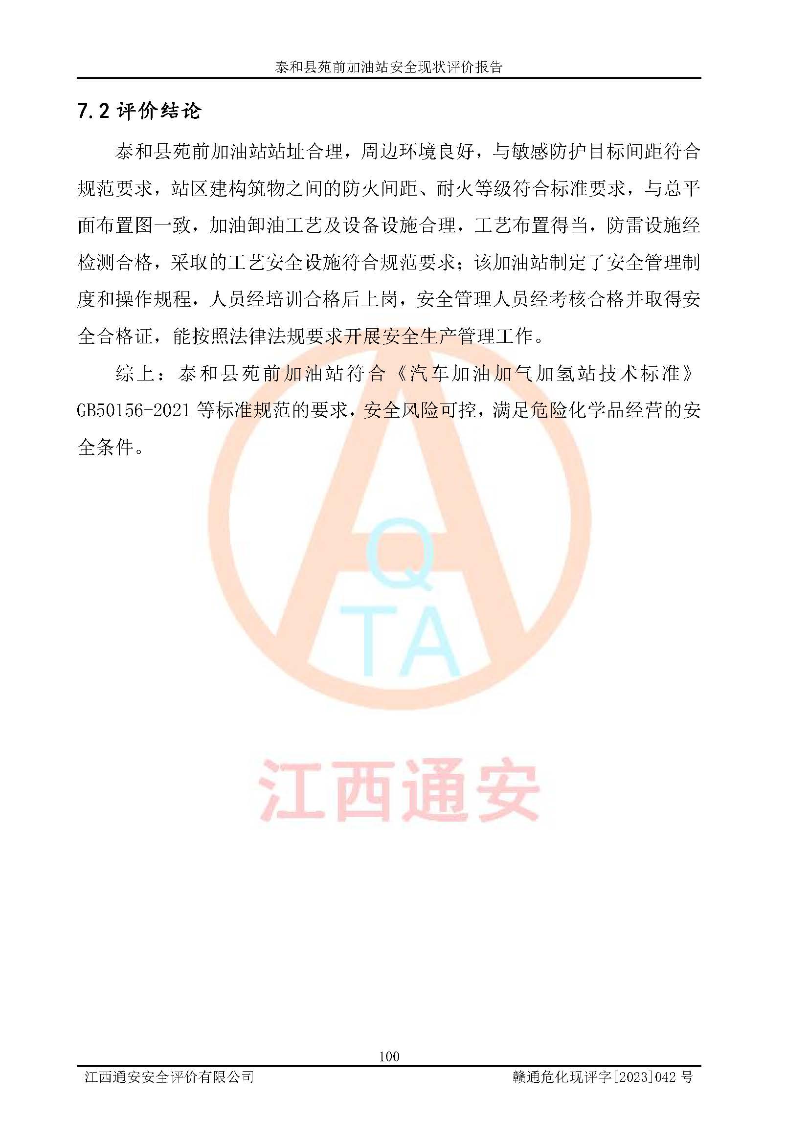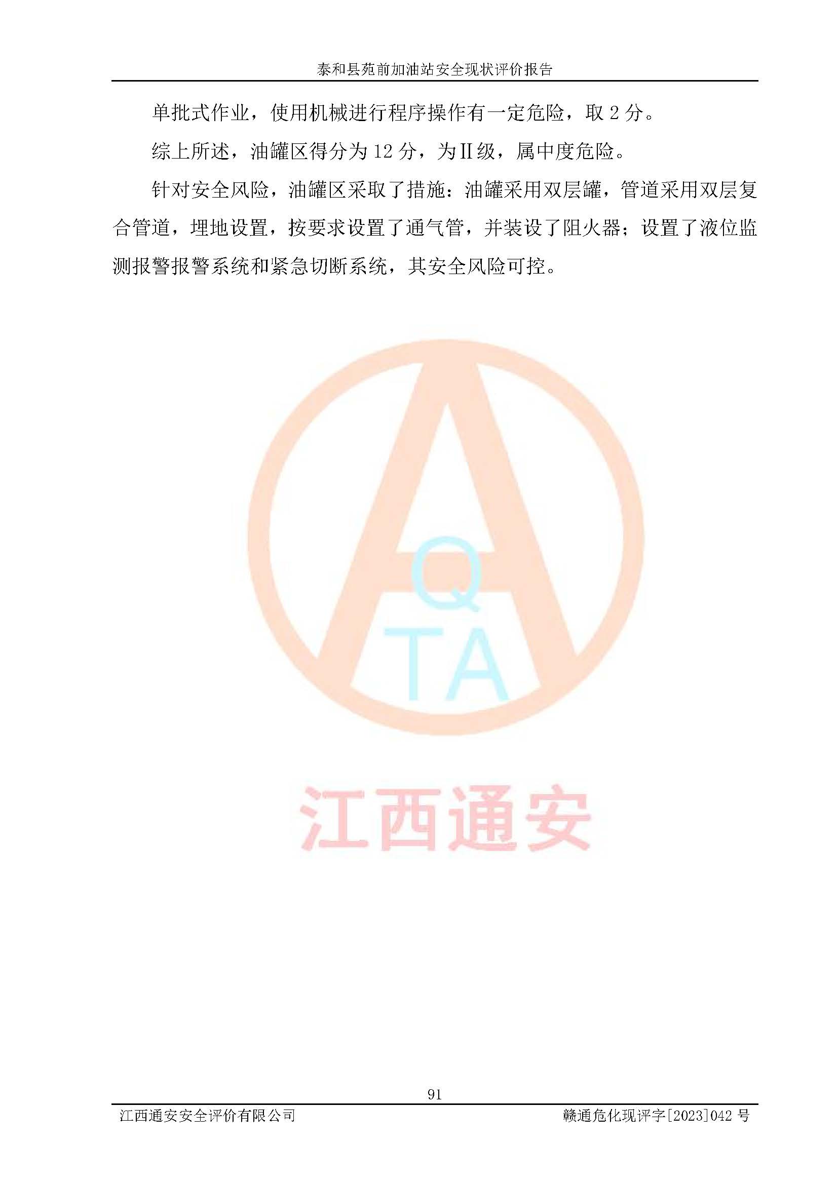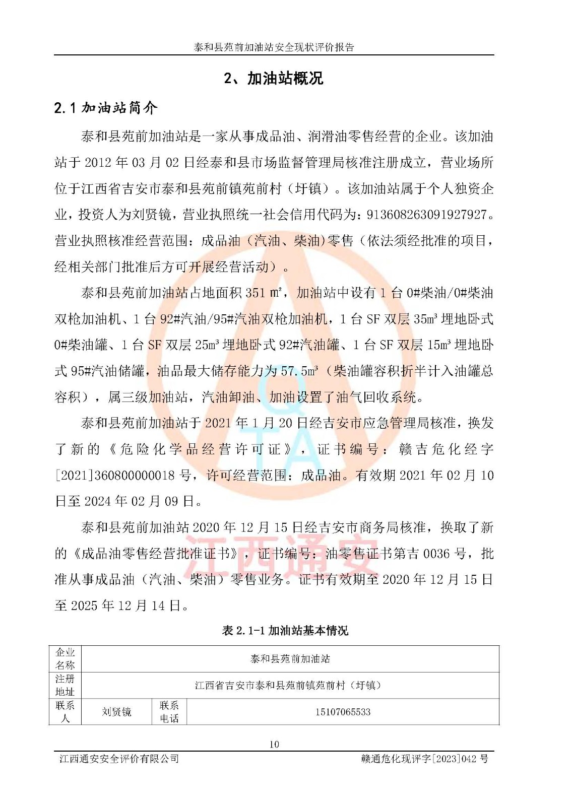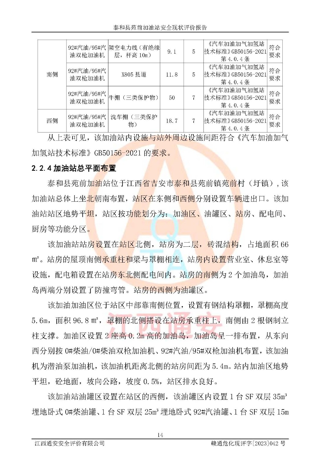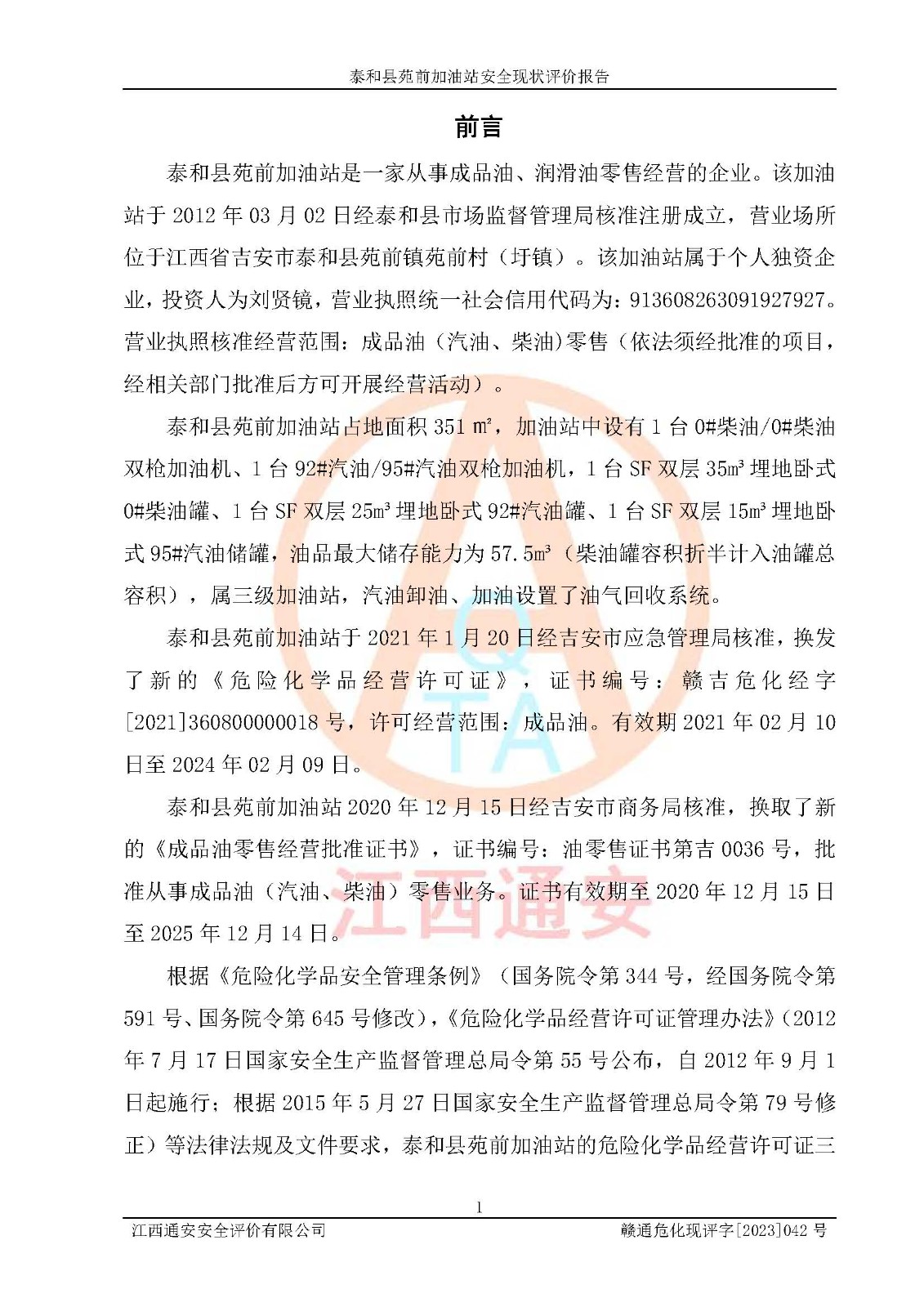 評價報告名稱 | 泰和縣苑前加油站安全現(xiàn)狀評價報告 | |||