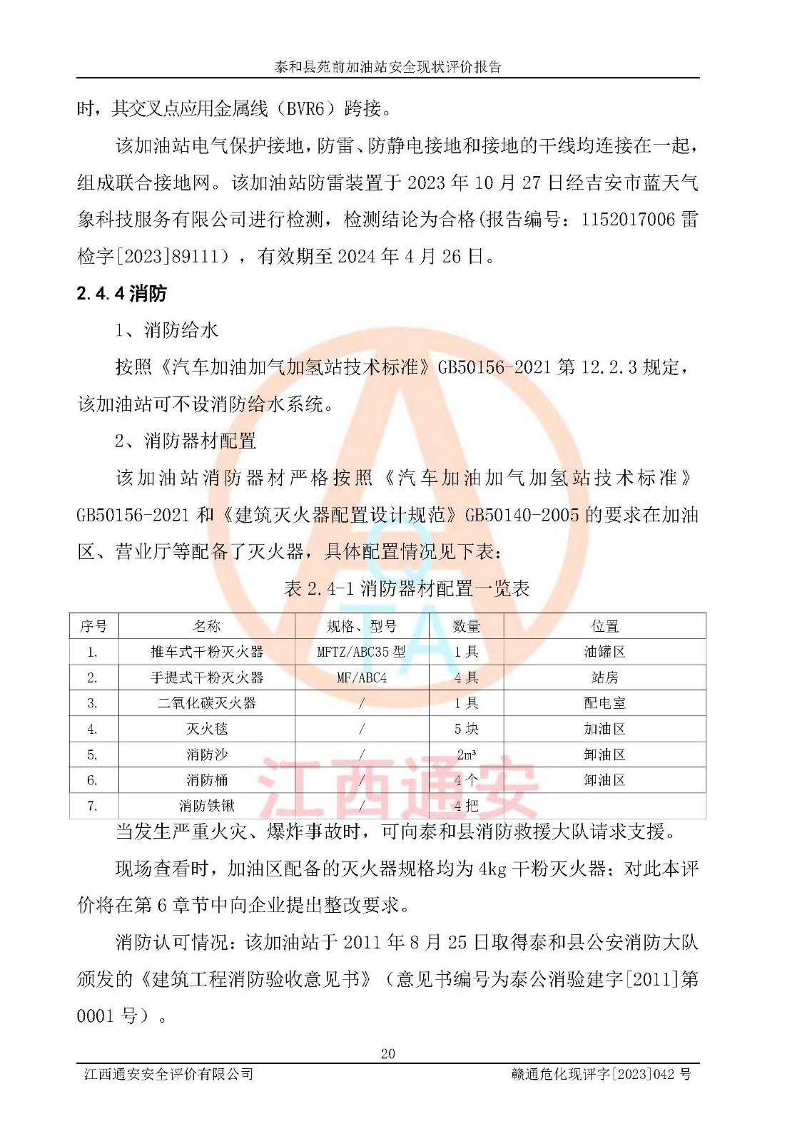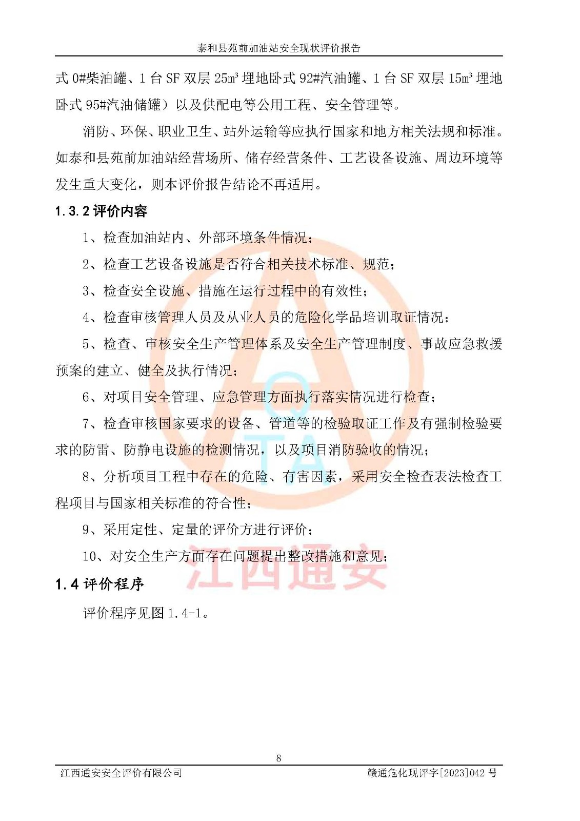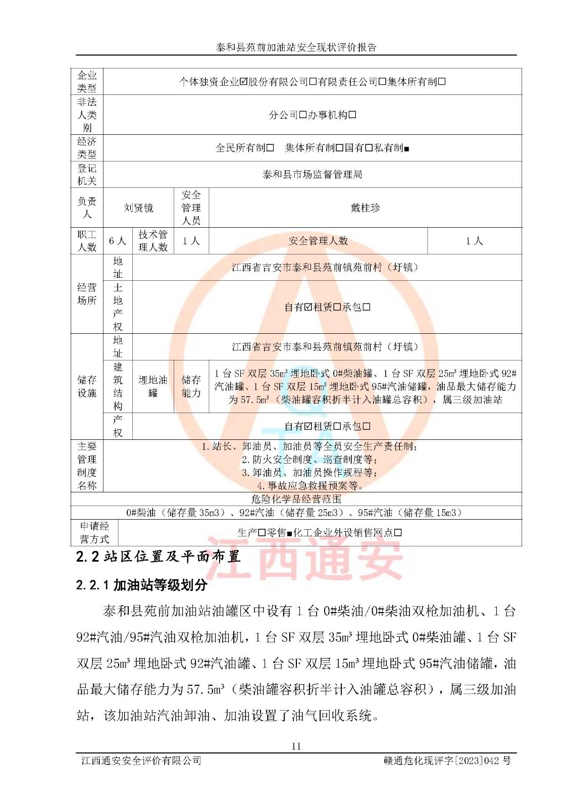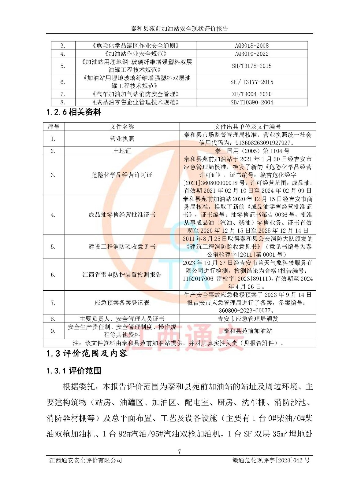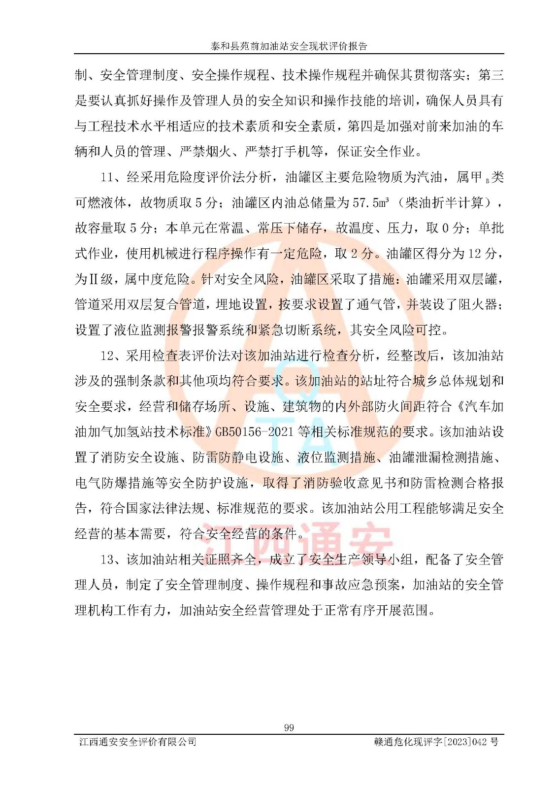 評價報告名稱 | 泰和縣苑前加油站安全現(xiàn)狀評價報告 | |||