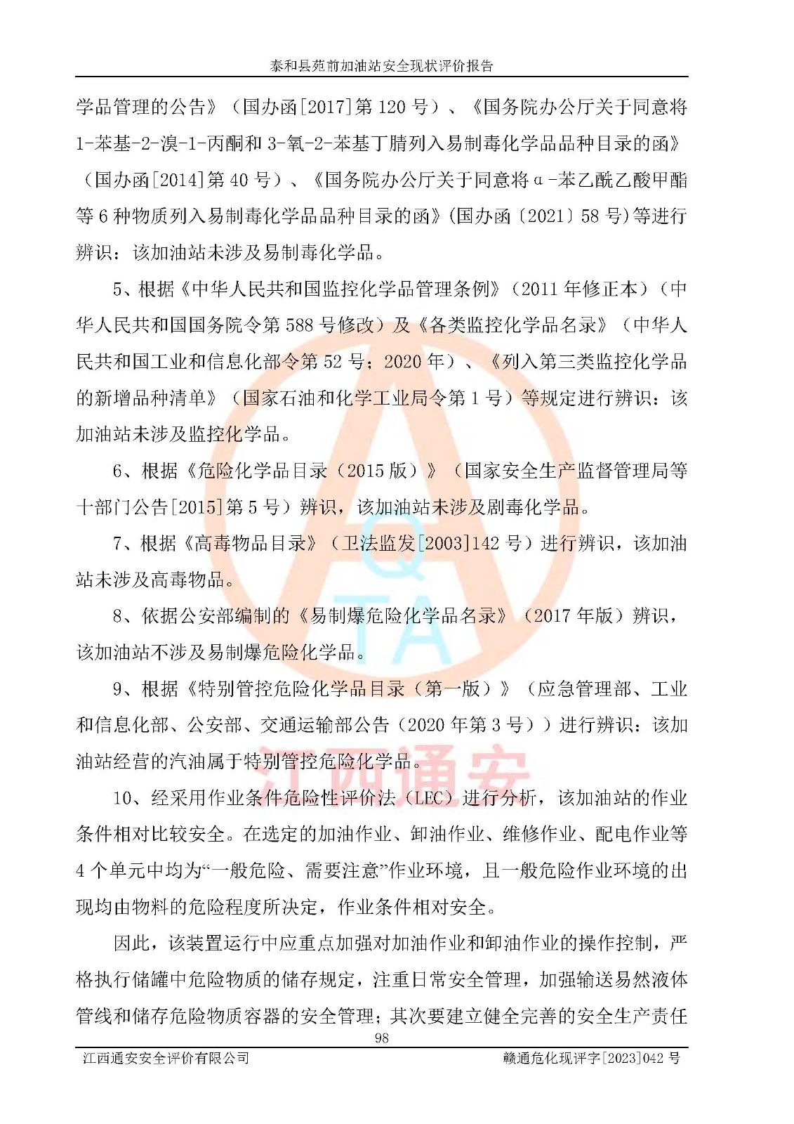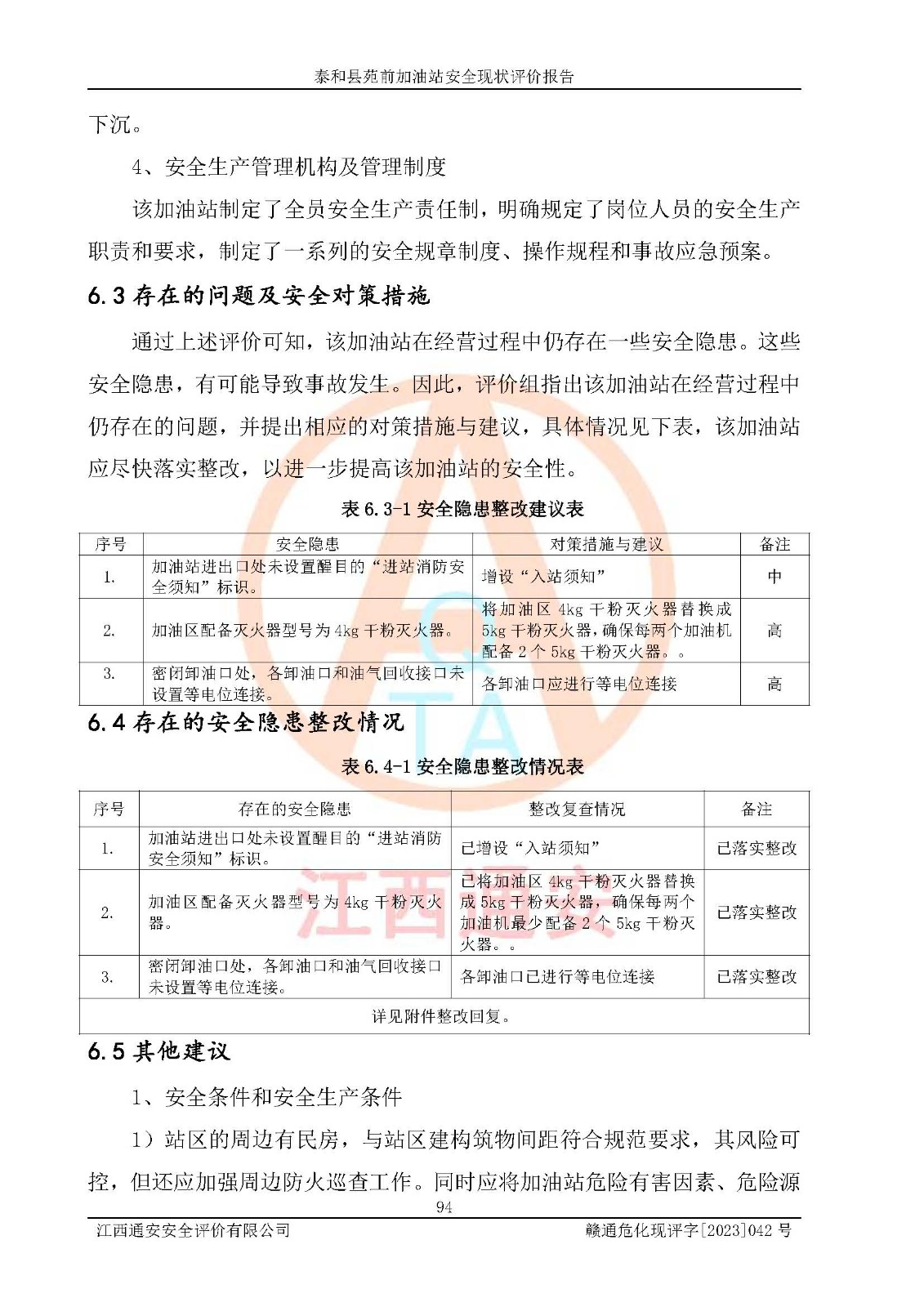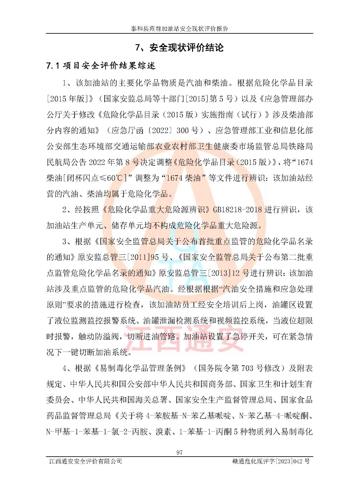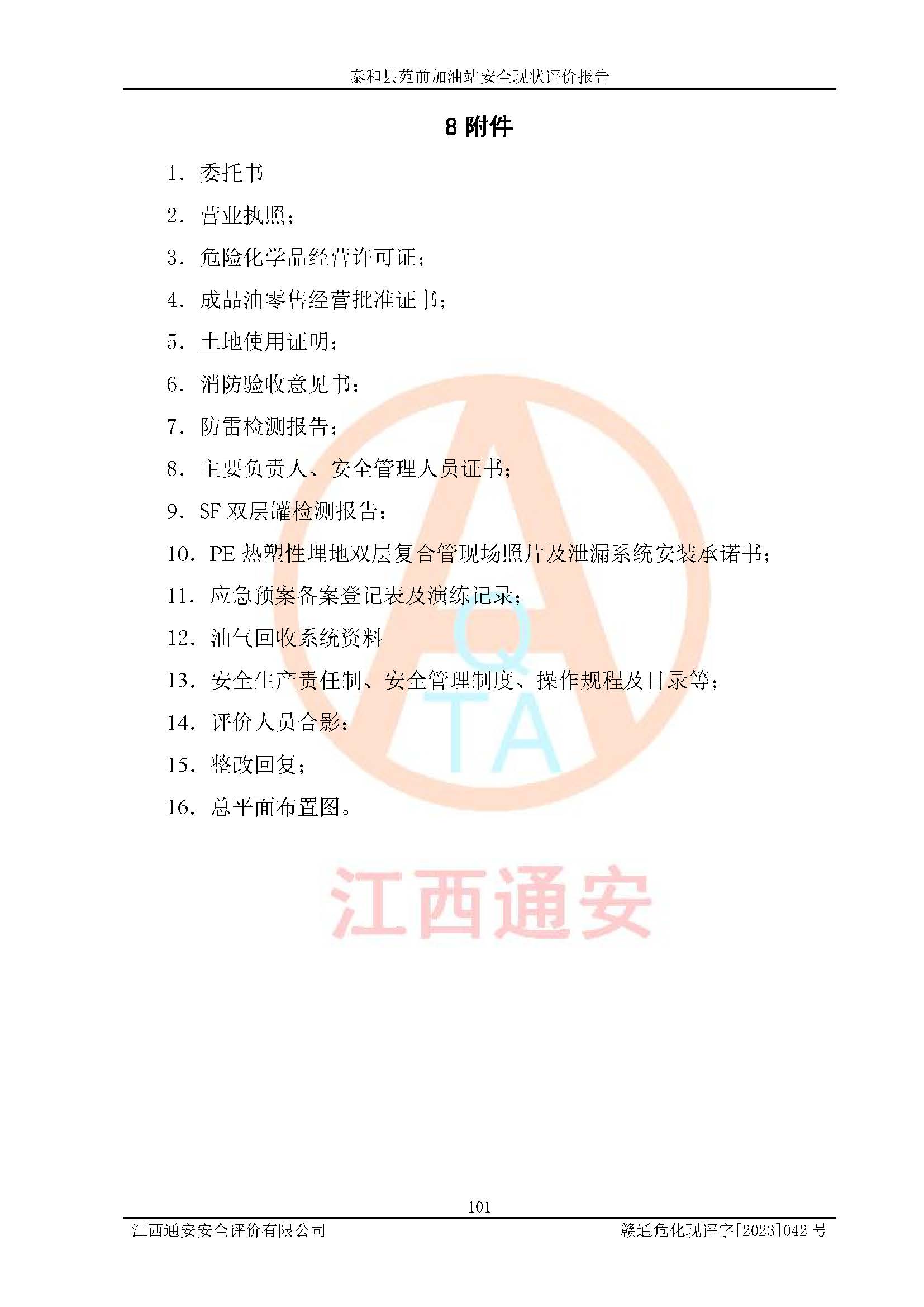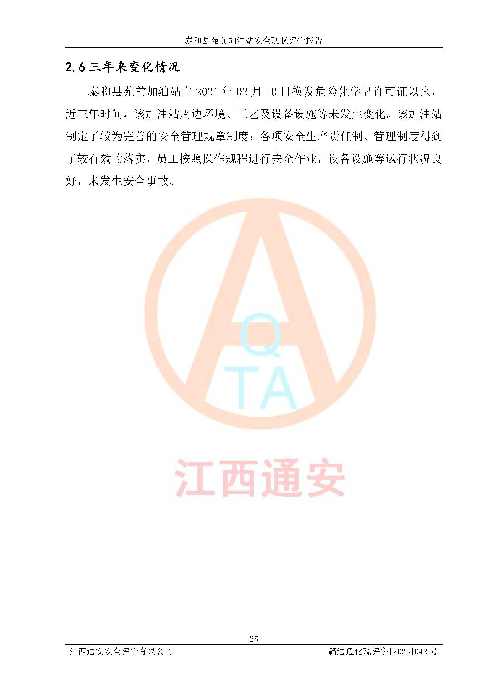 評價報告名稱 | 泰和縣苑前加油站安全現(xiàn)狀評價報告 | |||