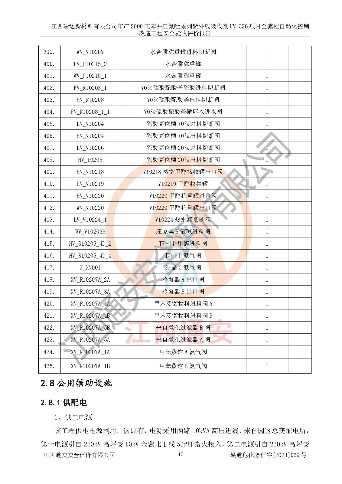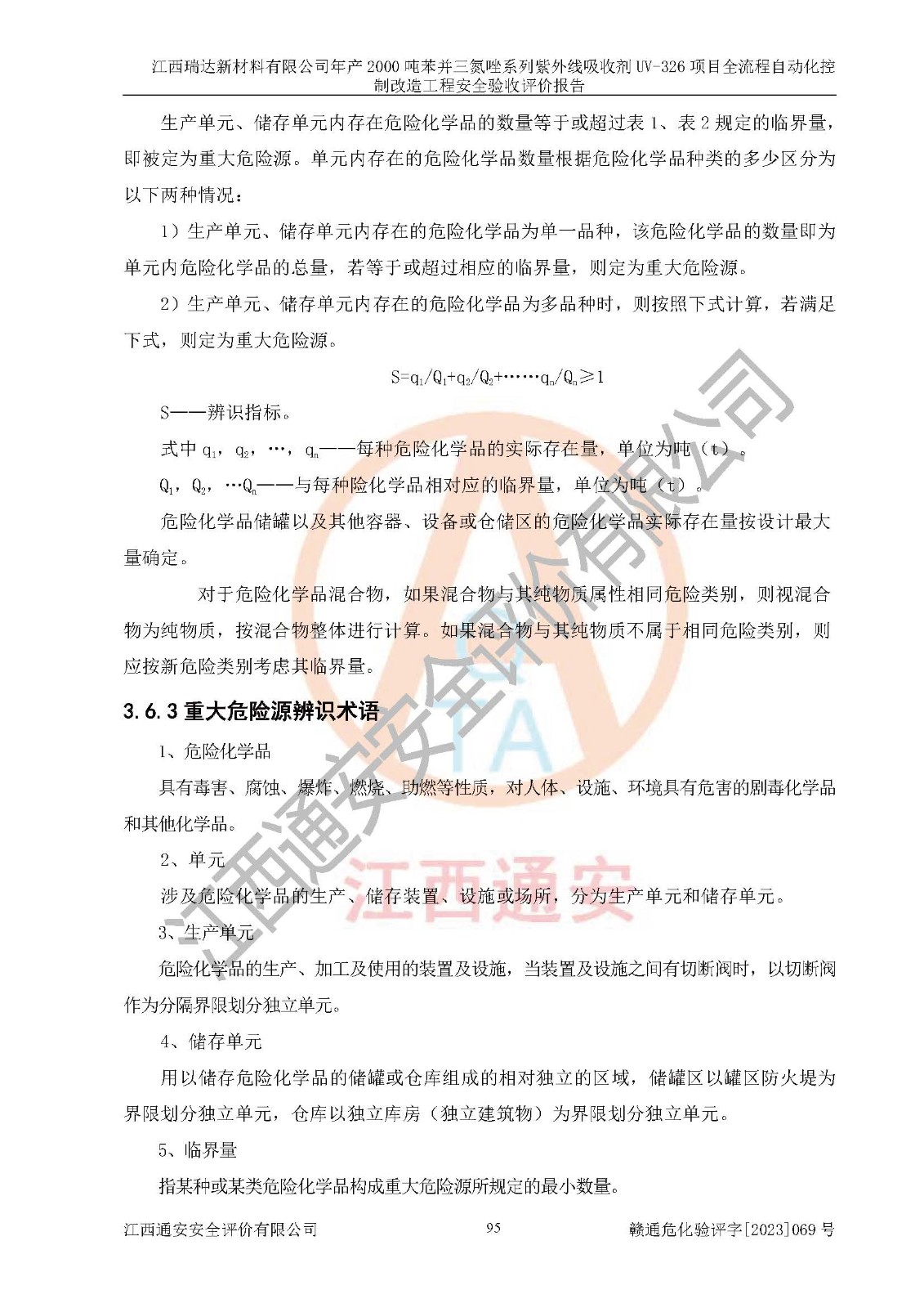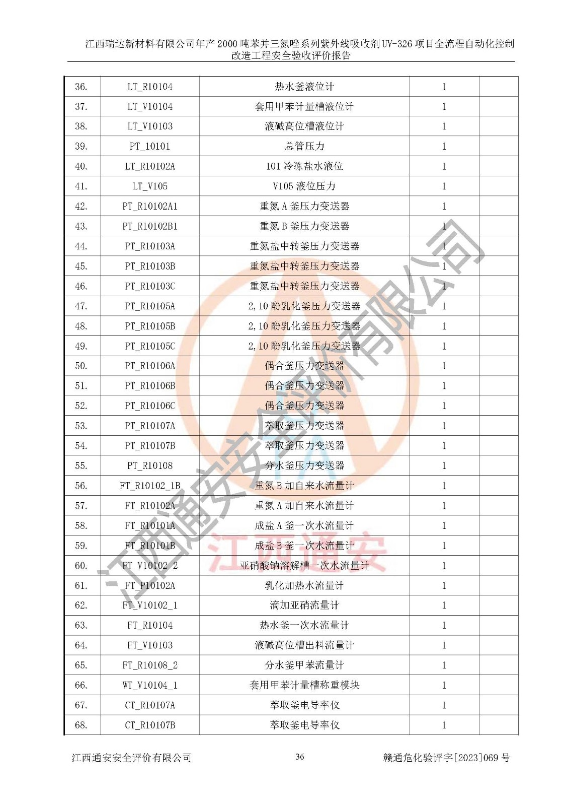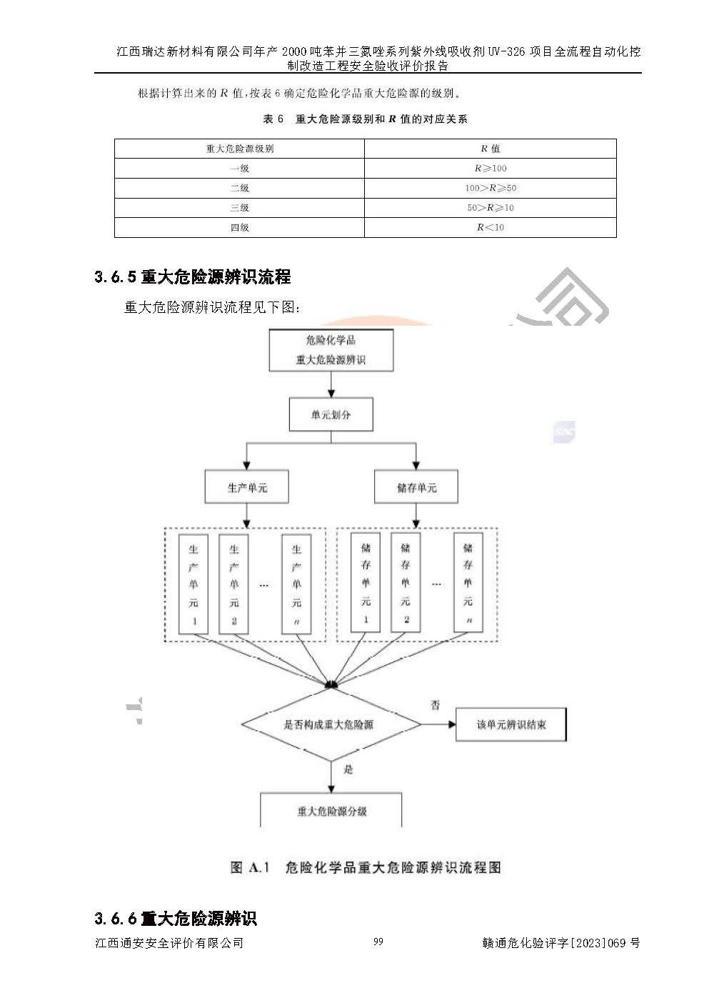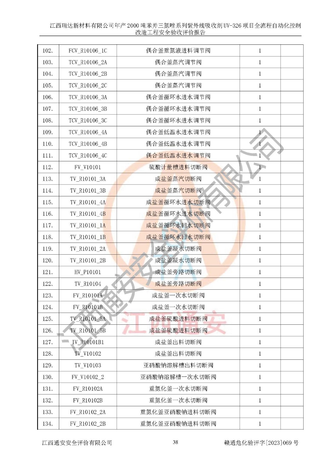 評價報告名稱 | 江西瑞達(dá)新材料有限公司年產(chǎn)2000噸苯并三氮唑系列紫外線吸收劑UV-326項目全流程自動化控制改造工程安全驗收評價報告 | |||