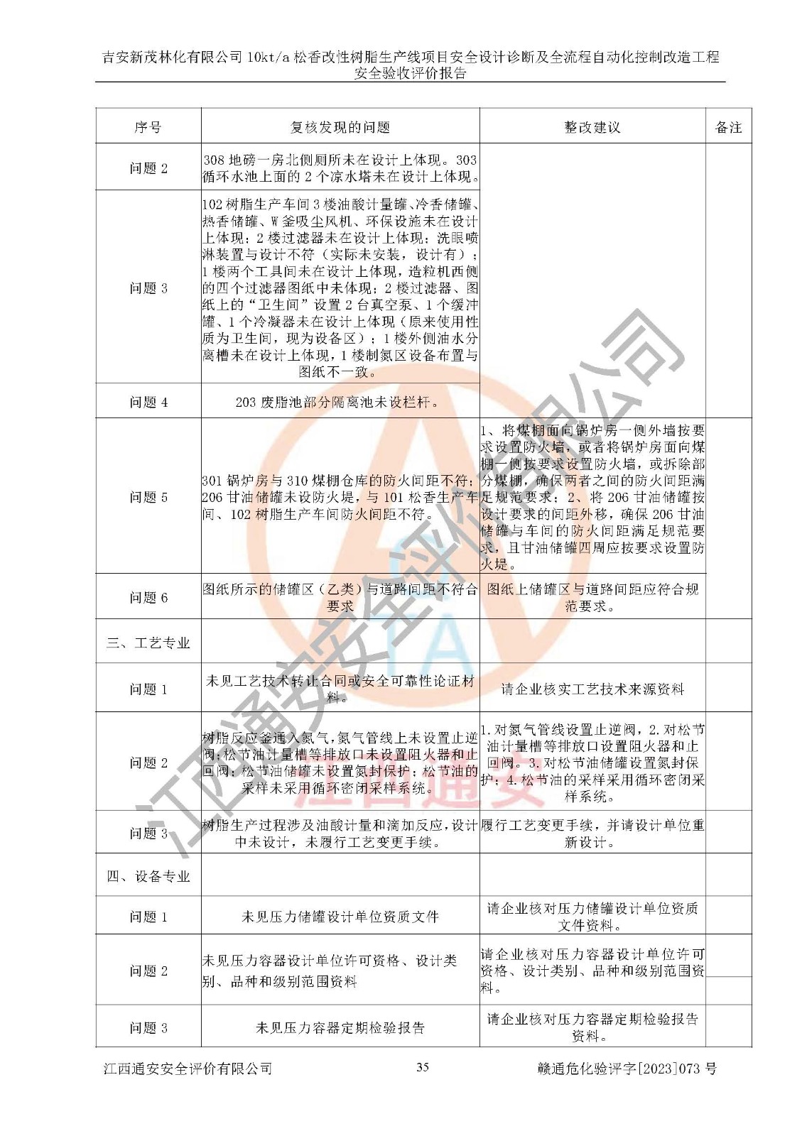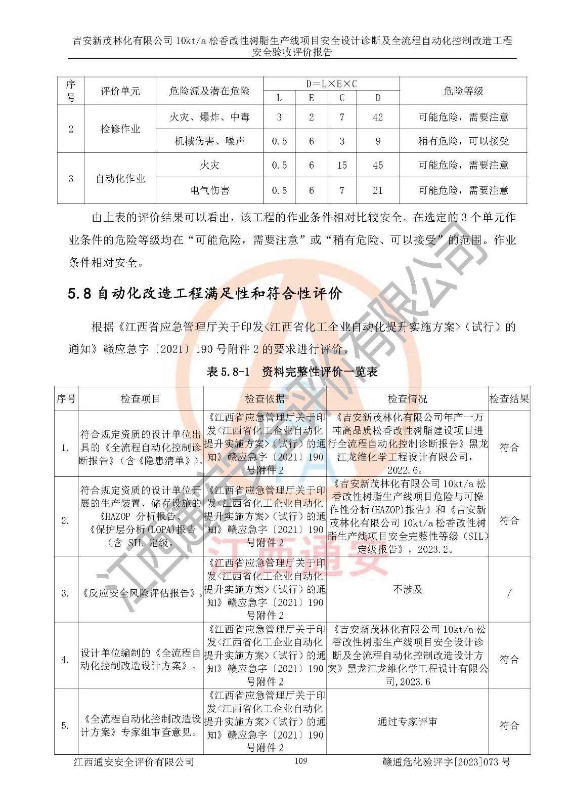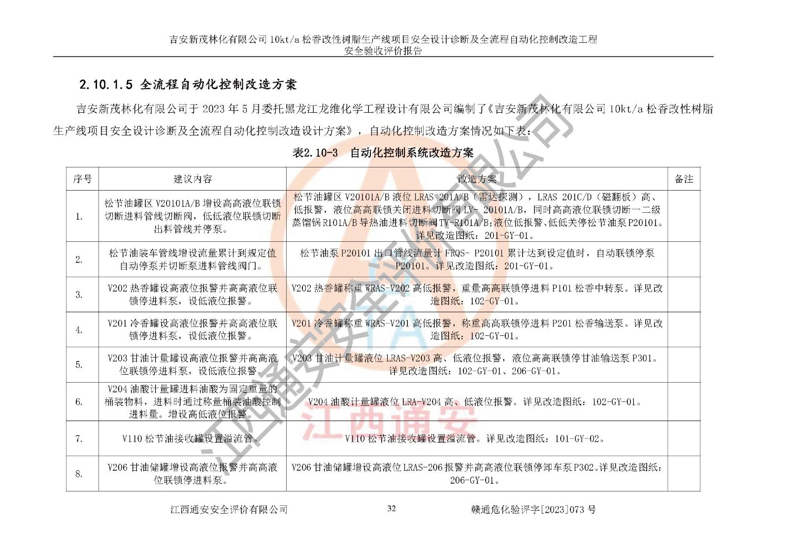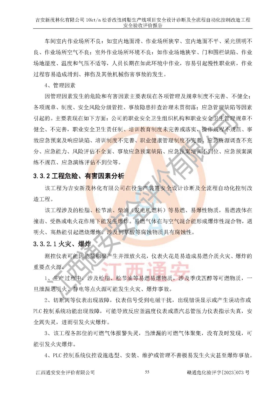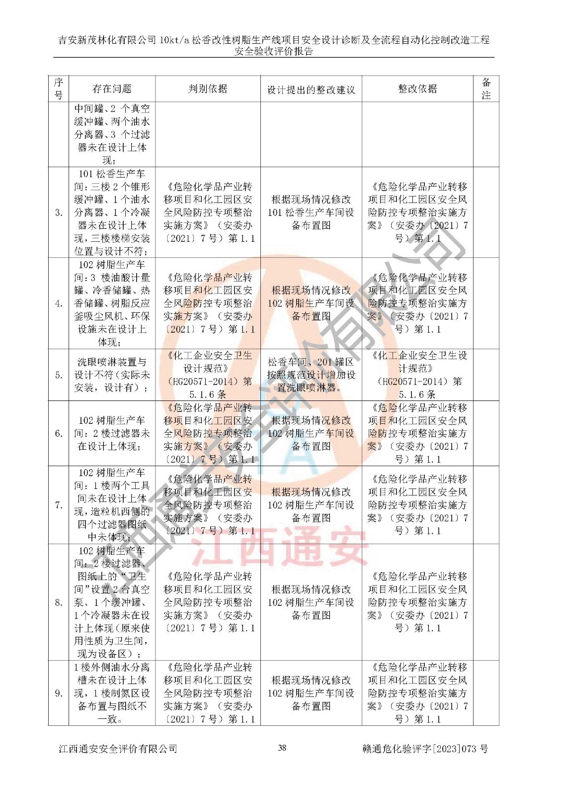 評價(jià)報(bào)告名稱 | 吉安新茂林化有限公司10kta松香改性樹脂生產(chǎn)線項(xiàng)目安全設(shè)計(jì)診斷及全流程自動(dòng)化控制改造工程安全驗(yàn)收評價(jià)報(bào)告 | |||