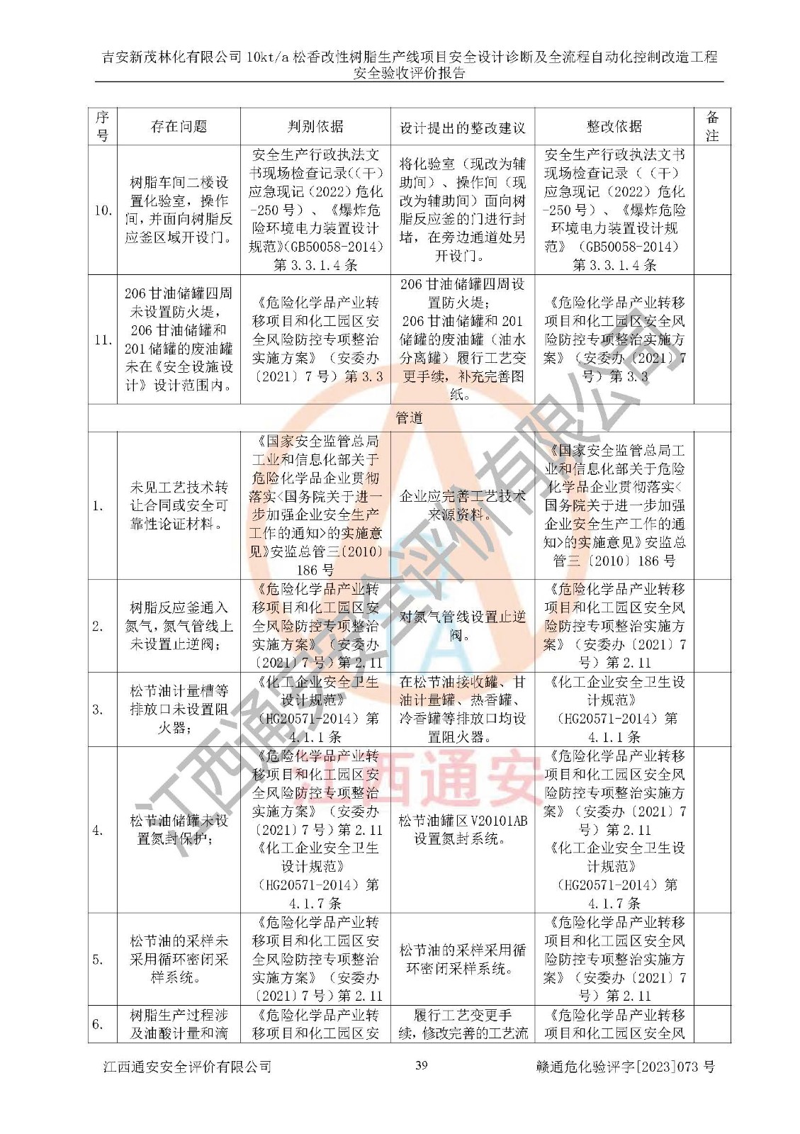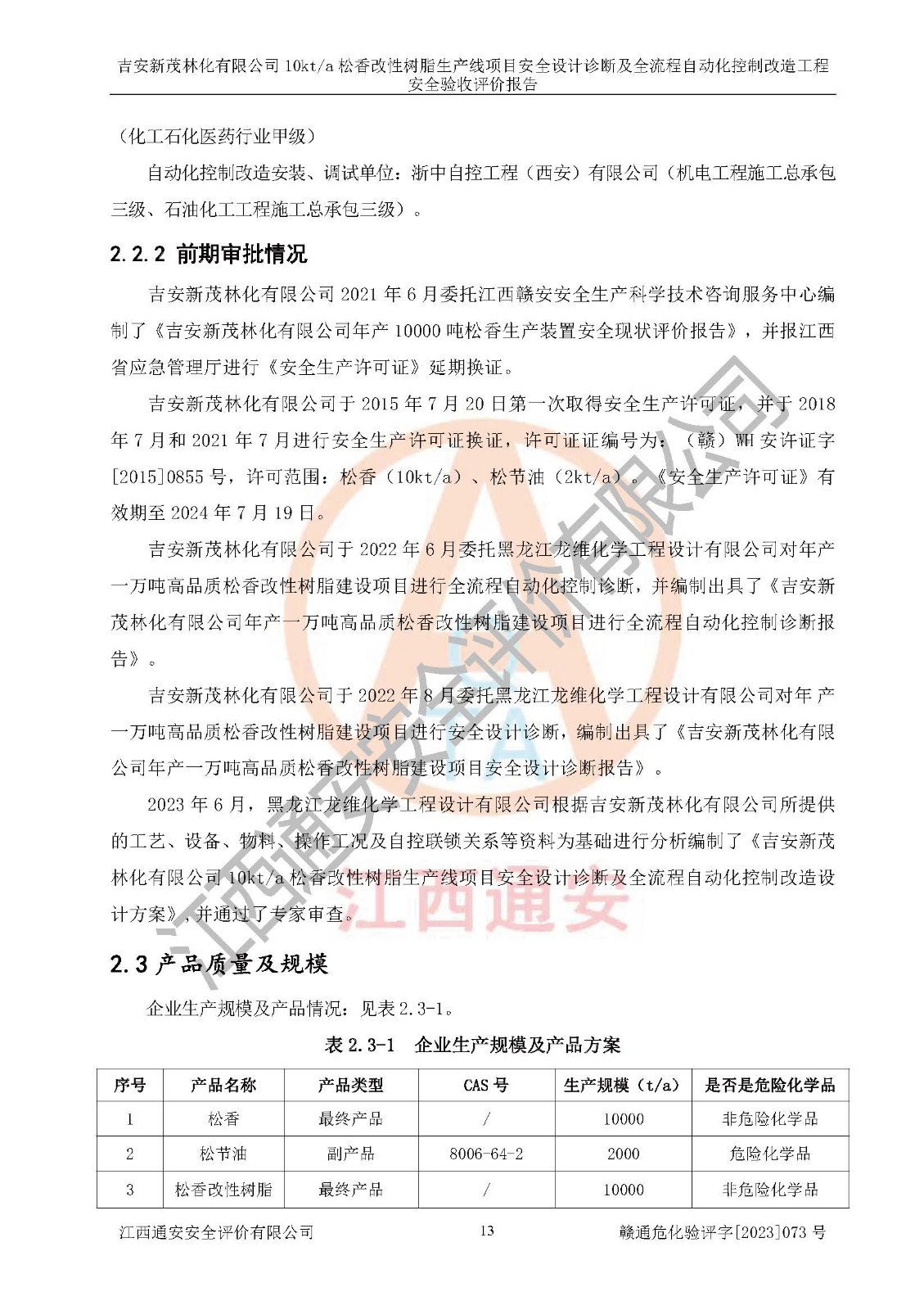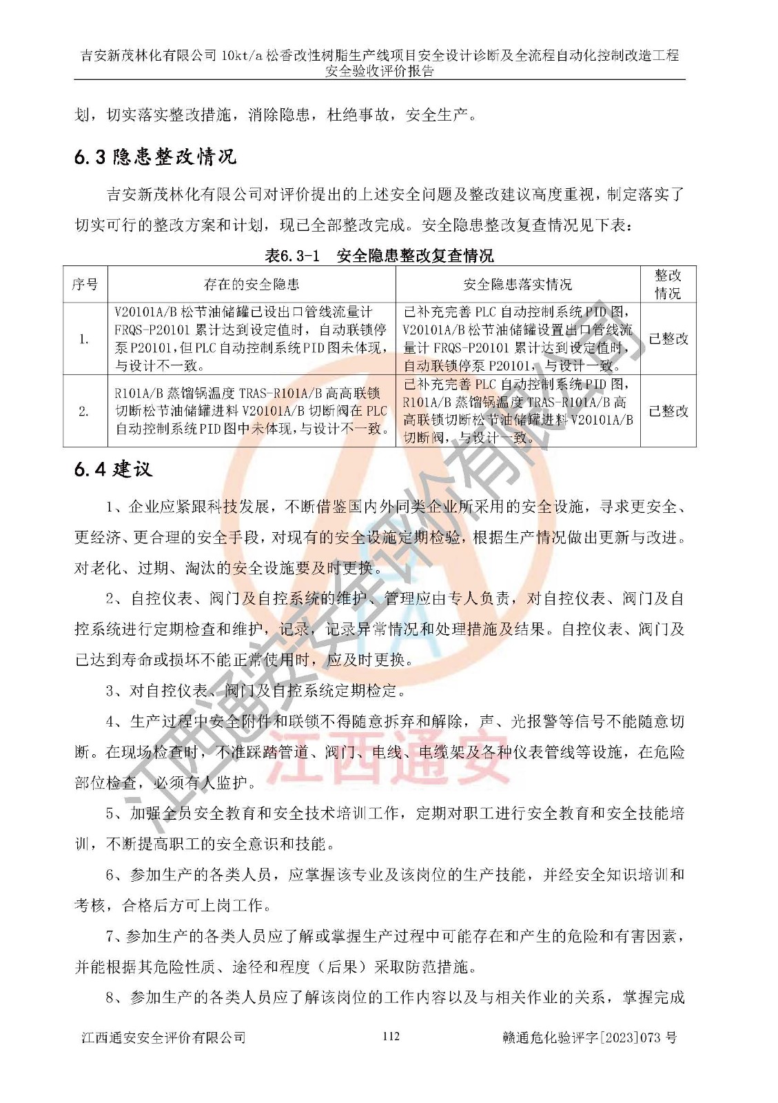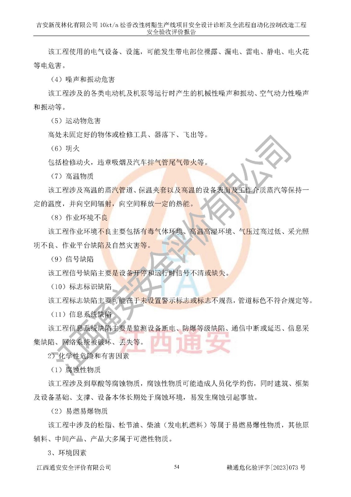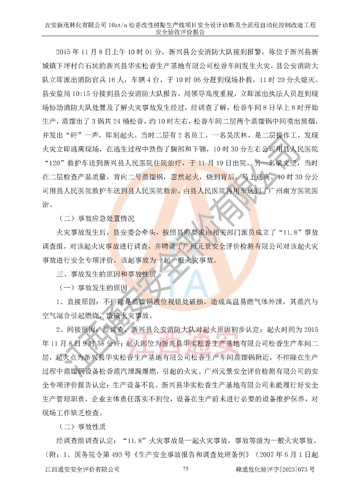 評價(jià)報(bào)告名稱 | 吉安新茂林化有限公司10kta松香改性樹脂生產(chǎn)線項(xiàng)目安全設(shè)計(jì)診斷及全流程自動(dòng)化控制改造工程安全驗(yàn)收評價(jià)報(bào)告 | |||