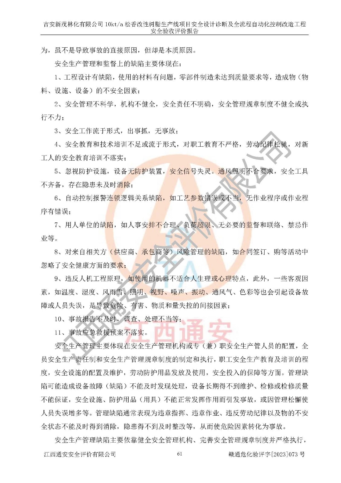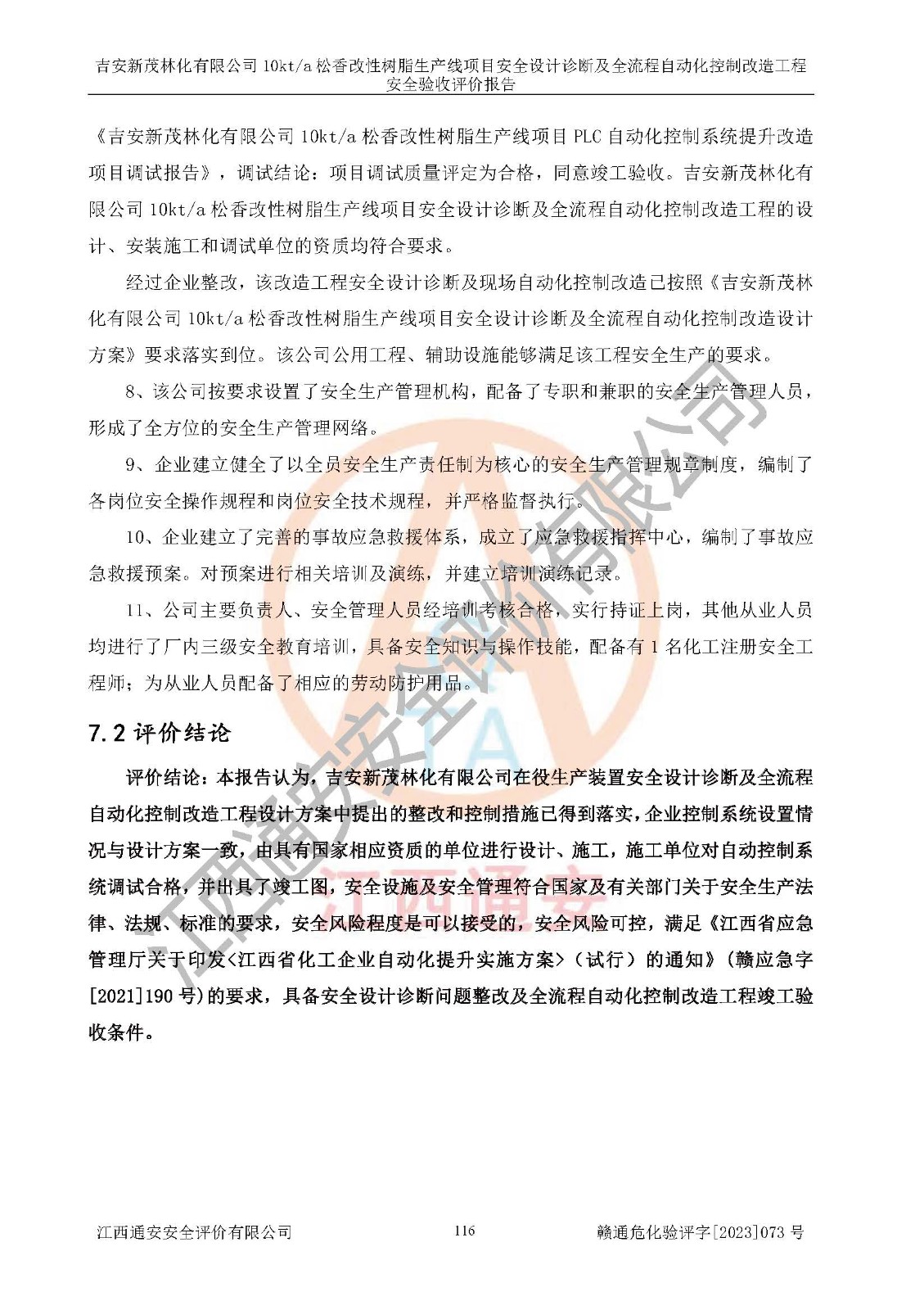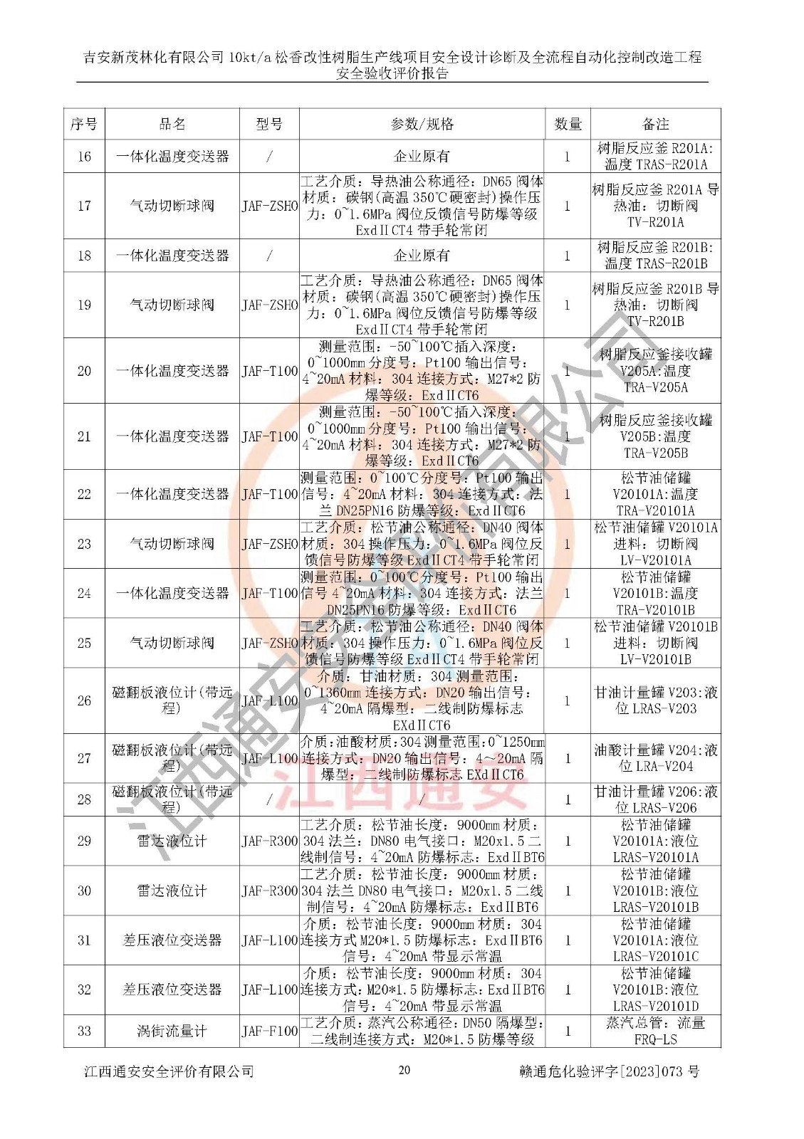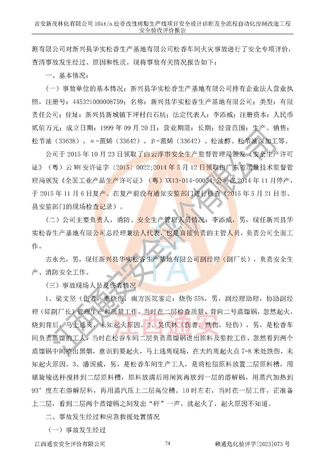 評價(jià)報(bào)告名稱 | 吉安新茂林化有限公司10kta松香改性樹脂生產(chǎn)線項(xiàng)目安全設(shè)計(jì)診斷及全流程自動(dòng)化控制改造工程安全驗(yàn)收評價(jià)報(bào)告 | |||