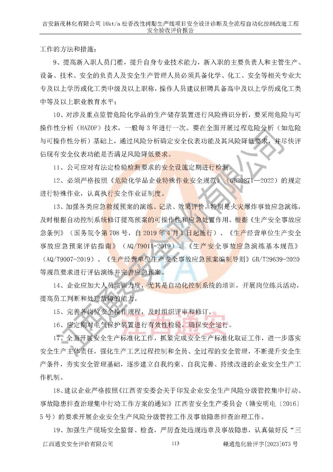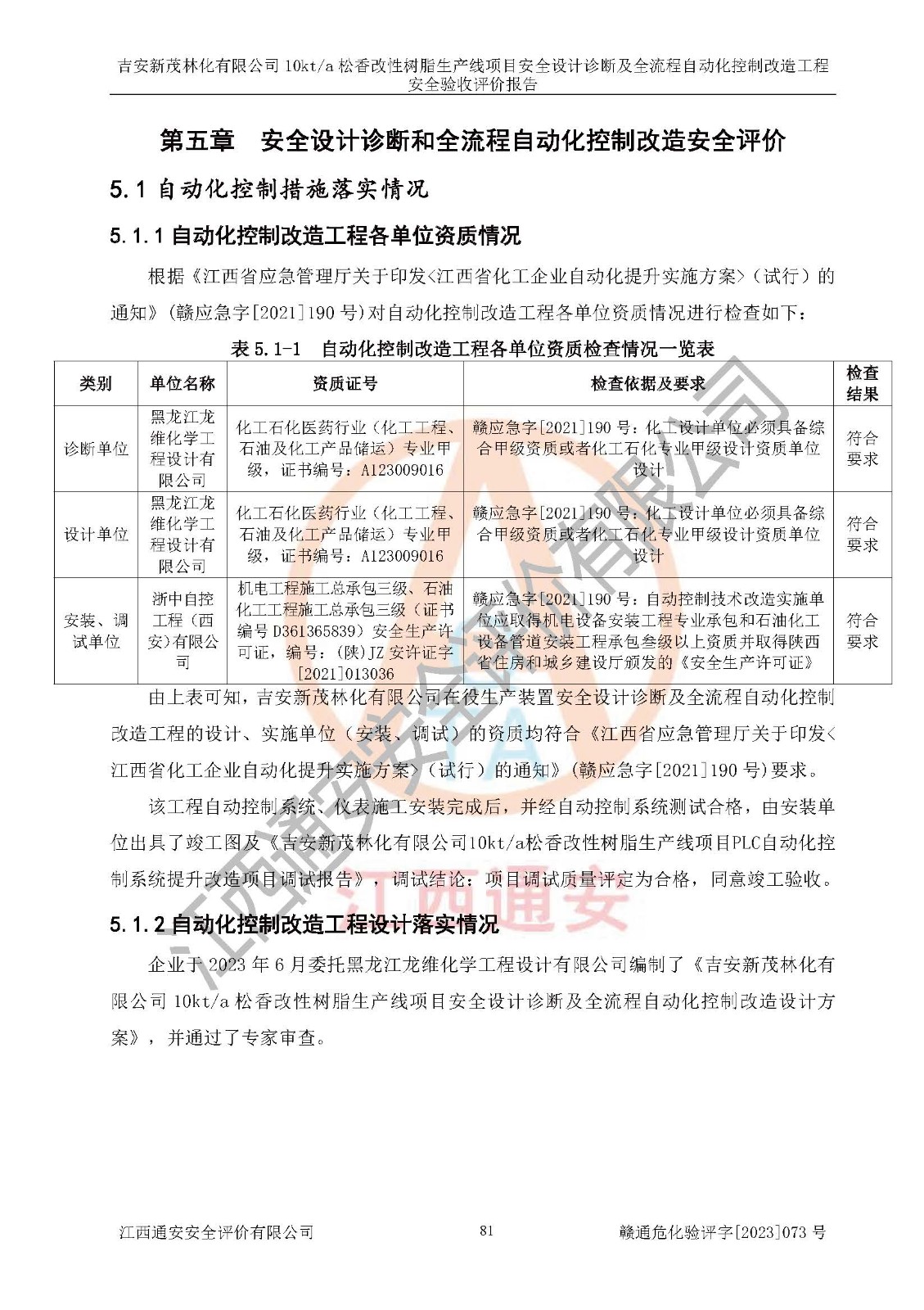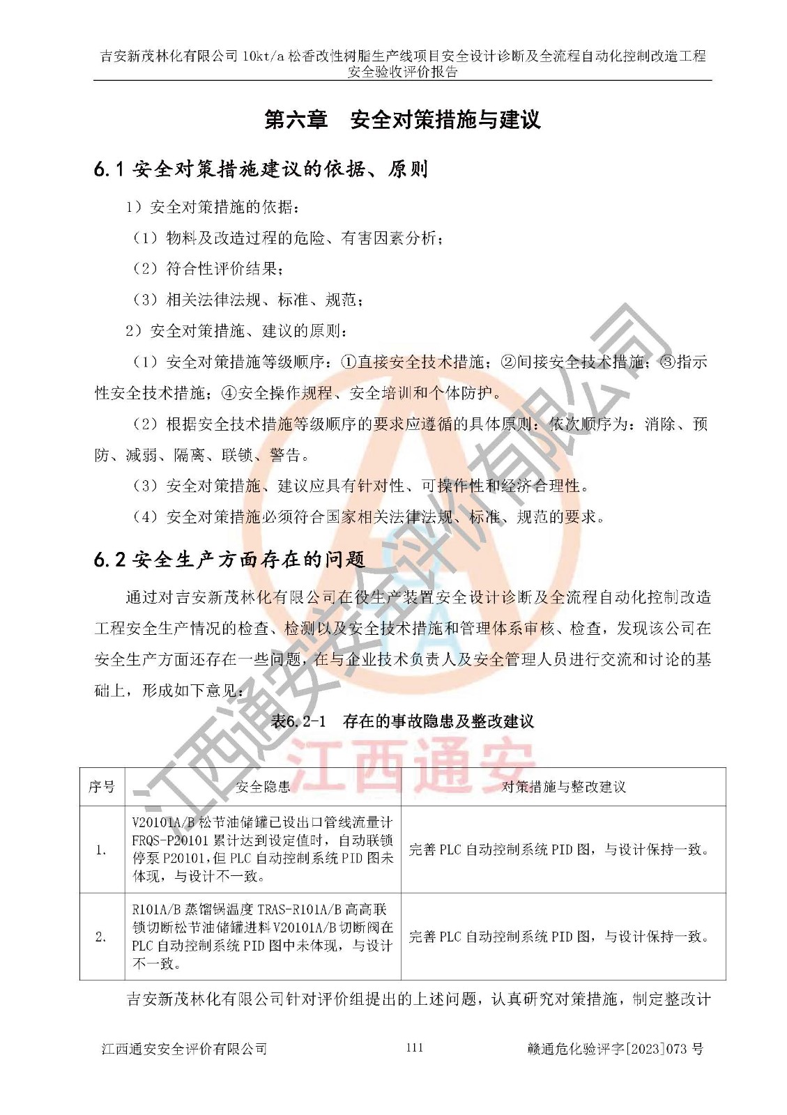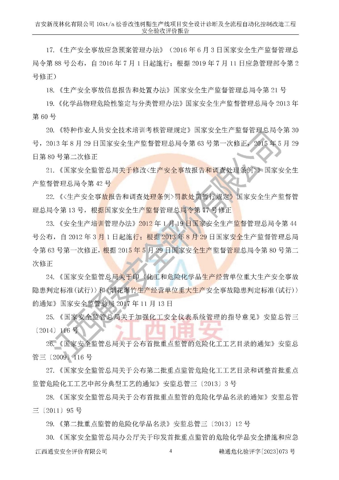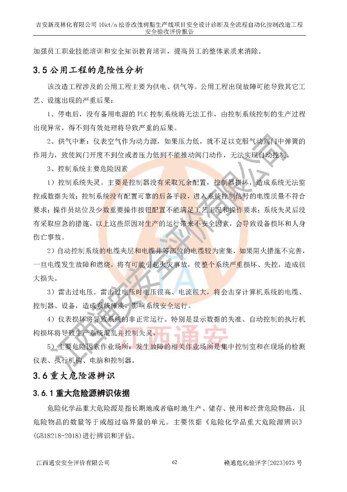 評價(jià)報(bào)告名稱 | 吉安新茂林化有限公司10kta松香改性樹脂生產(chǎn)線項(xiàng)目安全設(shè)計(jì)診斷及全流程自動(dòng)化控制改造工程安全驗(yàn)收評價(jià)報(bào)告 | |||