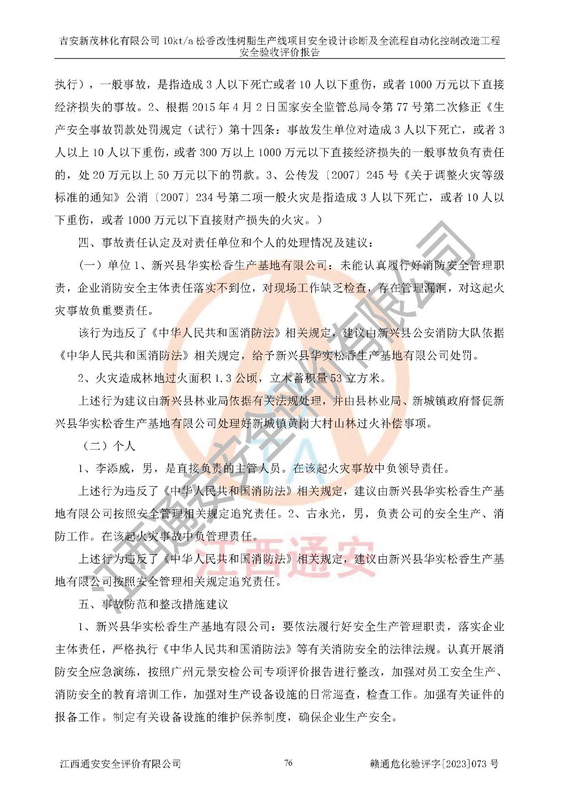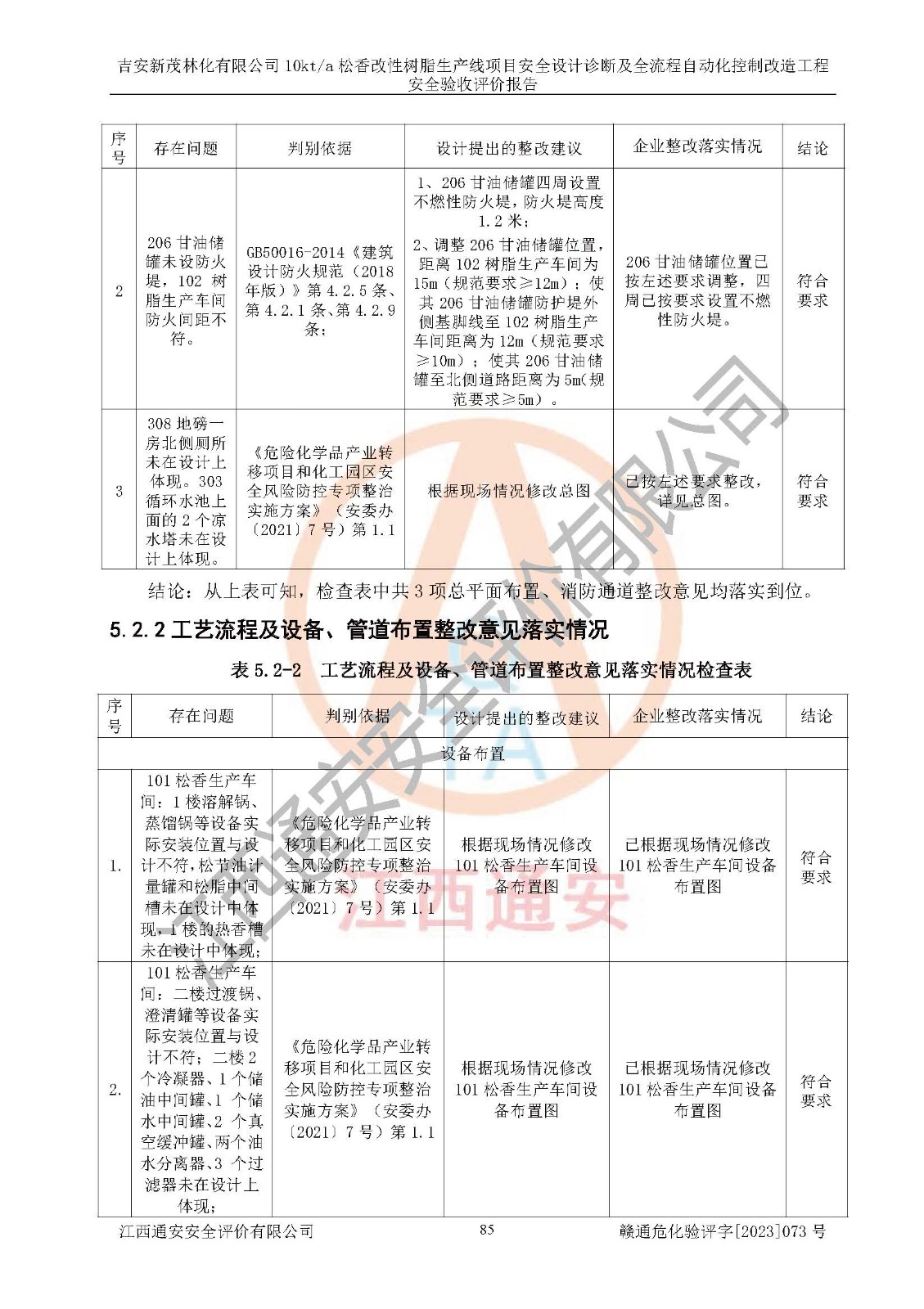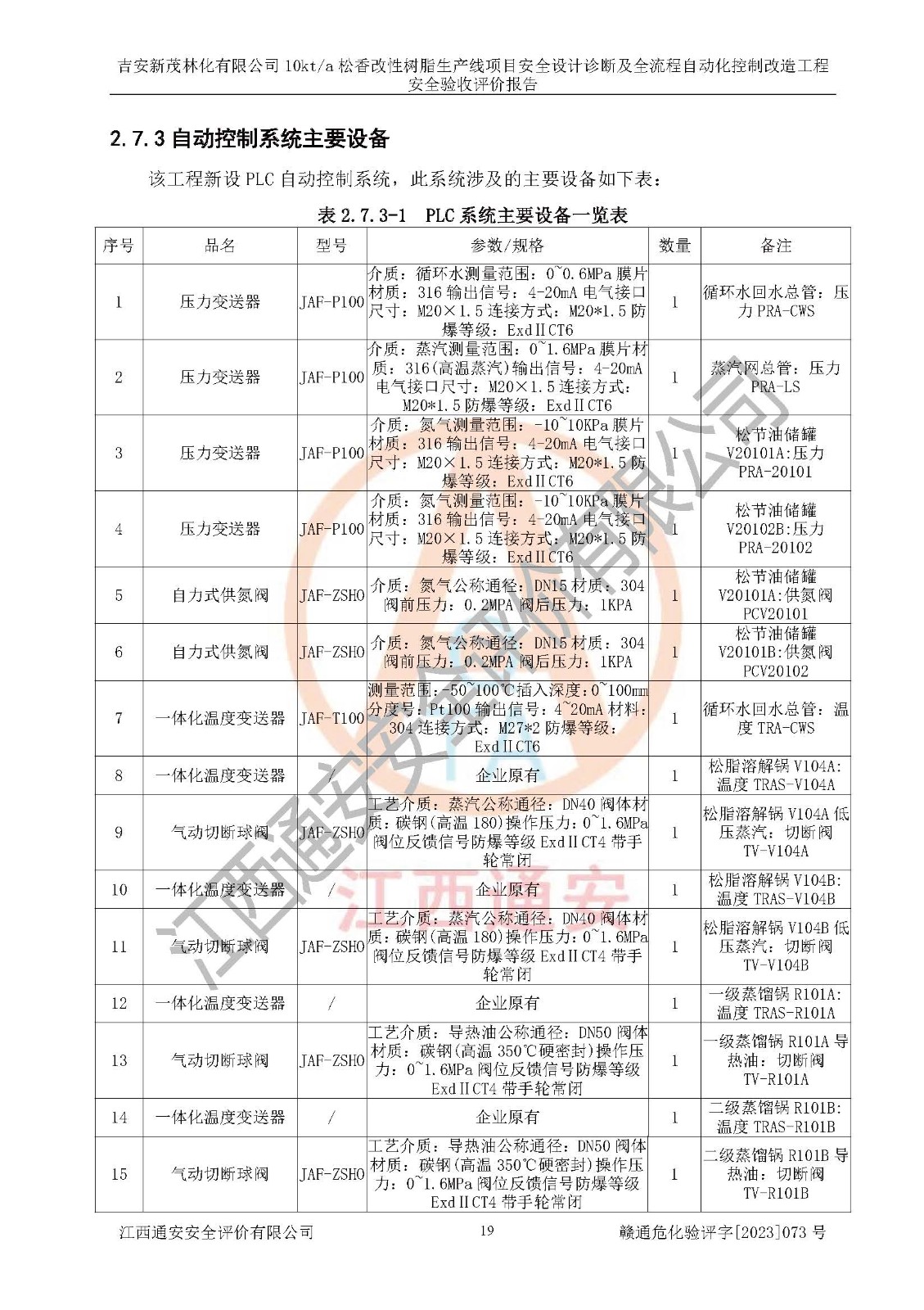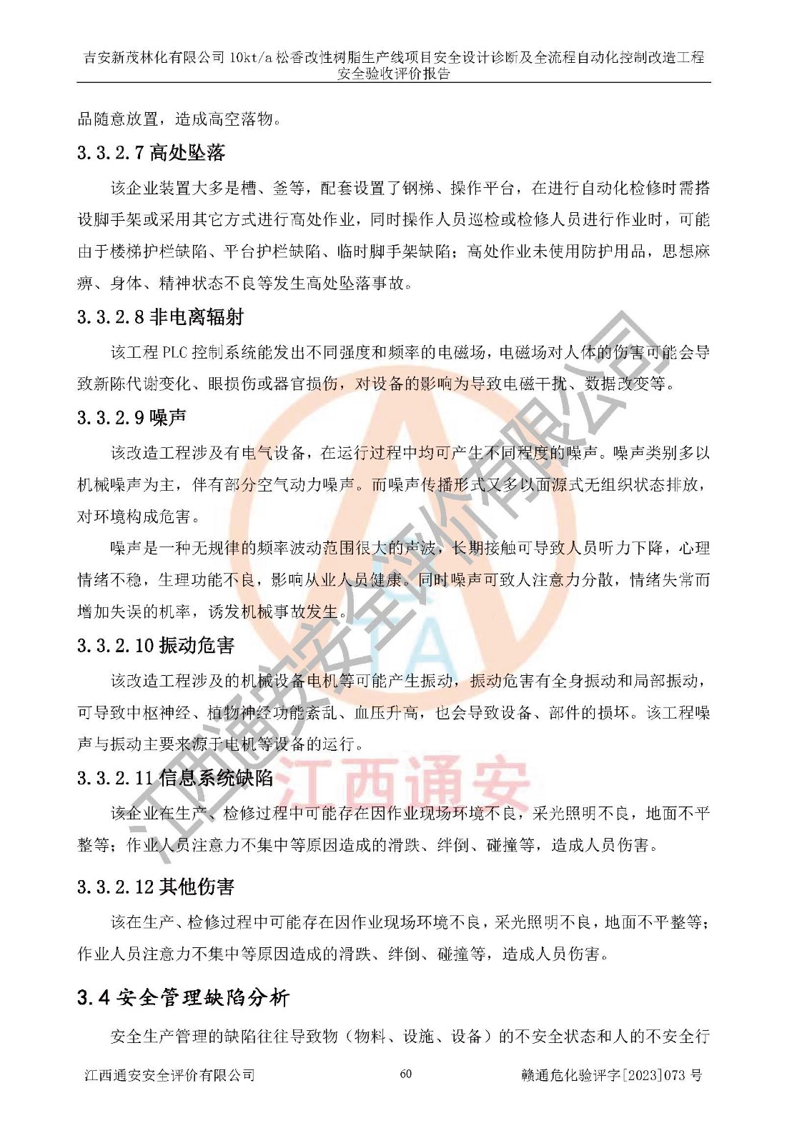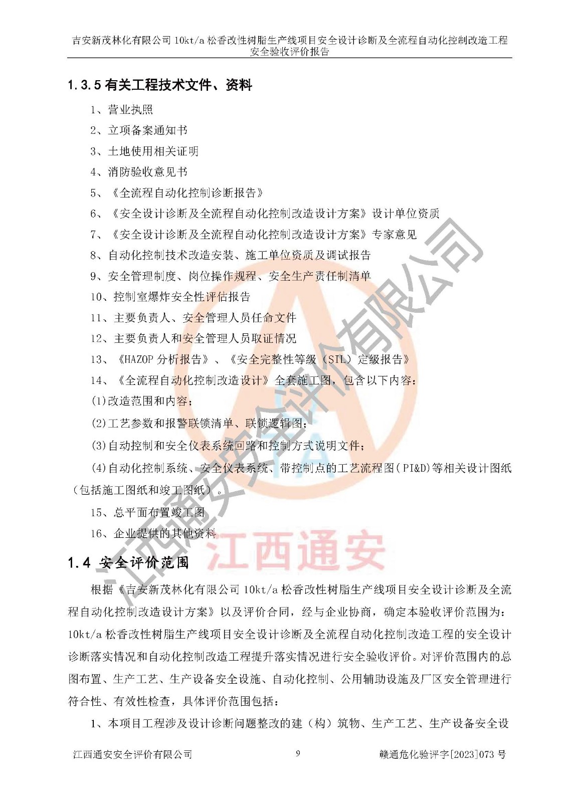 評價(jià)報(bào)告名稱 | 吉安新茂林化有限公司10kta松香改性樹脂生產(chǎn)線項(xiàng)目安全設(shè)計(jì)診斷及全流程自動(dòng)化控制改造工程安全驗(yàn)收評價(jià)報(bào)告 | |||