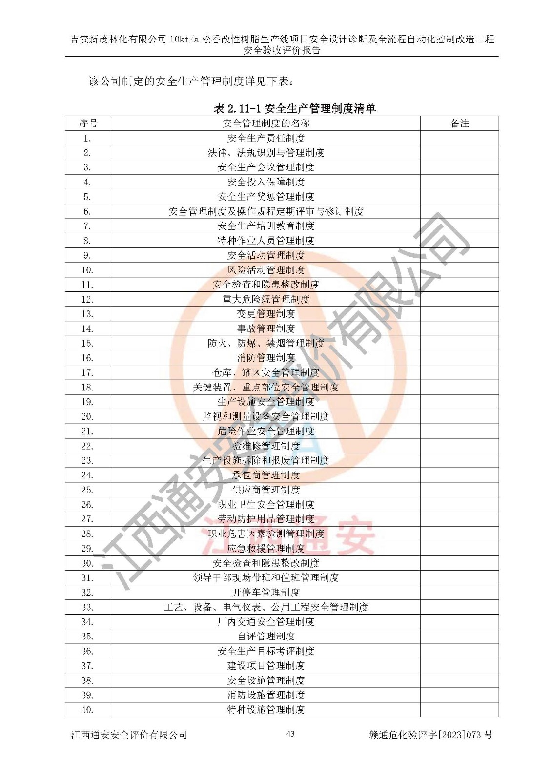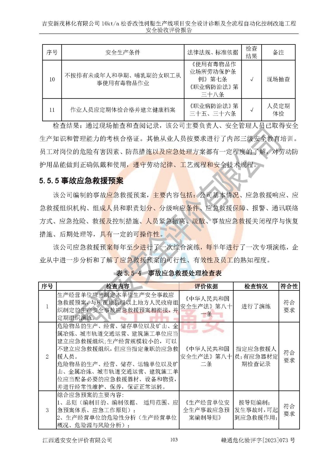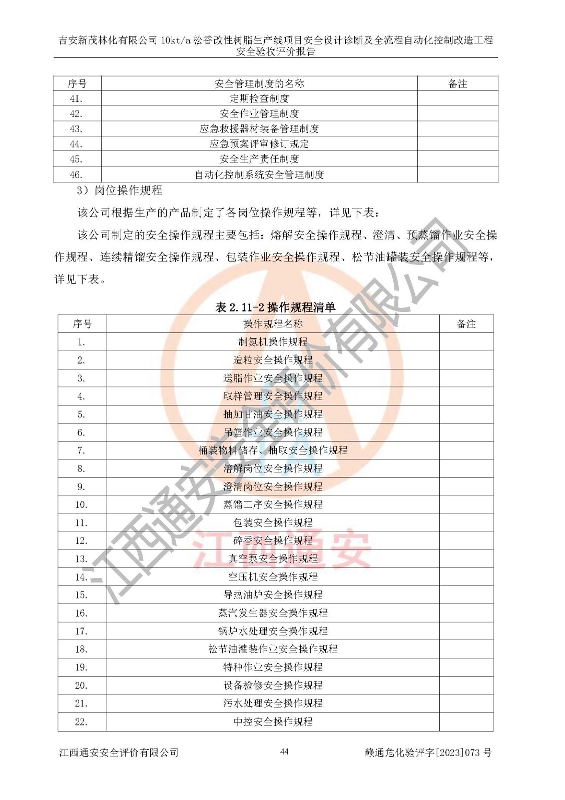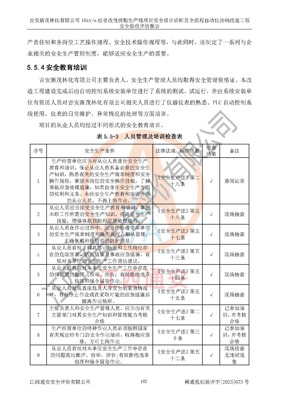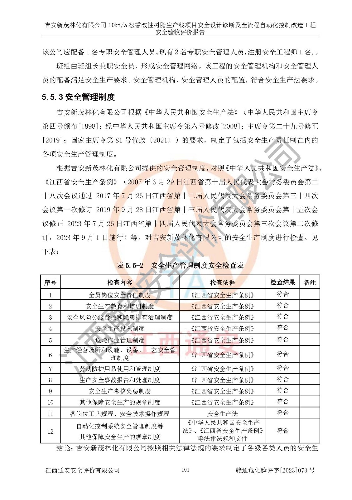 評價(jià)報(bào)告名稱 | 吉安新茂林化有限公司10kta松香改性樹脂生產(chǎn)線項(xiàng)目安全設(shè)計(jì)診斷及全流程自動(dòng)化控制改造工程安全驗(yàn)收評價(jià)報(bào)告 | |||