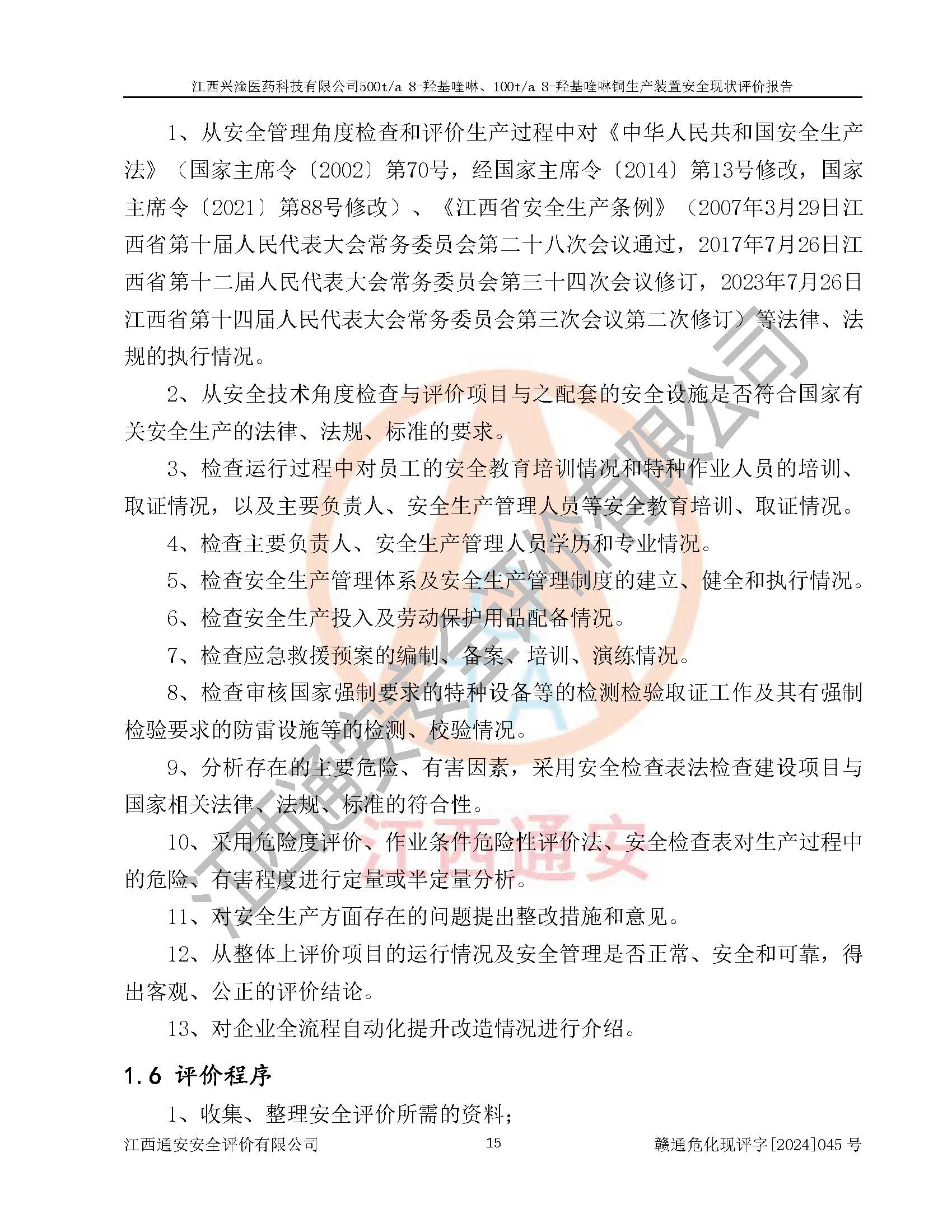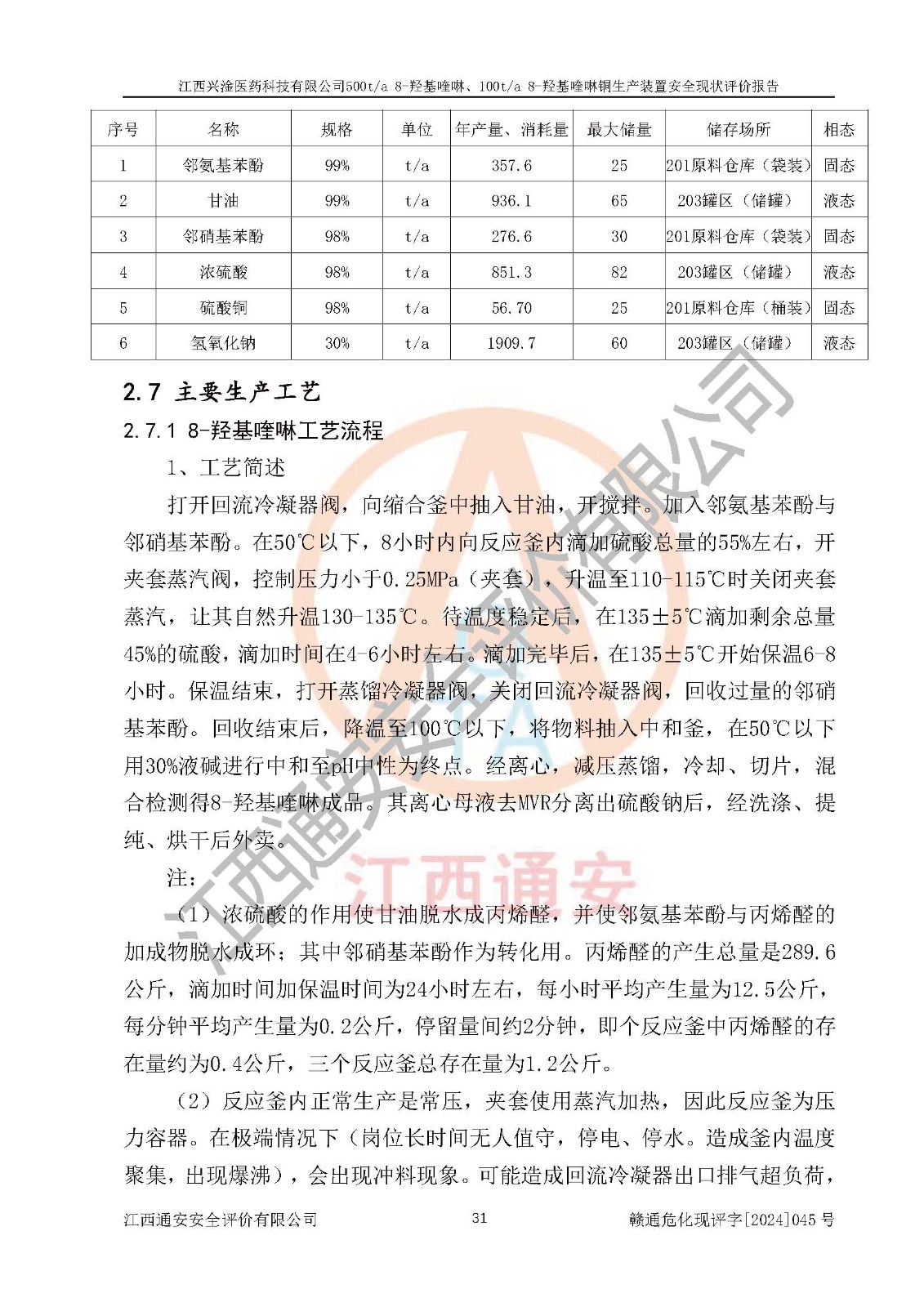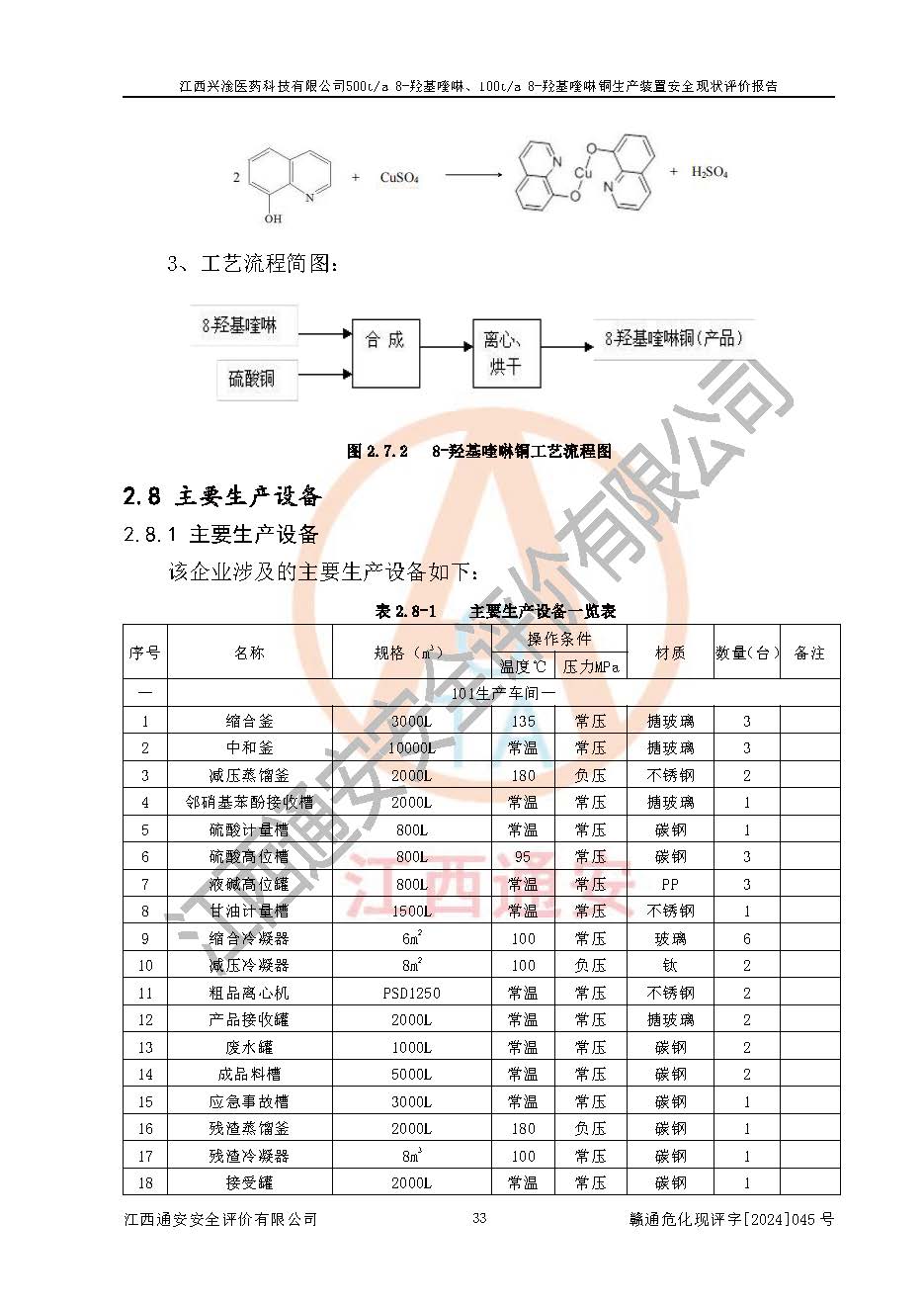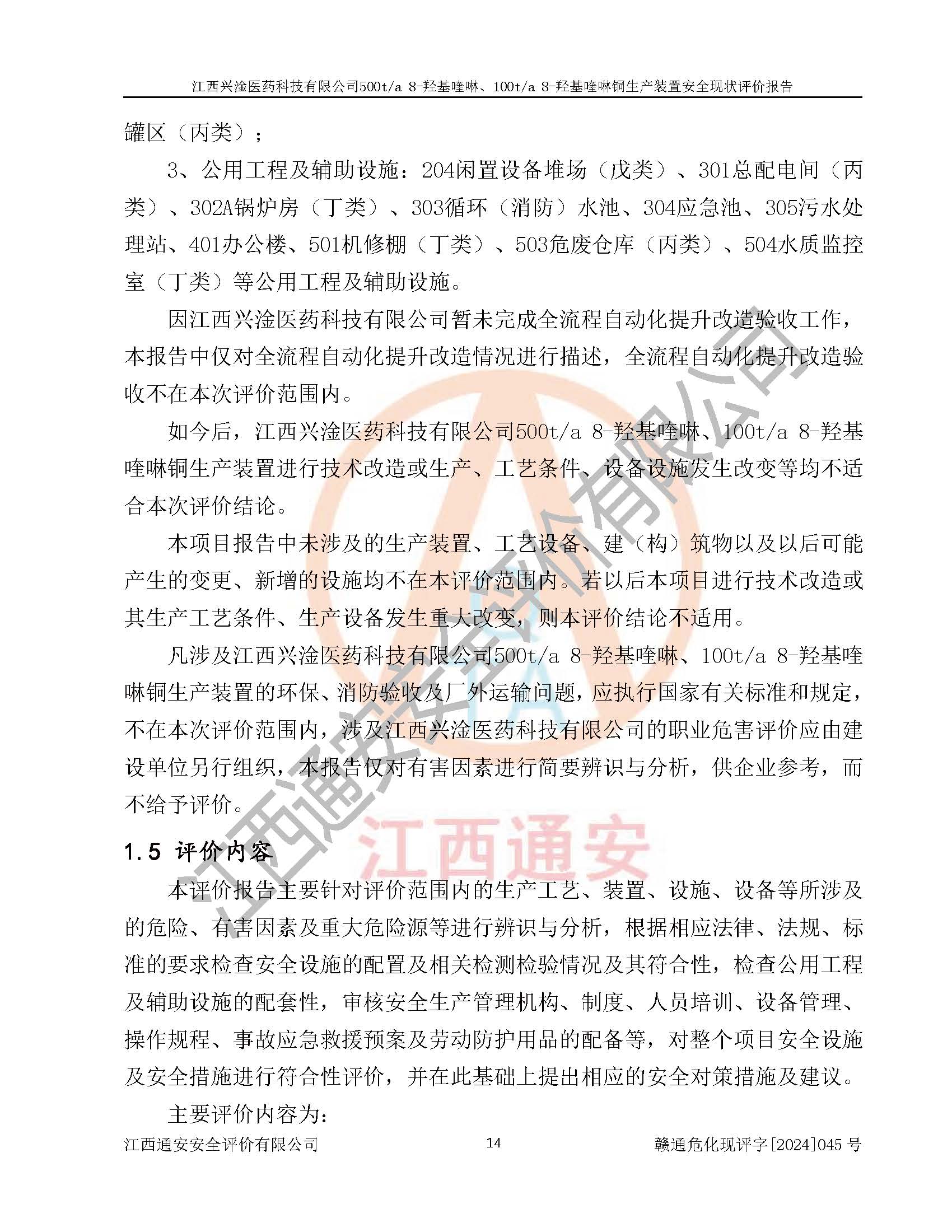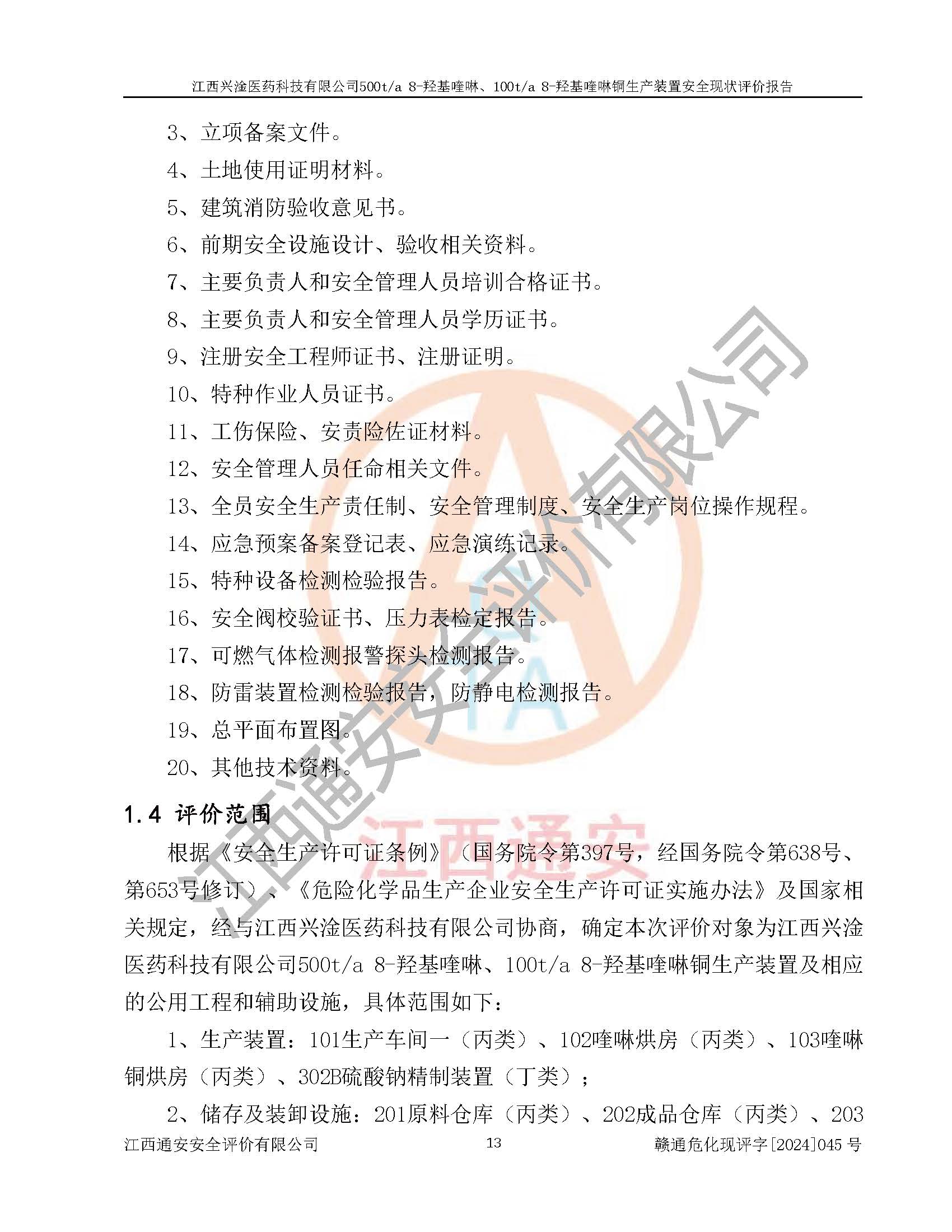 評價報告名稱 | 江西興淦醫(yī)藥科技有限公司500ta 8-羥基喹啉、100ta 8-羥基喹啉銅生產(chǎn)裝置安全現(xiàn)狀評價報告 | |||