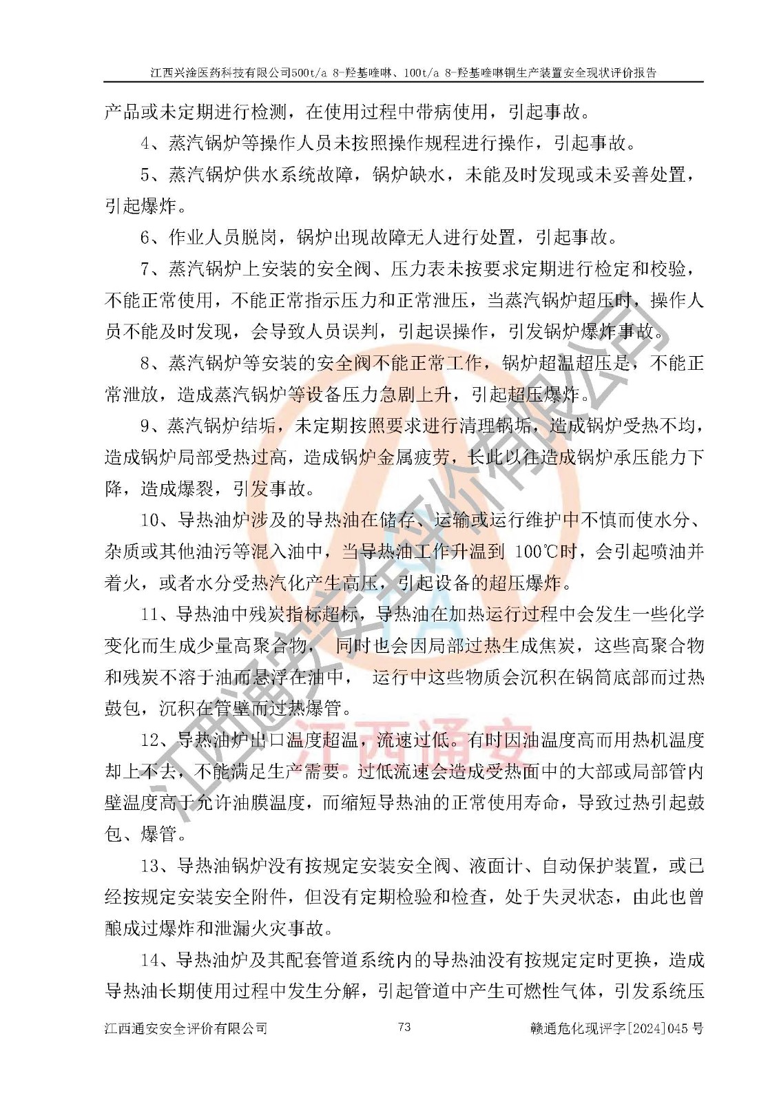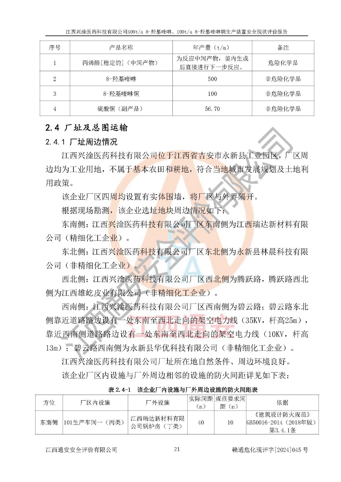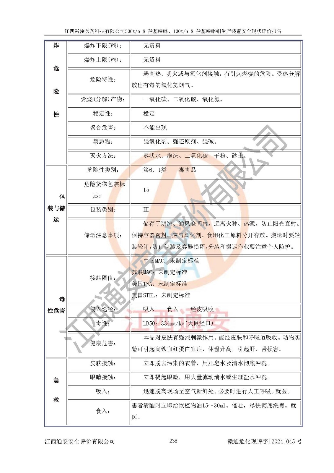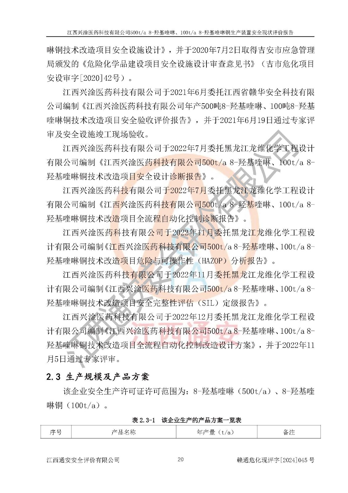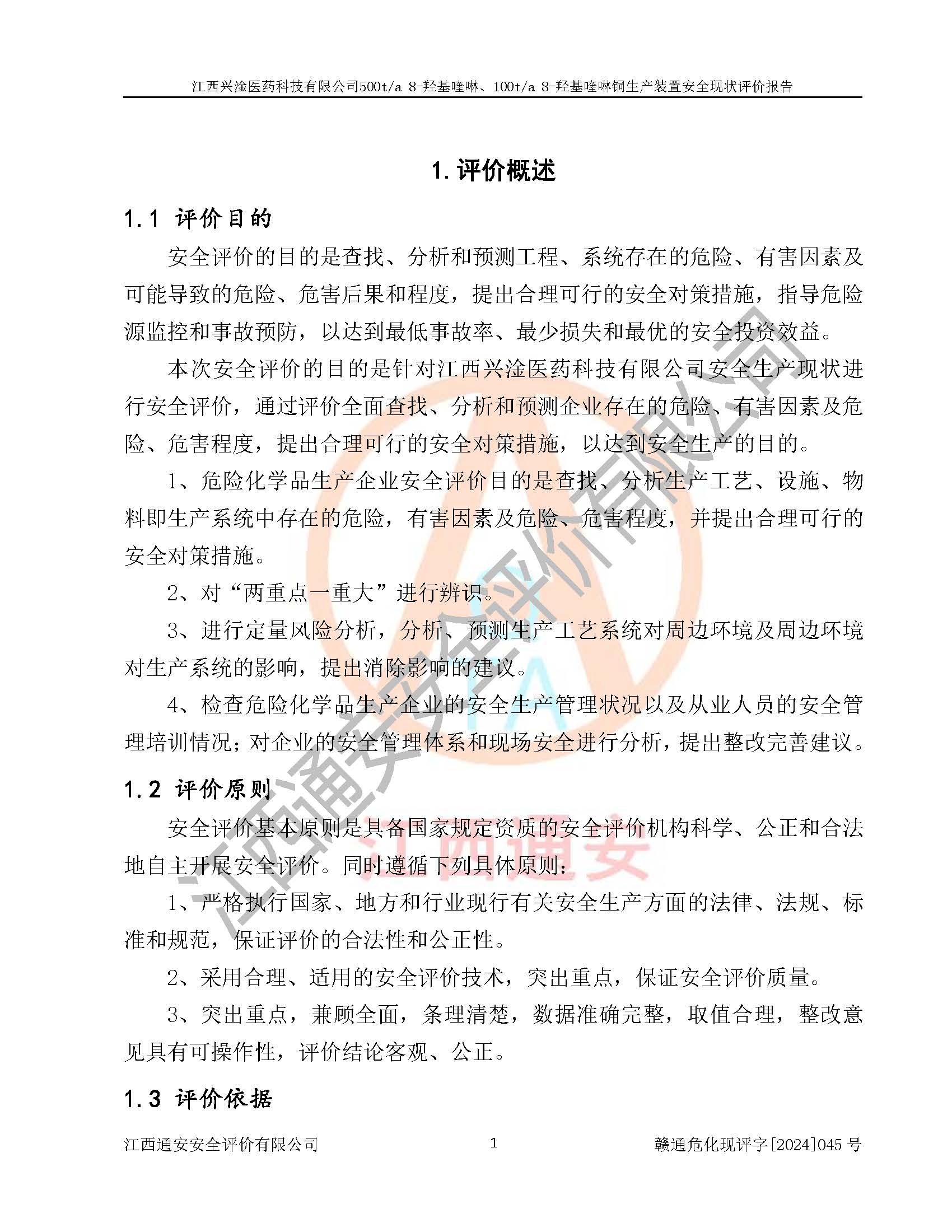評價報告名稱 | 江西興淦醫(yī)藥科技有限公司500ta 8-羥基喹啉、100ta 8-羥基喹啉銅生產(chǎn)裝置安全現(xiàn)狀評價報告 | |||