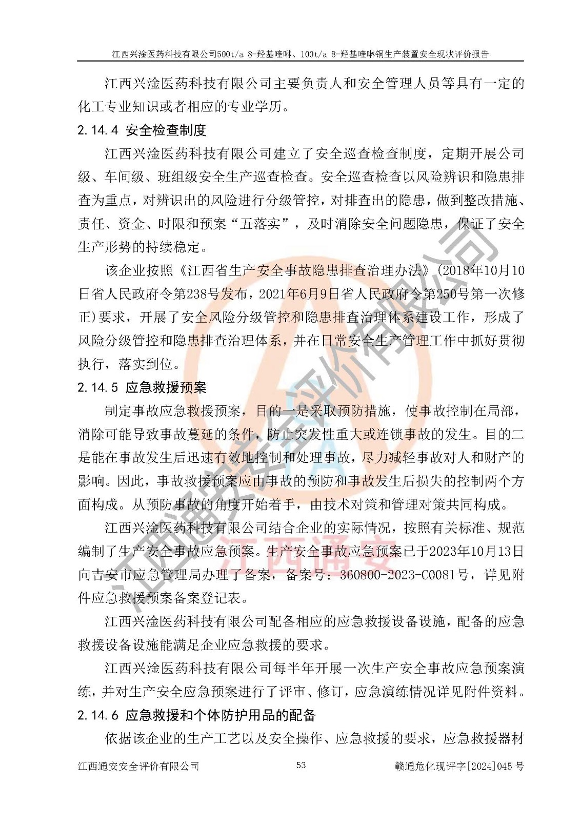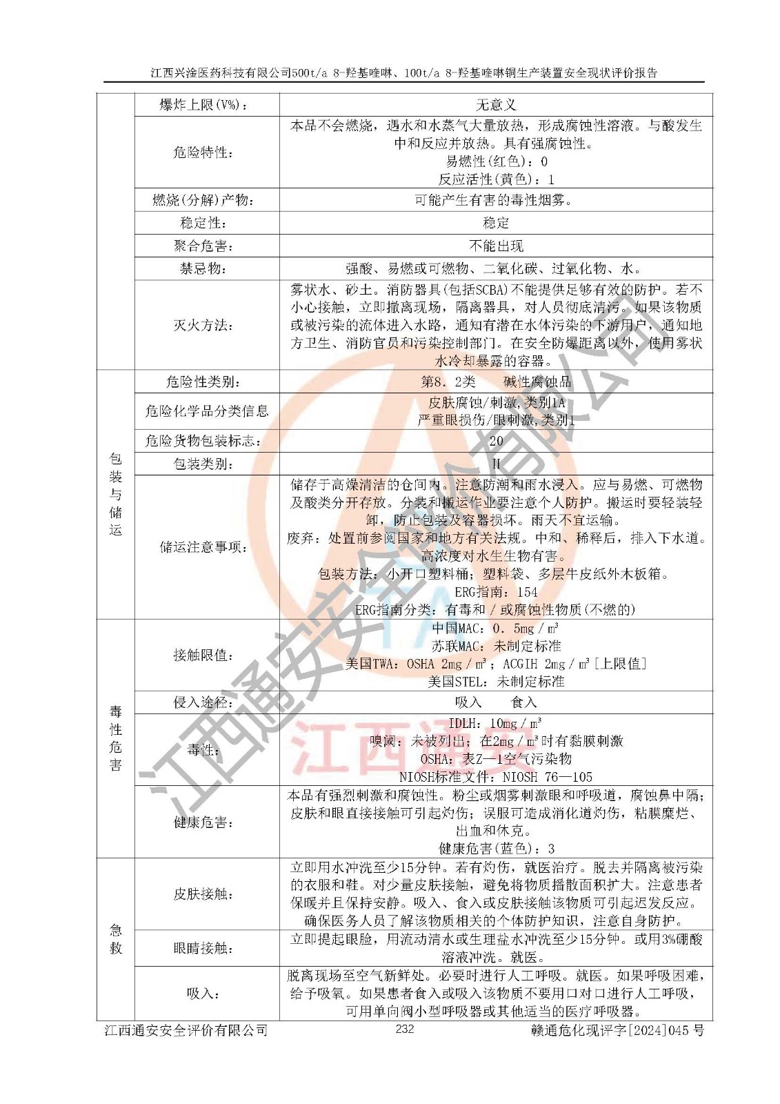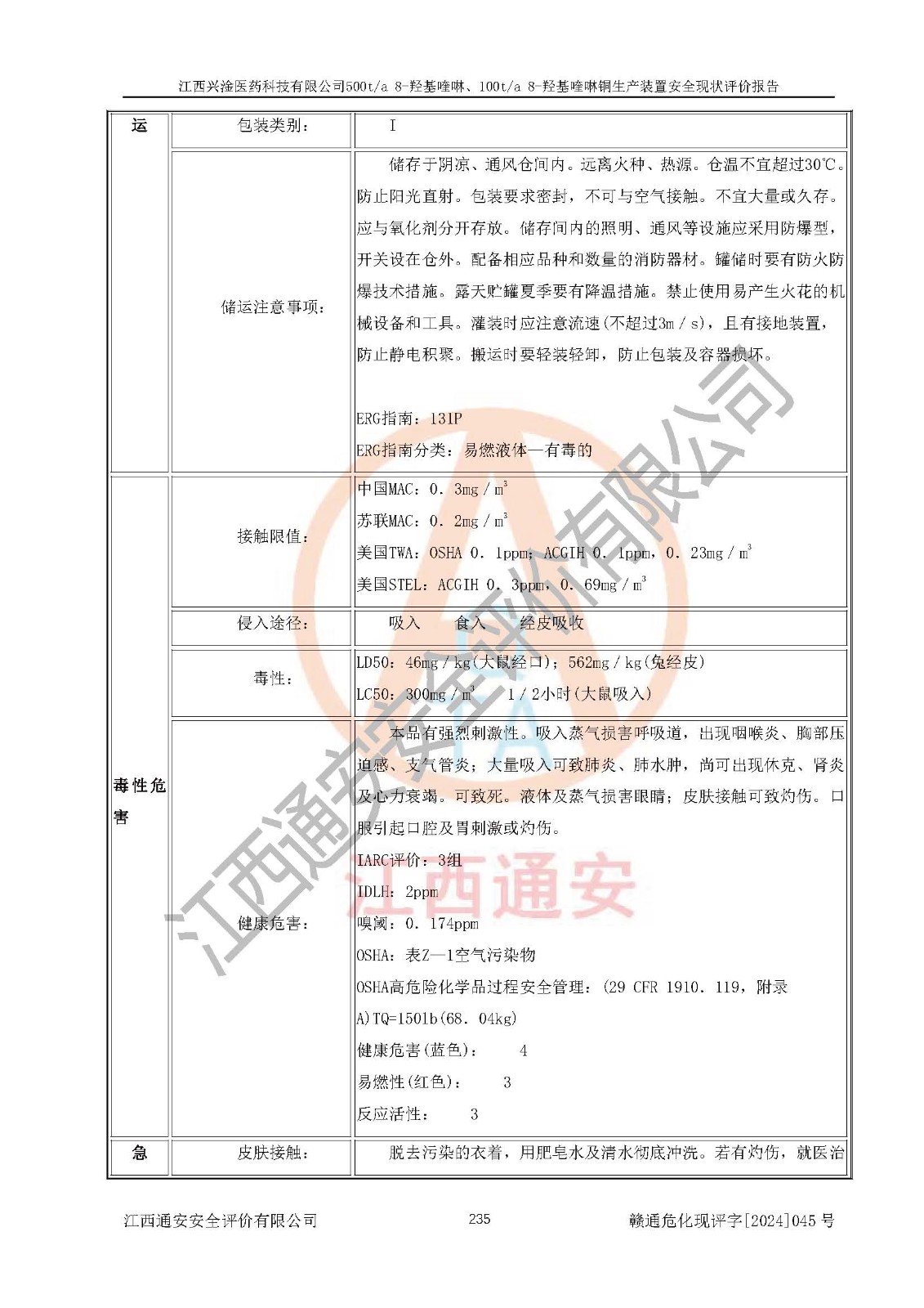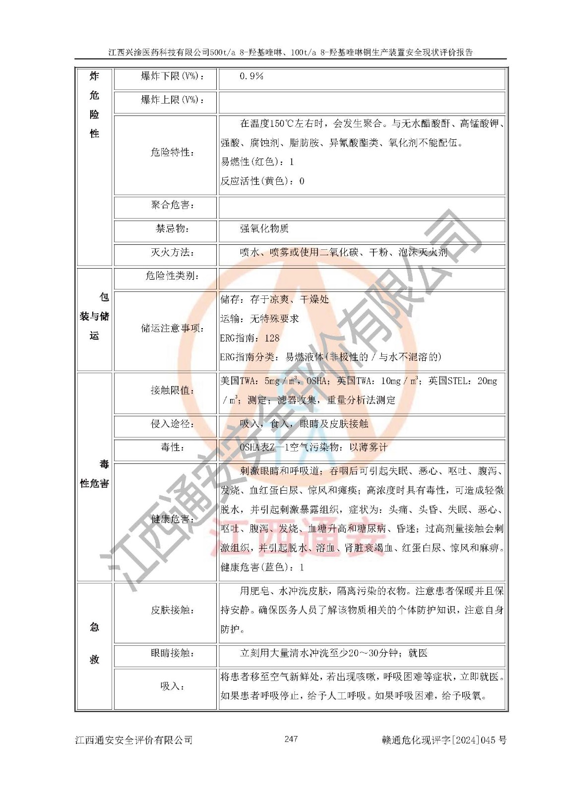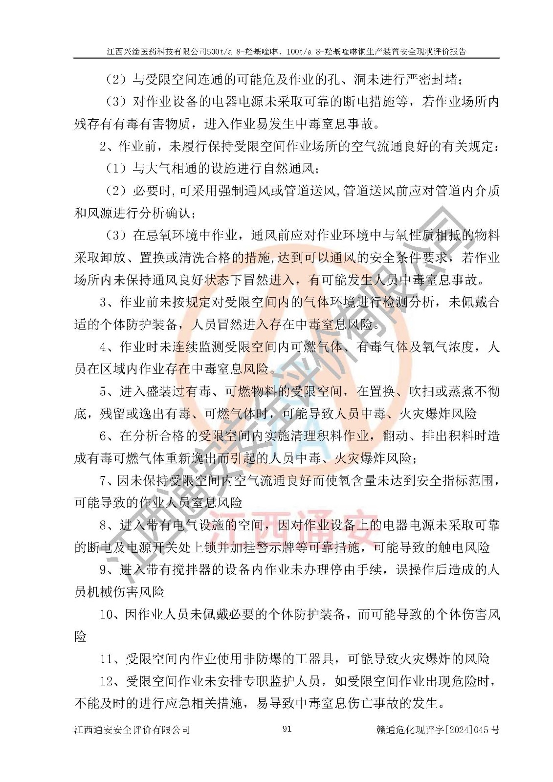 評價報告名稱 | 江西興淦醫(yī)藥科技有限公司500ta 8-羥基喹啉、100ta 8-羥基喹啉銅生產(chǎn)裝置安全現(xiàn)狀評價報告 | |||