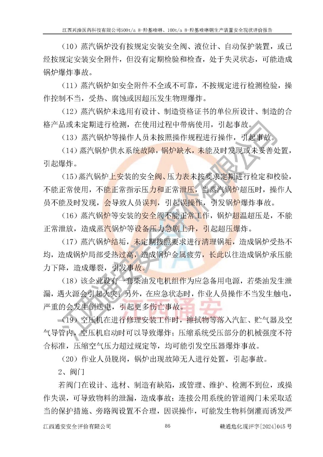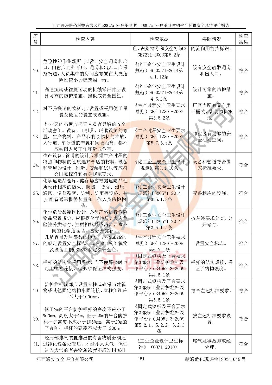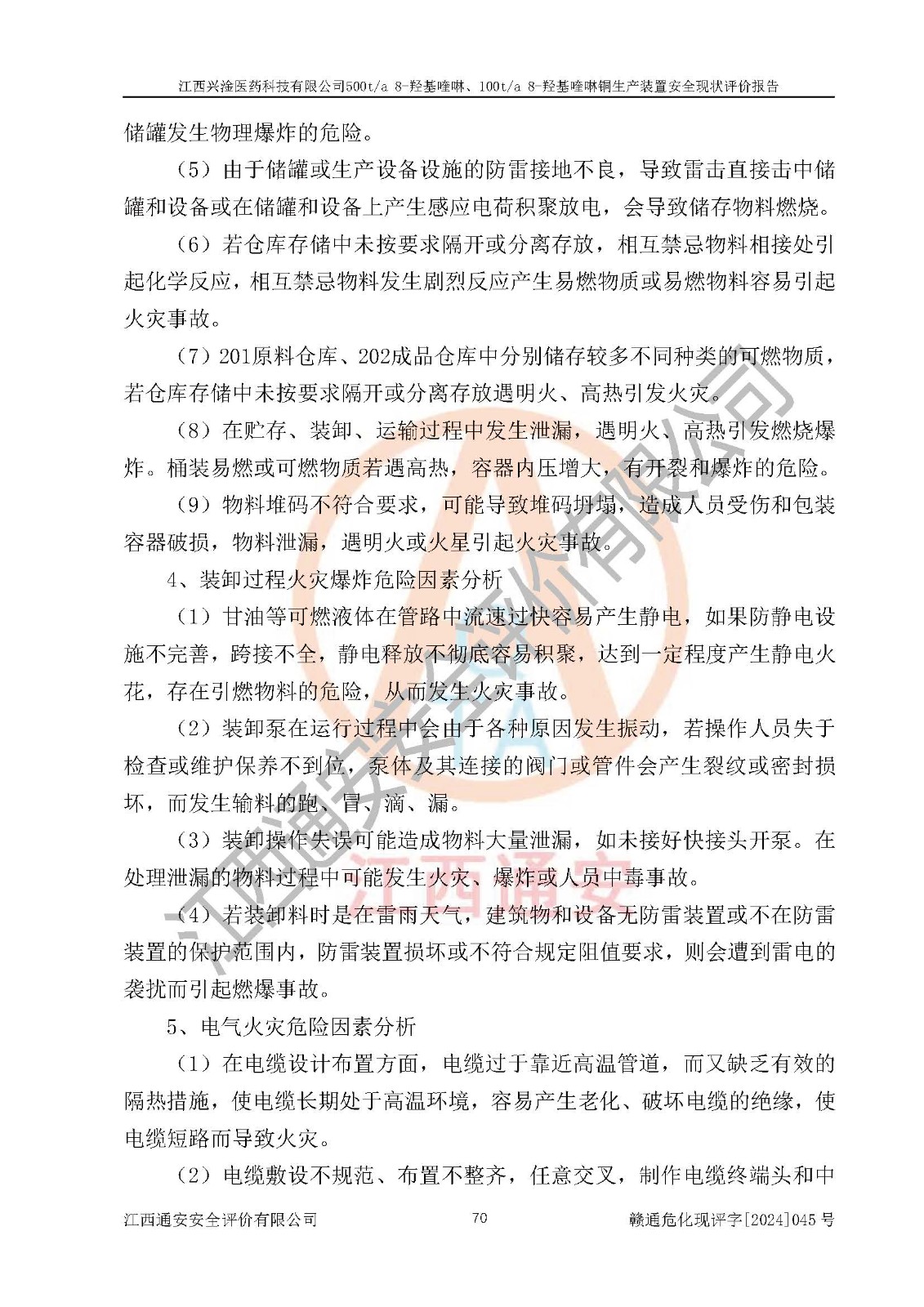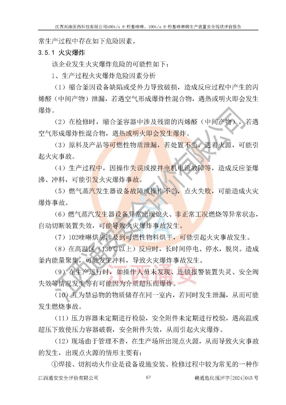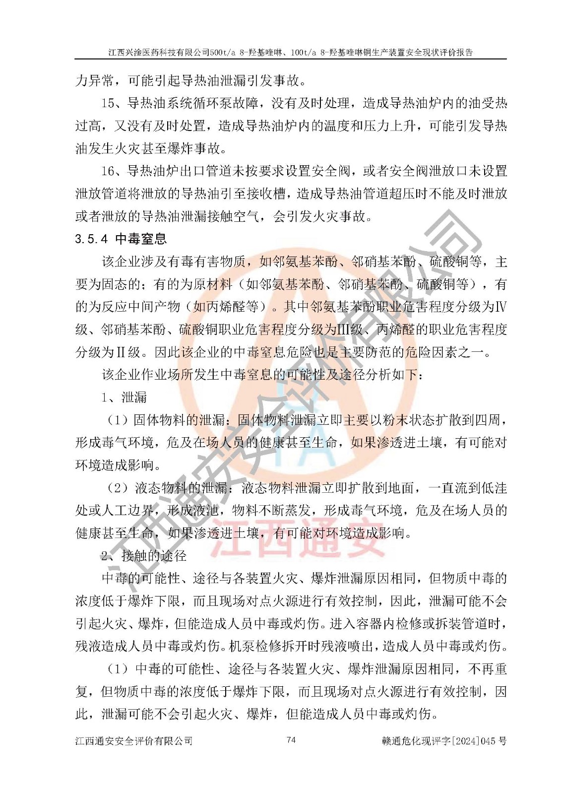 評價報告名稱 | 江西興淦醫(yī)藥科技有限公司500ta 8-羥基喹啉、100ta 8-羥基喹啉銅生產(chǎn)裝置安全現(xiàn)狀評價報告 | |||