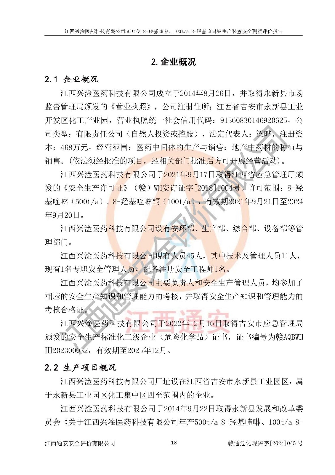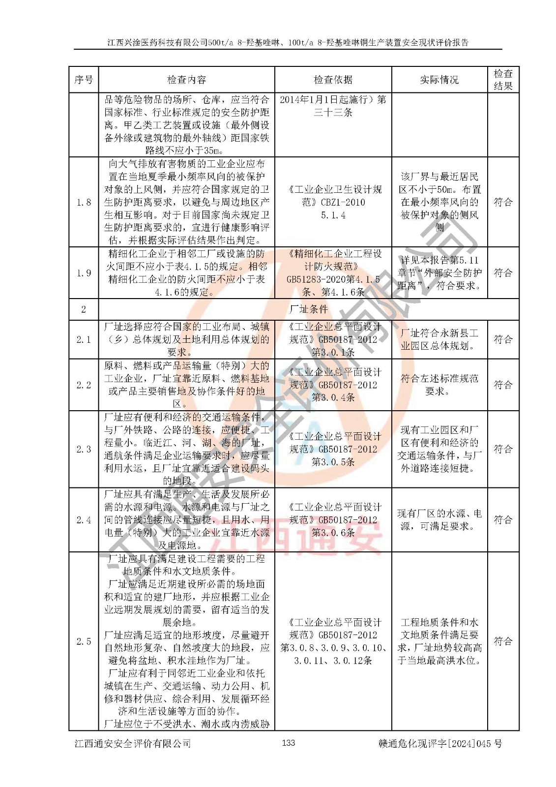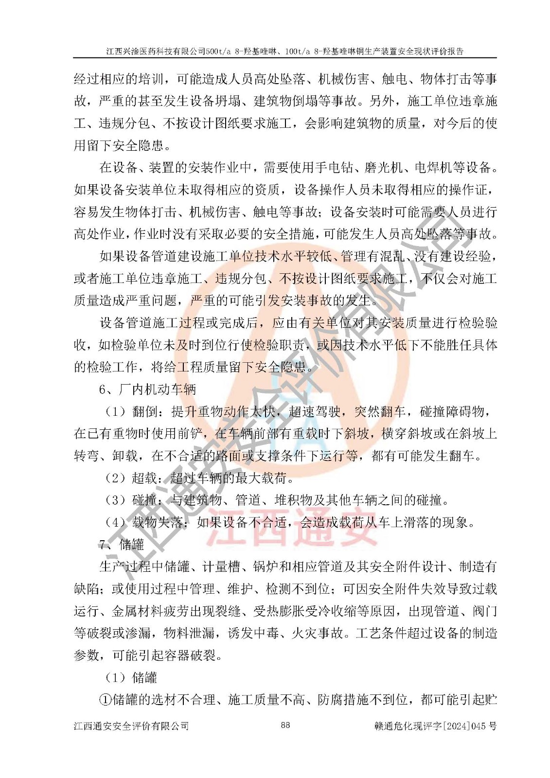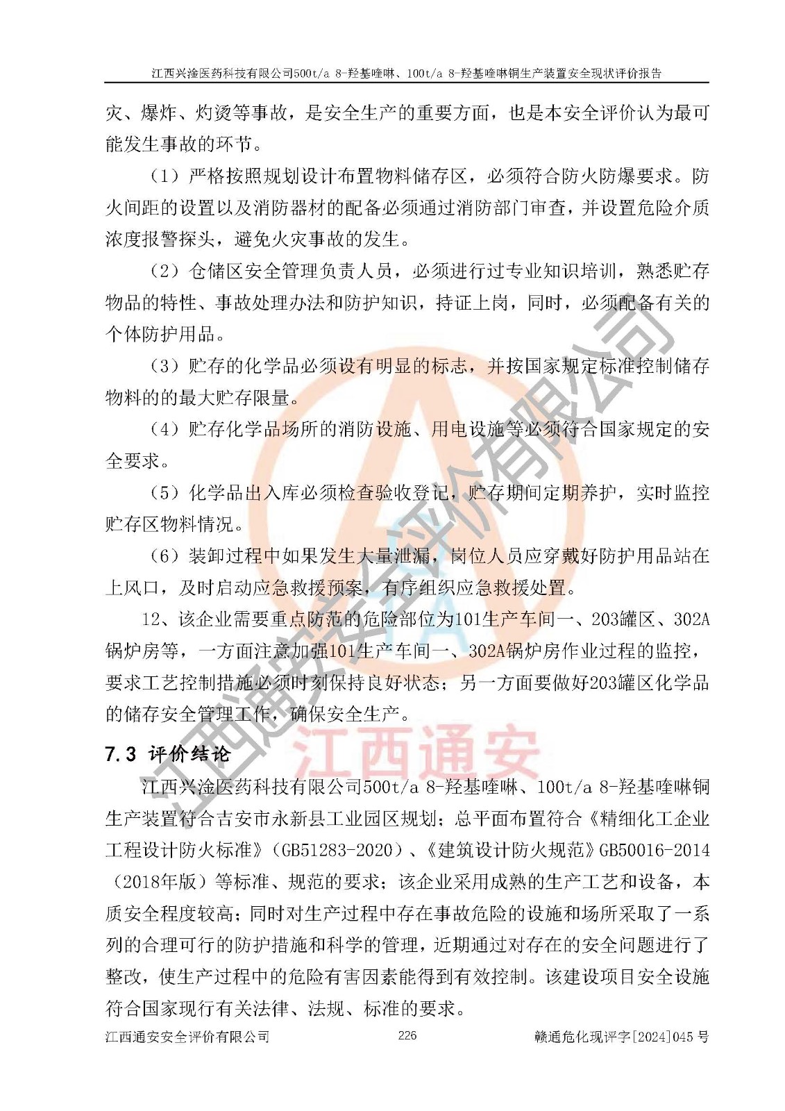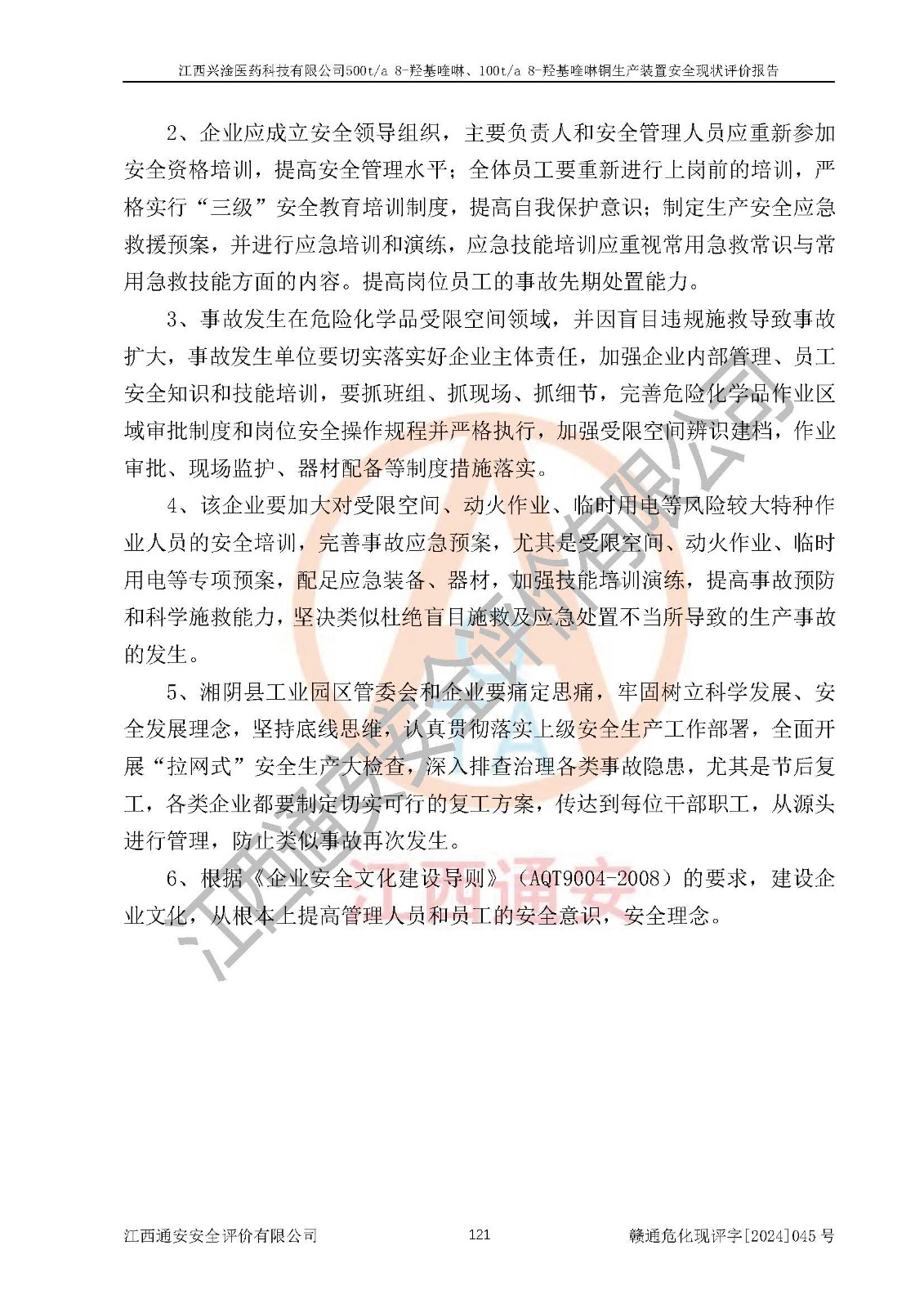 評價報告名稱 | 江西興淦醫(yī)藥科技有限公司500ta 8-羥基喹啉、100ta 8-羥基喹啉銅生產(chǎn)裝置安全現(xiàn)狀評價報告 | |||
