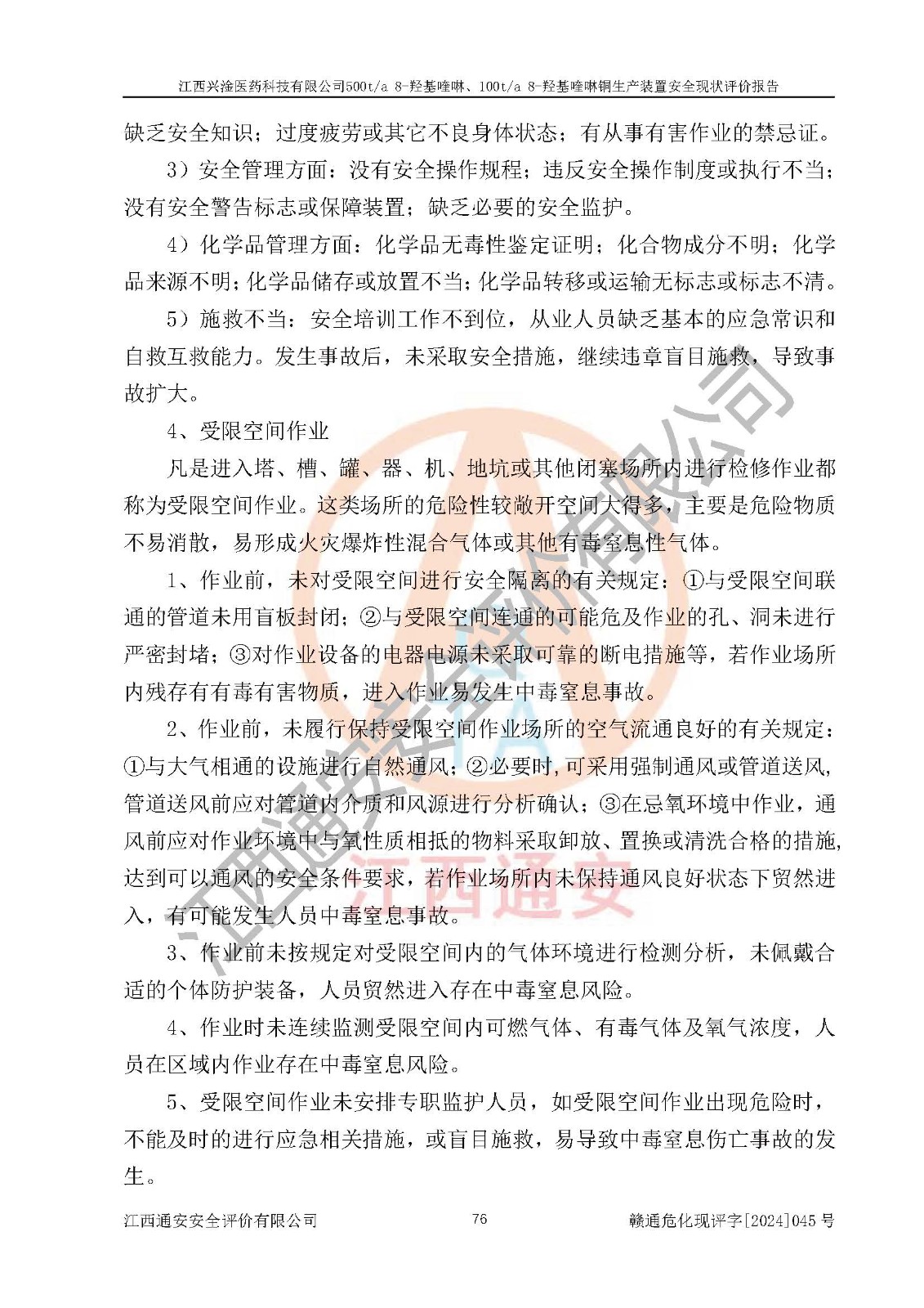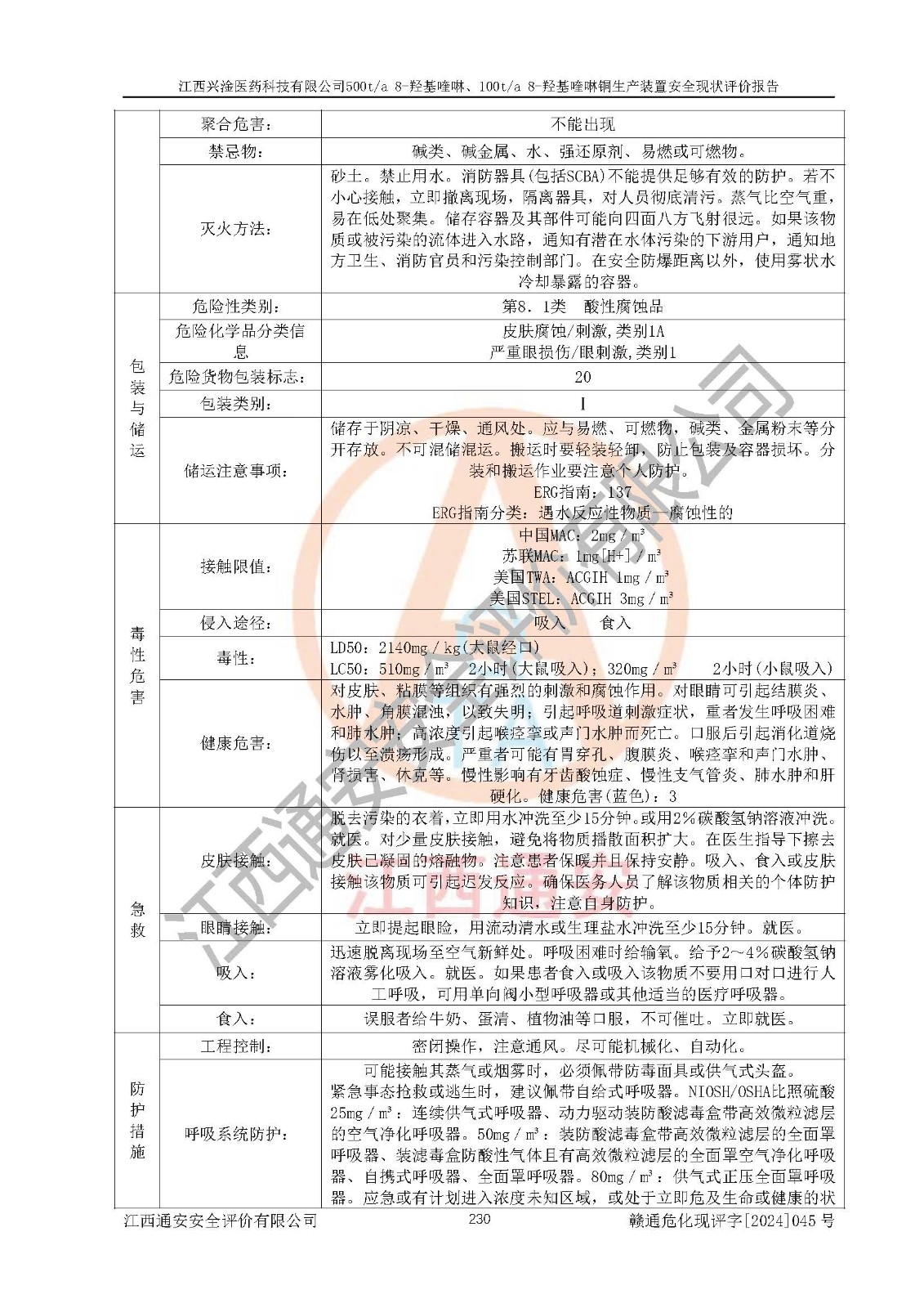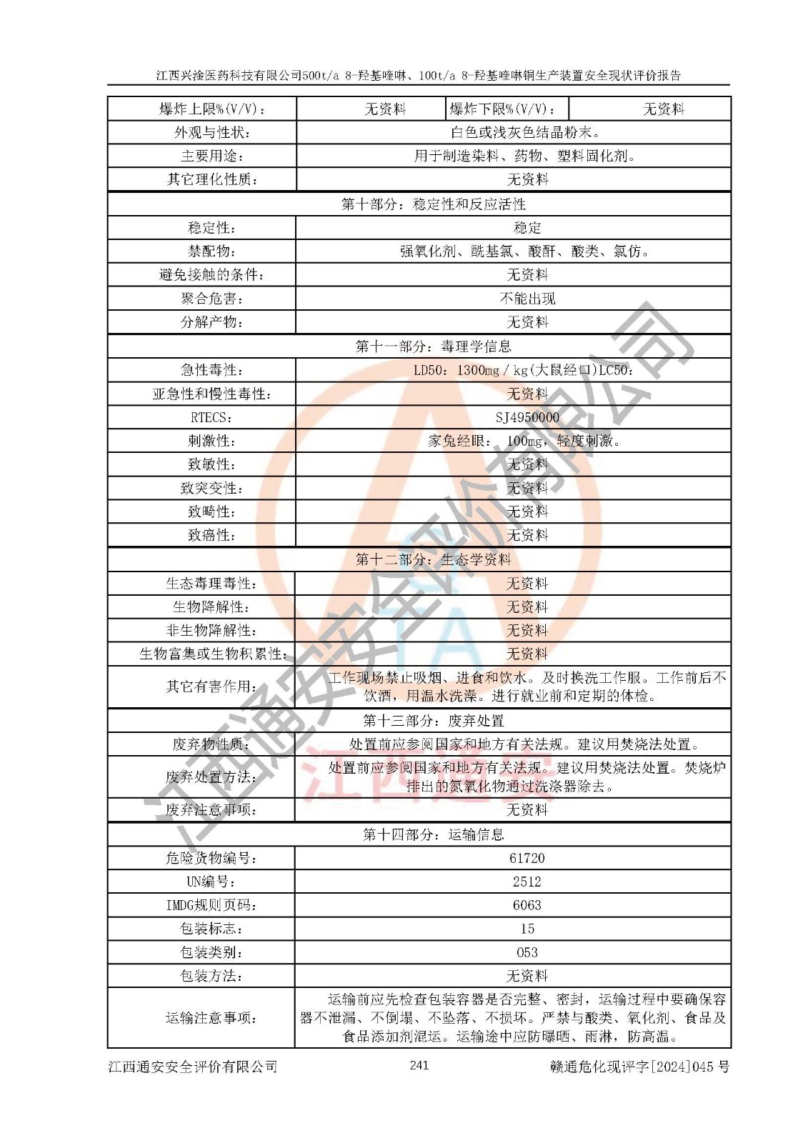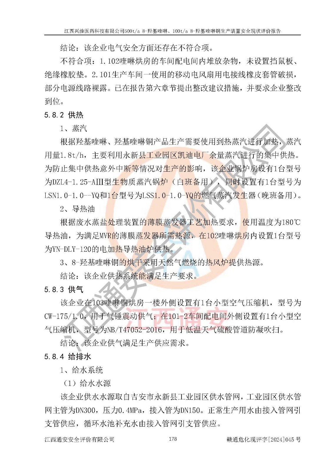 評價報告名稱 | 江西興淦醫(yī)藥科技有限公司500ta 8-羥基喹啉、100ta 8-羥基喹啉銅生產(chǎn)裝置安全現(xiàn)狀評價報告 | |||