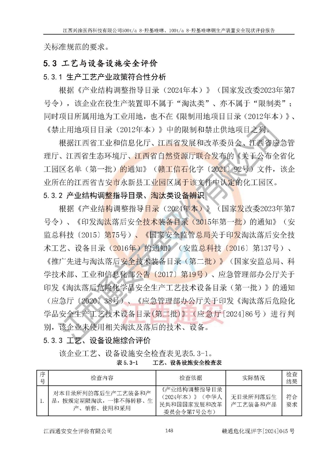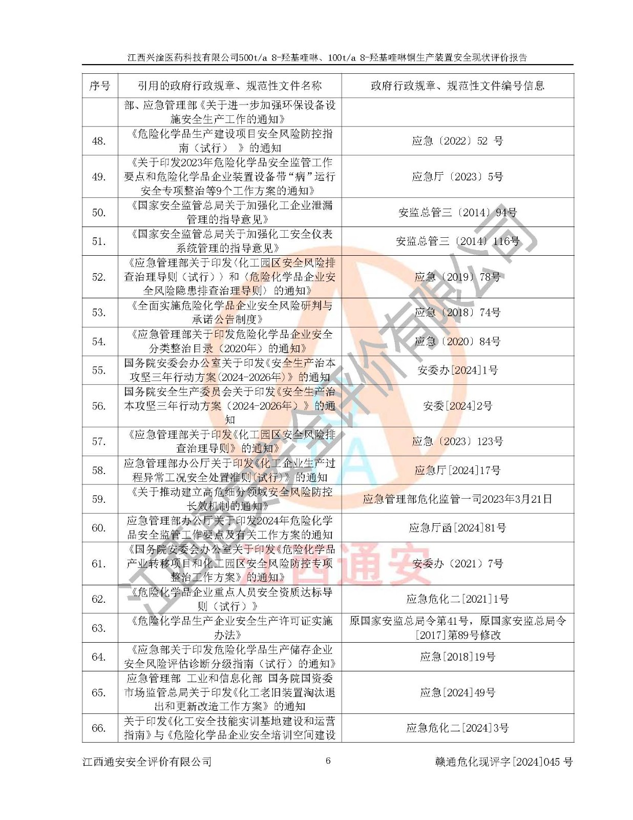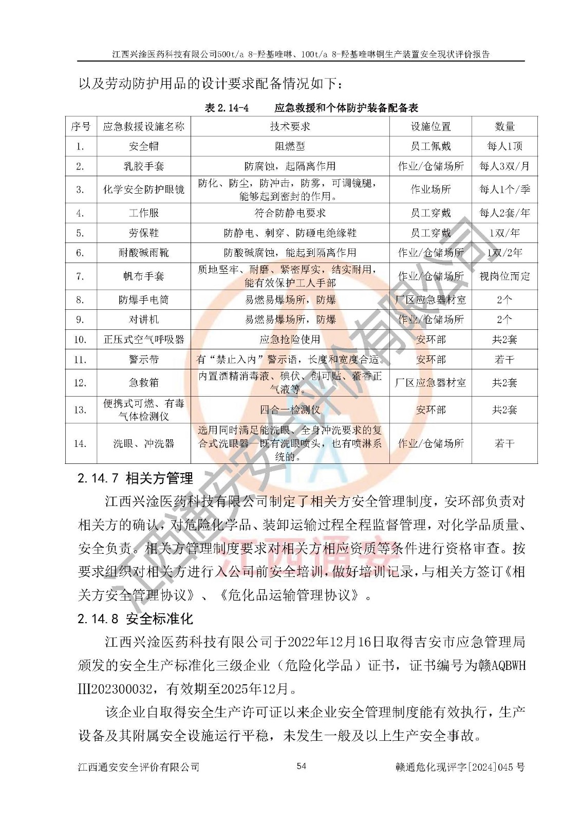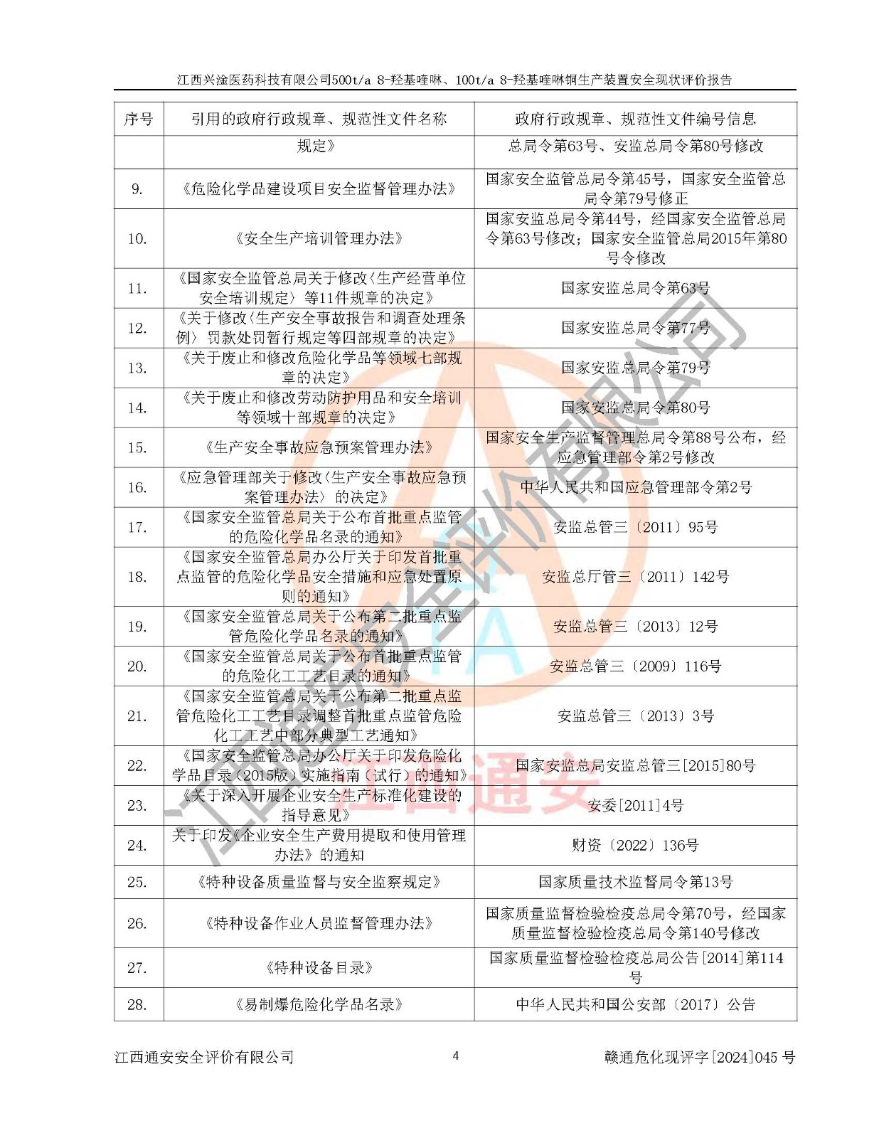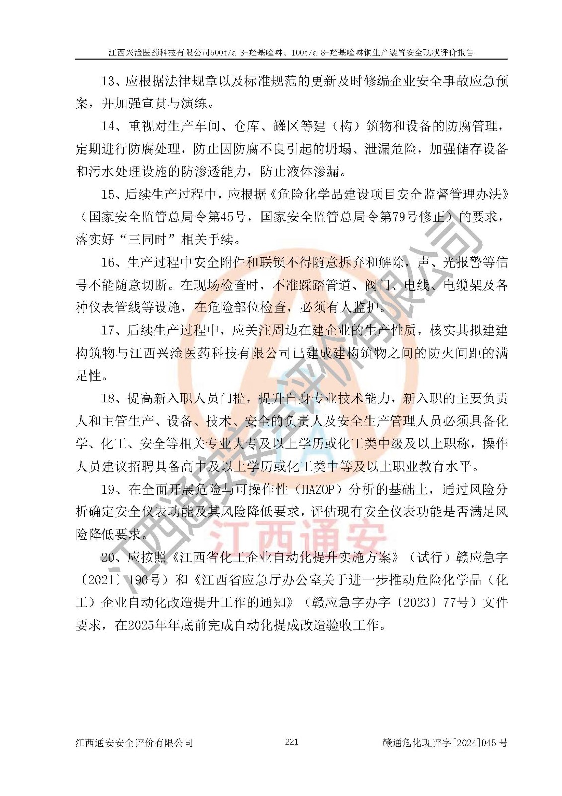 評價報告名稱 | 江西興淦醫(yī)藥科技有限公司500ta 8-羥基喹啉、100ta 8-羥基喹啉銅生產(chǎn)裝置安全現(xiàn)狀評價報告 | |||