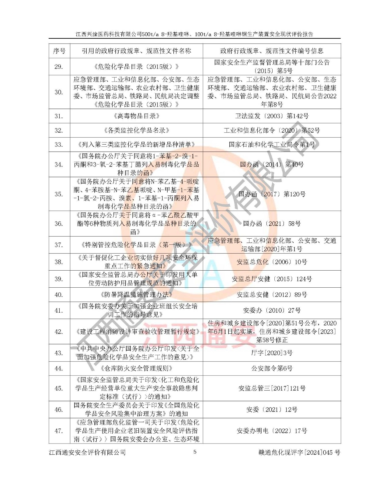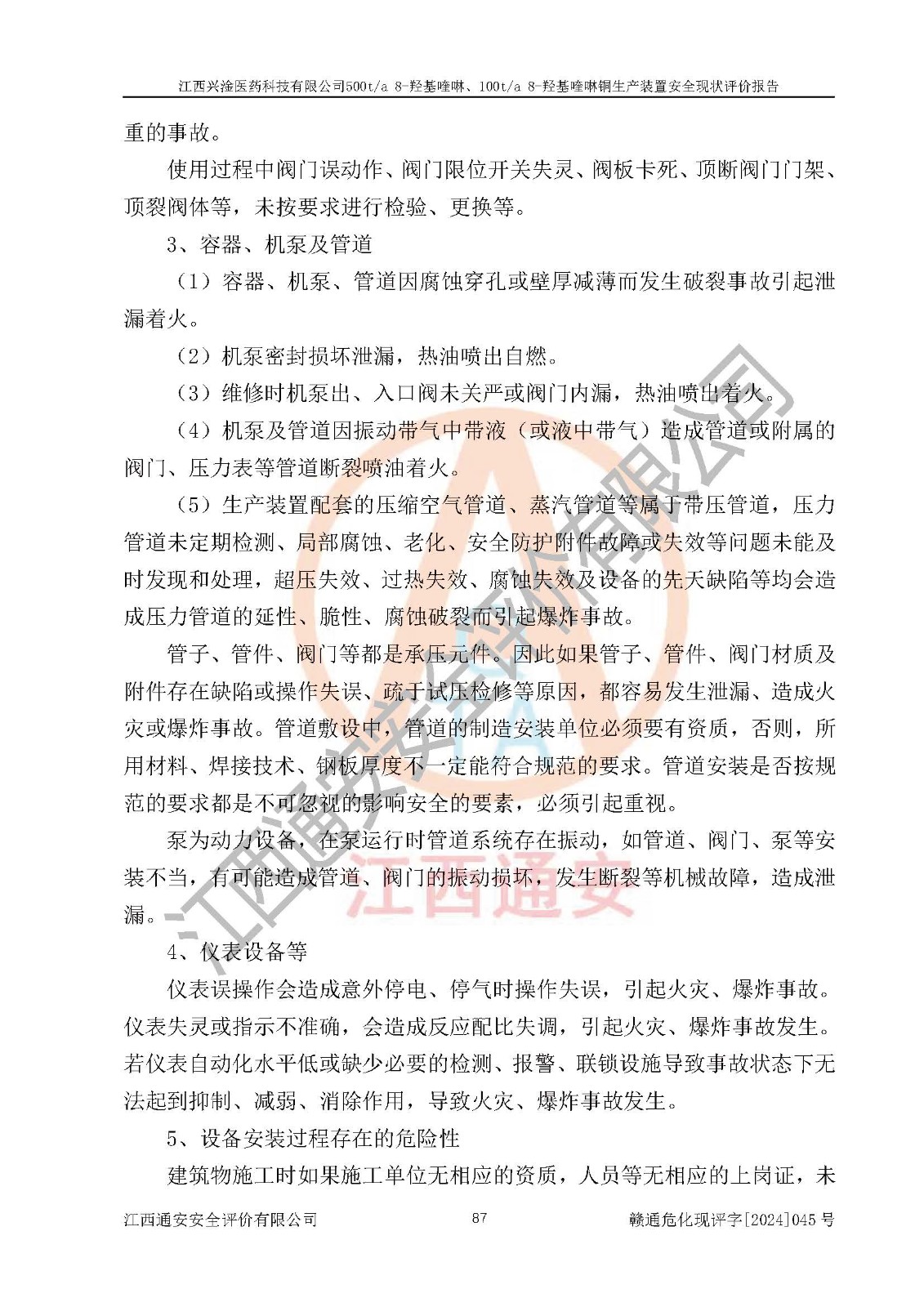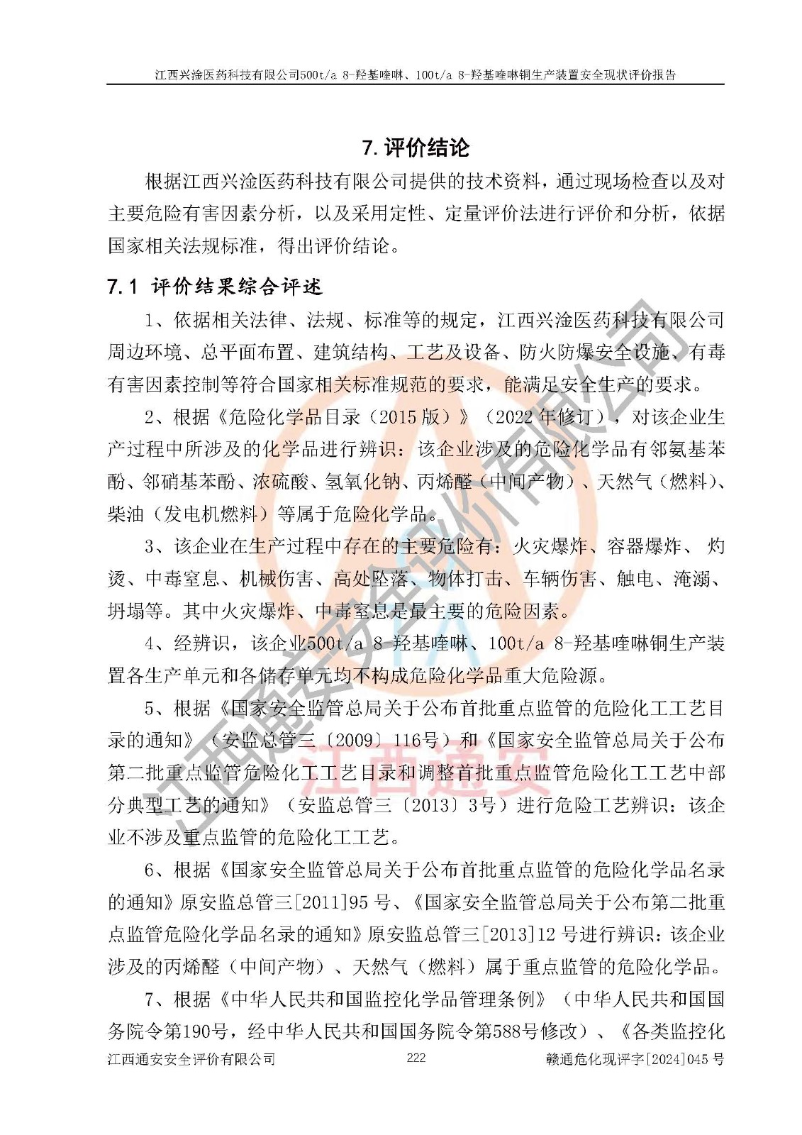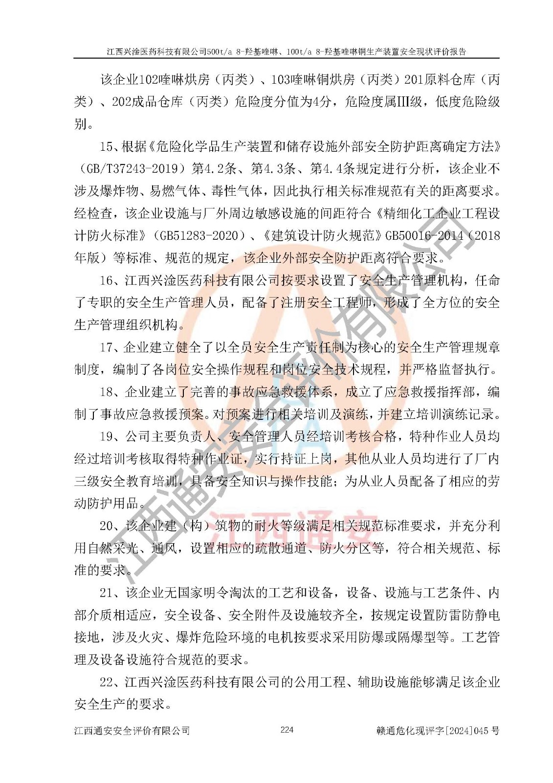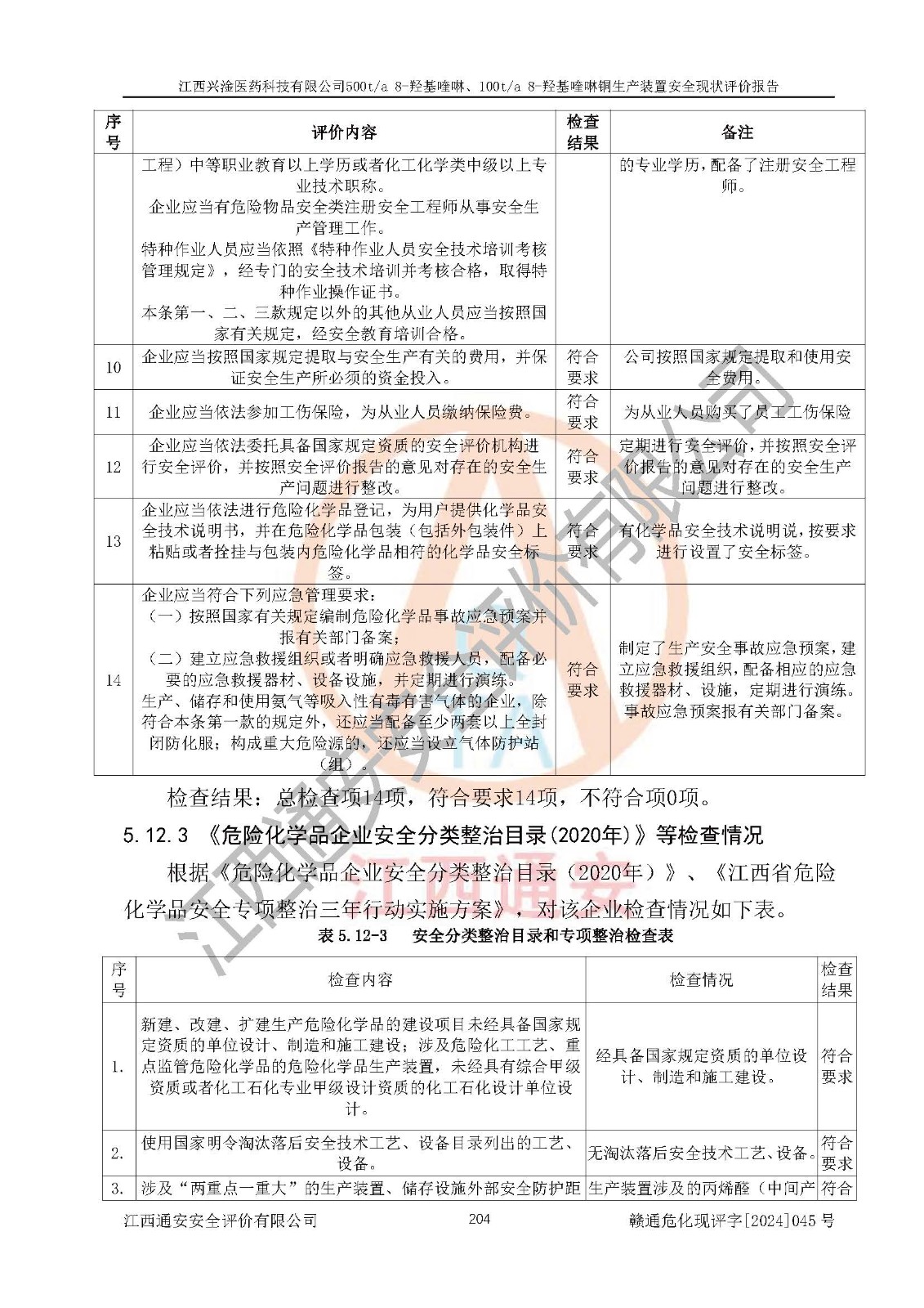 評價報告名稱 | 江西興淦醫(yī)藥科技有限公司500ta 8-羥基喹啉、100ta 8-羥基喹啉銅生產(chǎn)裝置安全現(xiàn)狀評價報告 | |||