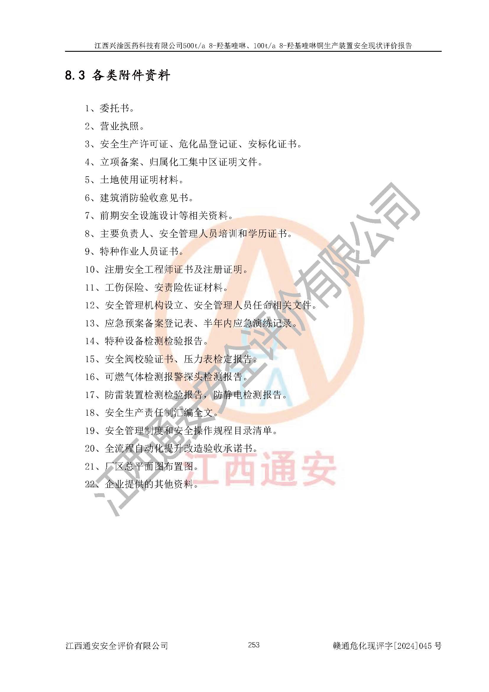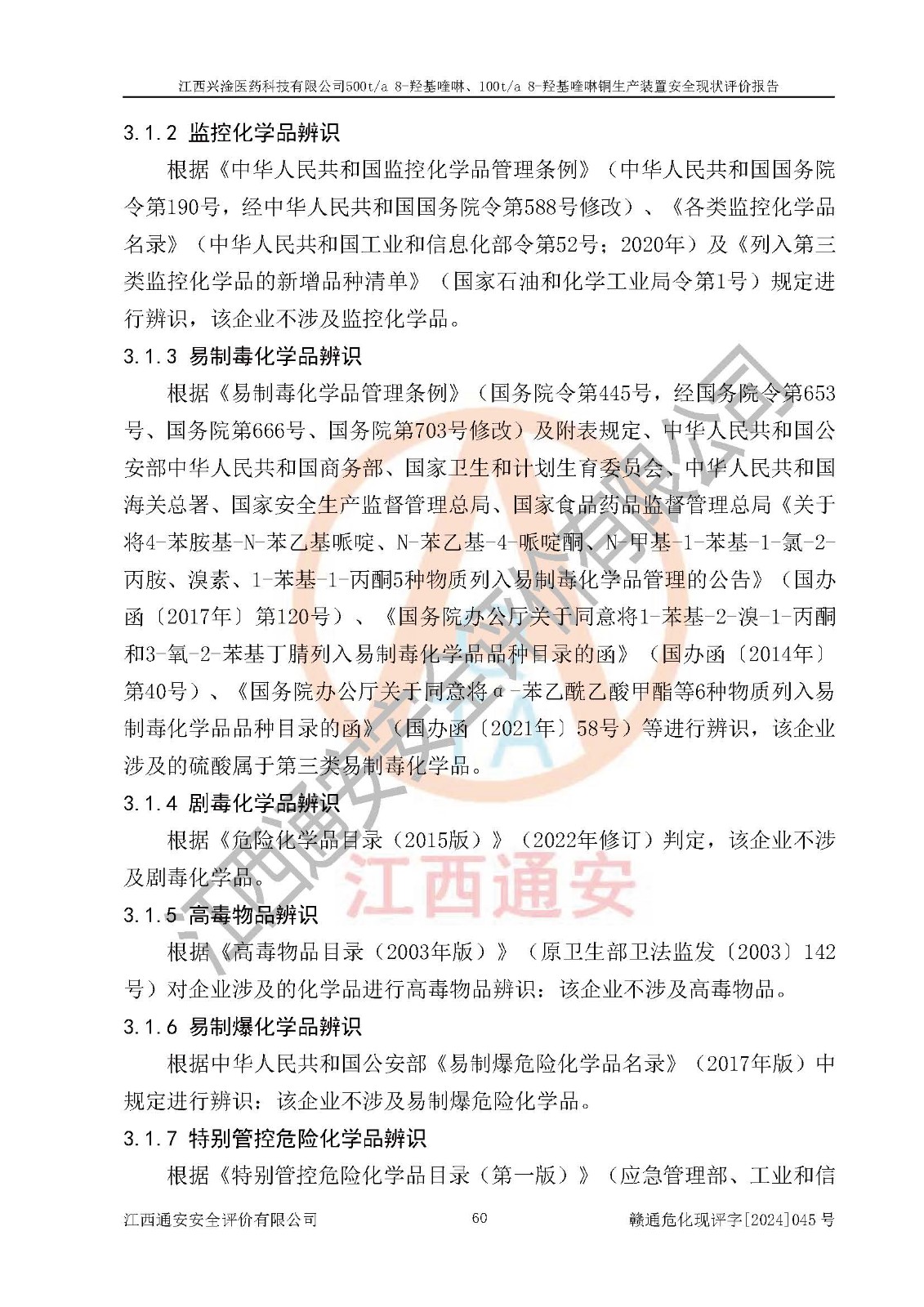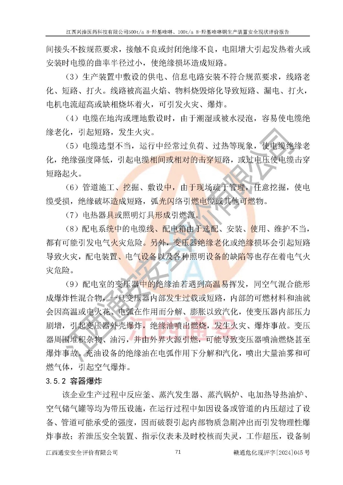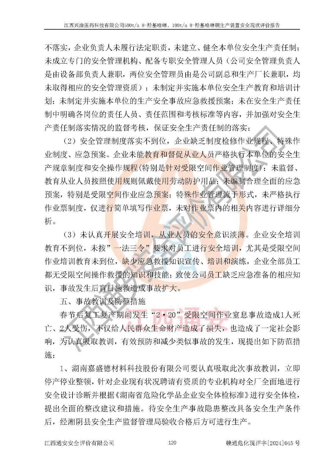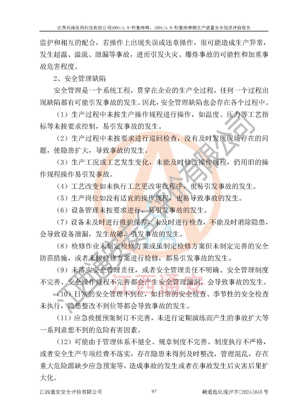 評價報告名稱 | 江西興淦醫(yī)藥科技有限公司500ta 8-羥基喹啉、100ta 8-羥基喹啉銅生產(chǎn)裝置安全現(xiàn)狀評價報告 | |||