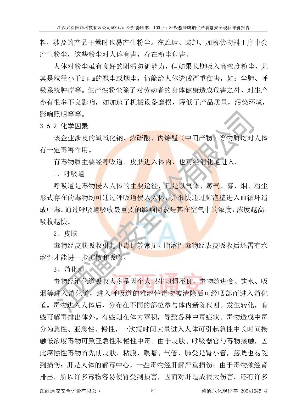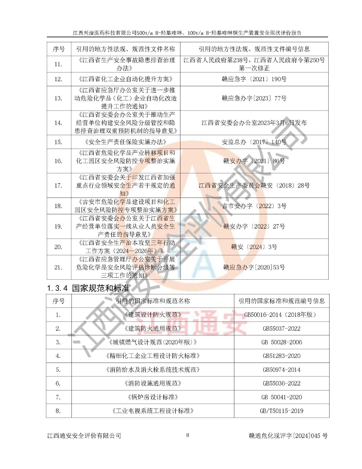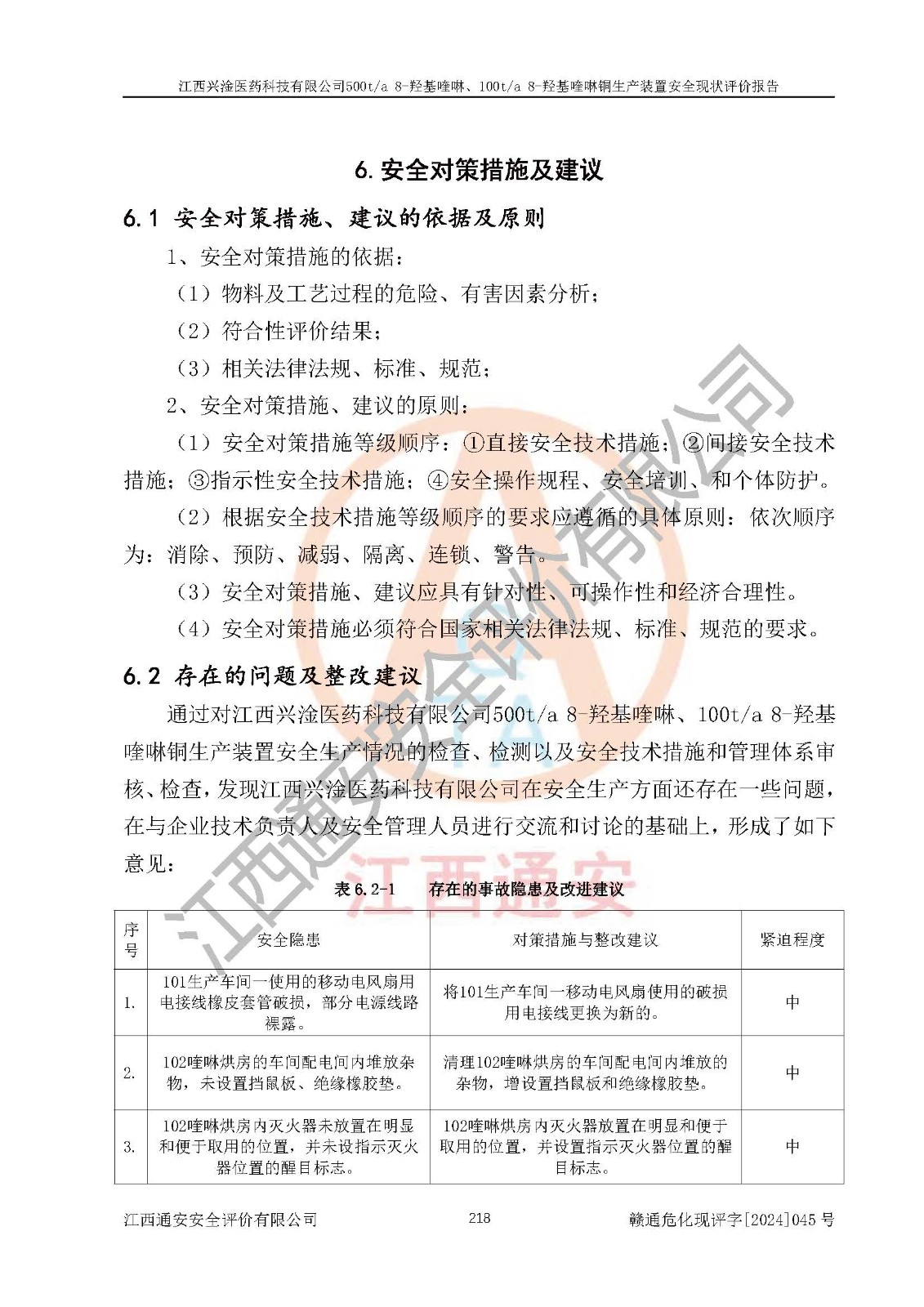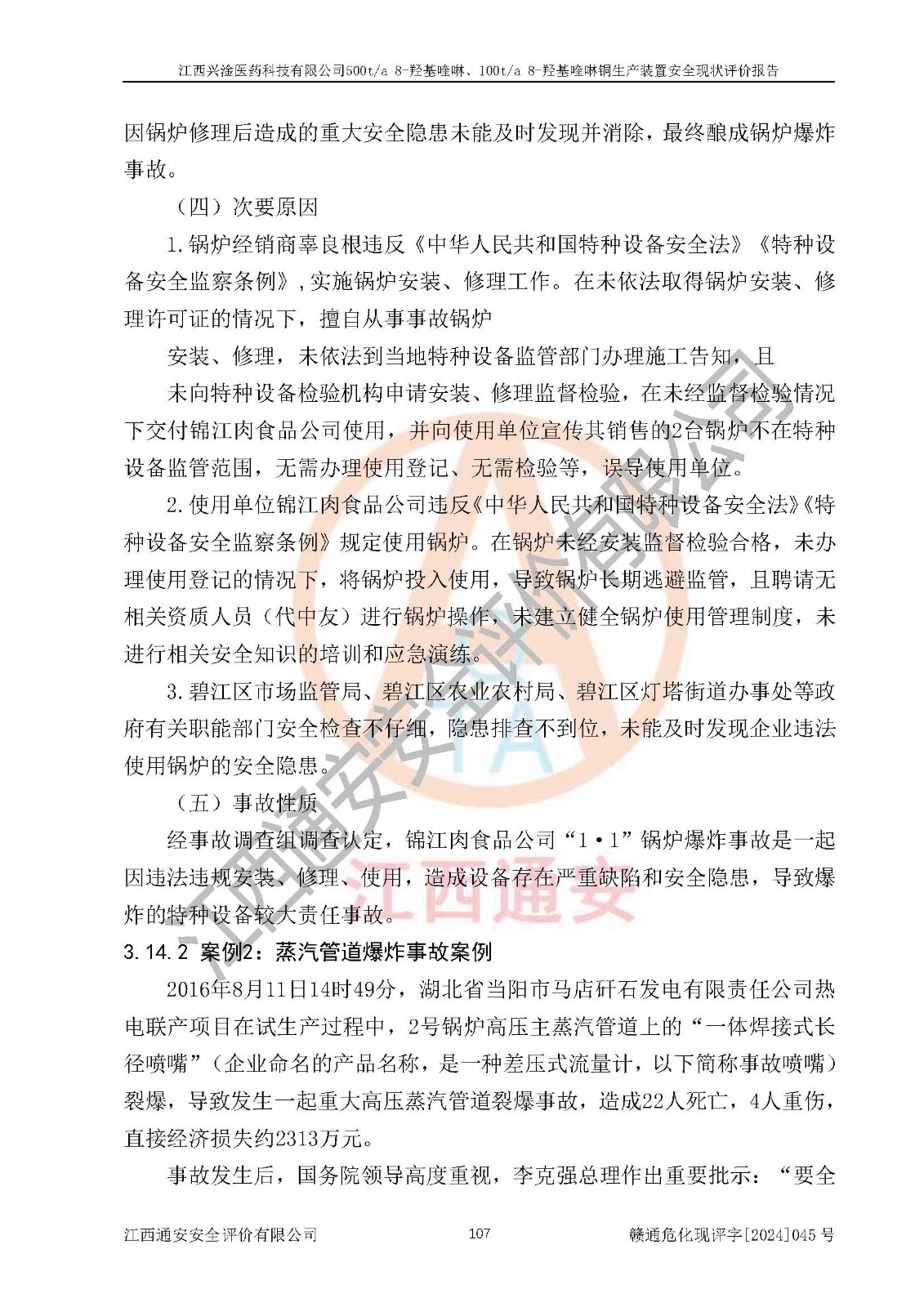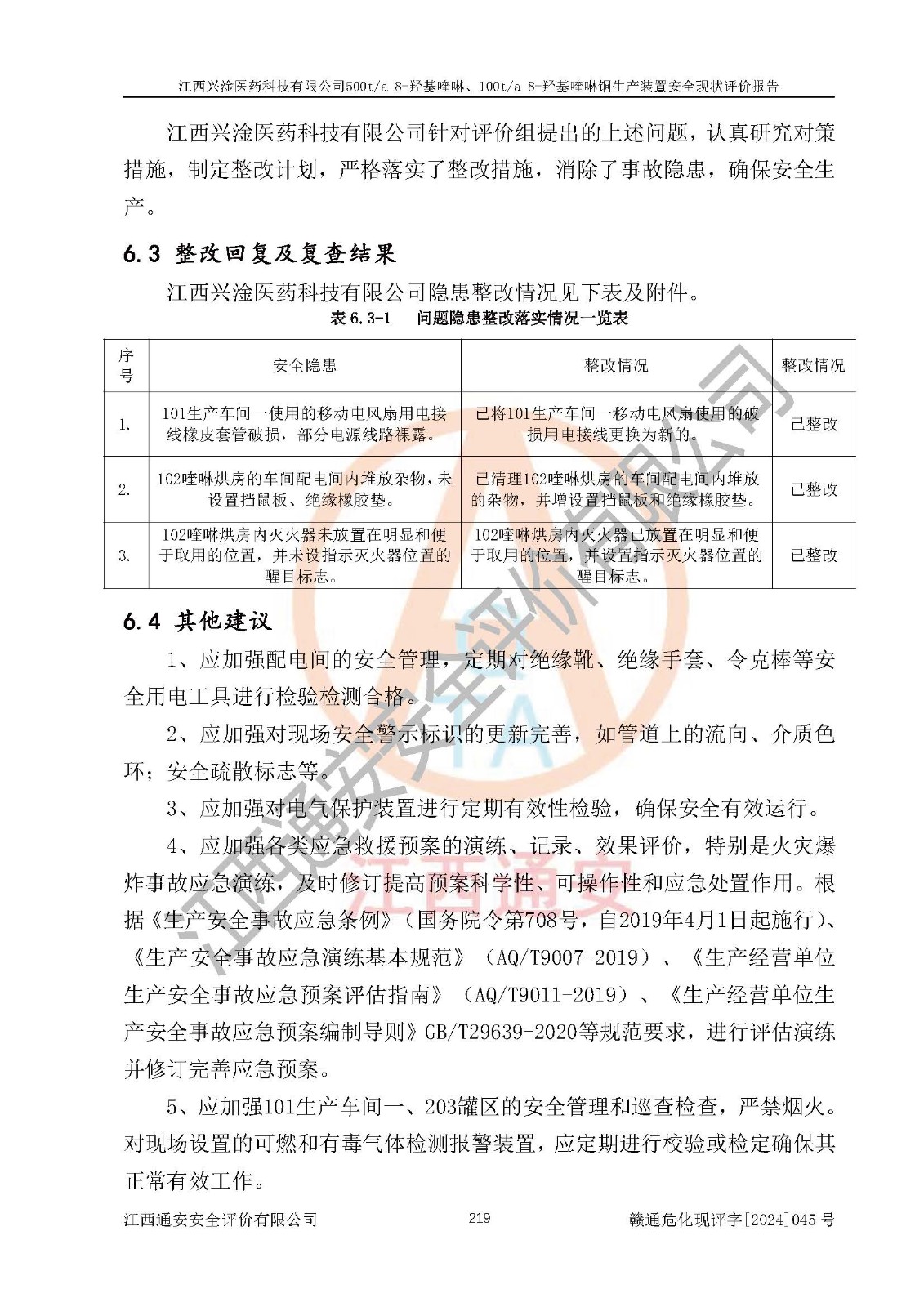 評價報告名稱 | 江西興淦醫(yī)藥科技有限公司500ta 8-羥基喹啉、100ta 8-羥基喹啉銅生產(chǎn)裝置安全現(xiàn)狀評價報告 | |||