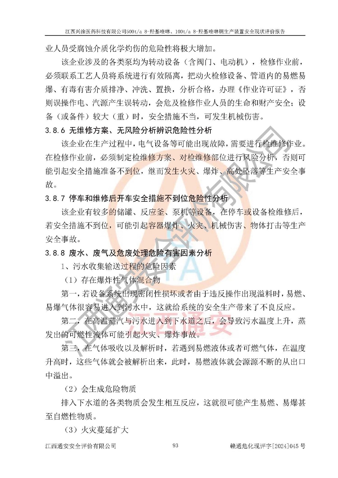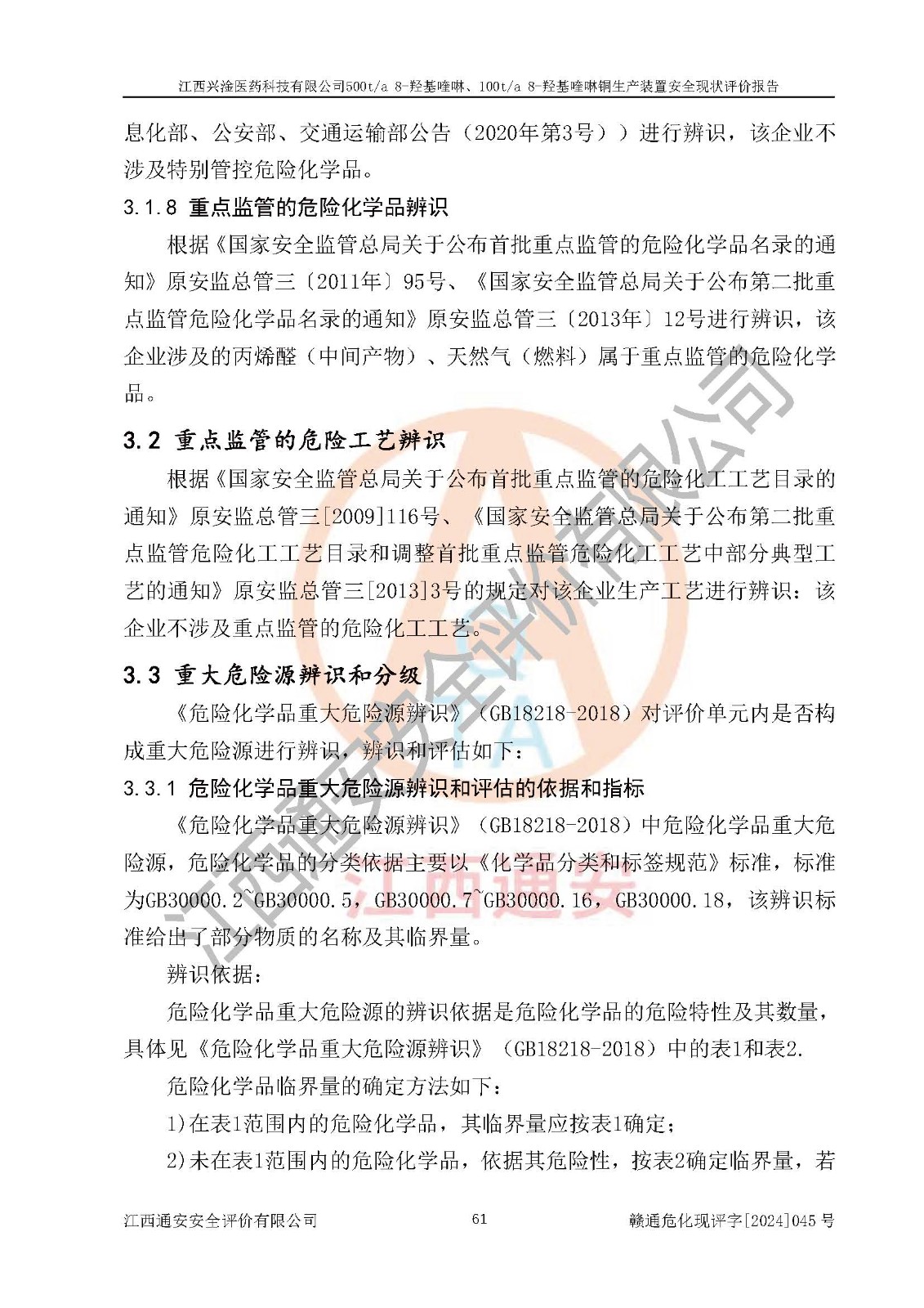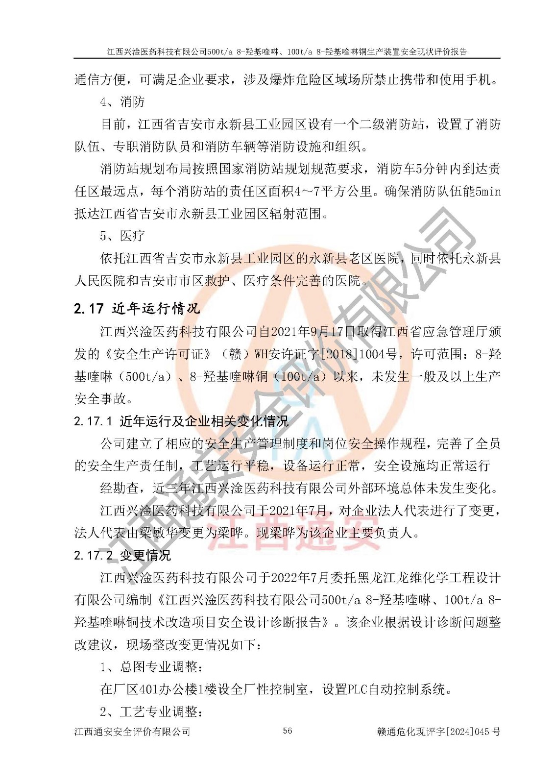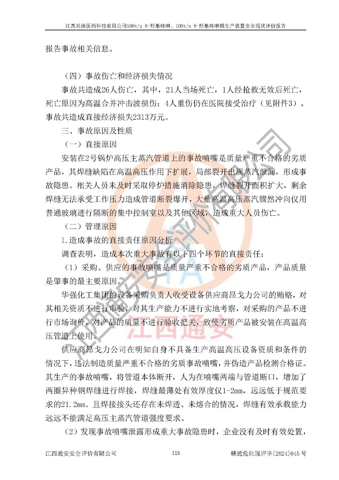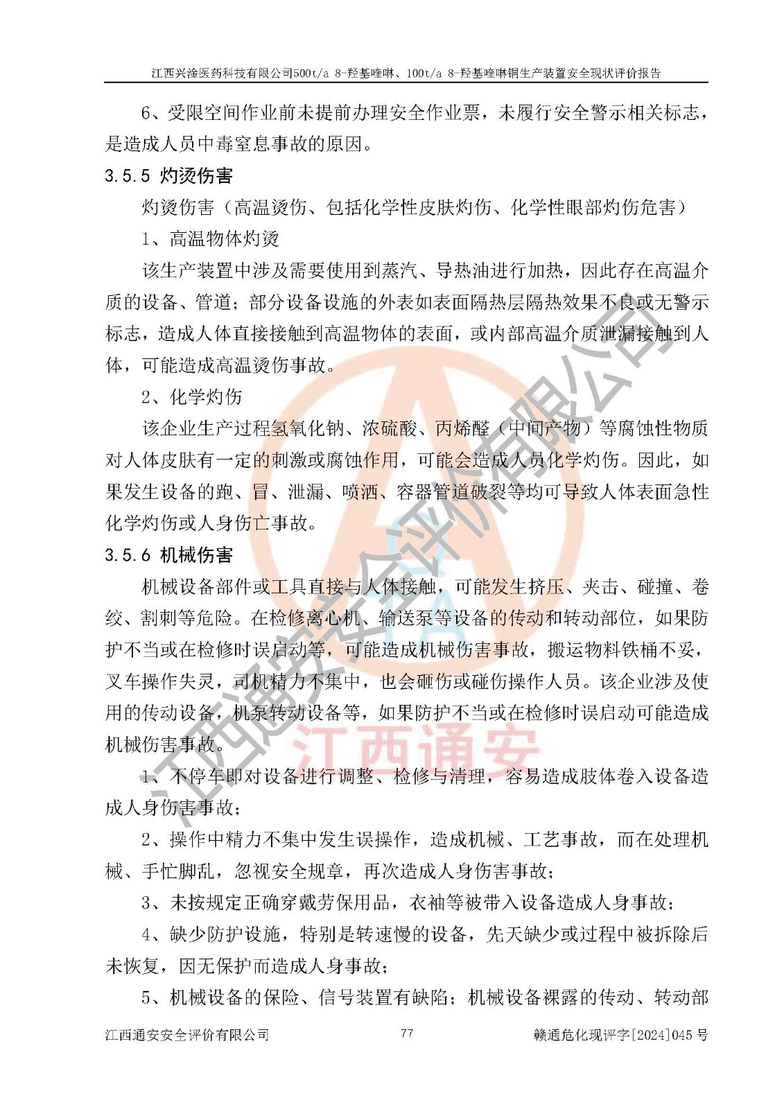 評價報告名稱 | 江西興淦醫(yī)藥科技有限公司500ta 8-羥基喹啉、100ta 8-羥基喹啉銅生產(chǎn)裝置安全現(xiàn)狀評價報告 | |||