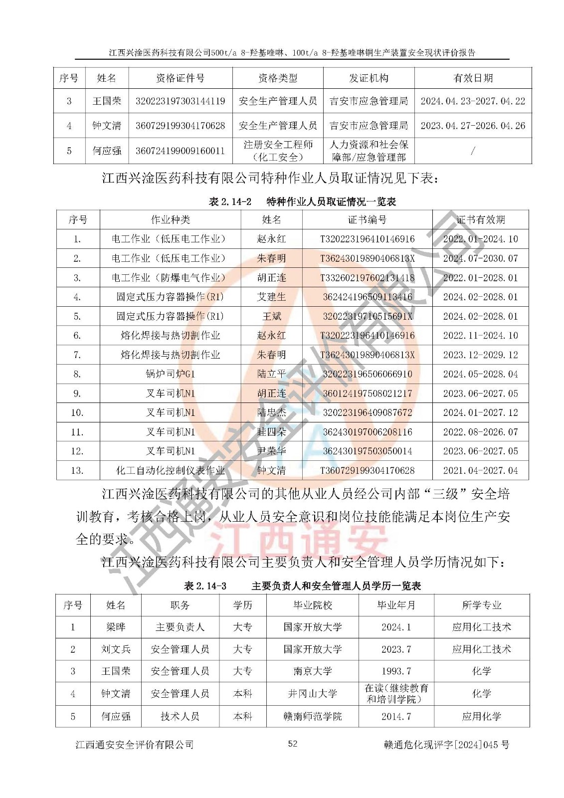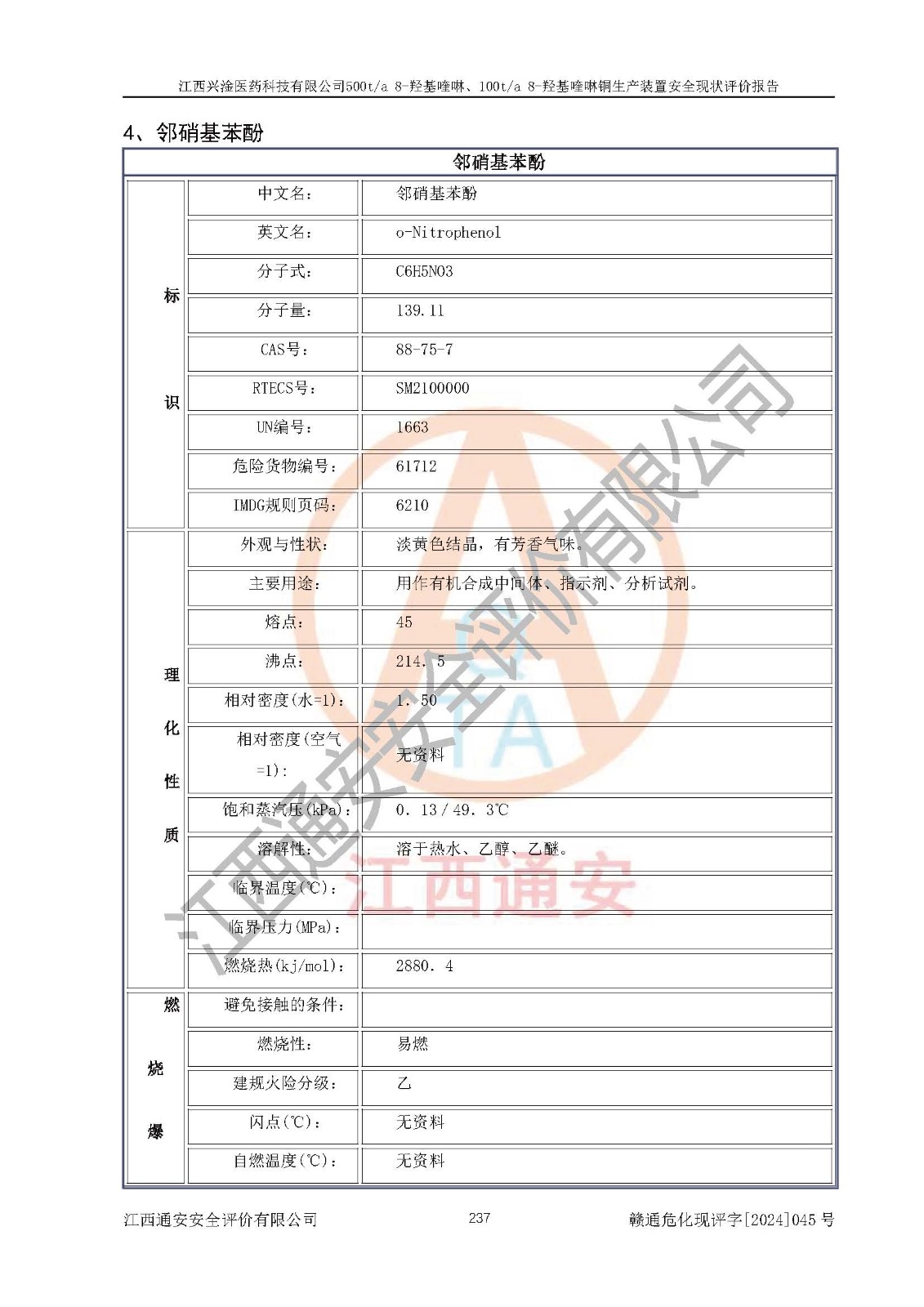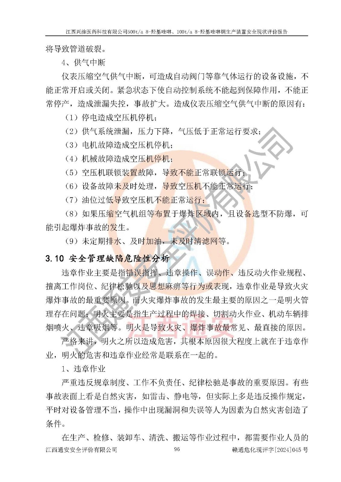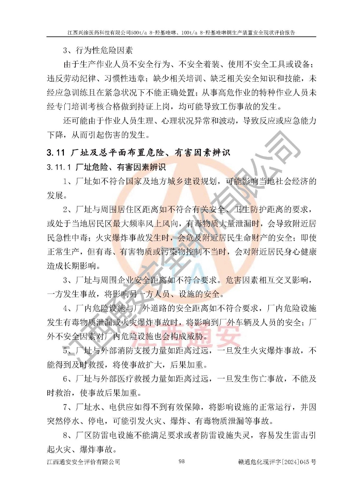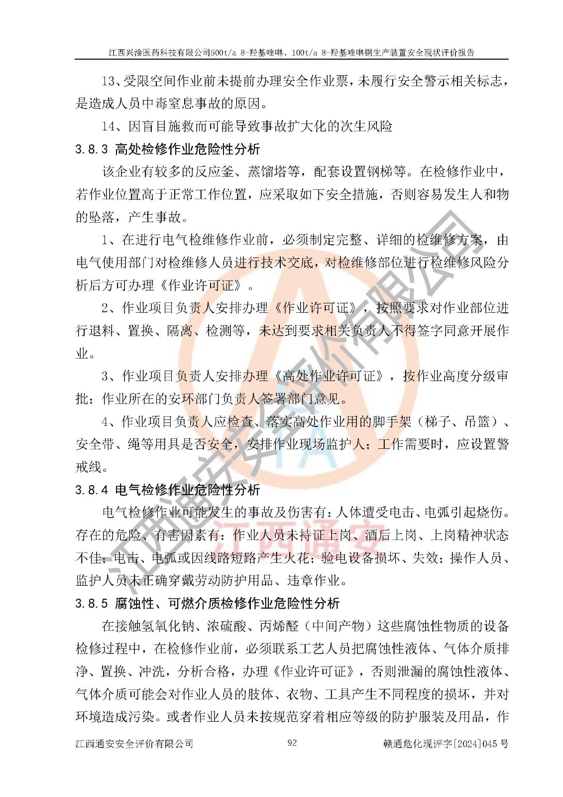 評價報告名稱 | 江西興淦醫(yī)藥科技有限公司500ta 8-羥基喹啉、100ta 8-羥基喹啉銅生產(chǎn)裝置安全現(xiàn)狀評價報告 | |||
