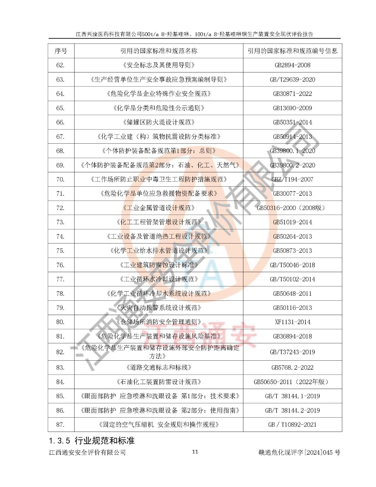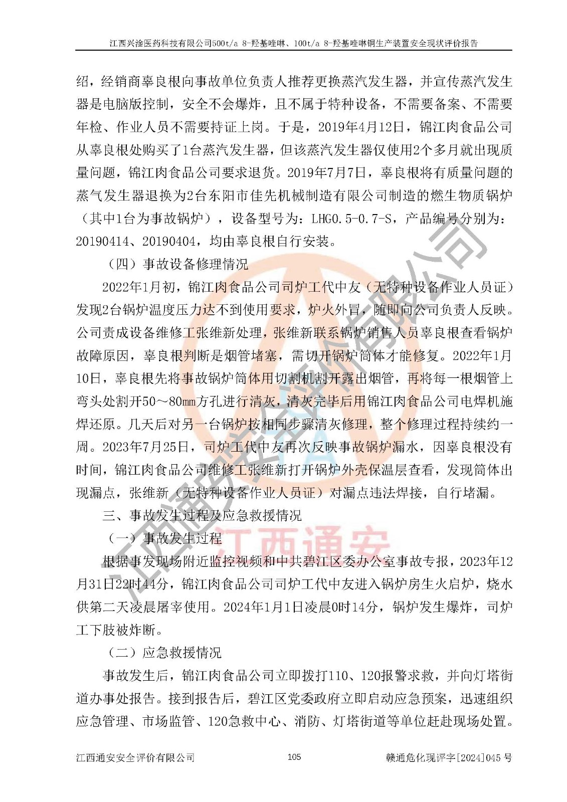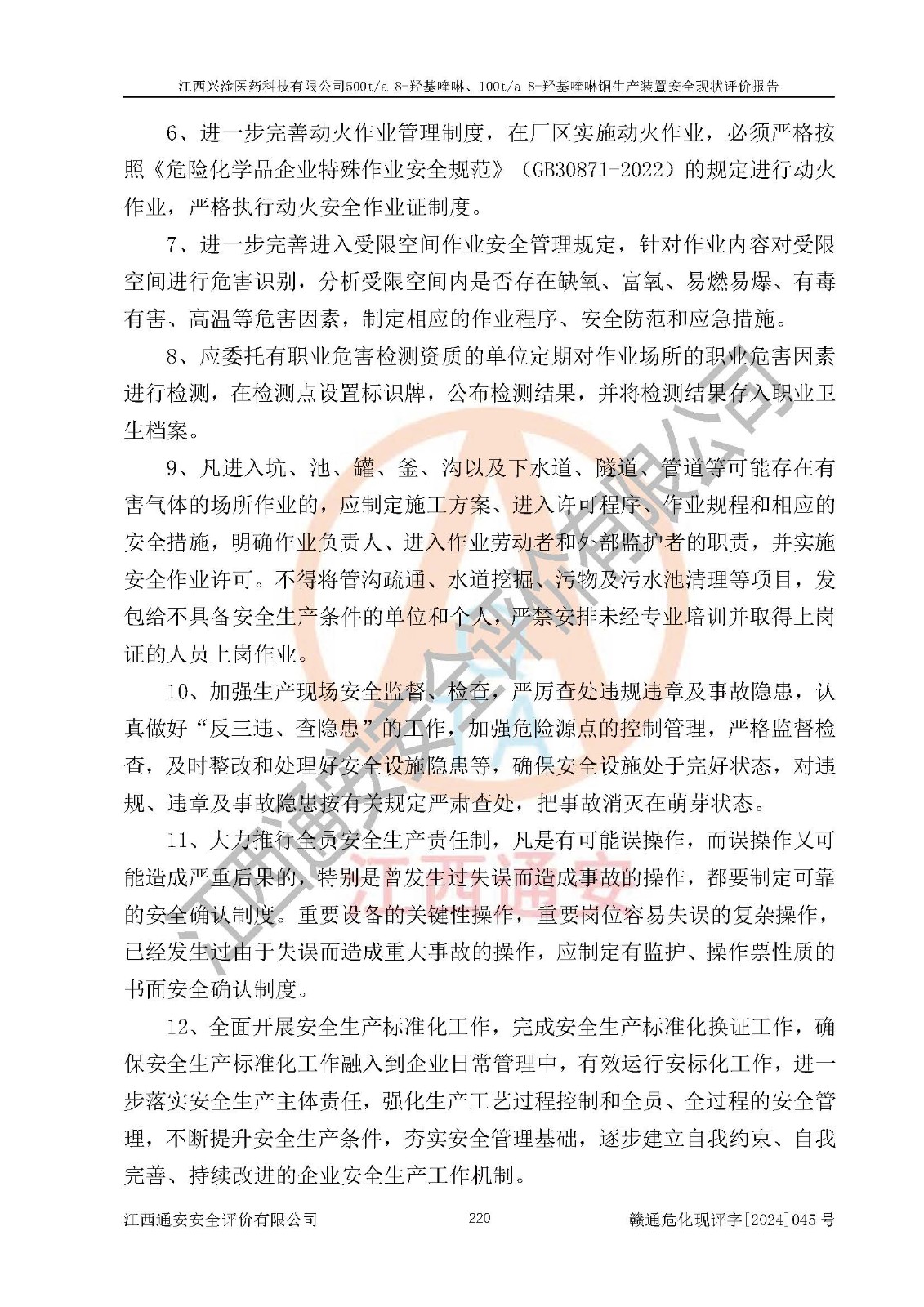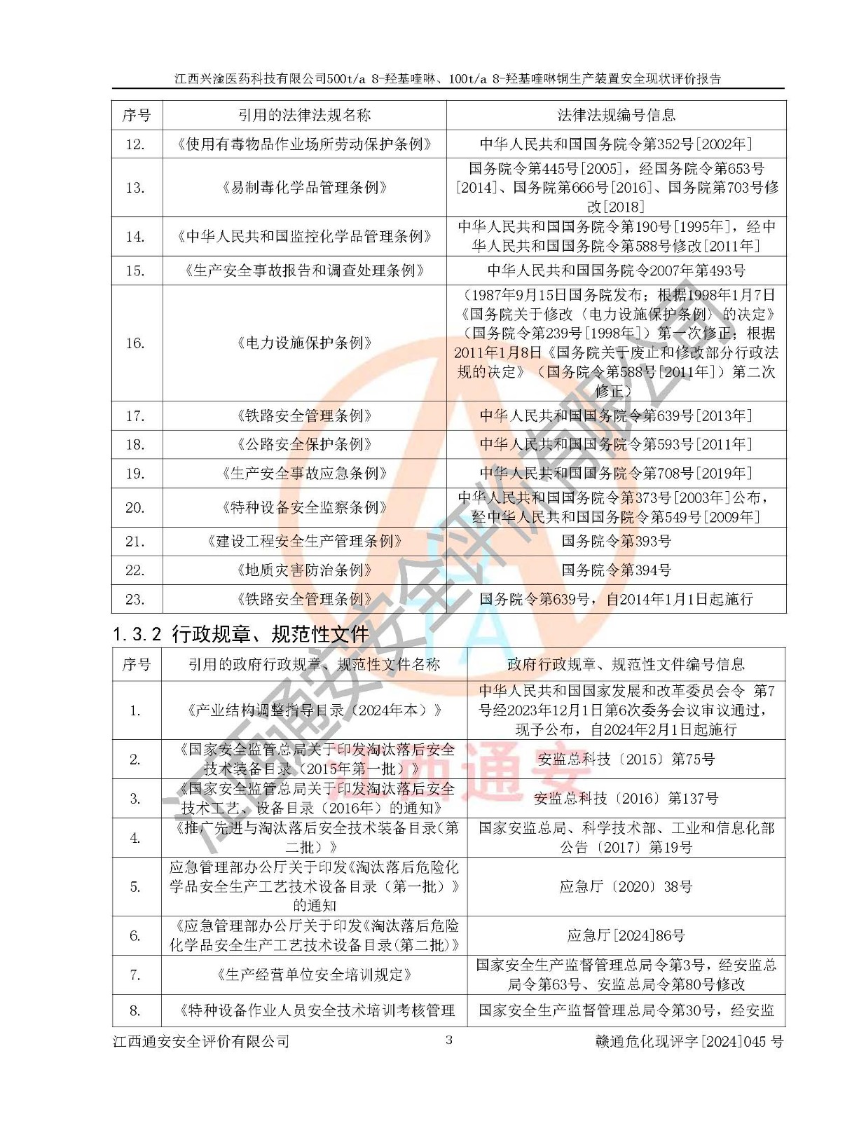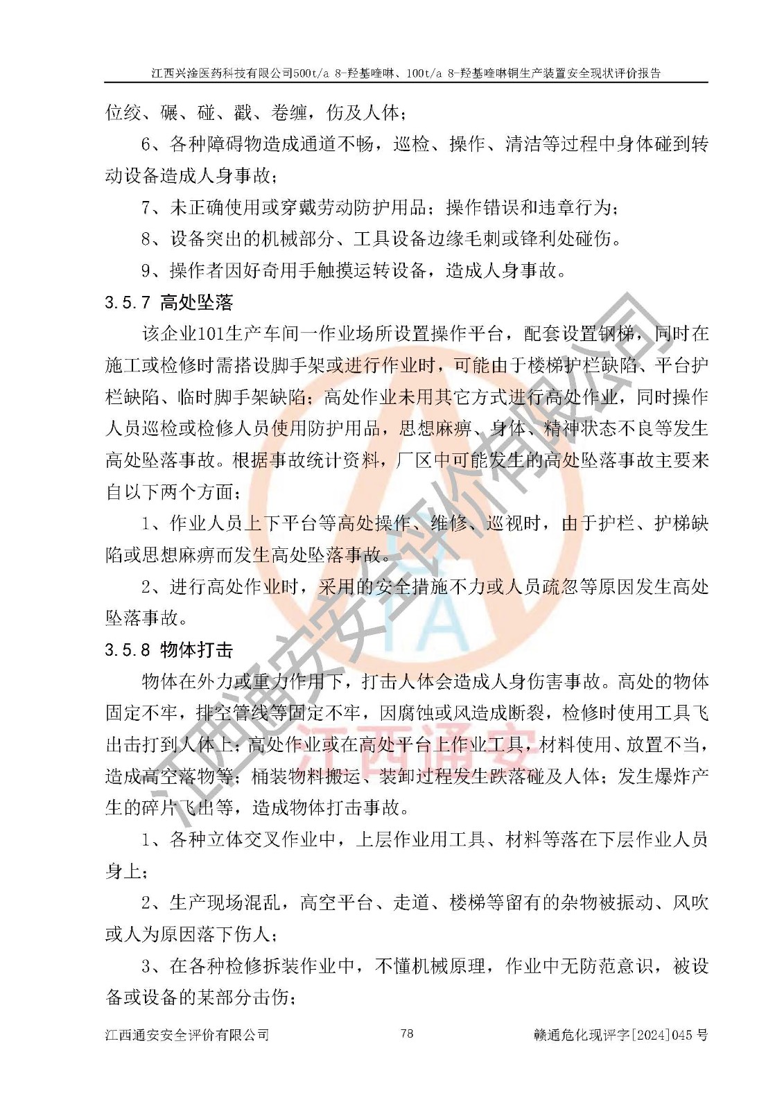 評價報告名稱 | 江西興淦醫(yī)藥科技有限公司500ta 8-羥基喹啉、100ta 8-羥基喹啉銅生產(chǎn)裝置安全現(xiàn)狀評價報告 | |||