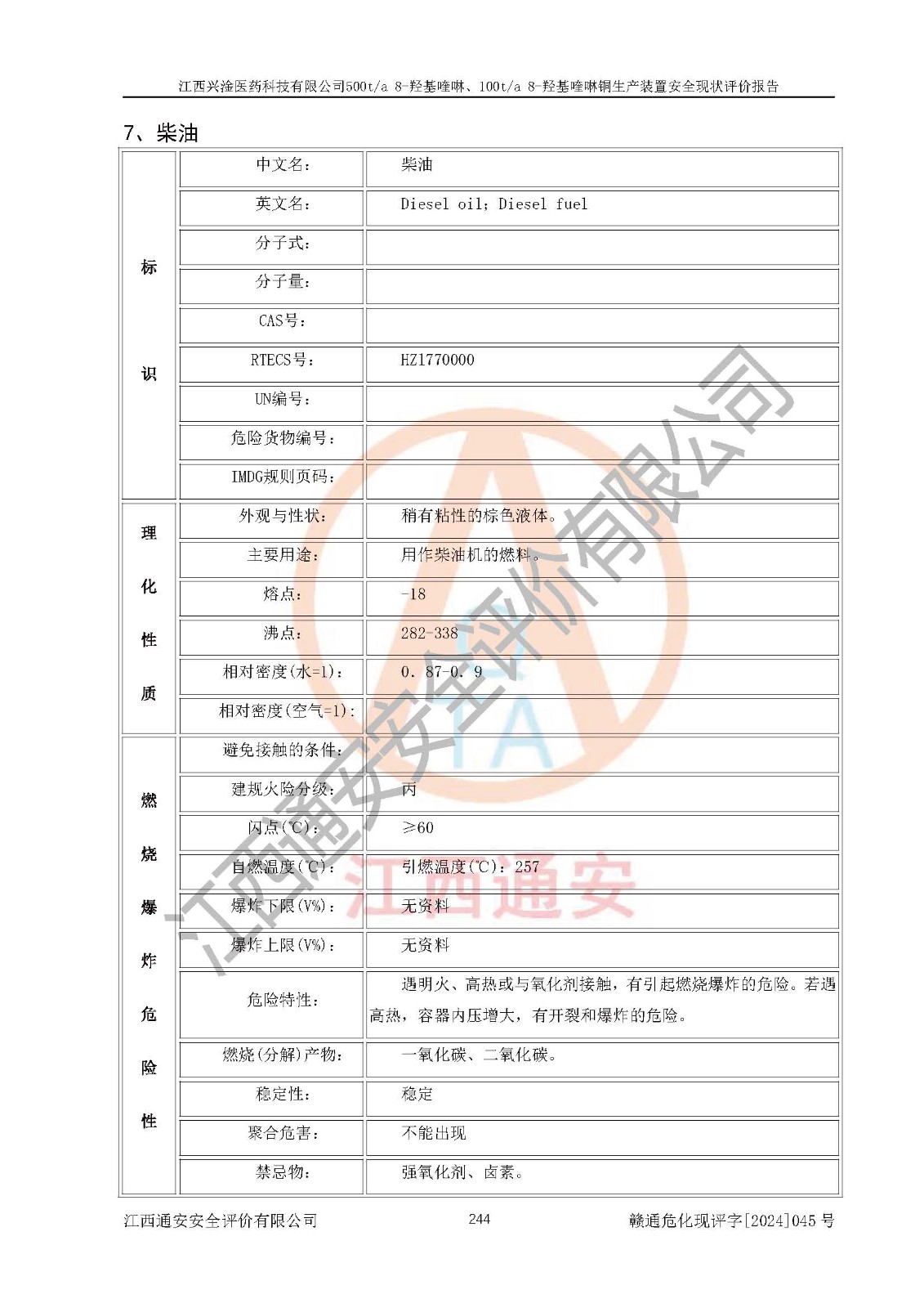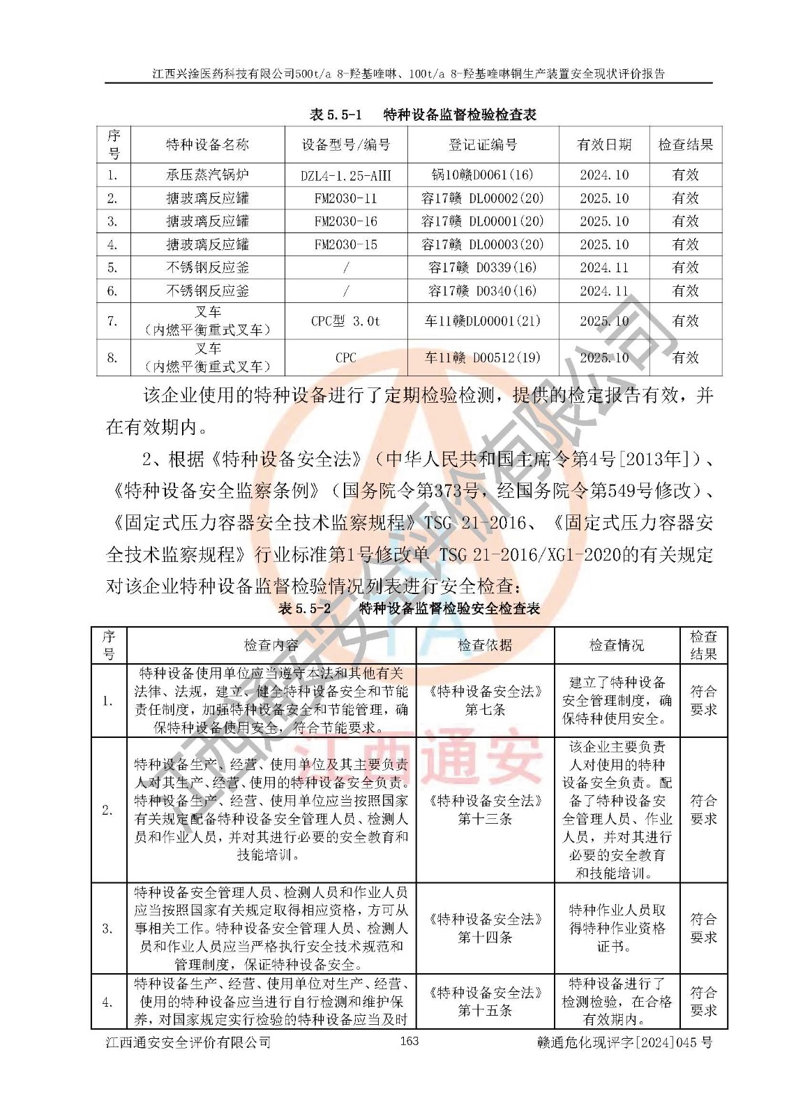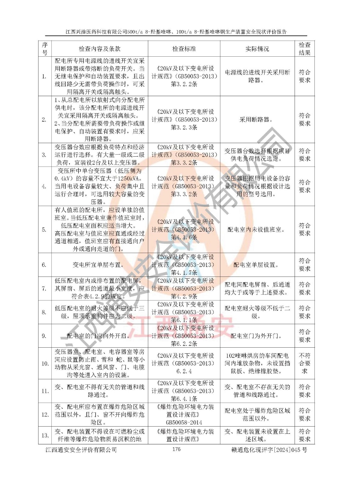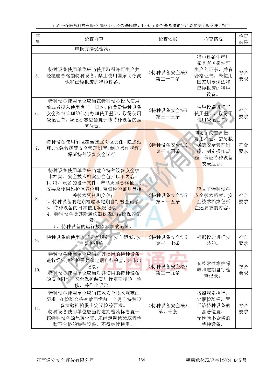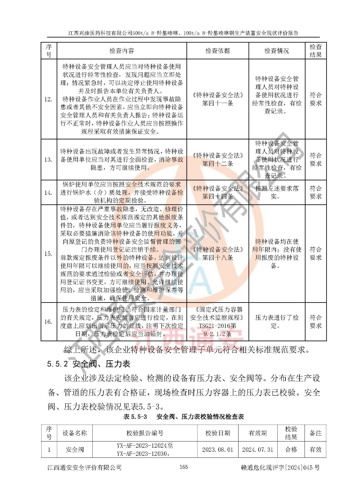 評價結(jié)論 | 評價結(jié)論:本報告認(rèn)為,江西興淦醫(yī)藥科技有限公司500t/a 8-羥基喹啉、100t/a 8-羥基喹啉銅生產(chǎn)裝置現(xiàn)場情況與設(shè)計圖紙一致,自動控制系統(tǒng)設(shè)計符合要求且運行正常,有關(guān)從業(yè)人員資質(zhì)符合《江西省危險化學(xué)品安全專項整治三年行動實施方案》要求,安全設(shè)施及安全管理符合**及有關(guān)部門關(guān)于安全生產(chǎn)法律、法規(guī)、標(biāo)準(zhǔn)的要求,安全設(shè)施正常投用且運行**,安全風(fēng)險是可以控制的,其風(fēng)險程度是可以接受的,安全現(xiàn)狀符合安全生產(chǎn)條件,能夠滿足安全生產(chǎn)的要求。 | |||